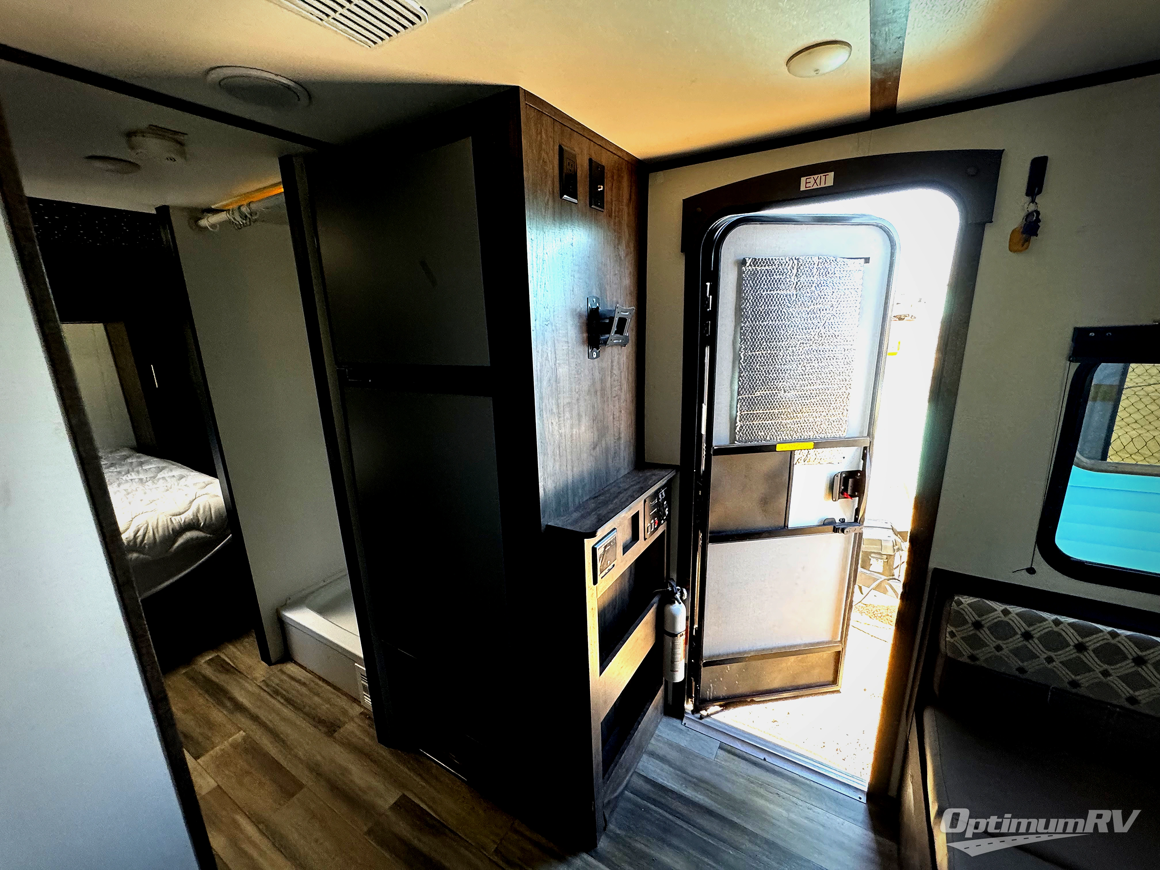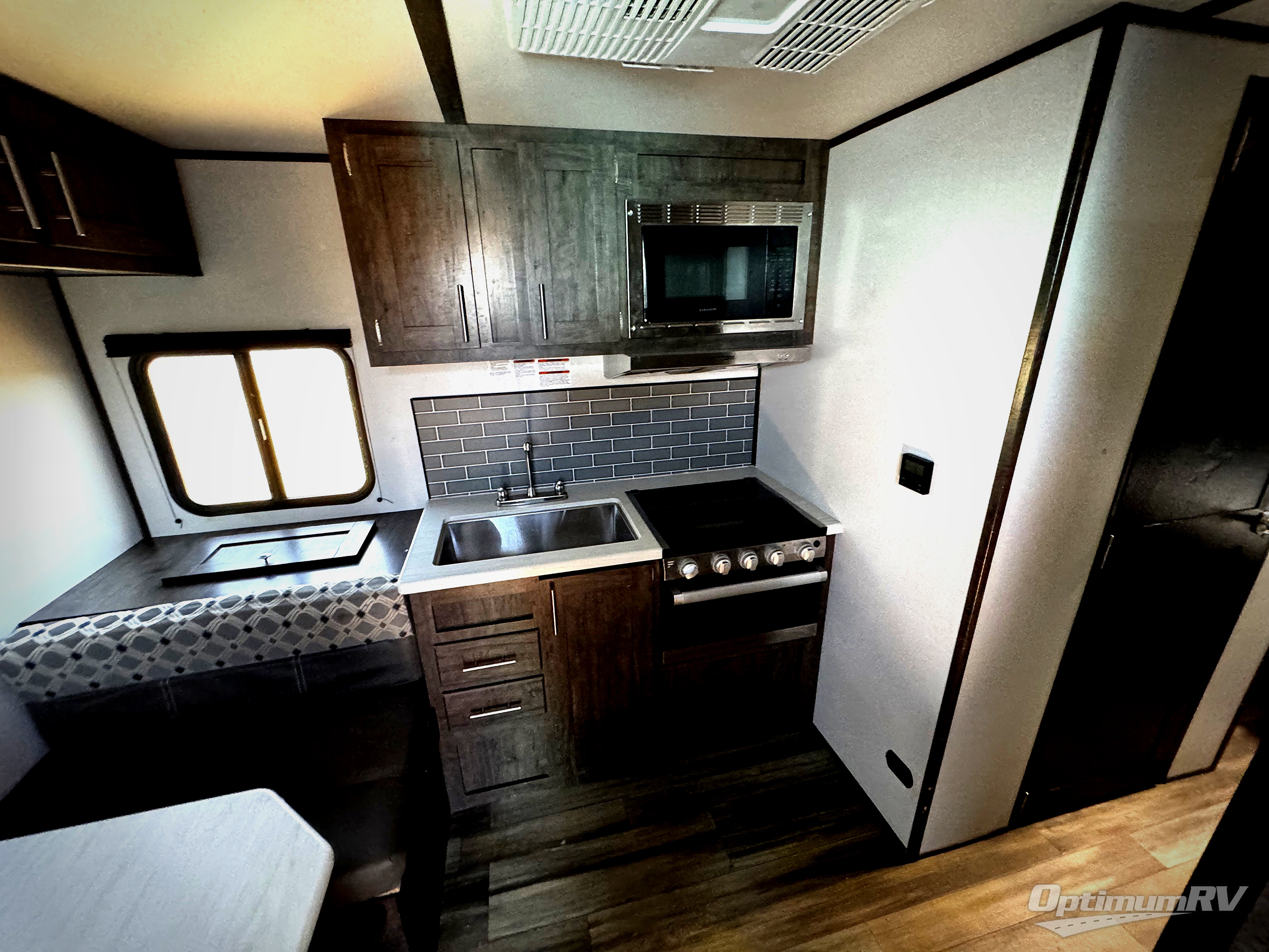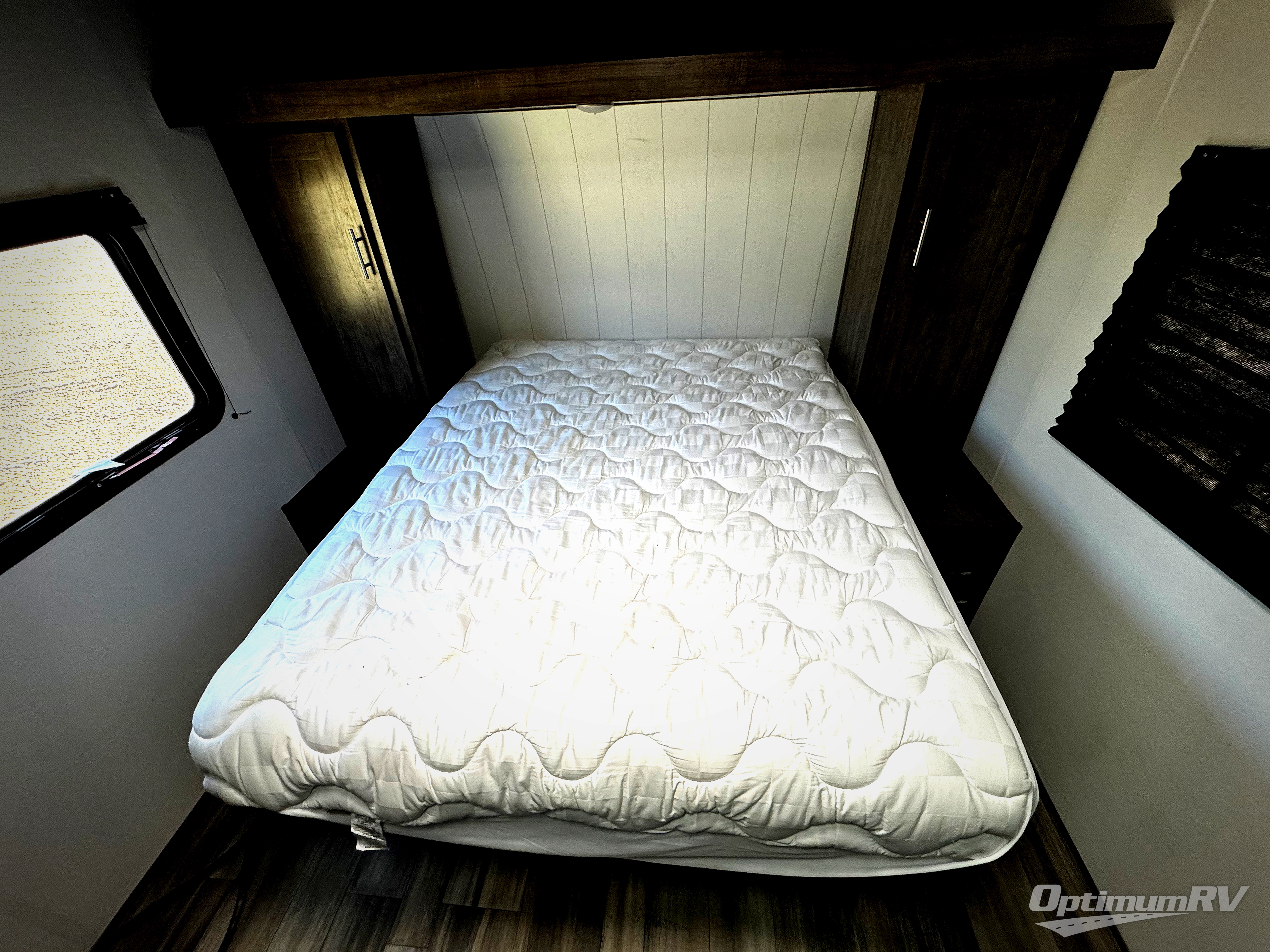 This model will feel a little more like home with a front bedroom and a walk-around queen bed! You will find bedroom overhead cabinets for your gear, along with kitchen overhead cabinets for dishes or food. The stand-alone shower is right across the hall from the private toilet and sink, and the rear booth dinette can be used for both dining space and additional sleeping space!