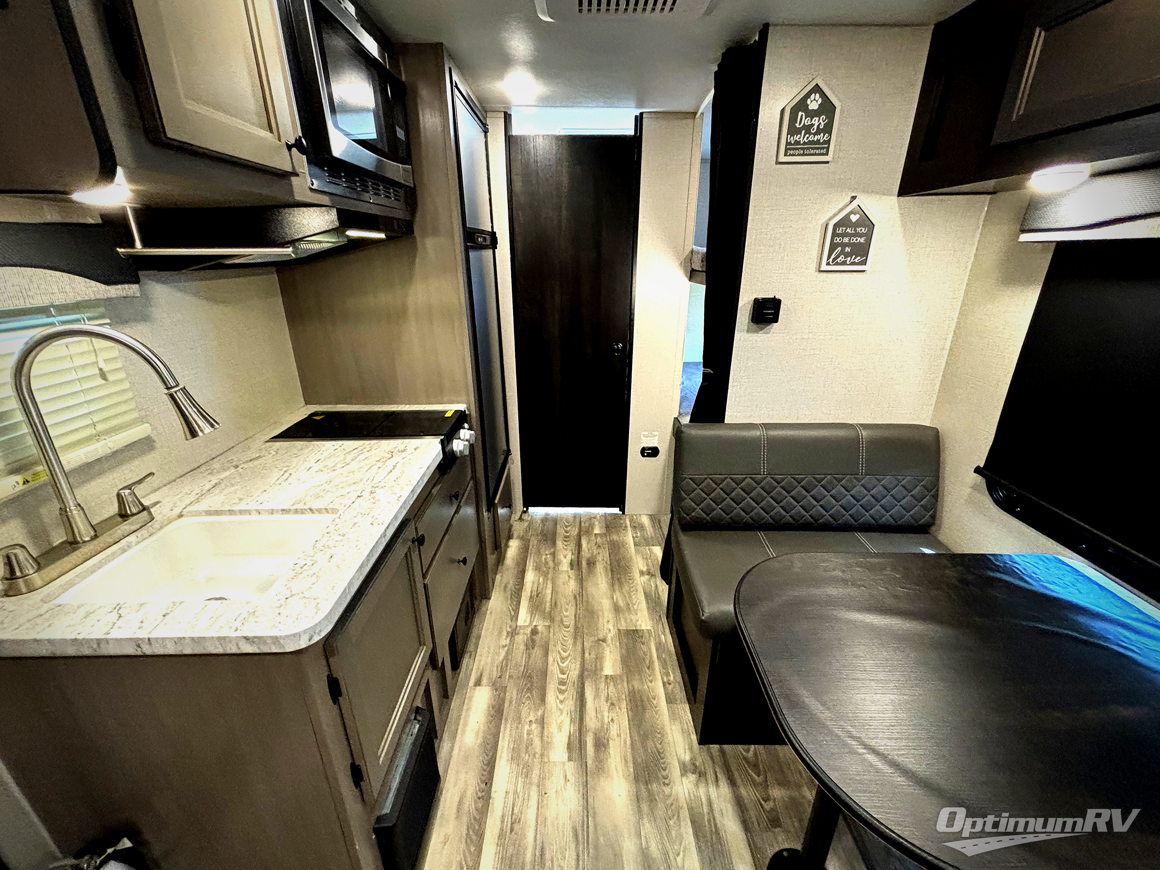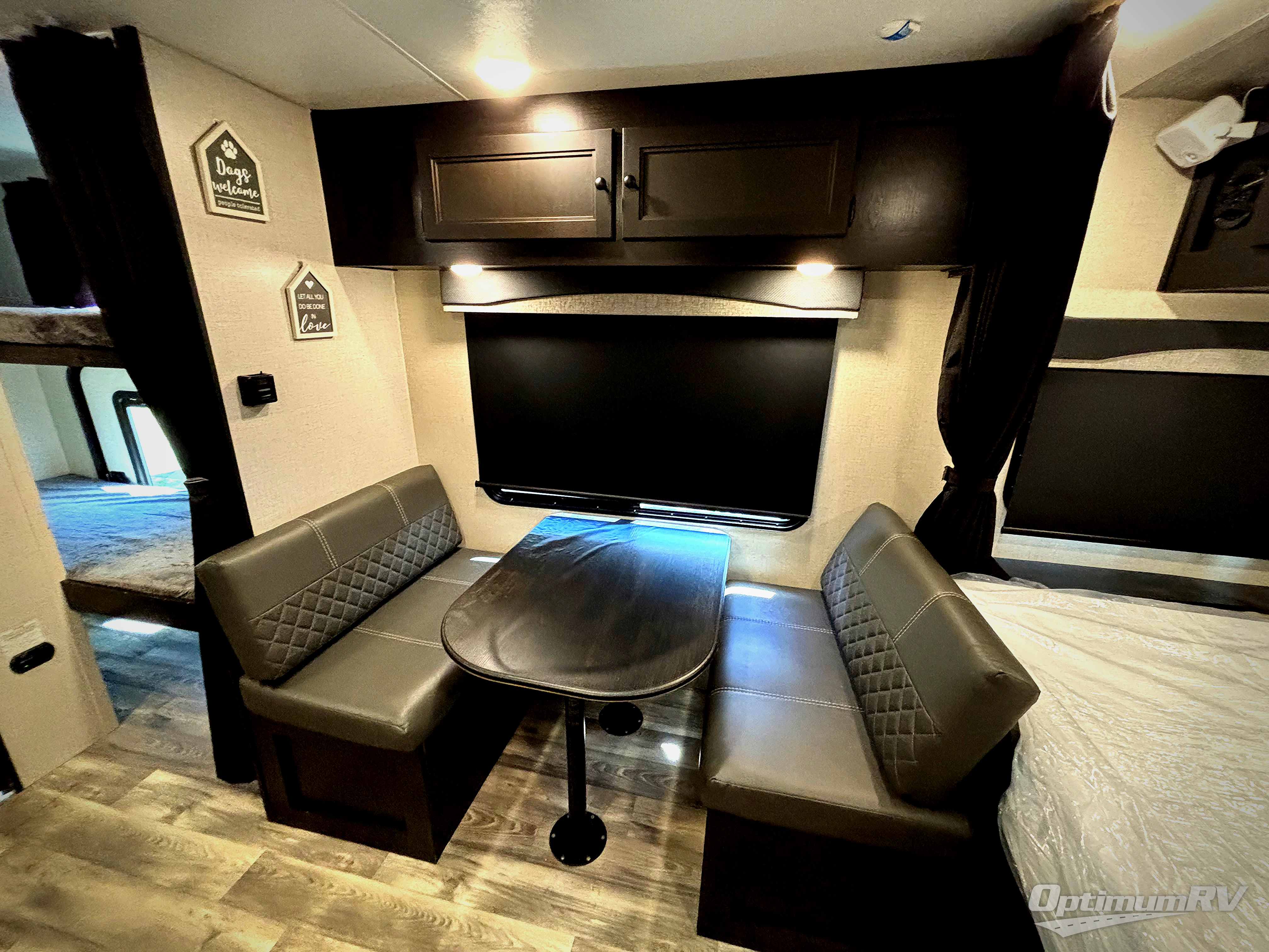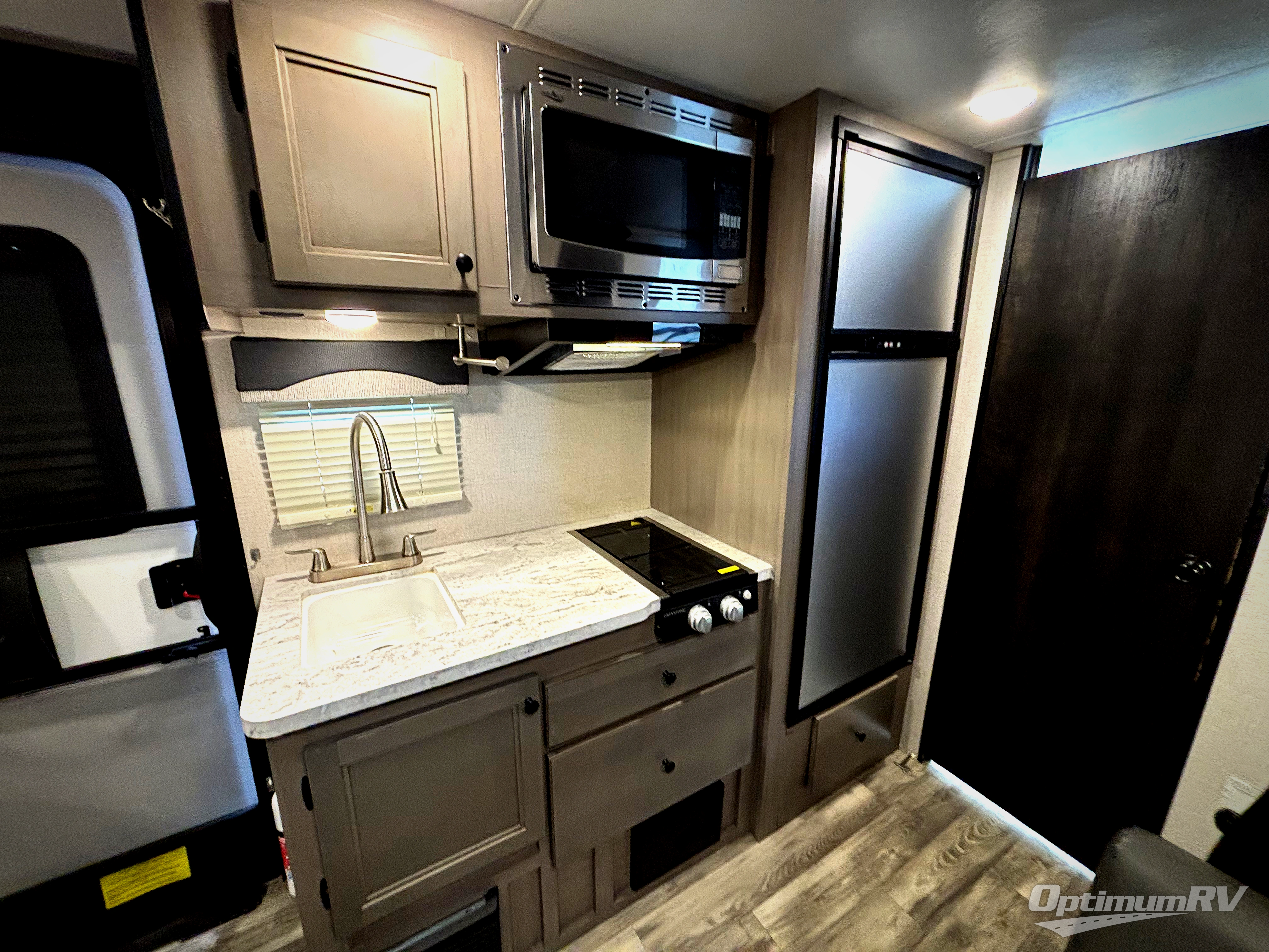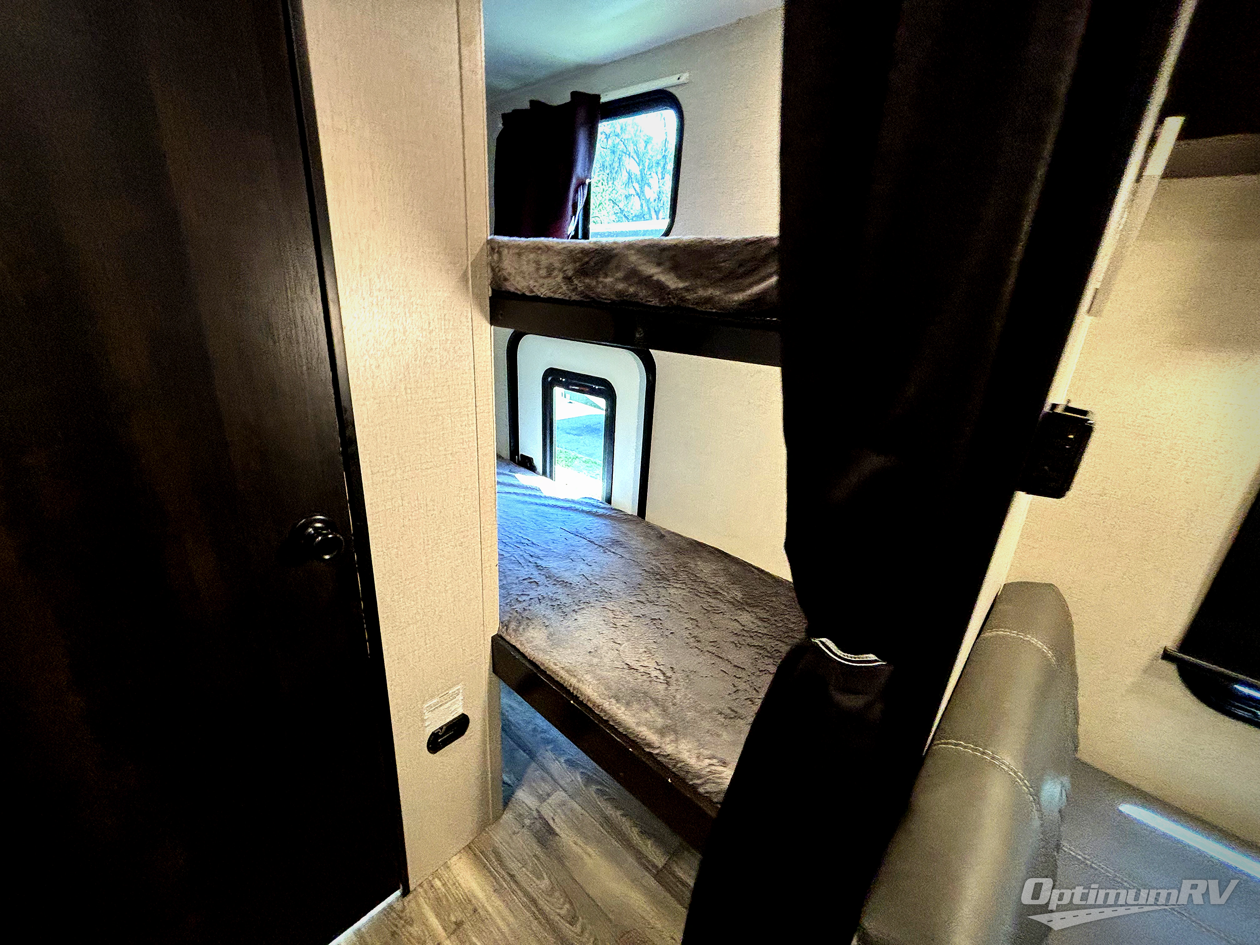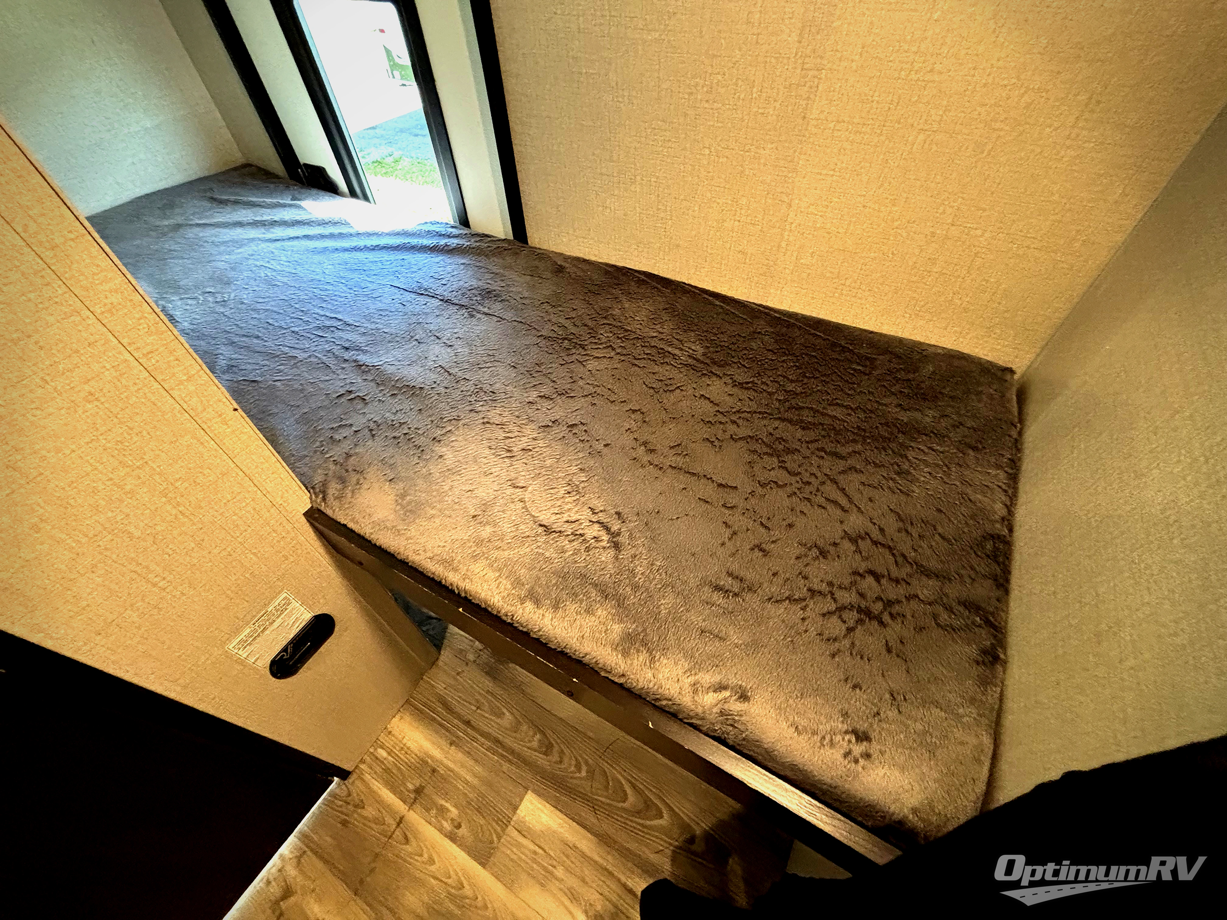 Get to know your state parks a little better with this Super Lite Maxx travel trailer! There is room for four campers to sleep comfortably with the bunk beds, booth dinette and 80" bed, and all of those people can stay clean by using the tub/shower in the full bathroom. Meal prep will be a cinch in this kitchen because it has a two-burner recessed range, convection microwave, residential high-rise faucet, and a stainless steel undermount sink. If you need to stay inside because of bad weather, you'll find some entertainment from the 32" 12V LED TV that has a built-in AM/FM/Bluetooth sound bar, and there are a few overhead cabinets that you can use to store your board games and electronics.