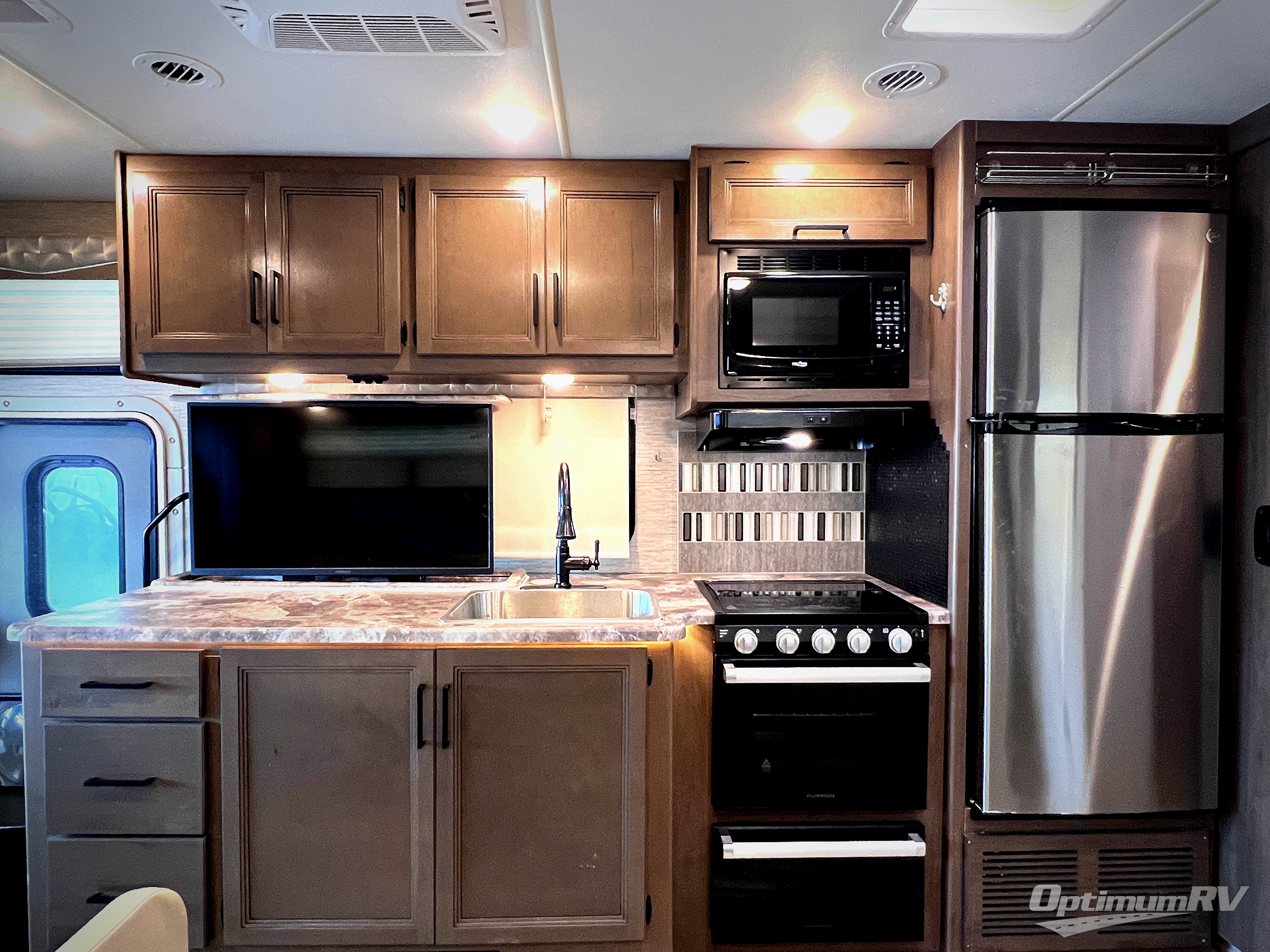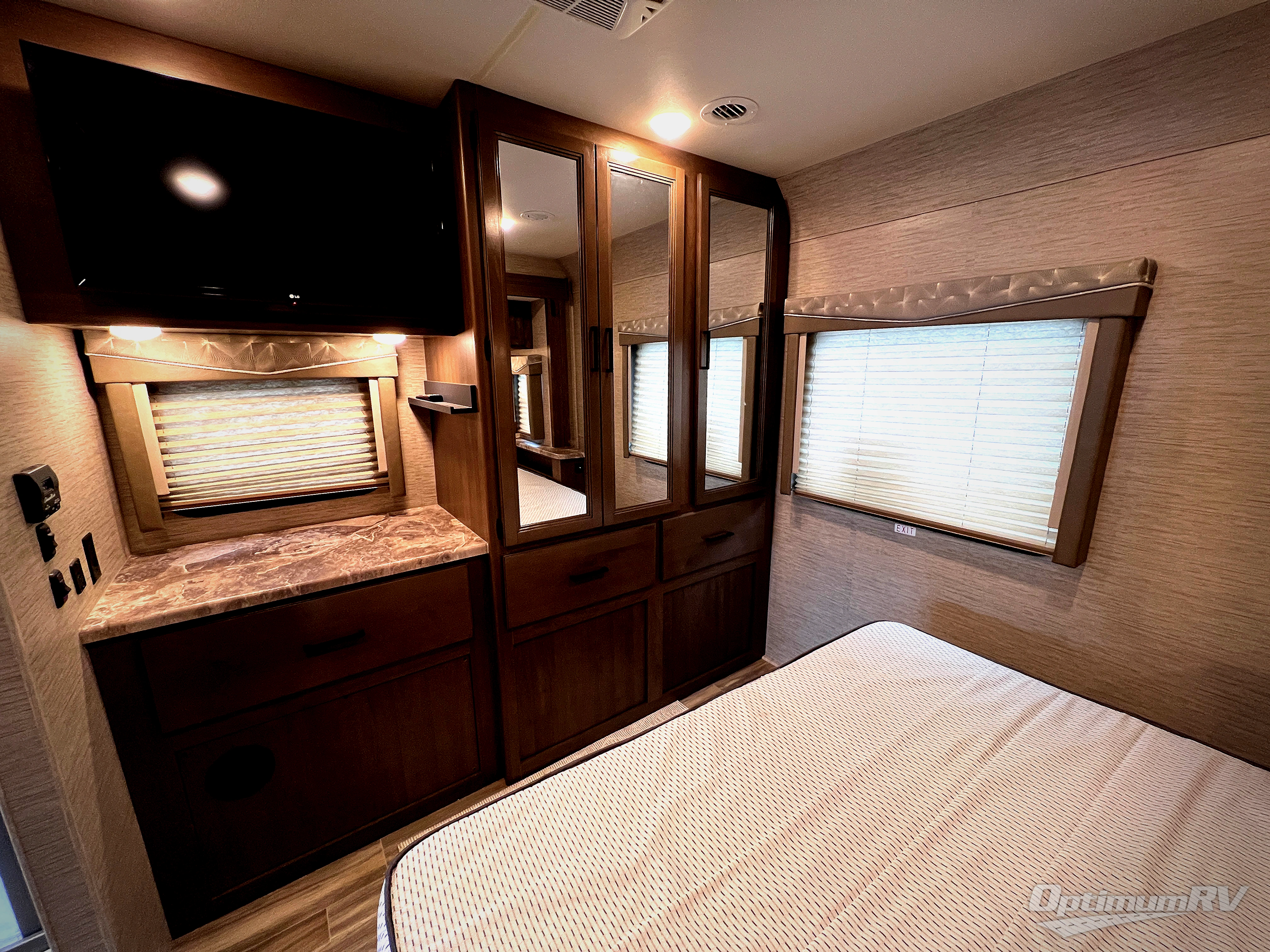 Pack up the family and bring your furry friends along too for fun camping trips in this double slide motorhome. The rear private bedroom includes a queen bed slide out, a closet, plus a 32" TV. You both can easily get clean up each morning thanks to the private lavy and sink, and the shower right across the hall. If you have any guests staying over, they can sleep on the Dream Dinette, the jack-knife sofa, or the drop-down overhead bunk. There is a three burner gas cooktop and a microwave oven to prepare meals at, and an exterior kitchen with a refrigerator, a sink, and a 1000-watt inverter. The retractable 39" TV provides everyone a view for movie night, or you may just find yourselves outdoors under the 19' power awning with LED lights!