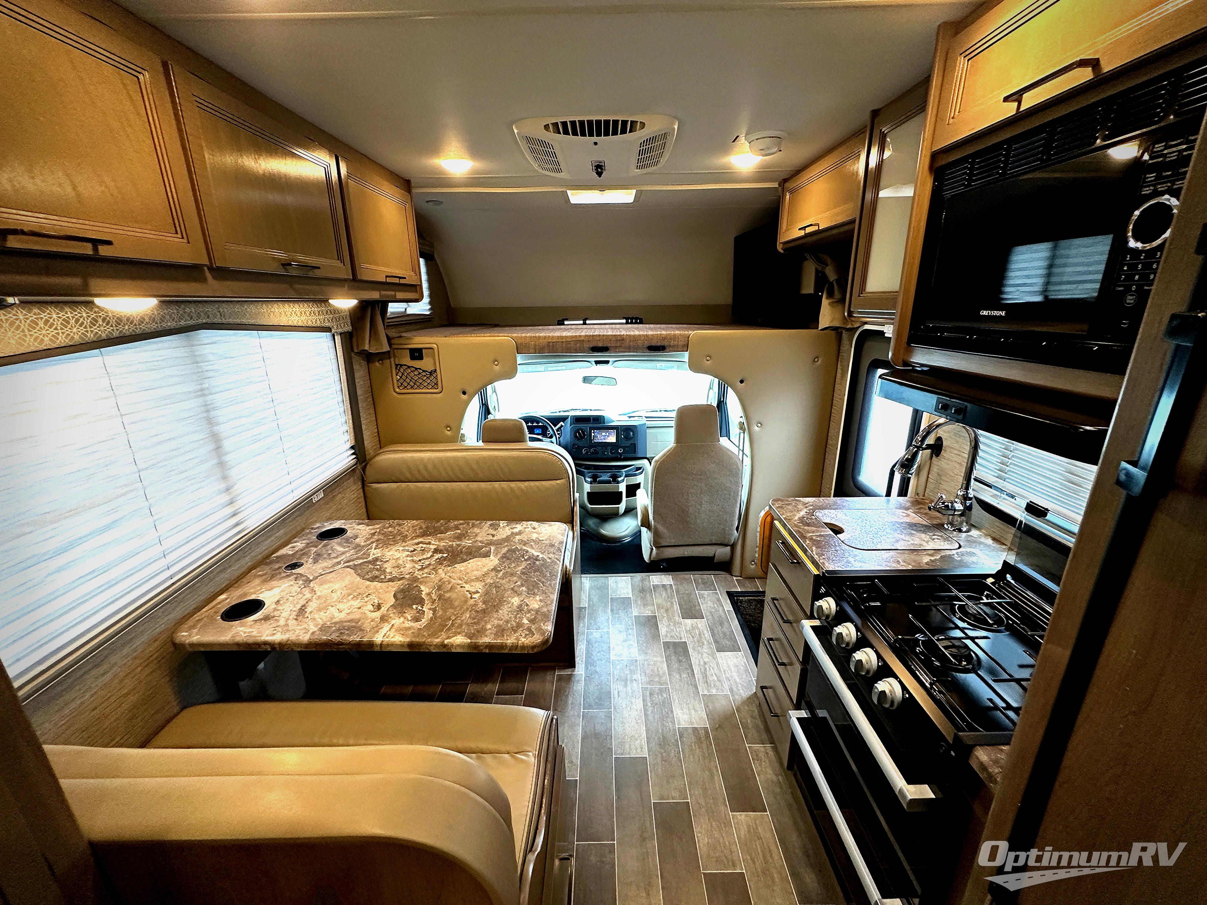 Pack your bags and fuel up this motorhome for a great adventure! Start each morning feeling recharged after sleeping on the corner 54" x 80" queen bed or the 54" x 96" bunk over cab then freshen up in the rear corner bathroom with the 24" x 36" shower. Grab some eggs from the double door refrigerator, fry them up on the three burner cooktop, and set your cup of coffee on either the flip-up countertop or the 76" dream dinette which can also transform into an extra sleeping space. You can choose to add an optional exterior 32" TV but you also have a standard 39" TV with swivel by the bunk over cab for your entertainment needs!