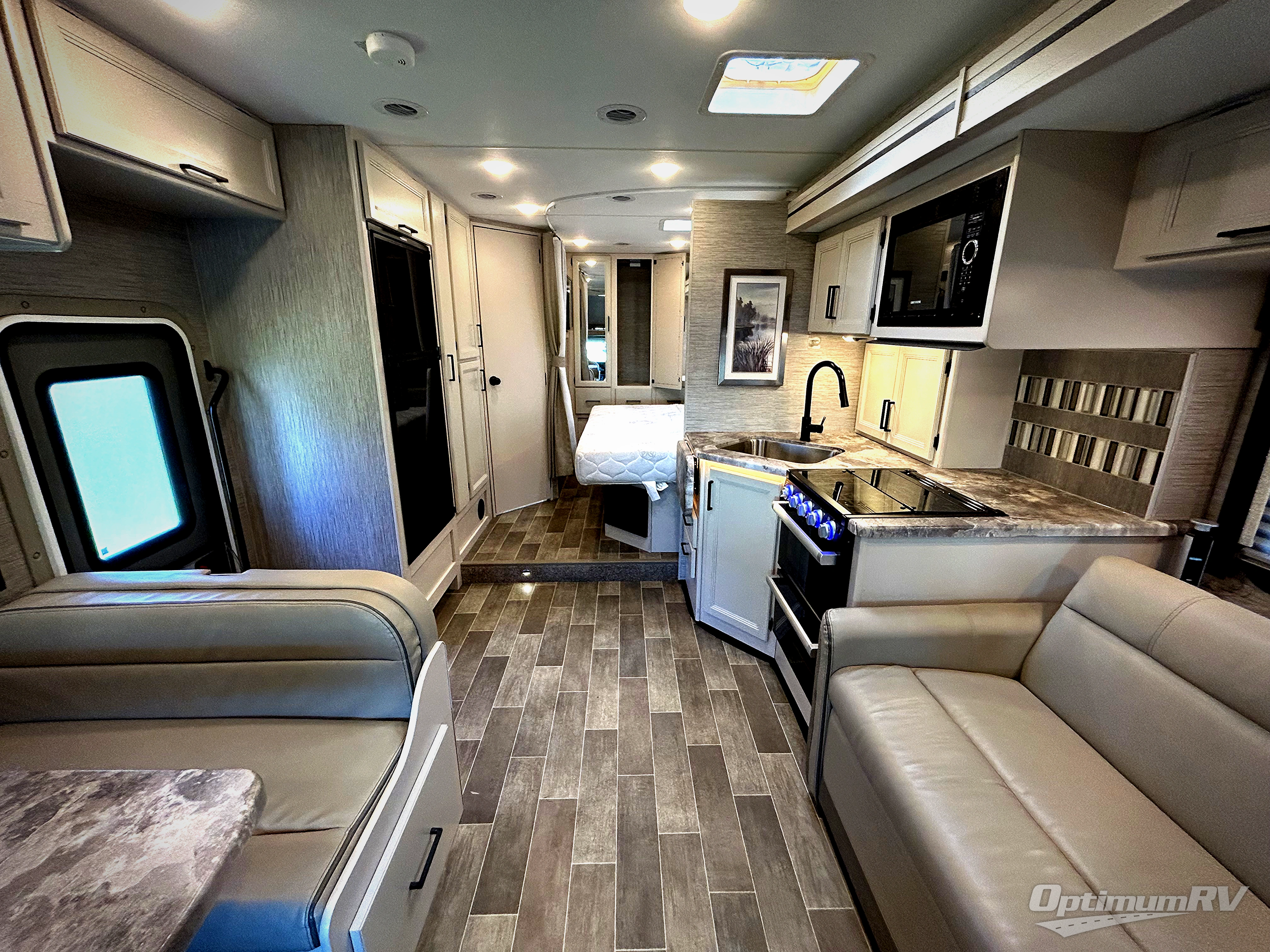This is your chance to get out and see the world with one of these Thor Motor Coach Class C gas motorhomes! A Ford E-Series chassis or optional Chevrolet chassis powers these units to all of your destinations. The 31' models offer an even smoother ride with SmoothTECH ride enhancement by MORryde so you can turn on cruise control and sit back in the captain's chairs to enjoy your journey. You can even bring along your furry friend and not worry about messes becoming stains thanks to the residential vinyl flooring throughout. The 7" touchscreen dash radio comes with a backup monitor and depending on which model you choose you could have plug and play screen mirroring or Android Auto and Apple CarPlay to play your favorite tunes. Heads will turn down the highway with the slick fiberglass exterior with standard graphics package. Come find your favorite model today!