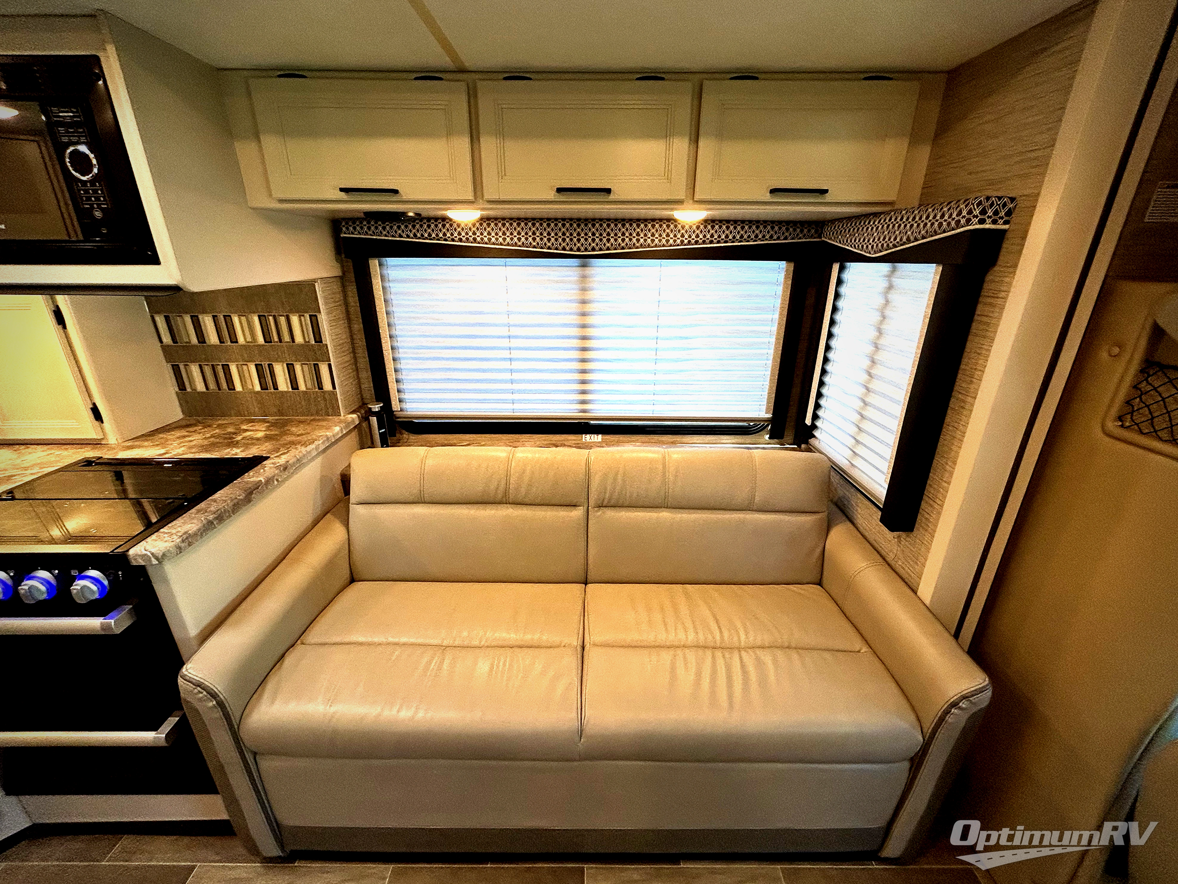 Make your dreams come true with this motorhome! You won't have to worry about eating fast food while on the road thanks to the fully equipped kitchen with a three burner cooktop, double door refrigerator, microwave oven, and flip-up countertop. Enjoy your meals at the 71" dream dinette then play a card game or relax on the 68" jackknife sofa to watch a movie with the 39" TV with swivel. Both of these areas can transform into extra sleeping spaces in addition to the 54" x 96" bunk over cab and the rear corner 72" x 74" king bed with a privacy curtain to draw and a closet to store your clothes. There is also a rear corner bathroom to freshen up in each morning with a 30" x 36" shower!