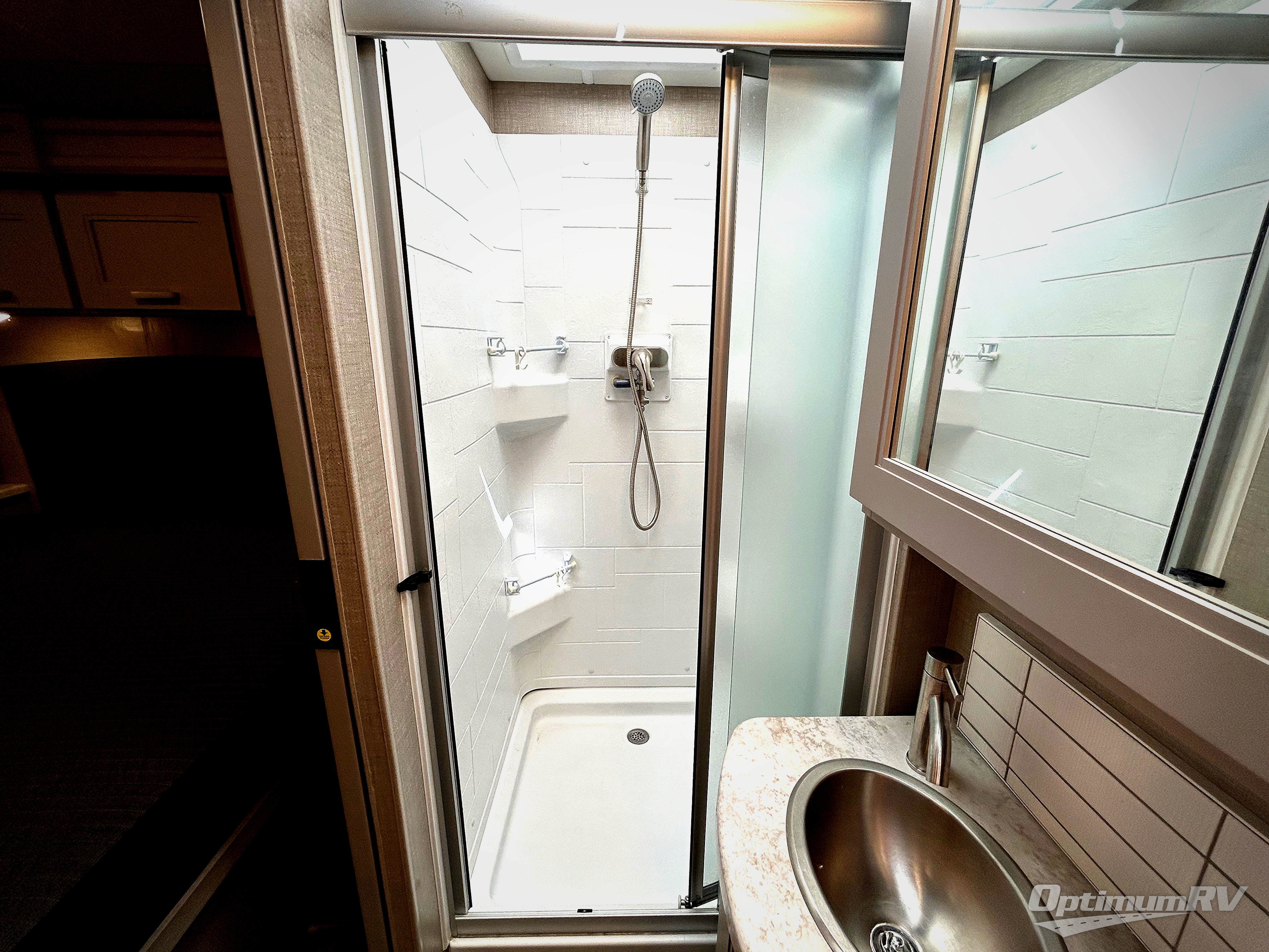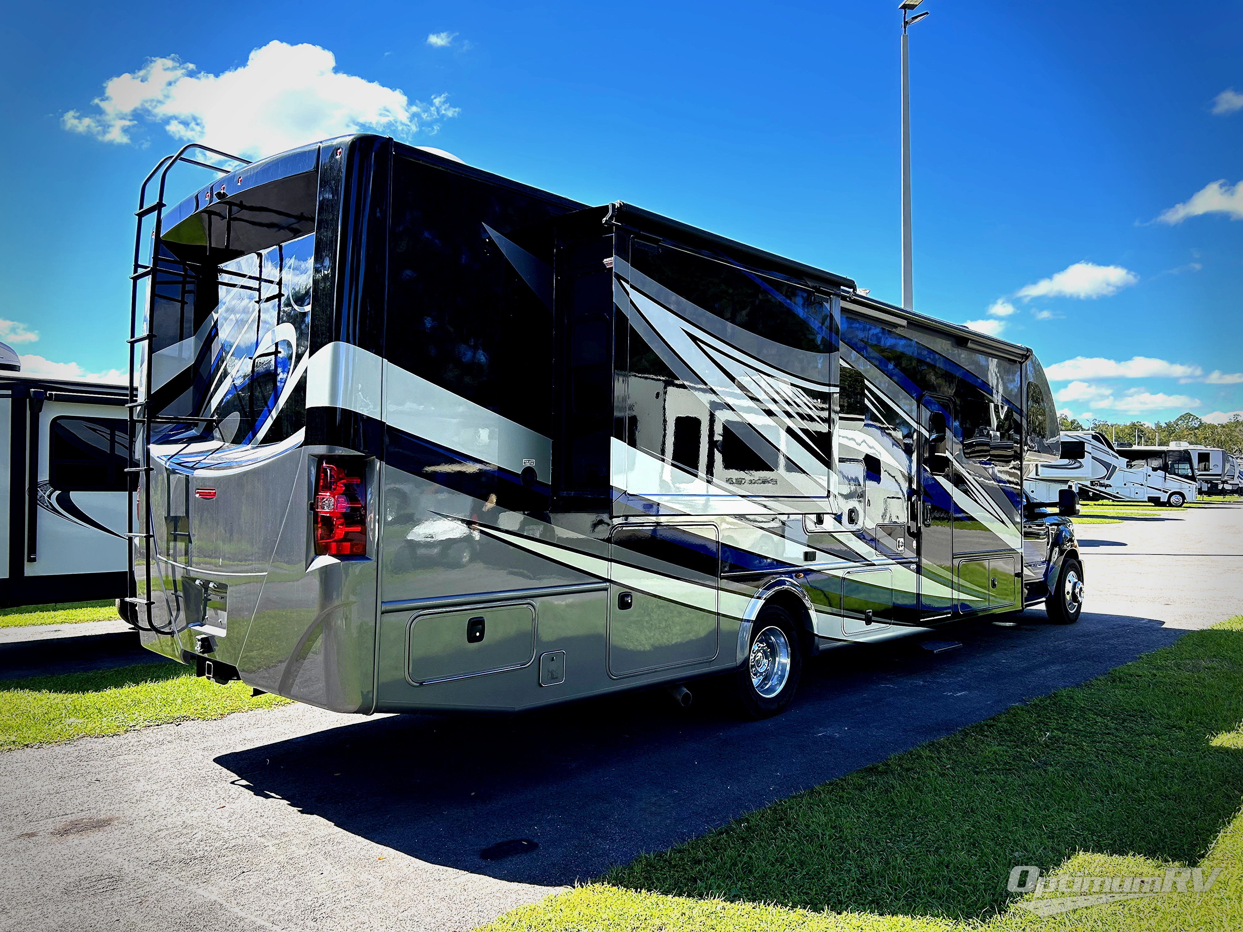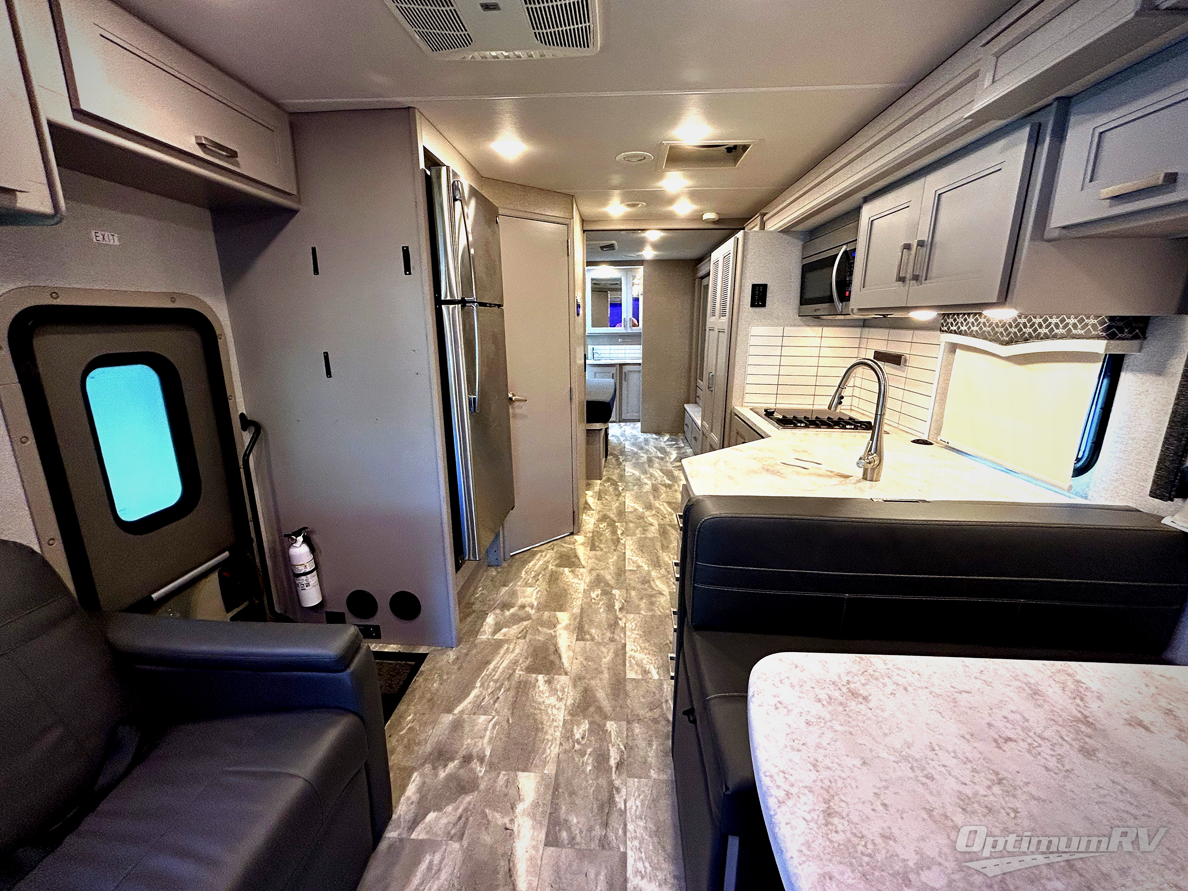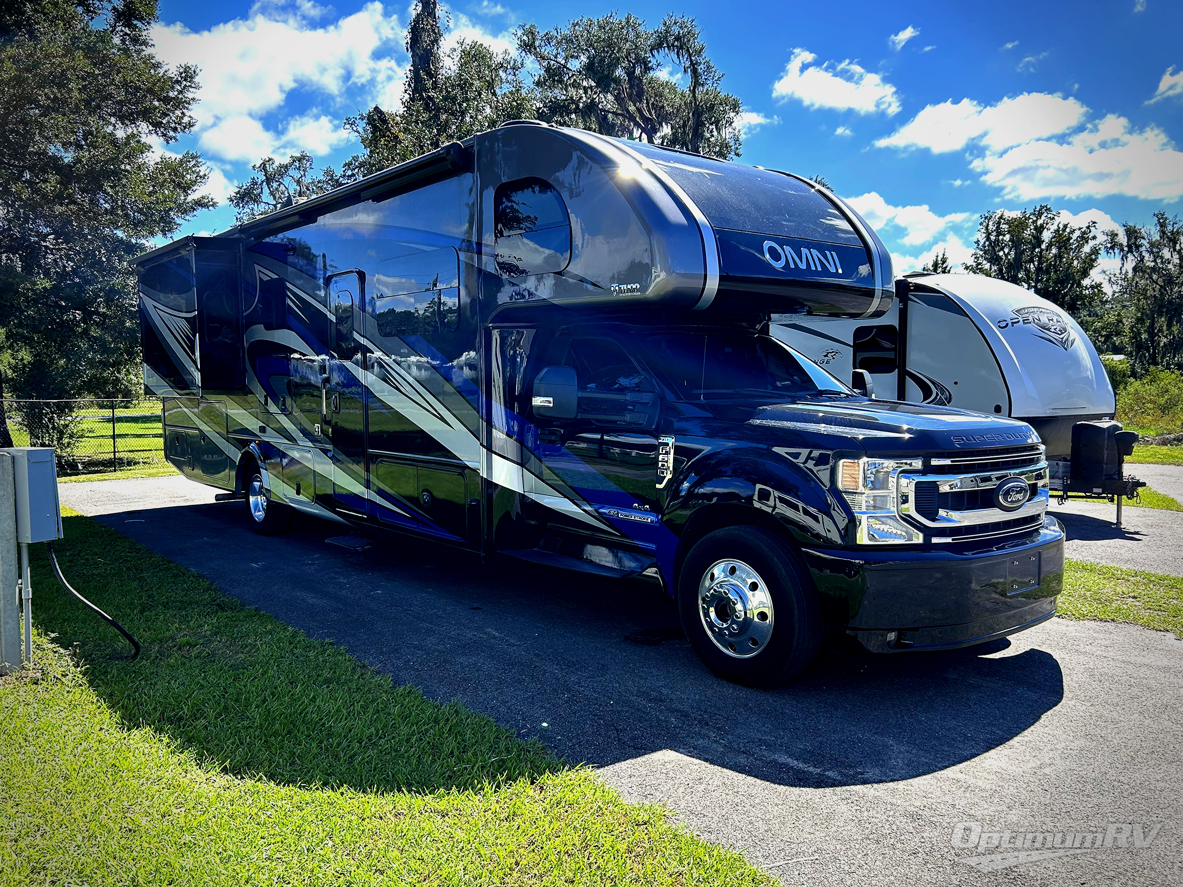 The Omni Super C diesel motorhome by Thor Motor Coach starts with a durable welded tubular steel floor, vacu-bond laminated roof, walls, and floors with block foam insulation, and a full-body paint package with gel-coat sidewalls. Each model includes either a F550 or F600 Power Stroke 4 x 4 Turbo Diesel engine that will allow you to maneuver tougher terrain when the adventure calls for it. The cockpit is every captain's dream with its power adjustable driver's seat, side view and back-up camera system, heated remote exterior mirrors, and more. You can control all of your coach's functions with the RapidCamp+ multiplex wiring control system, and the Winegard ConnecT Wi-Fi extender with 4G will allow you to say in touch with the outside world as you travel. Each model includes residential linoleum throughout, Leatherette furniture, solid surface countertops in the kitchen, and a glass shower door for that added touch of luxury. Come see all the other great features the Omni Super C diesel motorhome has to offer!