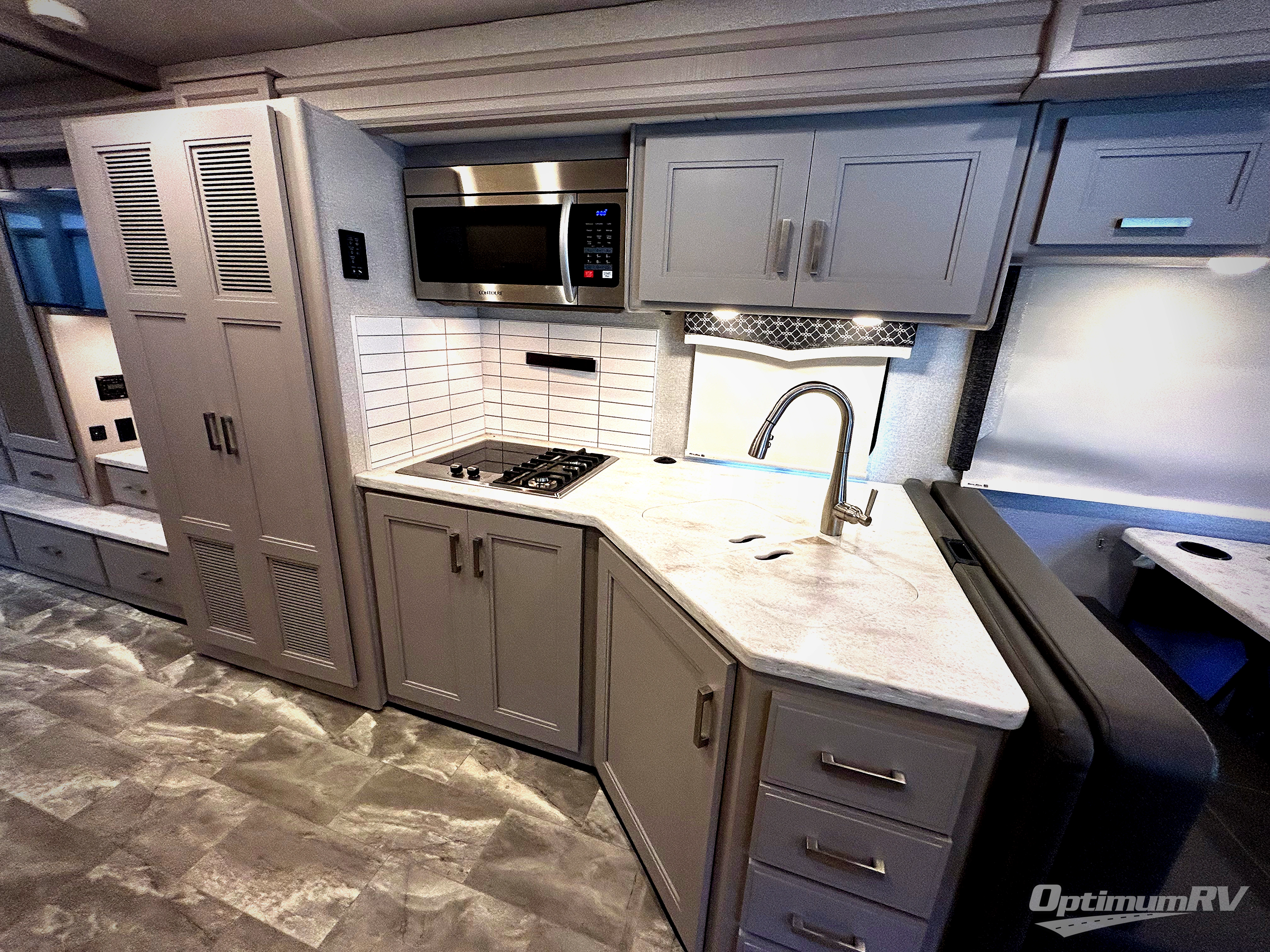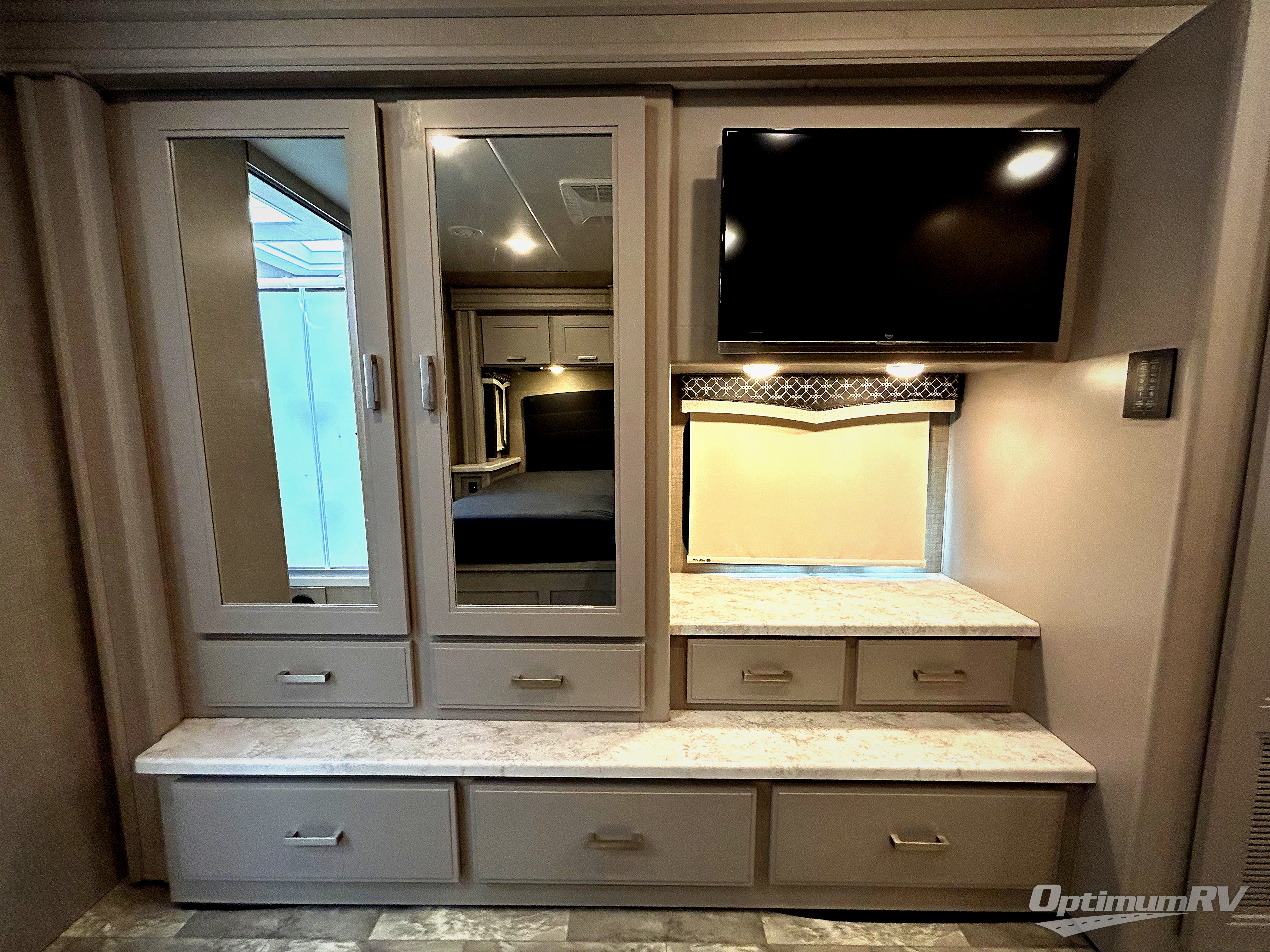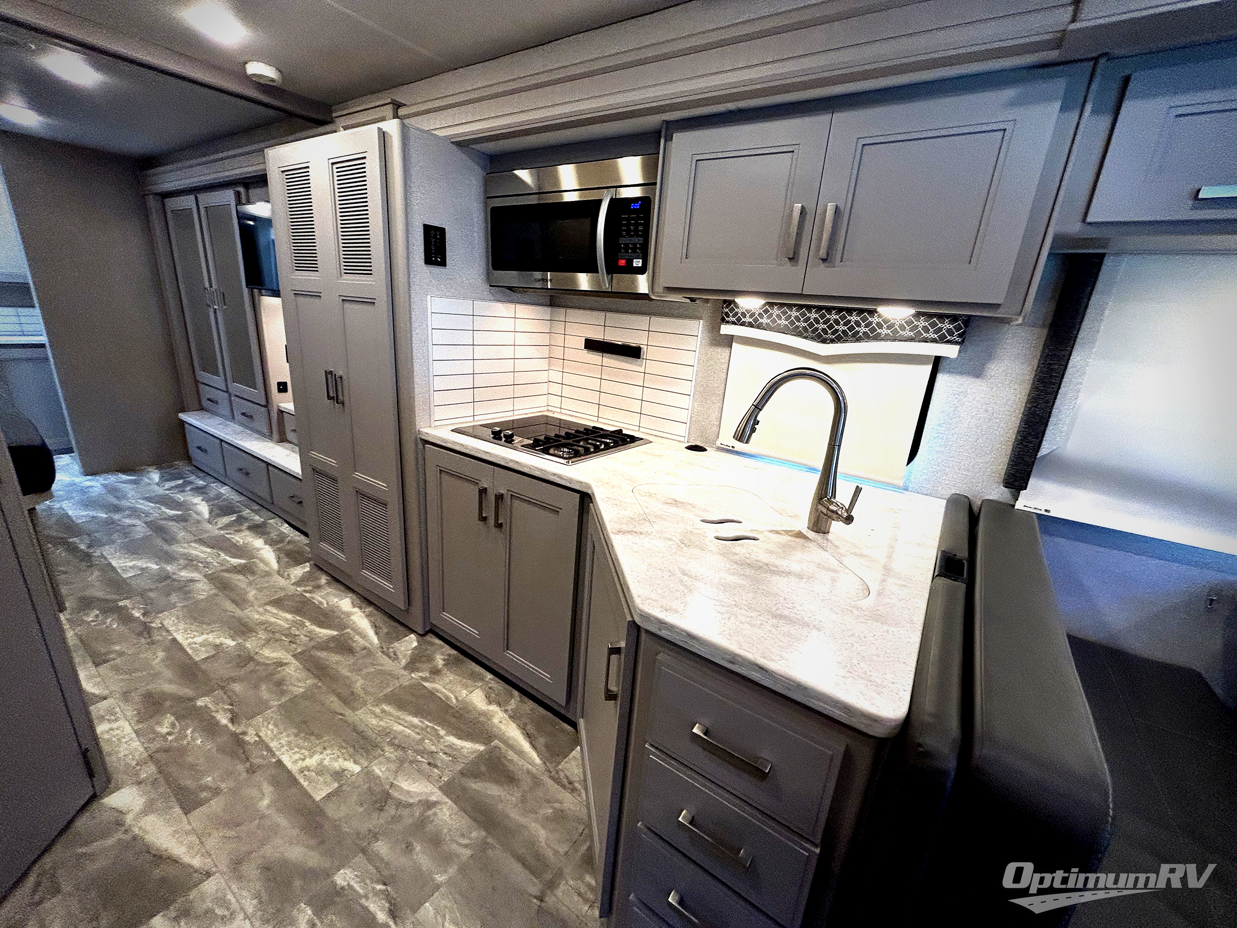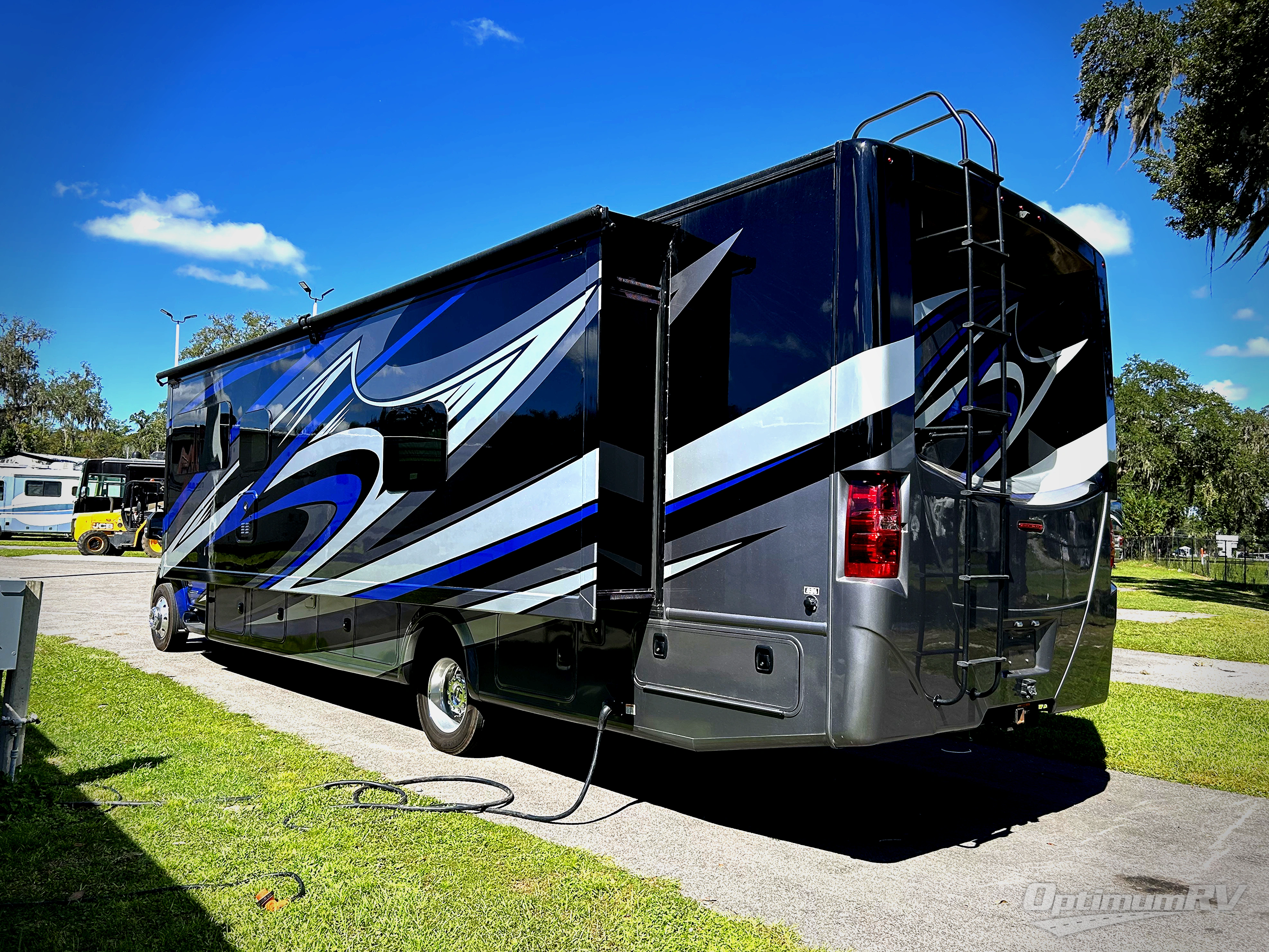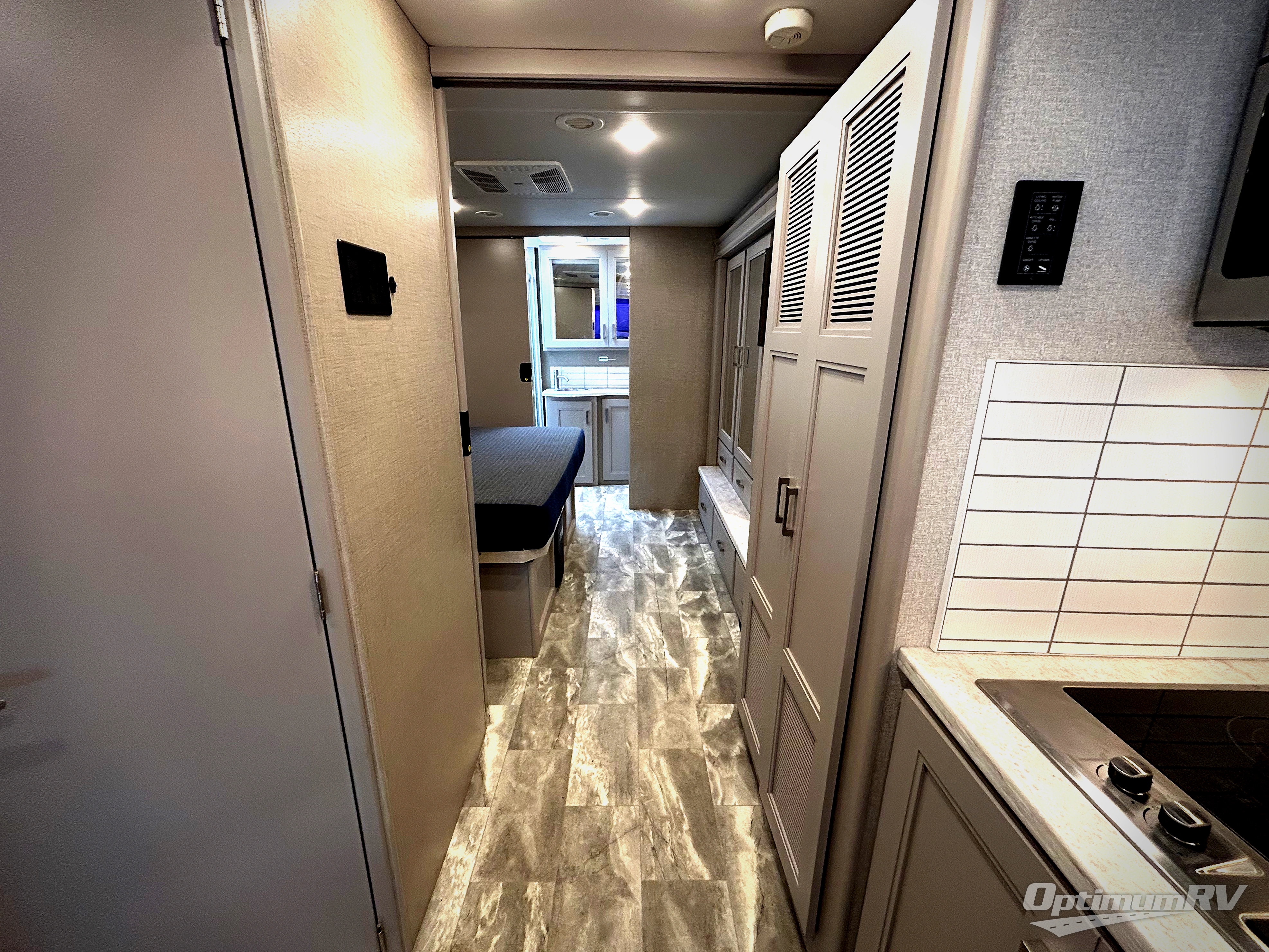 The Omni Super C diesel motorhome by Thor Motor Coach starts with a durable welded tubular steel floor, vacu-bond laminated roof, walls, and floors with block foam insulation, and a full-body paint package with gel-coat sidewalls. Each model includes either a F550 or F600 Power Stroke 4 x 4 Turbo Diesel engine that will allow you to maneuver tougher terrain when the adventure calls for it. The cockpit is every captain's dream with its power adjustable driver's seat, side view and back-up camera system, heated remote exterior mirrors, and more. You can control all of your coach's functions with the RapidCamp+ multiplex wiring control system, and the Winegard ConnecT Wi-Fi extender with 4G will allow you to say in touch with the outside world as you travel. Each model includes residential linoleum throughout, Leatherette furniture, solid surface countertops in the kitchen, and a glass shower door for that added touch of luxury. Come see all the other great features the Omni Super C diesel motorhome has to offer!