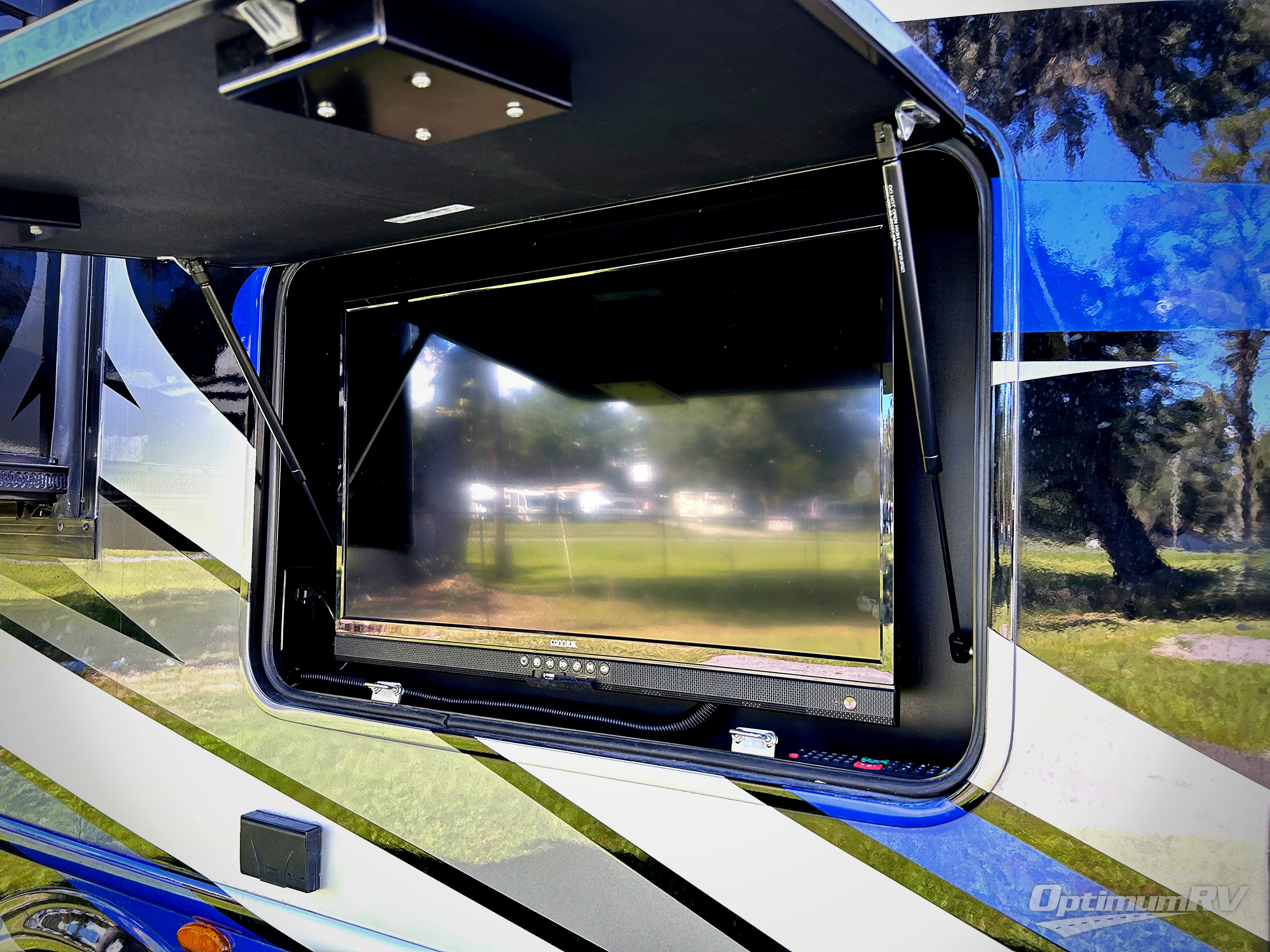 The first thing you'll notice about this Omni Super C diesel motorhome is the amount of interior living space it incorporates with its full-wall slide and second slide out in the bedroom! The other thing you'll notice is that this coach has loads of entertainment with its three TVs, and there is also great convenience with the full and half bathroom. Since the full bathroom is located back within the master suite, you'll be able to live in great luxury. You won't have to live alone, though, because the 59" x 80" bunk over the cab and the 70" Dream Dinette will provide extra sleeping space for anyone that you want to join you. Whoever gets the opportunity to sleep on the bunk above the cab will also enjoy using the powered sky view shade overhead.