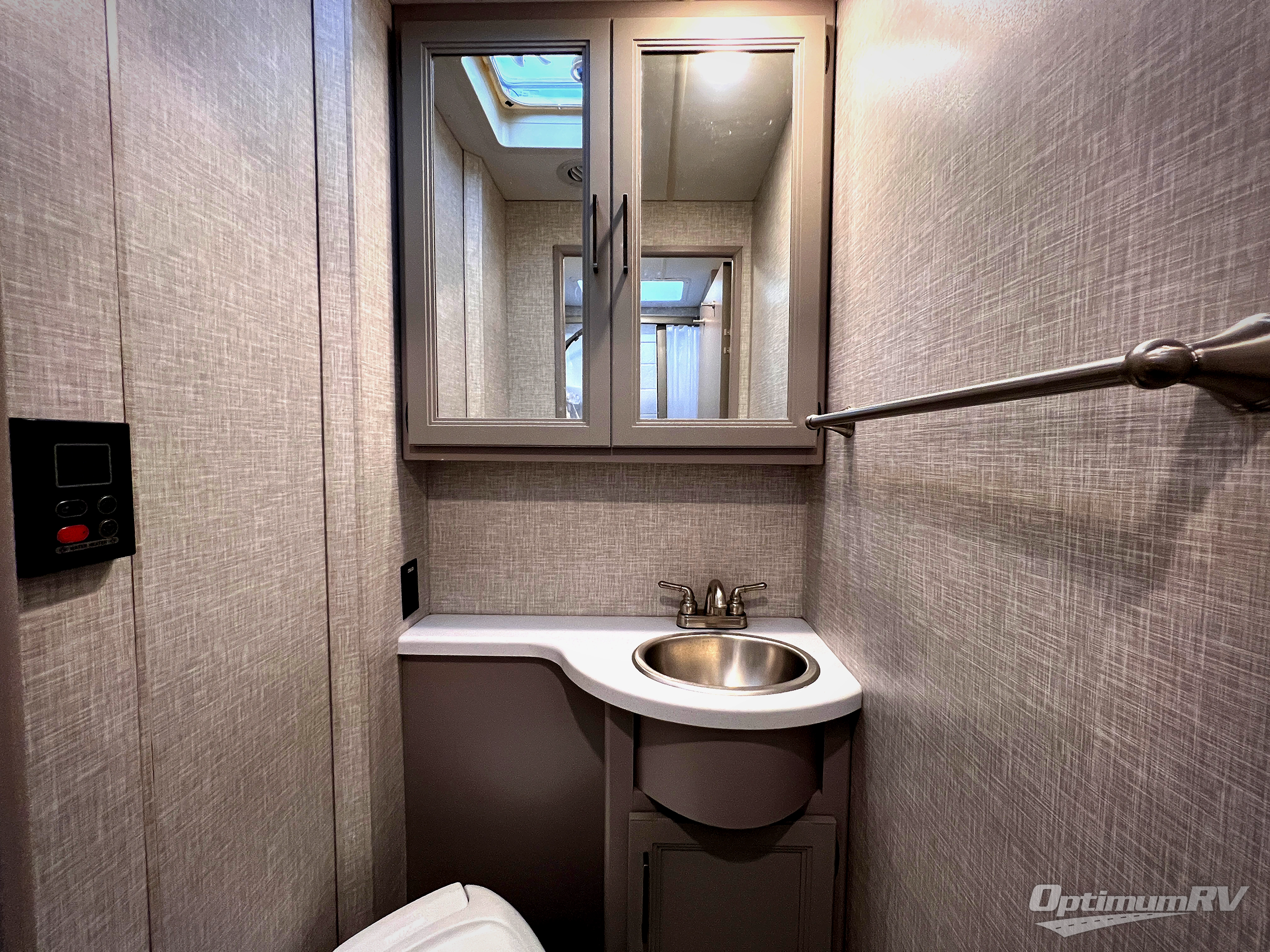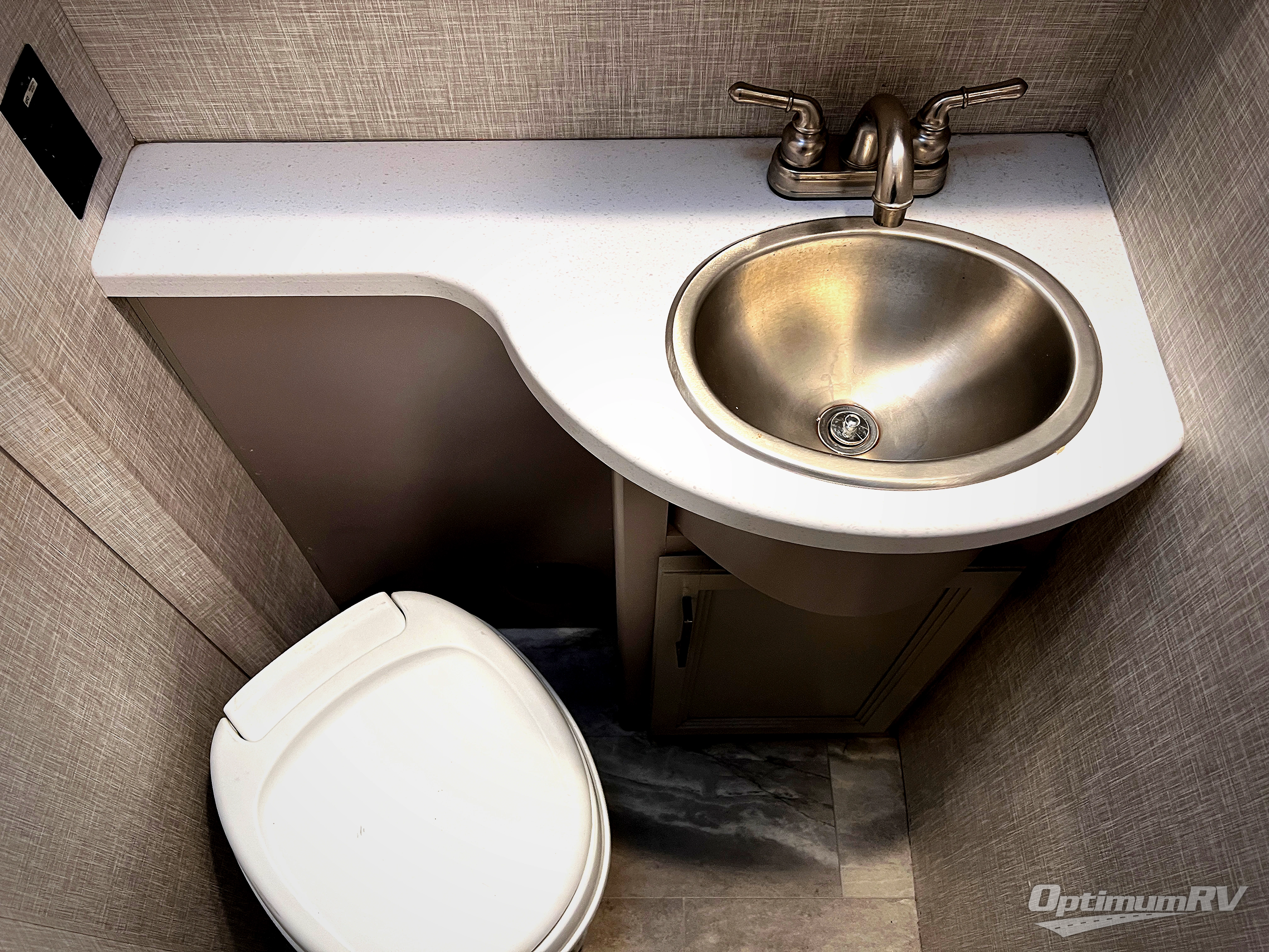 It won't take long to feel right at home in this cozy motorhome. Once you arrive at your destination, you can swivel your captain's seats around to the living area, and enjoy a cold drink with the removable cockpit table. There is also theater seating with footrests and a 39" TV in perfect view so you can watch your favorite movies. The chef of your group can prepare lunch on the two burner gas cooktop, while someone else is preparing a fresh salad on the flip-up countertop. This model includes a booth dinette to dine at each day, or you can take your plate outdoors to sit under the 14' power awning. The private toilet and sink with the shower across the hall allow two people to fresh up at once, and this model includes a rear bedroom you are sure to love. Here, you can rest soundly on the full-size bed, watch a late-night movie on 32" bedroom TV, and store your clothes in the large closet!