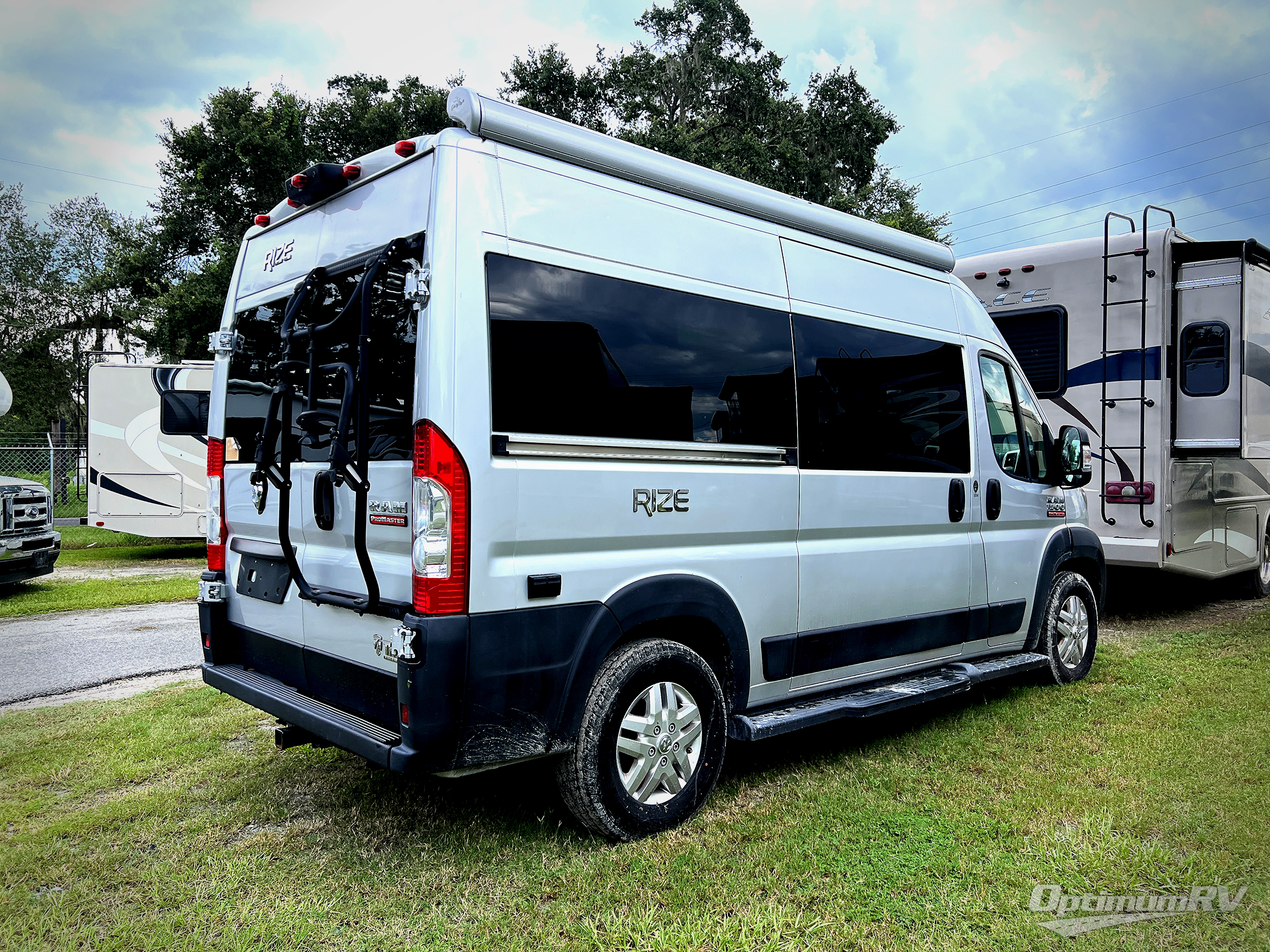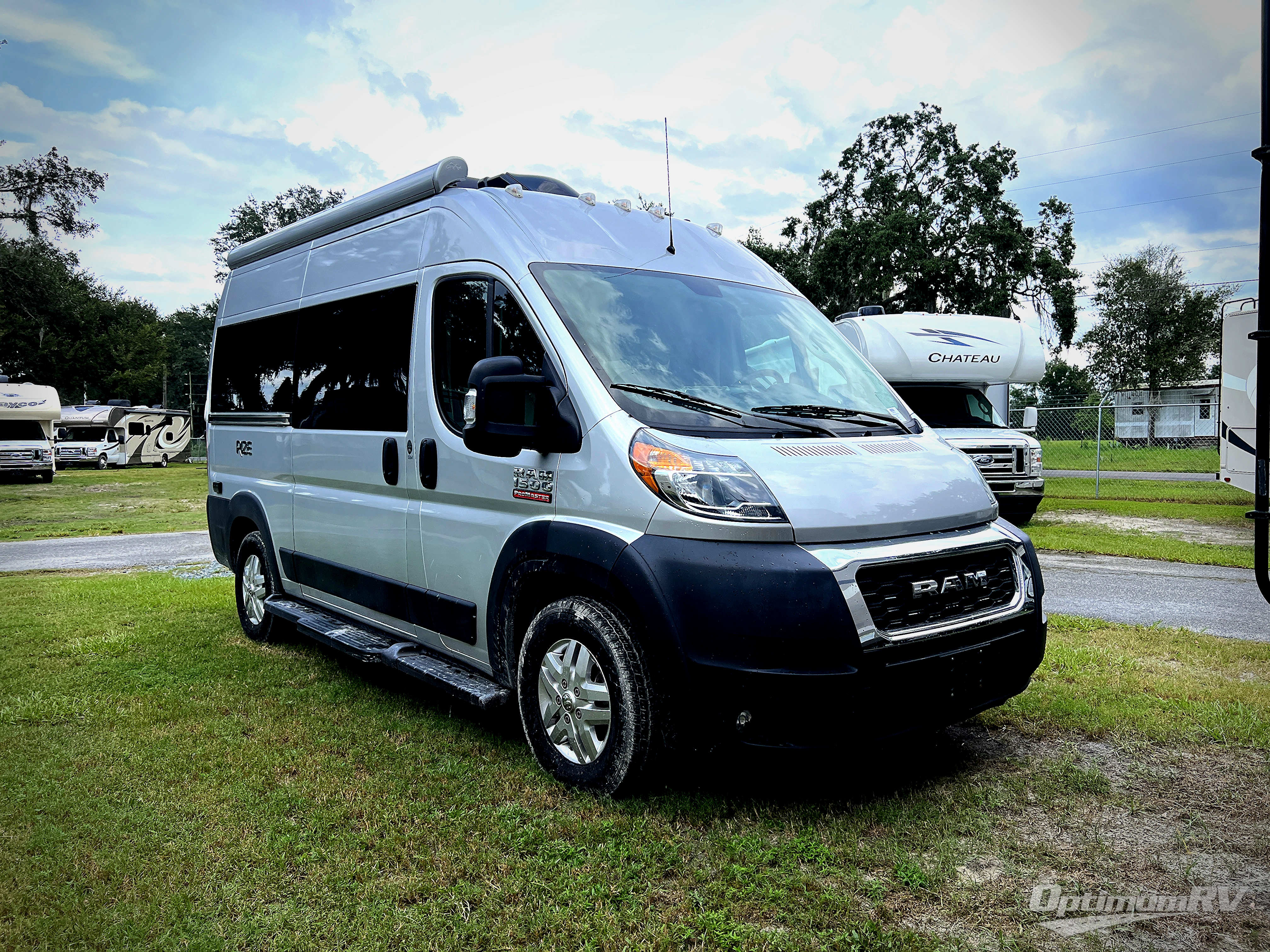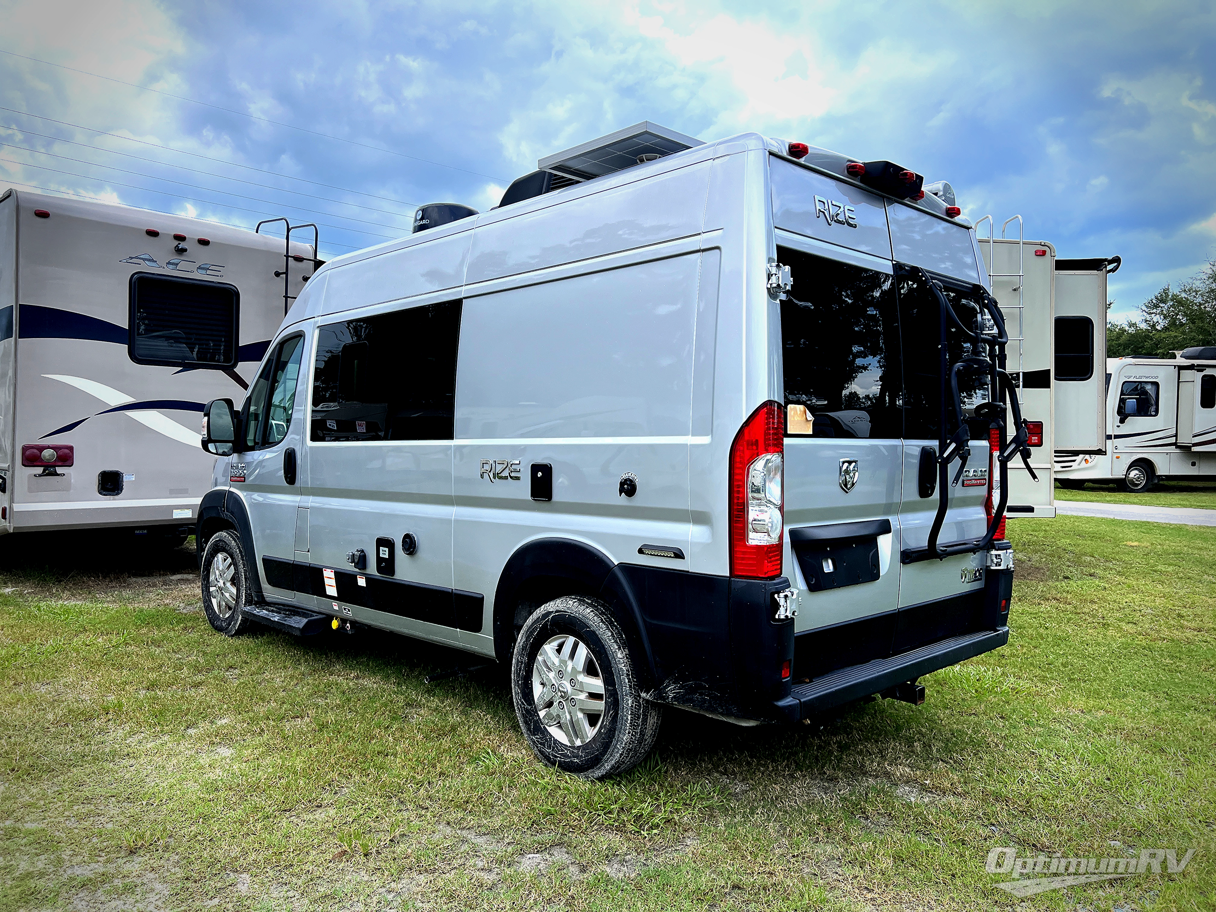 The Rize Class B gas motorhome by Thor Motor Coach allows you to experience the camping lifestyle in a compact RV packed with convenient features. There is a 3.6L Pentastar V6 engine and 280HP to power your excursions, and the outdoor enthusiast will love the 190W solar panel and solar charge controller. Each model includes residential vinyl flooring, TechnoForm Euro-style upper cabinet doors, and premium window privacy shades. You'll find pressed countertops in the kitchen and a glass protective cover and task lighting above the cooktop to easily cook meals each day. The keyless entry system adds to the convenience found throughout these models, plus there is an exterior LP connection if you want to hook up your own grill and a rear water sprayer to wash off your hiking boots.