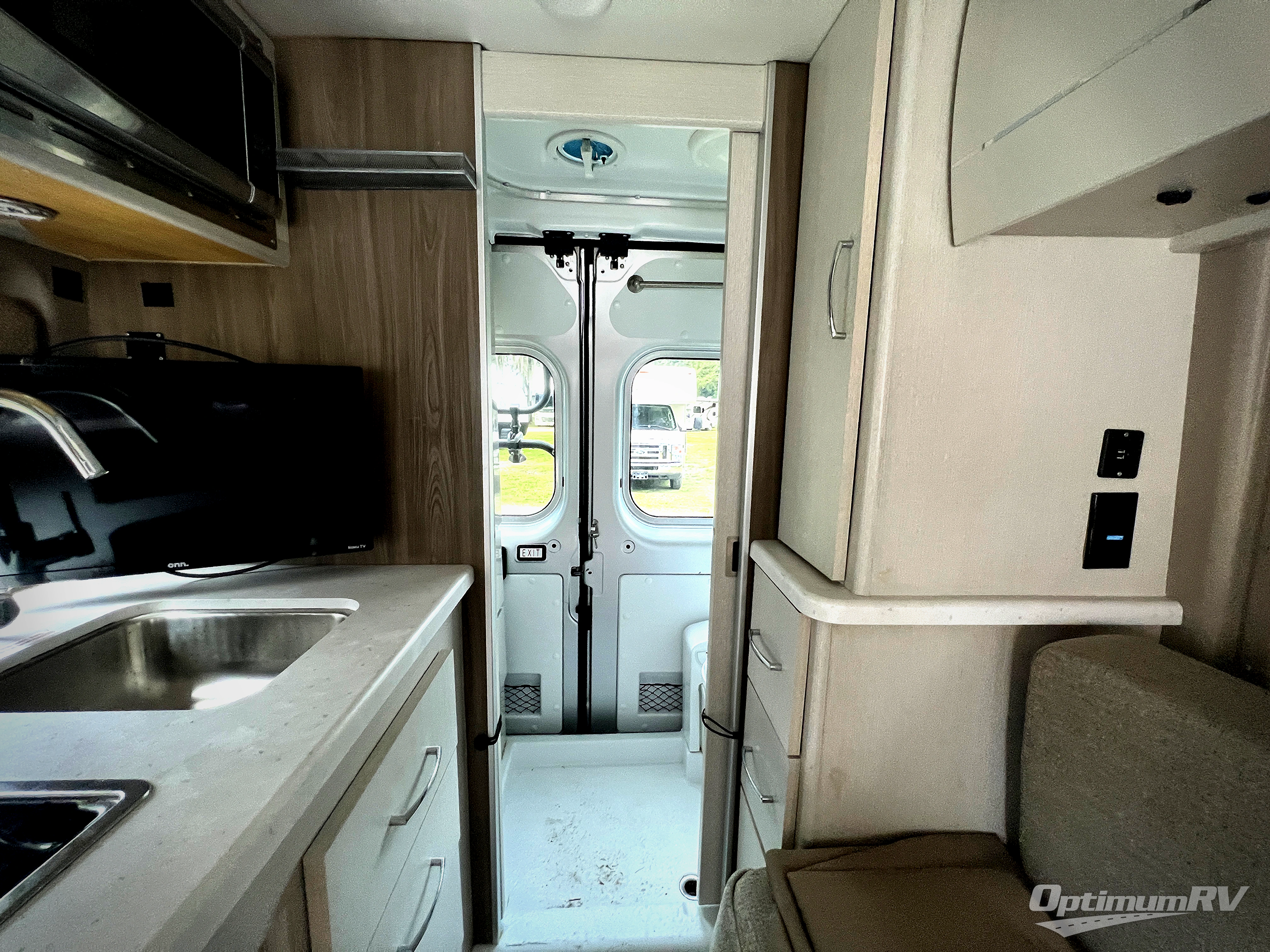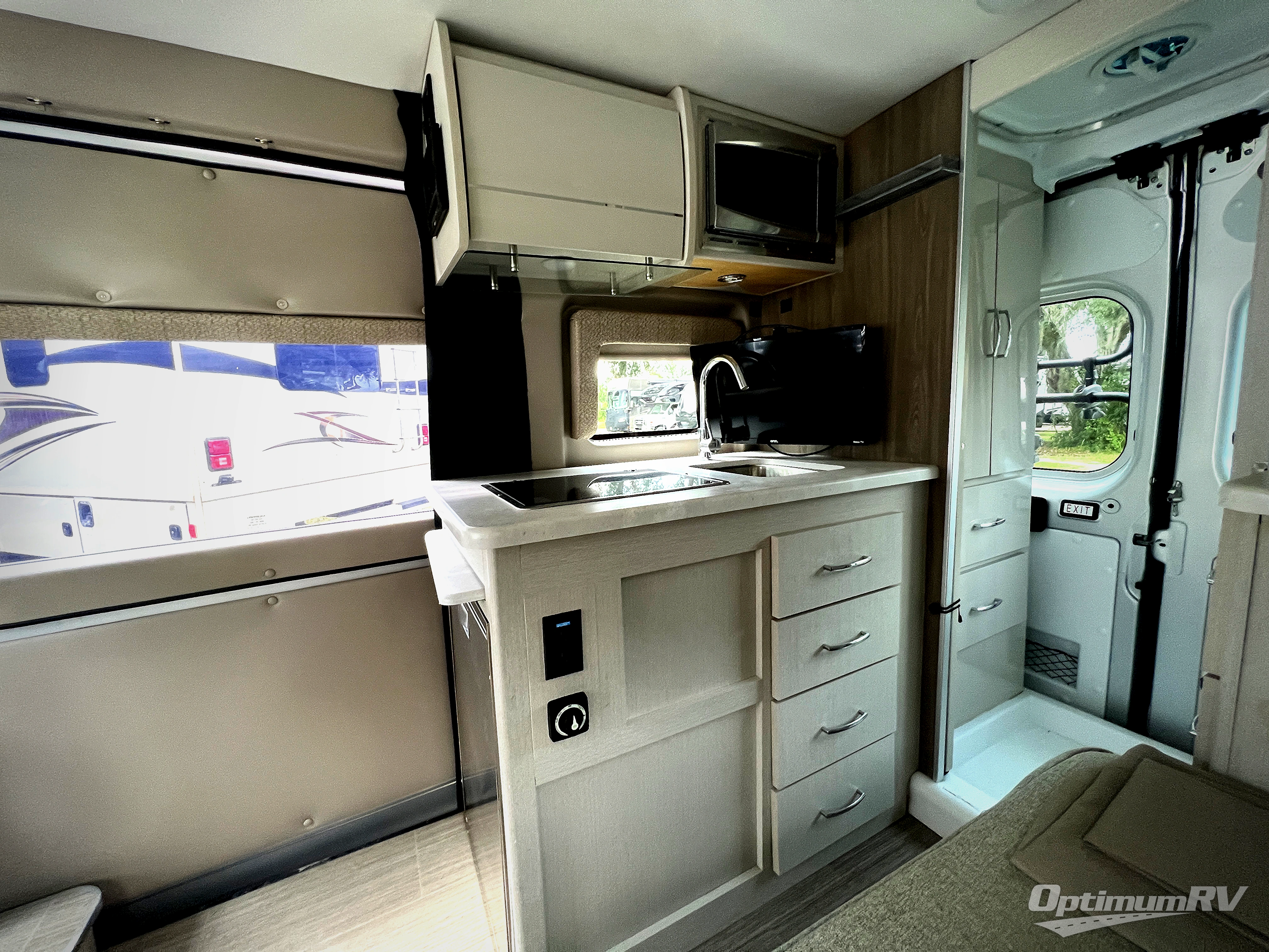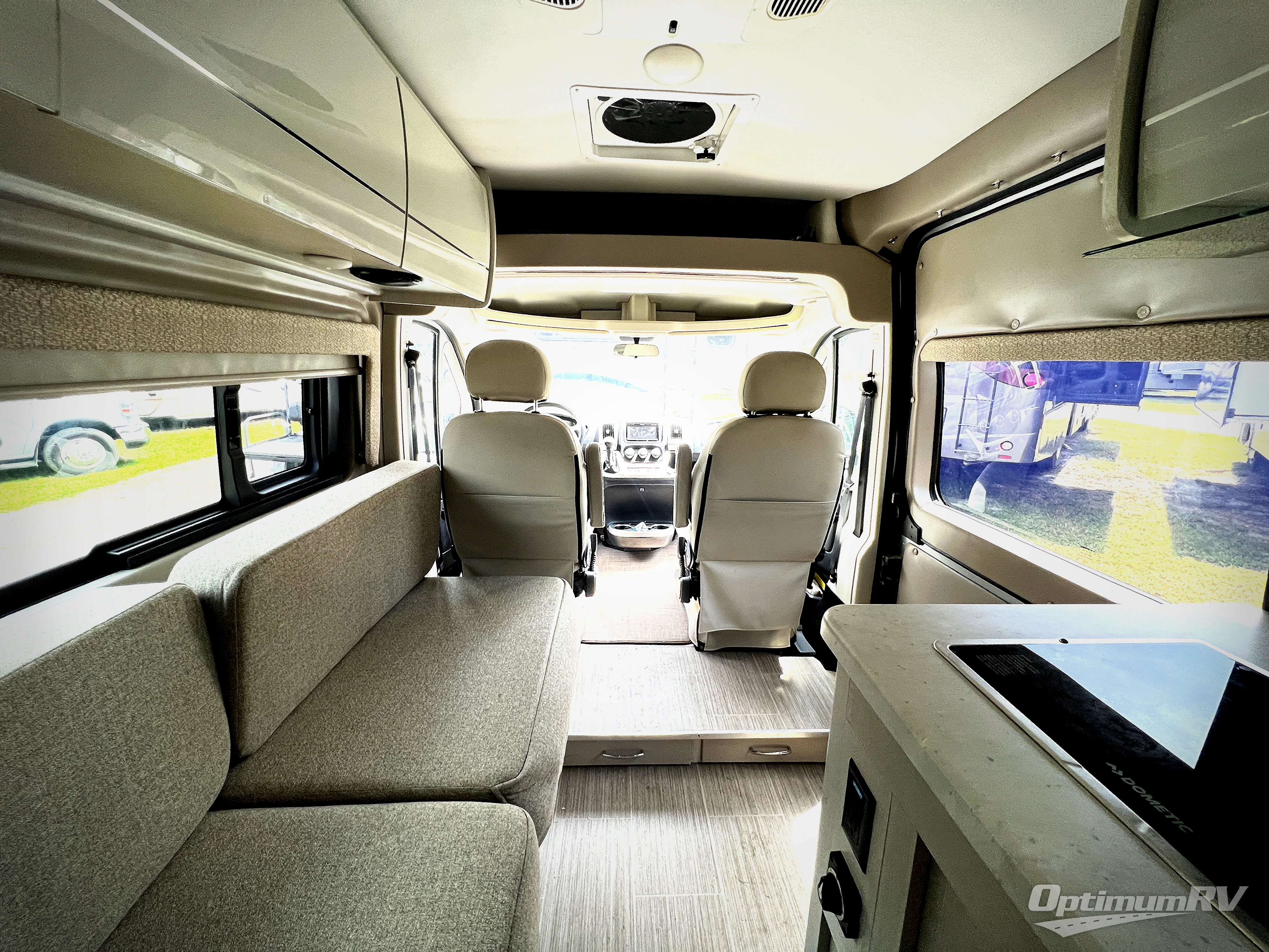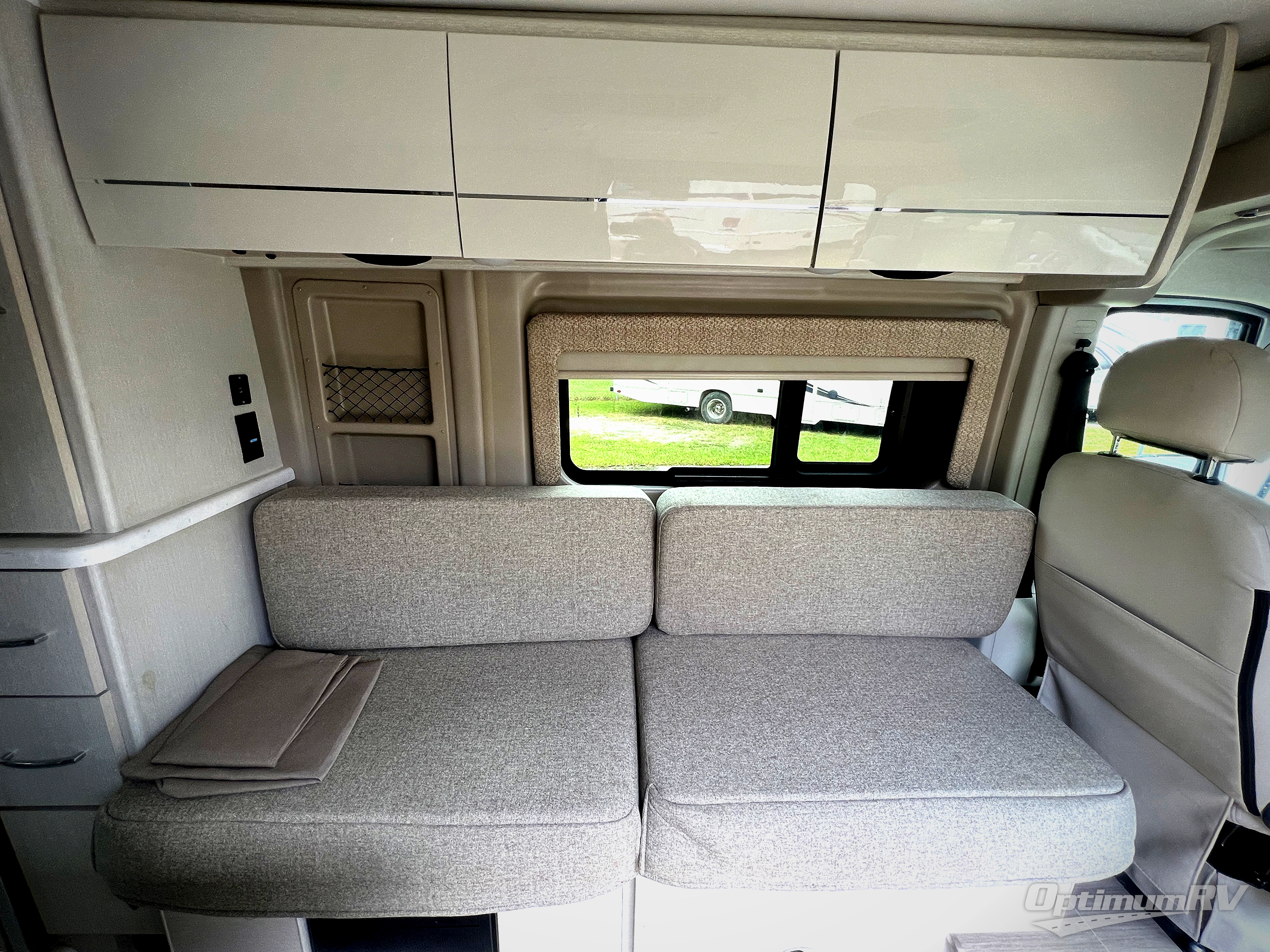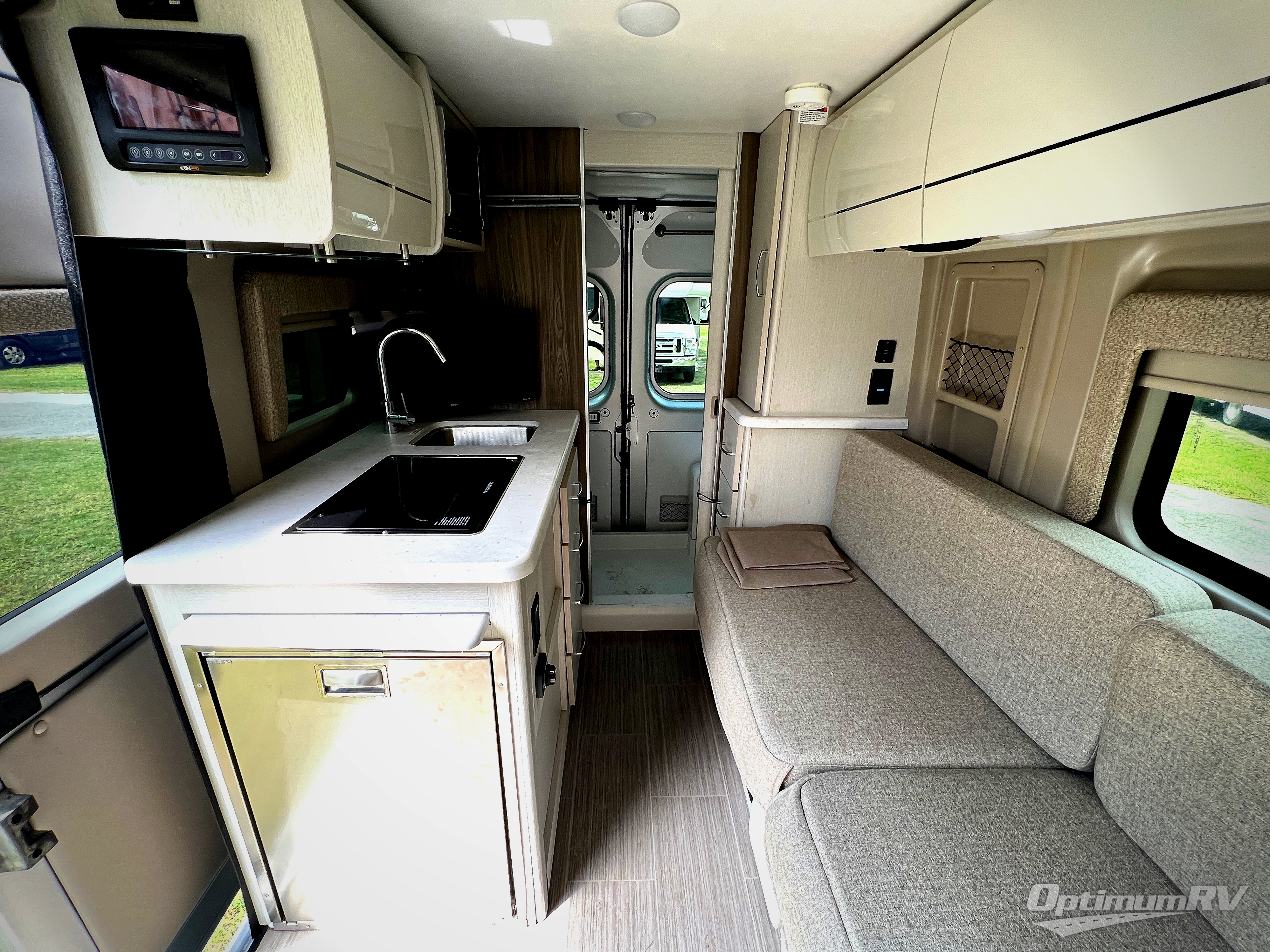 This coach is the perfect home on wheels for all your adventures. You will have everything you need, including a wet bath with a cassette toilet and pocket doors to save space. The Winegard ConnecT 2.0 4G/Wi-Fi/Digital TV antenna allows you to stay connected to the outside world. Once you have prepared breakfast on the two-burner gas cooktop, you can dine on the sofa with a removable table. This area can then be your sleeping space at night since the sofa converts into a pull-out bed. Whether you're enjoying the fresh air let in by the large opening side windows, or you're sipping on a cold drink under the electric awning, you will love everything about this coach!