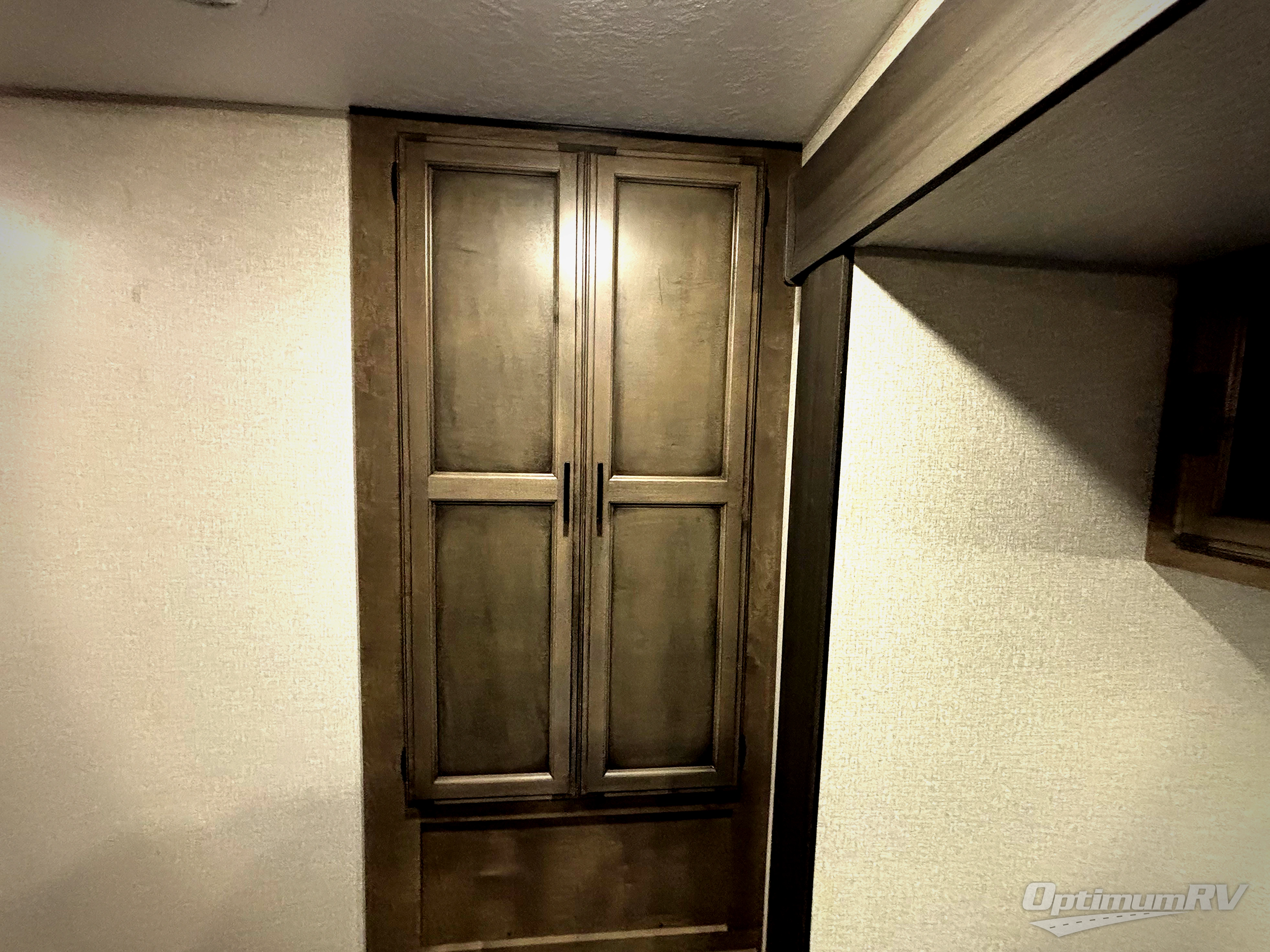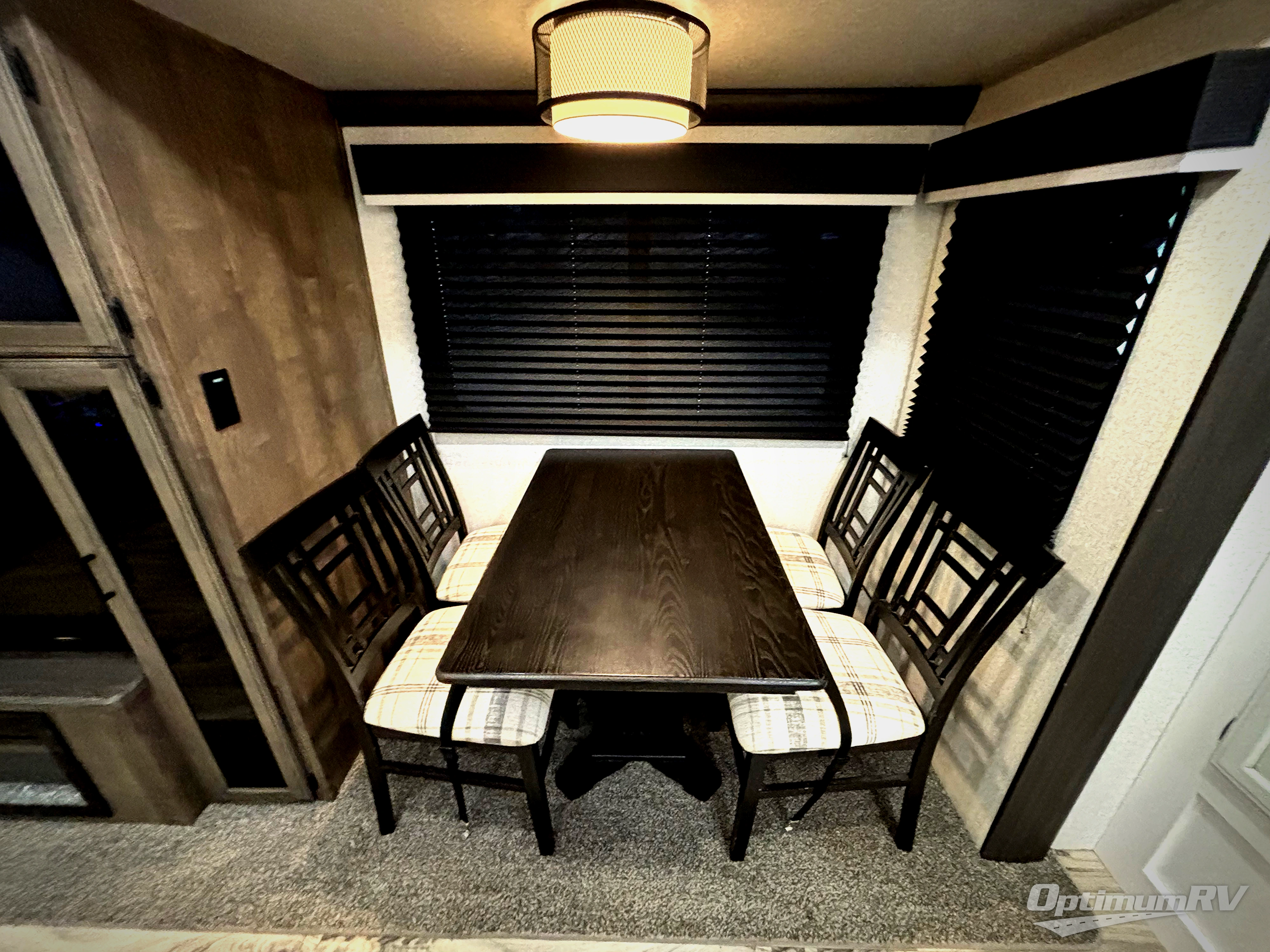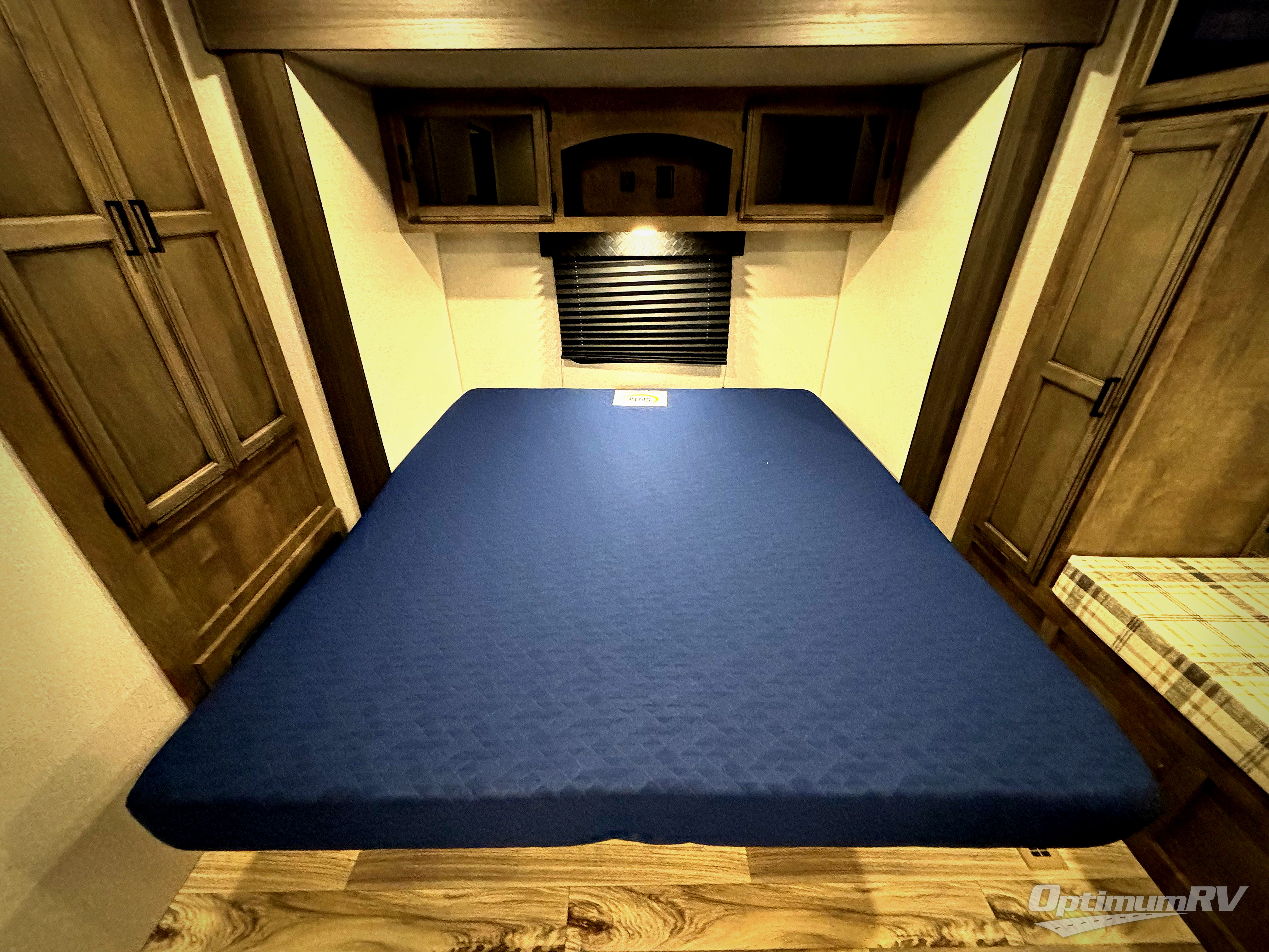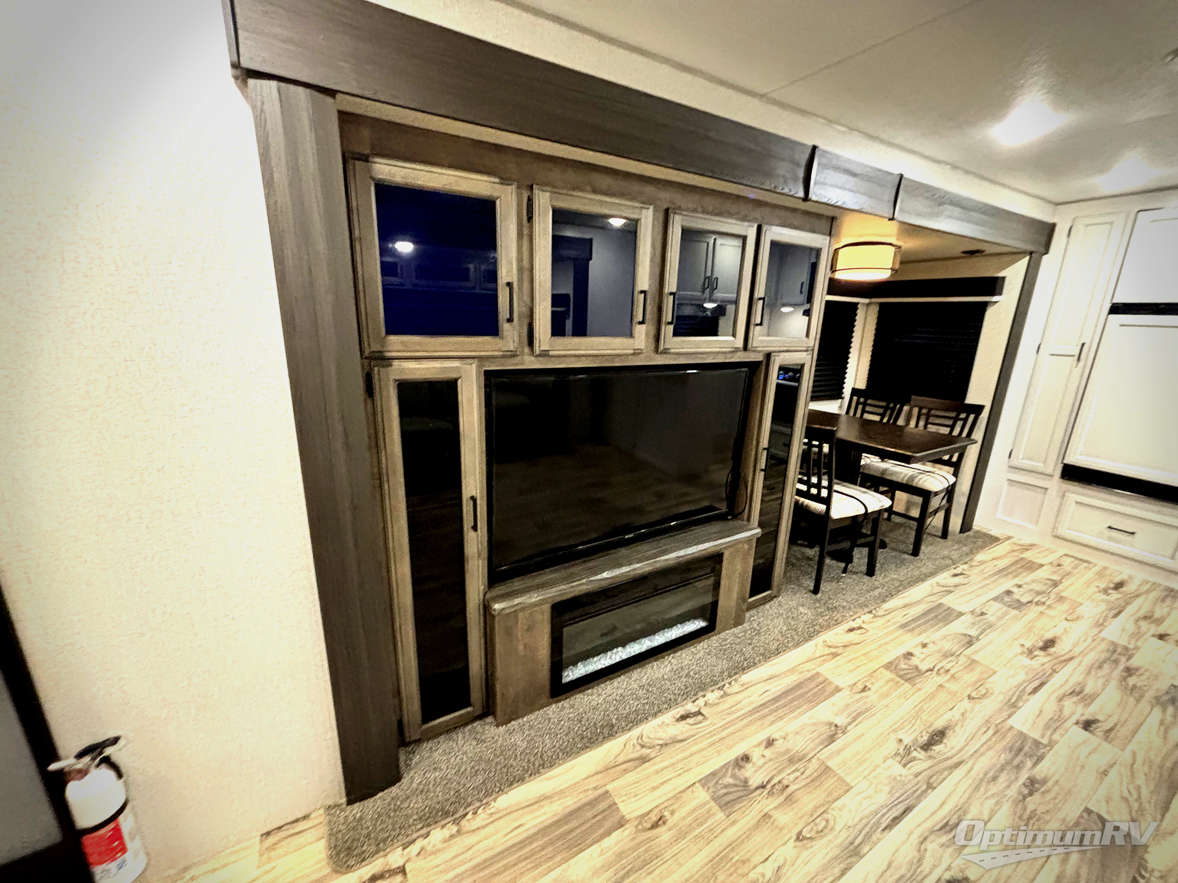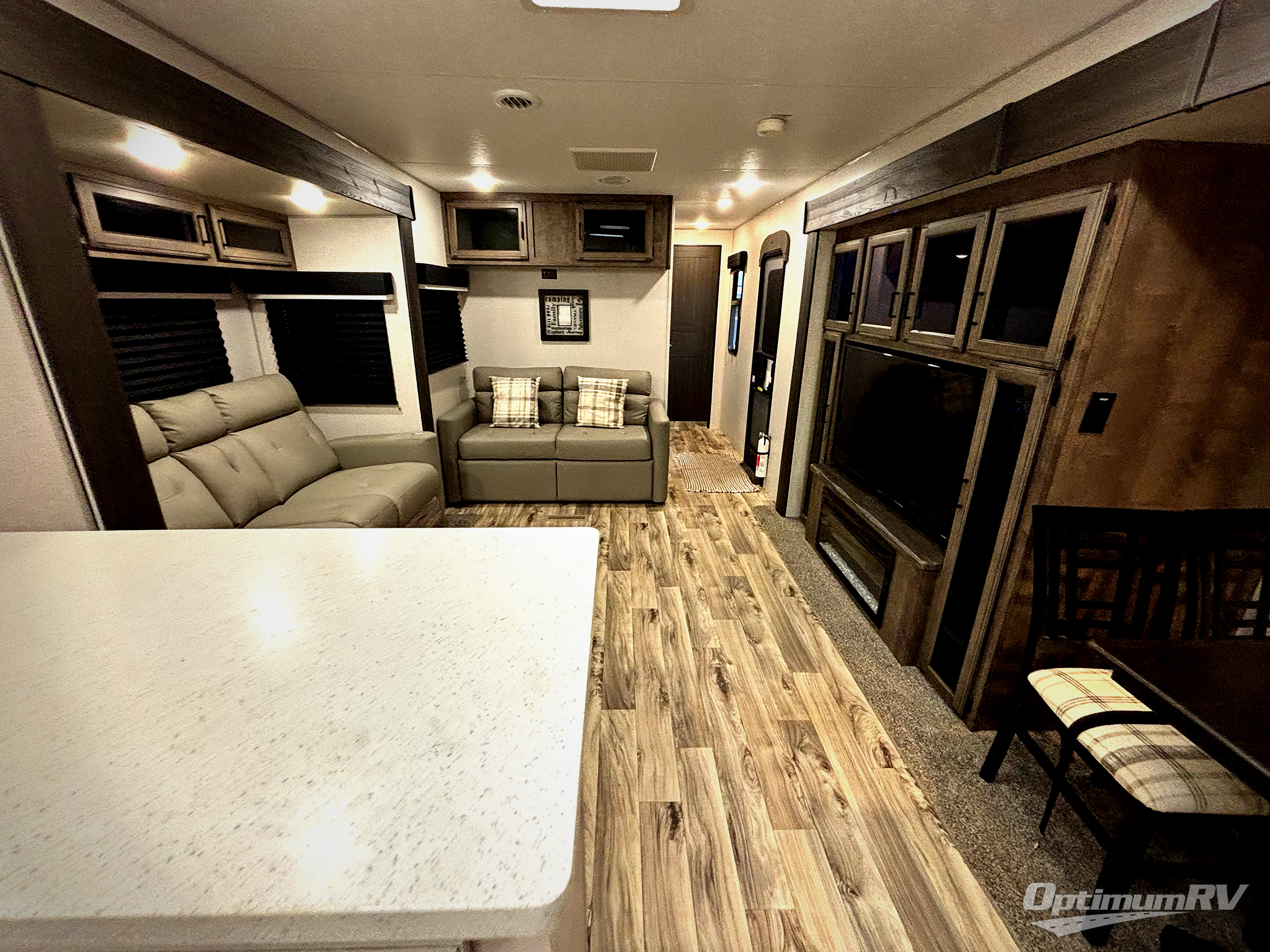 It's a clean decision with a bath and a half to take this travel trailer on your next camping trip! The rear private bunkhouse is decked out with a 28" x 70" bunk bed, a 32" x 70" top bunk, a 28" x 73" flip-up bunk above a 72" sofa with table, and a flip desk to do some school work. The half bathroom has an entrance/exit door so you can get back to cooking at the outdoor campfire café which has two 3 cu. ft. refrigerators, a sink, a griddle, and storage. Your clean up will be a breeze thanks to the kitchen island with a large sink and dish drying sink cover. If you need extra sleeping space then simply convert the 42" grand dinette and 70" sofa into sleeping spaces. Those staying in the front private bedroom will enjoy a good night's rest on the sleep tight queen bed and have the convenience of accessing the dual entry bathroom!
