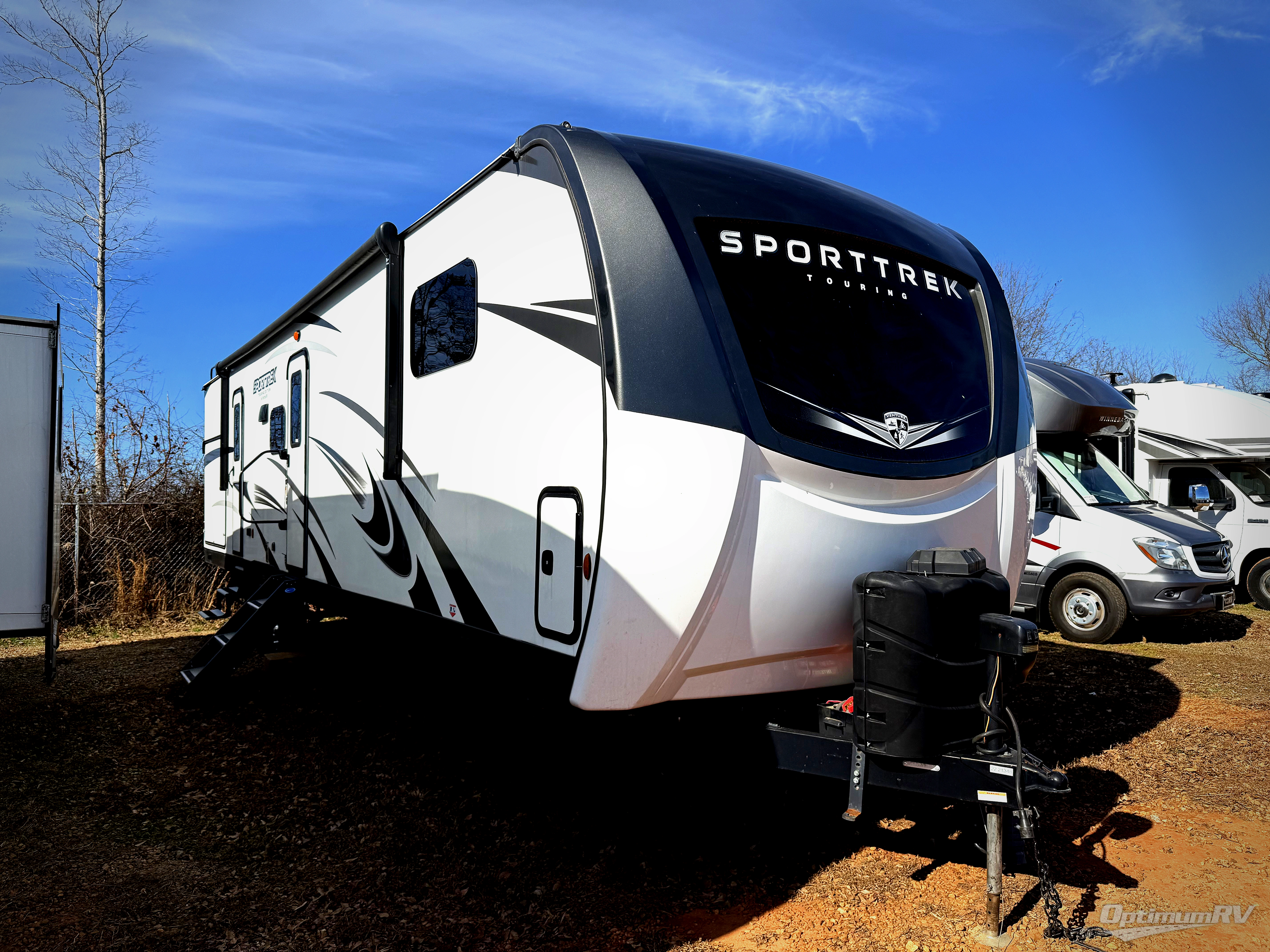 An elegant design and new features come with every one of these Venture RV SportTrek Touring Edition travel trailers! The NXG Huck bolt frame holds these units together and a walkable roof covers them. Heads will turn down the highway and at the campsite with an upgraded graphics package and a painted fiberglass front cap with integrated LED light. The exterior pass-through storage area has slam latch baggage doors with magnetic catches so you don't have to worry about them closing on you and a motion activated light to see your items clearly even at night. Luxury abounds throughout these units, especially with the mandatory Interior Luxury package which comes with washer and dryer prep (varies by model), two 30" frameless fireplaces, and Beauflor wood plank flooring that is easy to clean. Come find your favorite model today!
