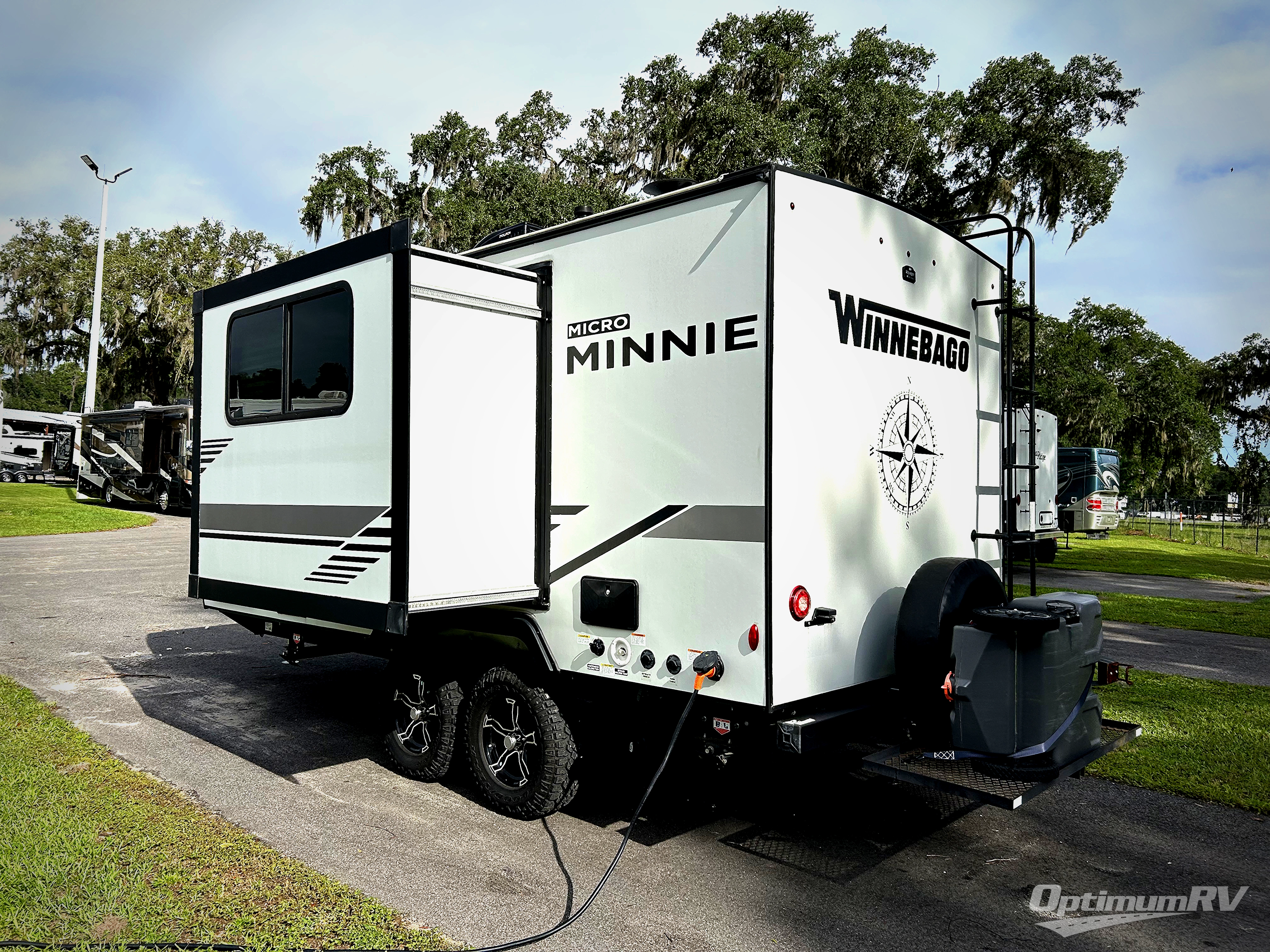 Start out on your boundless journey in one of these Winnebago Industries Towables Micro Minnie travel trailers! Towing is made simple with the 7' width to keep your Micro Minnie in your rear-view mirror. They don't lack in features either although they are compact in size. The spacious galley including a sink, refrigerator, two burner cooktop, and even a microwave oven allows you to cook without compromise. You will not only enjoy the entertainment found indoors with an LED TV, a JBL premium sound system and Aura Cube high performance mechless media center, but outdoors you will also enjoy the JBL premium speakers and a power awning with LED lighting. Each model also comes with flexible exterior storage to make packing quick and easy. What are you waiting for, come choose your model today!