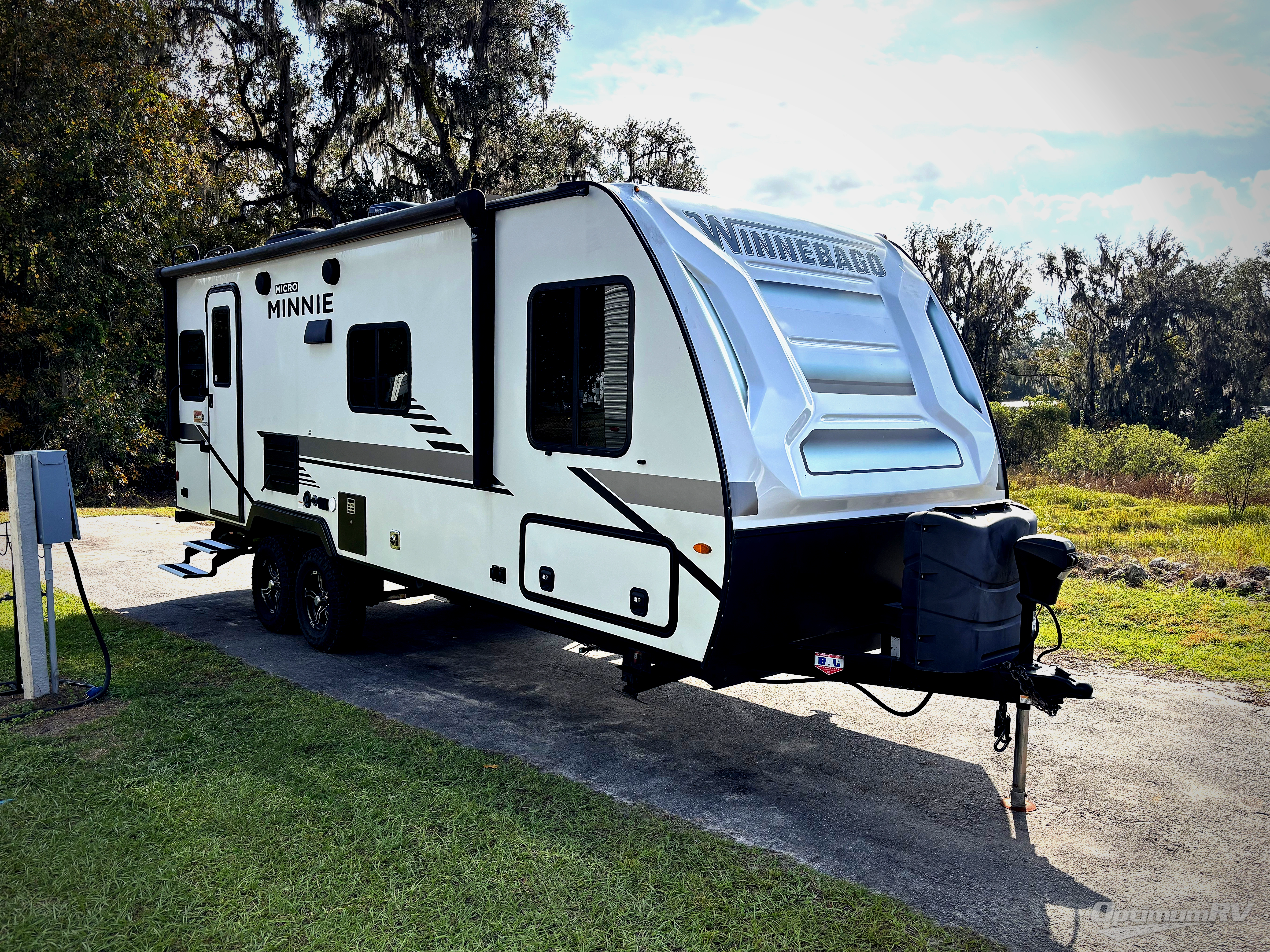 Start out on your boundless journey in one of these Winnebago Industries Towables Micro Minnie travel trailers! Towing is made simple with the 7' width to keep your Micro Minnie in your rear-view mirror. They don't lack in features either although they are compact in size. The spacious galley including a sink, refrigerator, two burner cooktop, and even a microwave oven allows you to cook without compromise. You will not only enjoy the entertainment found indoors with an LED TV, a JBL premium sound system and Aura Cube high performance mechless media center, but outdoors you will also enjoy the JBL premium speakers and a power awning with LED lighting. Each model also comes with flexible exterior storage to make packing quick and easy. What are you waiting for, come choose your model today!