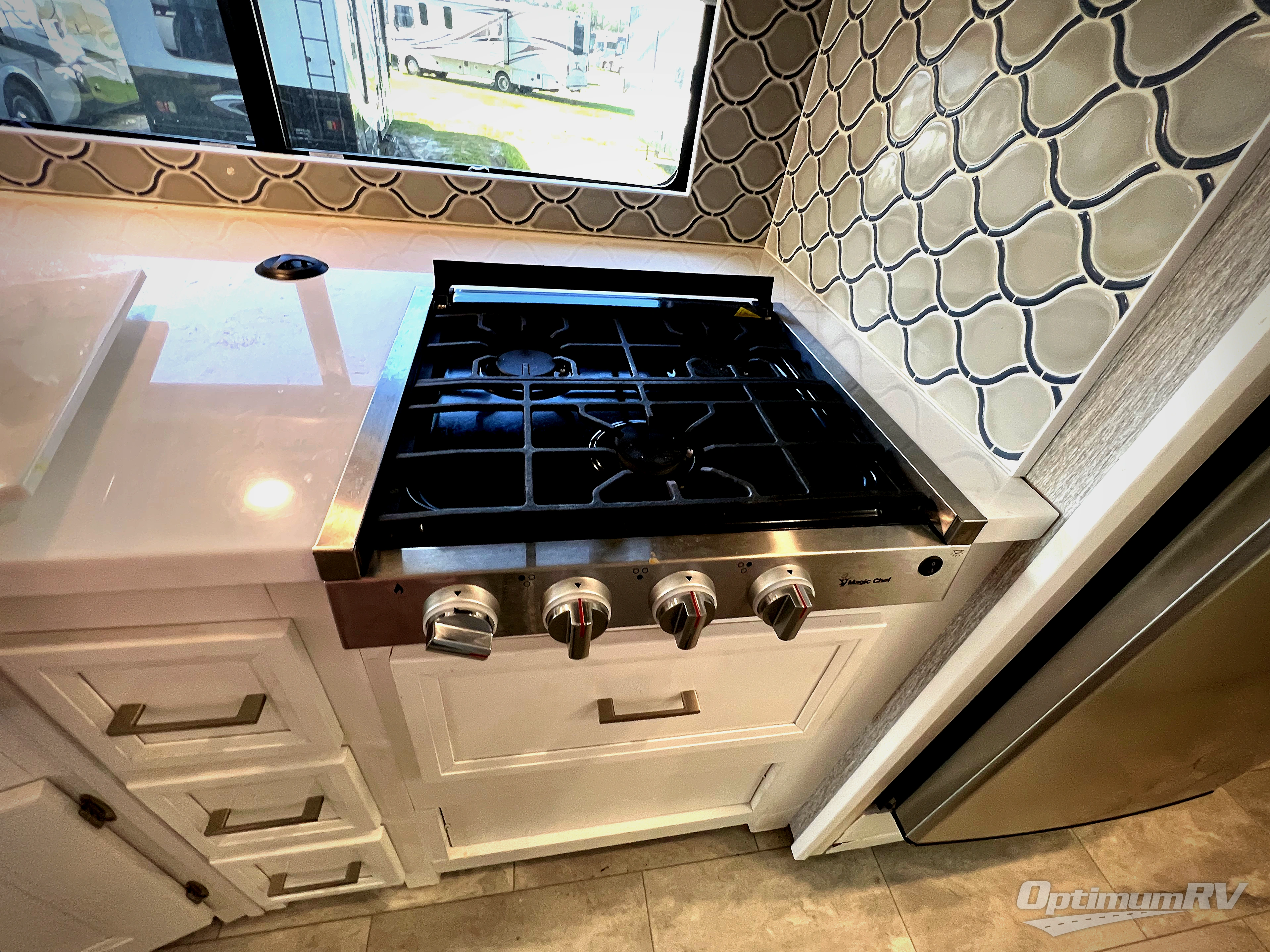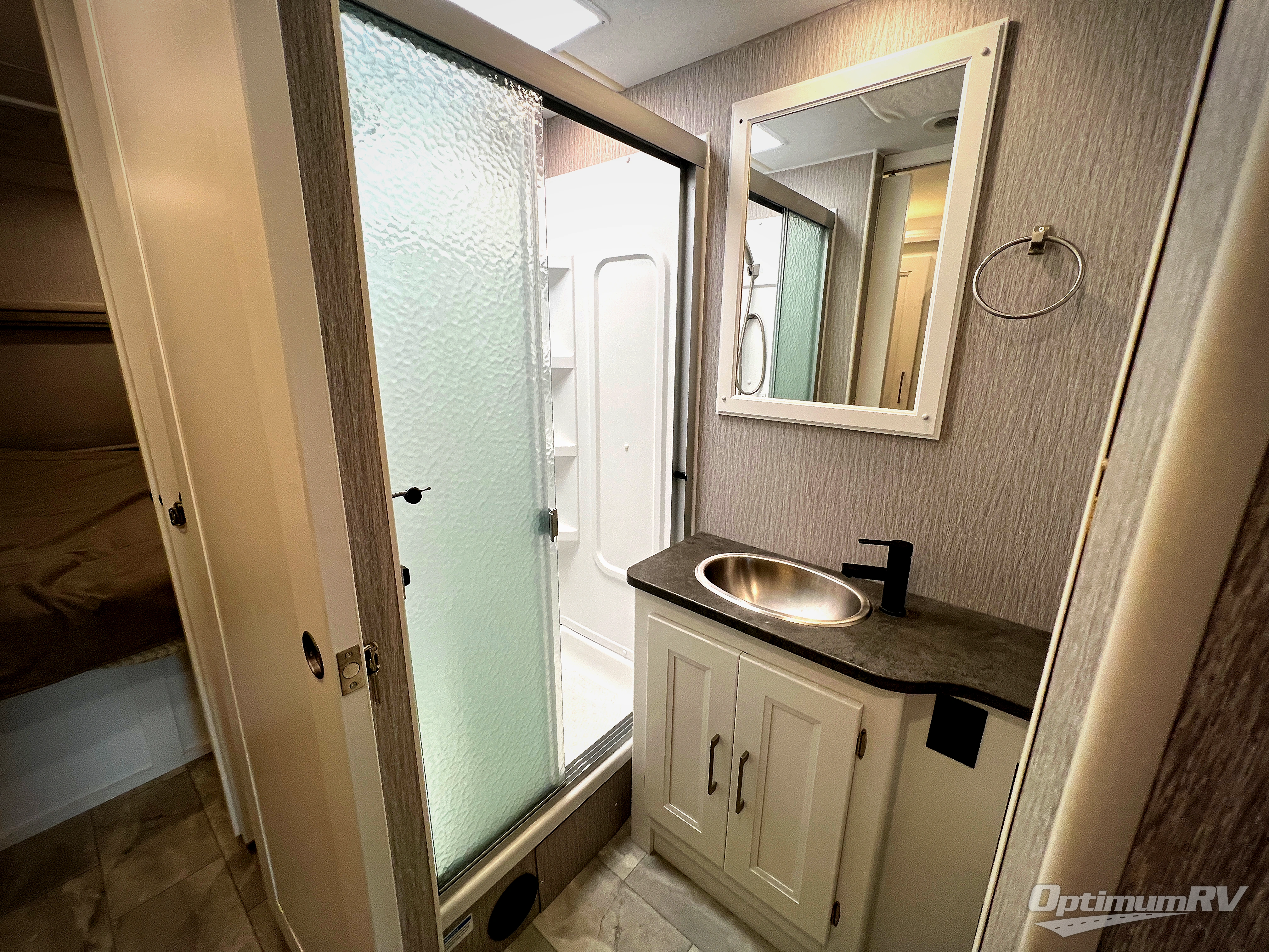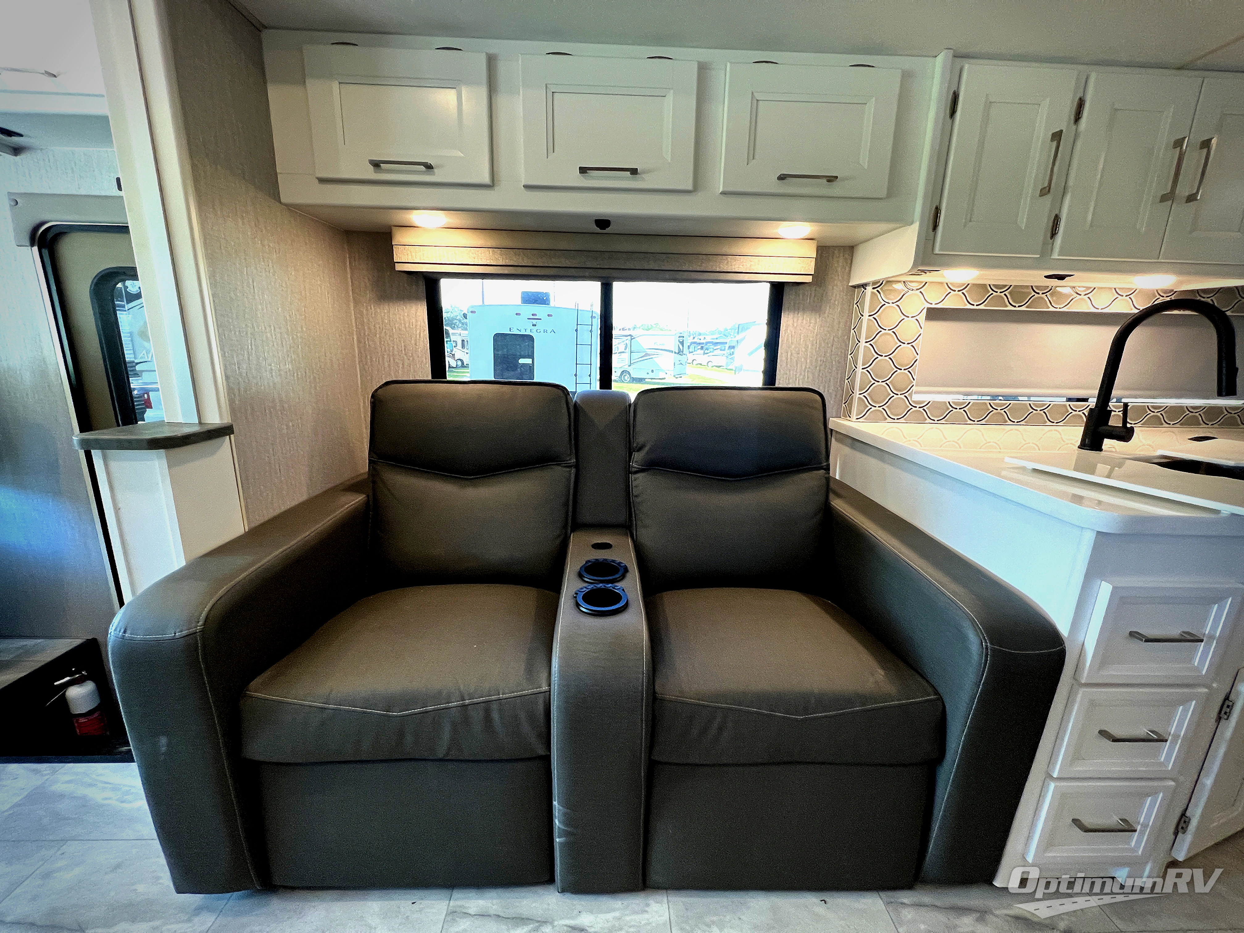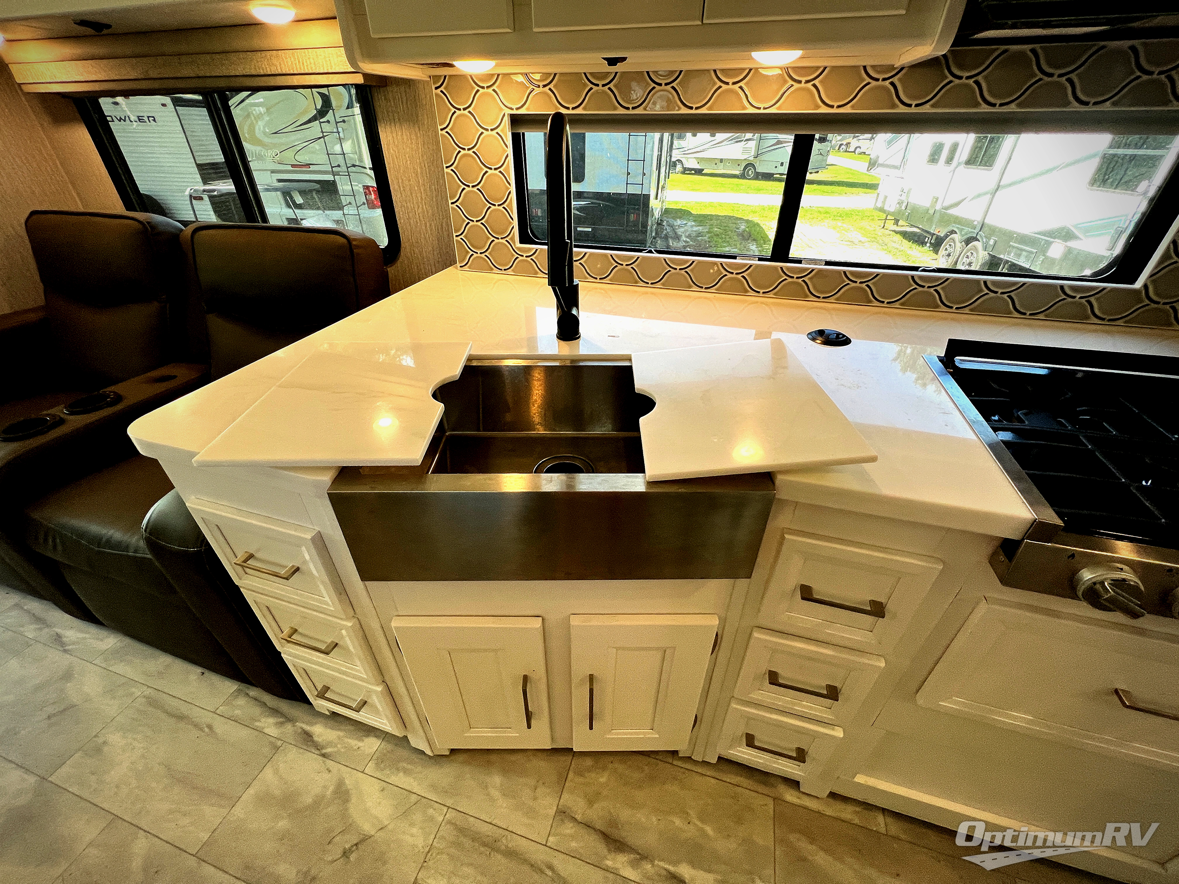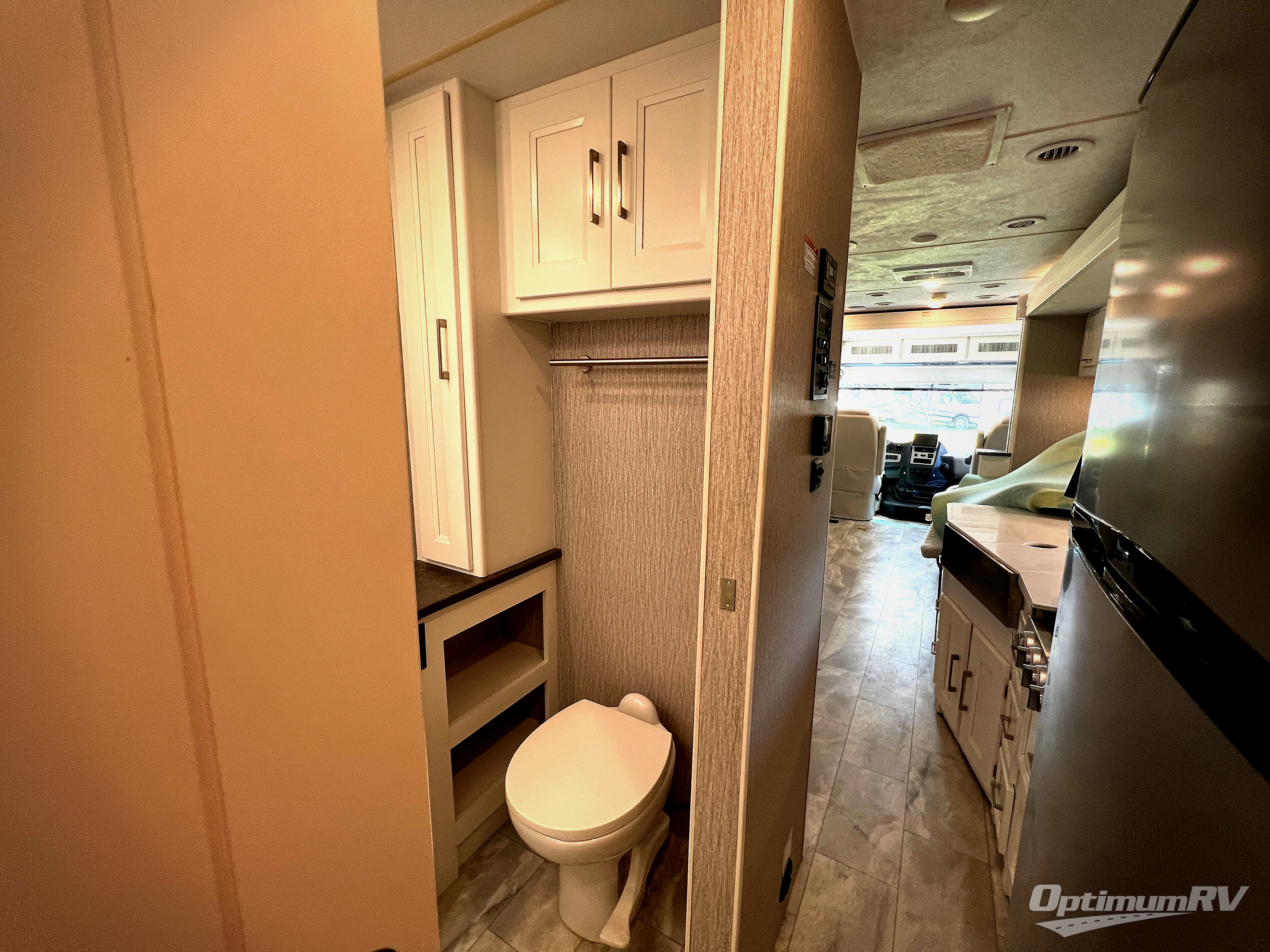 You won't even feel like you're on the road with this motorhome! The fully equipped kitchen has everything you need to prepare your delicious meals including a farm sink for easy clean up. There is a 42" x 76" booth dinette to enjoy your meals at then play a card game or two before relaxing on the 68" sofa bed. You can also add optional power theater seating for more seating space to watch movies with the 40" LED TV. If you need to get some work done while you're away then you can easily do so at the computer work station in front of the passenger seat. After a long day of traveling, you can get refreshed in the full bathroom featuring a 38" x 24" shower and if you add the optional stackable washer and dryer you can even do a load of laundry. You will be able to get a good night's rest each night sleeping on the 70" x 74" king bed with storage system and CPAP station above it!