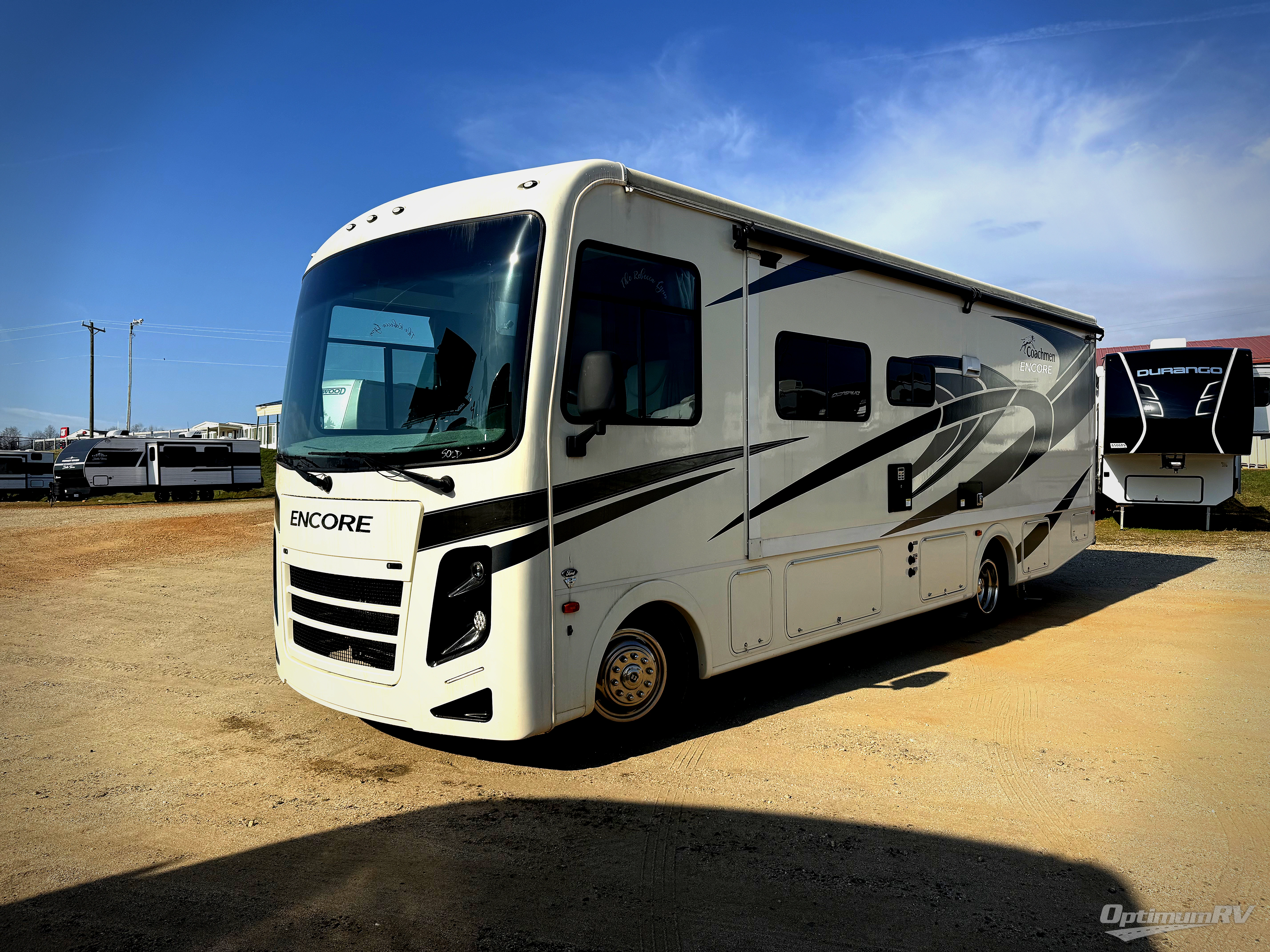 With an Encore SE Class A gas motorhome by Coachmen you will enjoy all of your travels. The high gloss gelcoat sidewalls include Azdel superlite composite for maximum durability. Outside, you will find exterior storage for all of your gear, a power patio awning, slide-out room awning, a 20 gallon LP tank, and fully automatic leveling jacks to name a few conveniences. Once you head inside, you will feel right at home with solid surface kitchen countertops, pleated privacy shades, flat panel hardwood cabinet doors throughout, and a porcelain foot-flush toilet. These coaches also include an outside entertainment center with a TV, an LED TV inside, a King Jack TV/radio antenna, and they are pre-wired for a satellite dish so you will still be able to watch all of your favorite movies and games when you want!