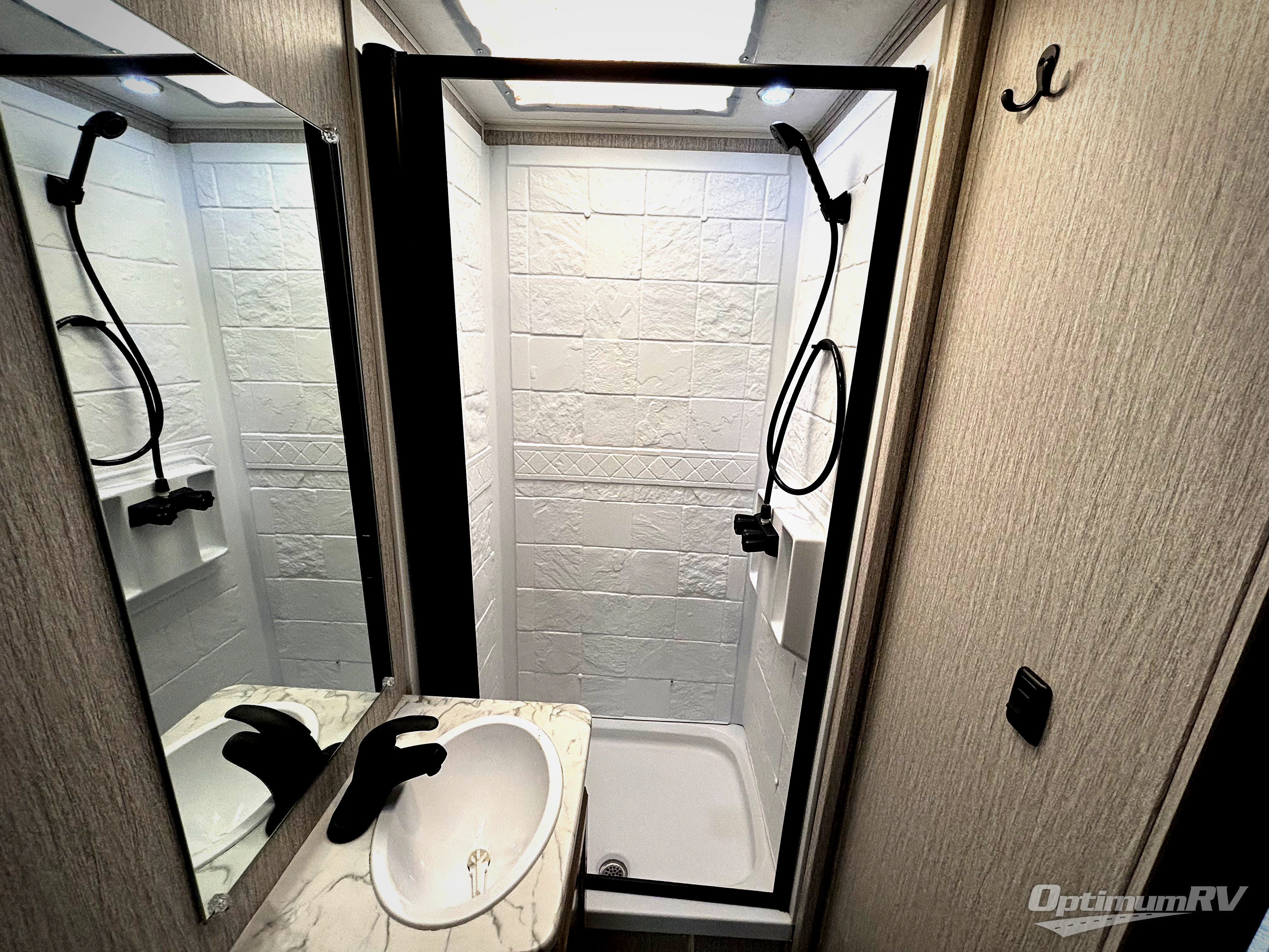 Looking for privacy when you sleep at night when the kids or your friends join you? This coach offers a private bedroom with a full bathroom, a slide out queen bed, and a wardrobe. The main living and kitchen area is spacious as well with a slide out booth dinette or choose the recliners option. There is a pantry, more storage, and full kitchen amenities including a countertop extension for more space. The bunk over the cab is a great place to sleep, and the dinette offers extra sleeping space as well. You can easily watch TV inside if you like, and can choose to add the optional entertainment center outside to enjoy under the armless awning with LED light which gives you some protection from the elements.
