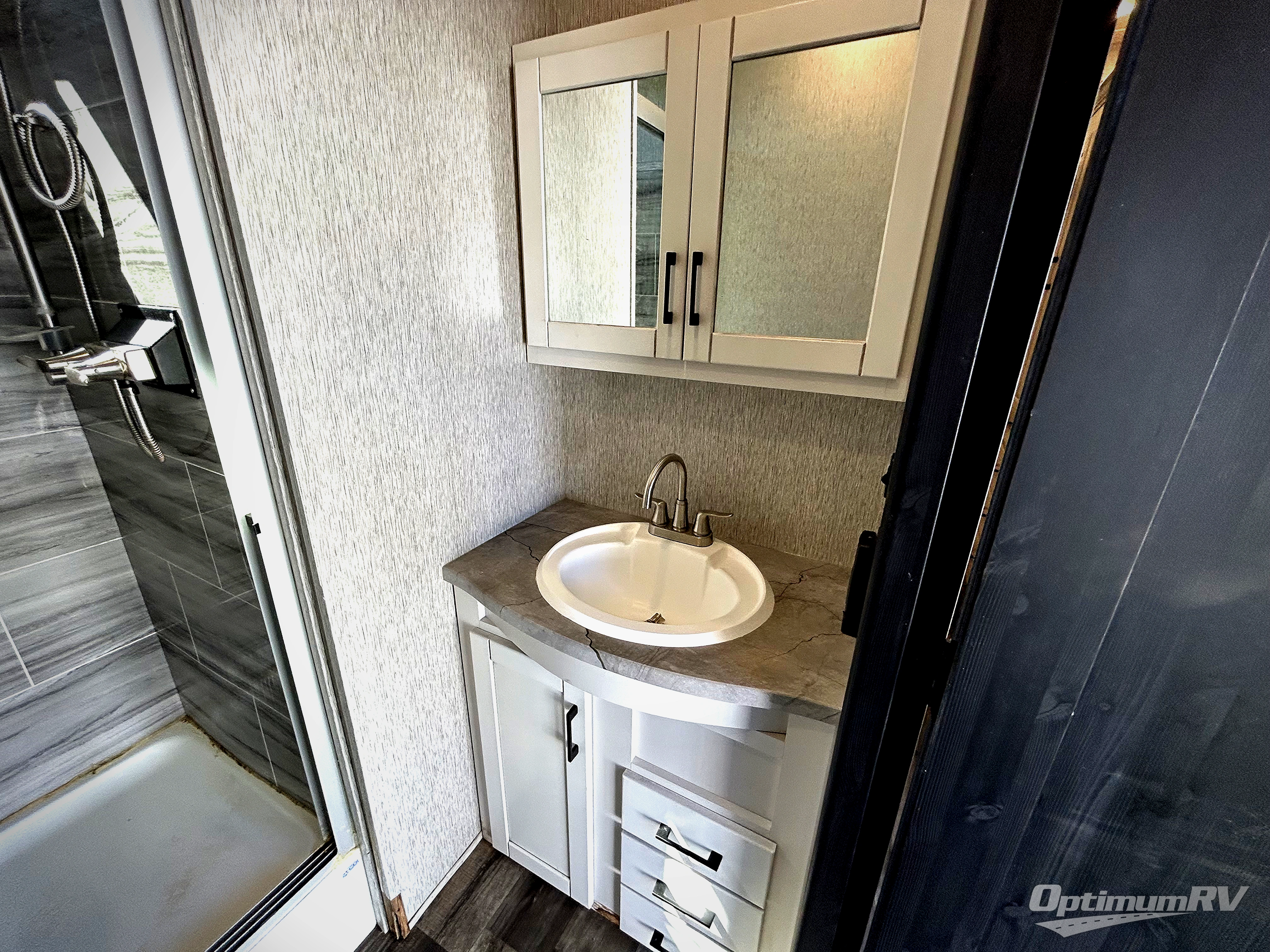 Each Hampton destination trailer by CrossRoads RV includes a one-piece fiberglass front cap, tinted glass windows, and an outside faucet that will surely come in handy when wanting to rinse off your hands or even shoes after exploring outdoors. Each is constructed with a fiberglass roof and floor insulation with radiant tech foil, an enclosed underbelly, and severe weather welded mounts and rain gutters along the entire roof line. And, the Convenience package that comes standard includes KeyTV, a microwave, a quilted bedspread, a power vent in the bathroom, and more. Other interior features offered include decorative accent lighting, an 8-foot floor to ceiling height, a patio door with a swing-out assist rail, and two-toned wood fascia. So choose your destination, select your favorite Hampton, and start feeling at home when you are actually on vacation!