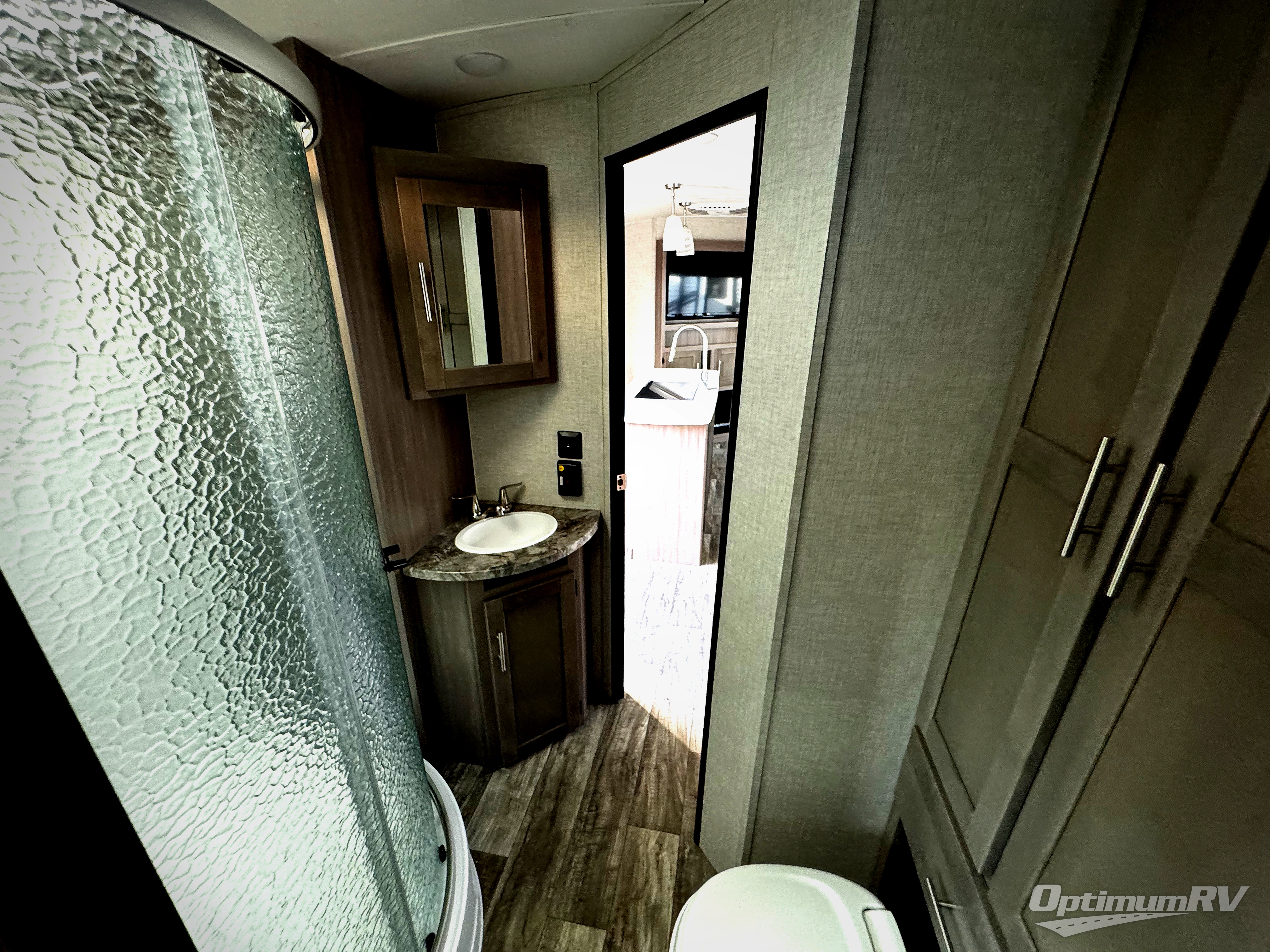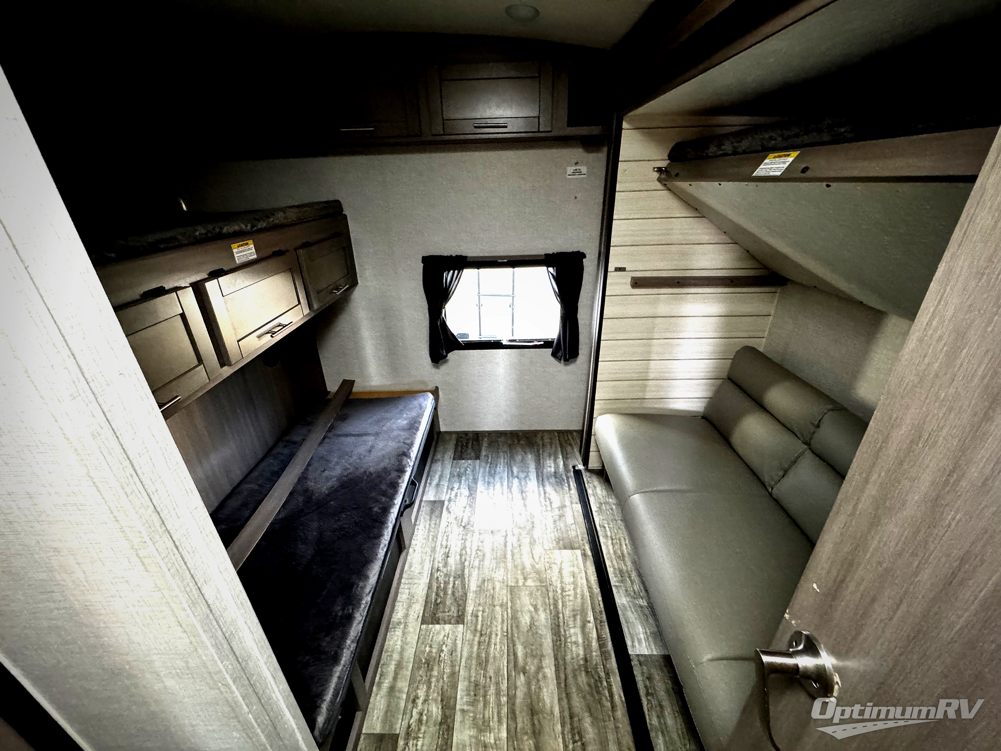This travel trailer is packed with convenient features and luxury comforts for a camping trip you won't soon forget. Once you arrive at the campground, put out the electric awning and make a quick lunch on the exterior camp kitchen. The kitchen island inside will be the perfect place to cut up all the fixings for the burgers and you can grab the chips from the pantry. The kids will love the private bunkhouse that includes two bunks, a jackknife sofa with a kick, plus a dual entry half bath for convenience. The full walk-through bath will create a front master bedroom you are sure to love. Here, the king bed will provide a great night's rest and there are dual wardrobes for all your clothes. Plus there is a convenient shoe storage and pet station for your trusted loyal friends!