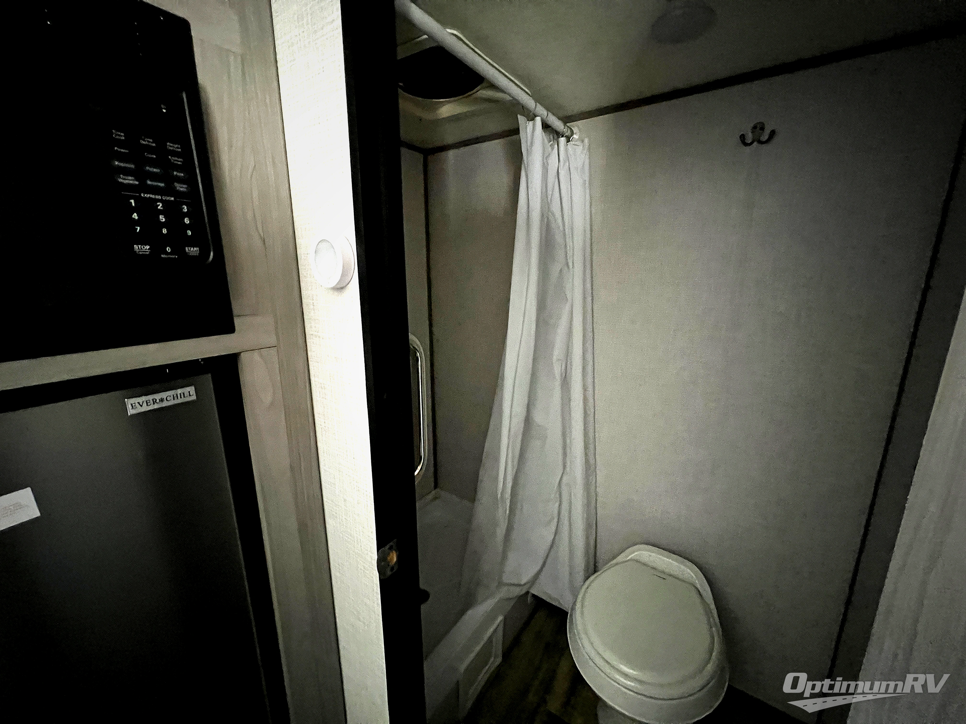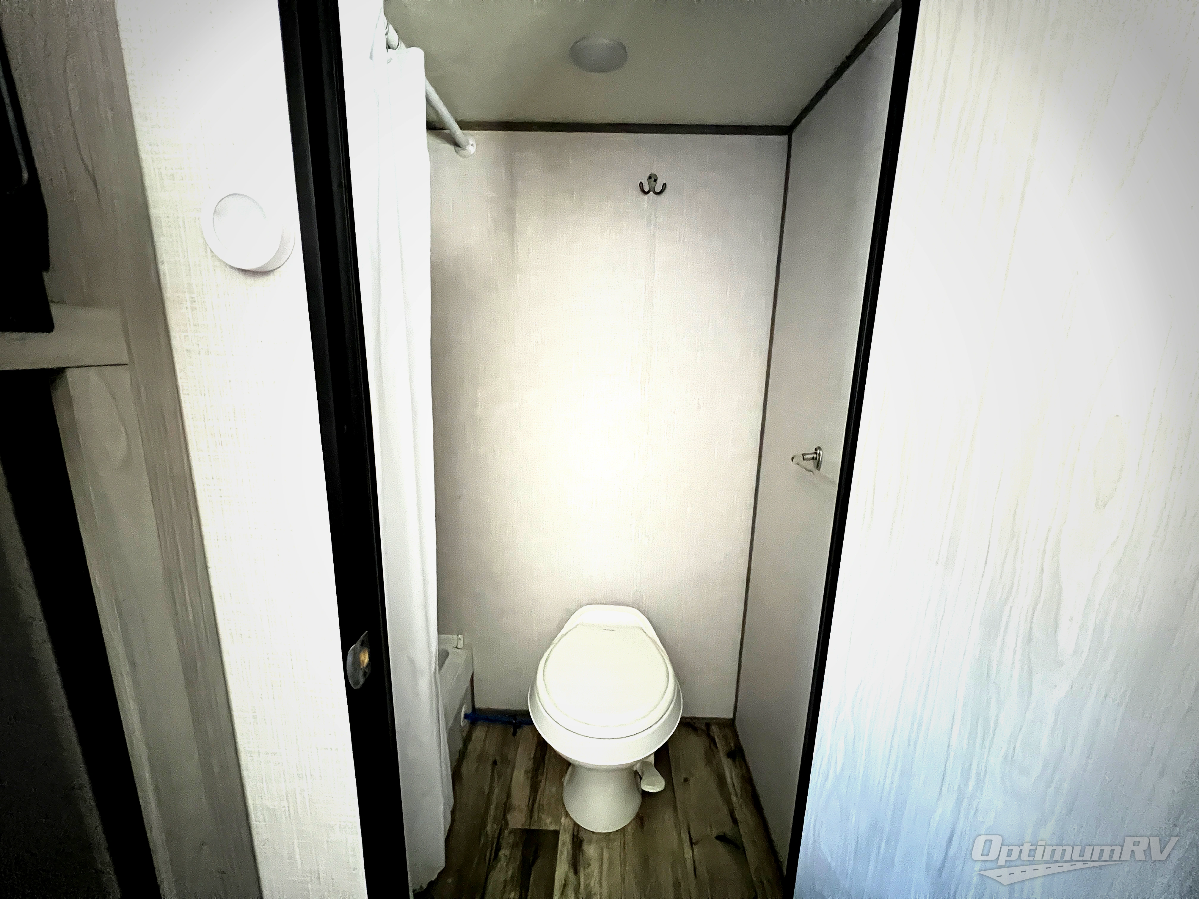 After making dinner on the two burner cooktop or inside the microwave, you can dine at the booth dinette or outside under the 8' power awning if you brought along your camping chairs. Either way you will be comfortable and the dinette may even sleep one person if needed. After playing outdoors all day, everyone can return to get cleaned up in the private toilet and shower room then fall asleep on the queen bed up front or the bunk beds in the rear. And everyone can wake up the next morning to do it over again.
