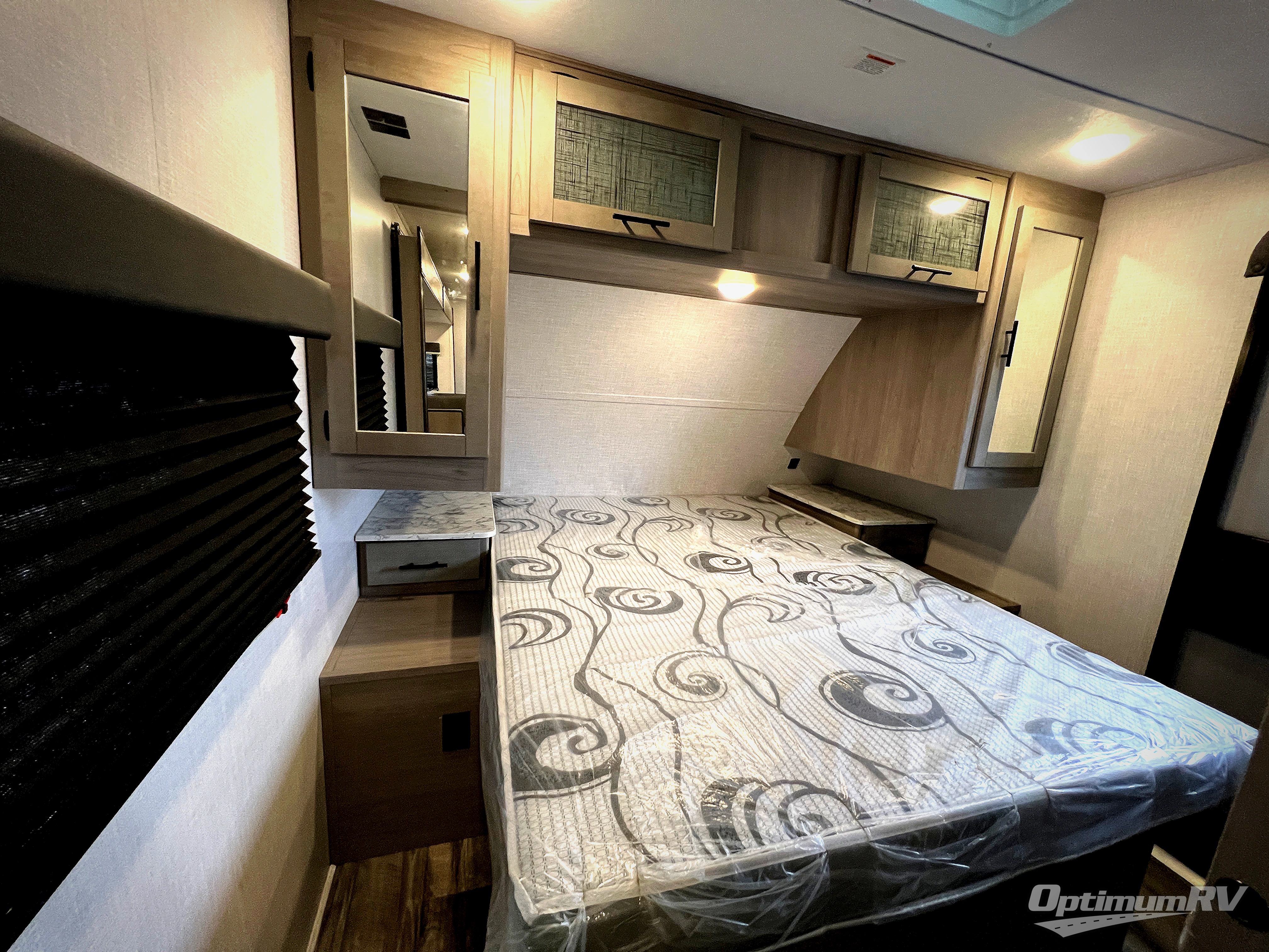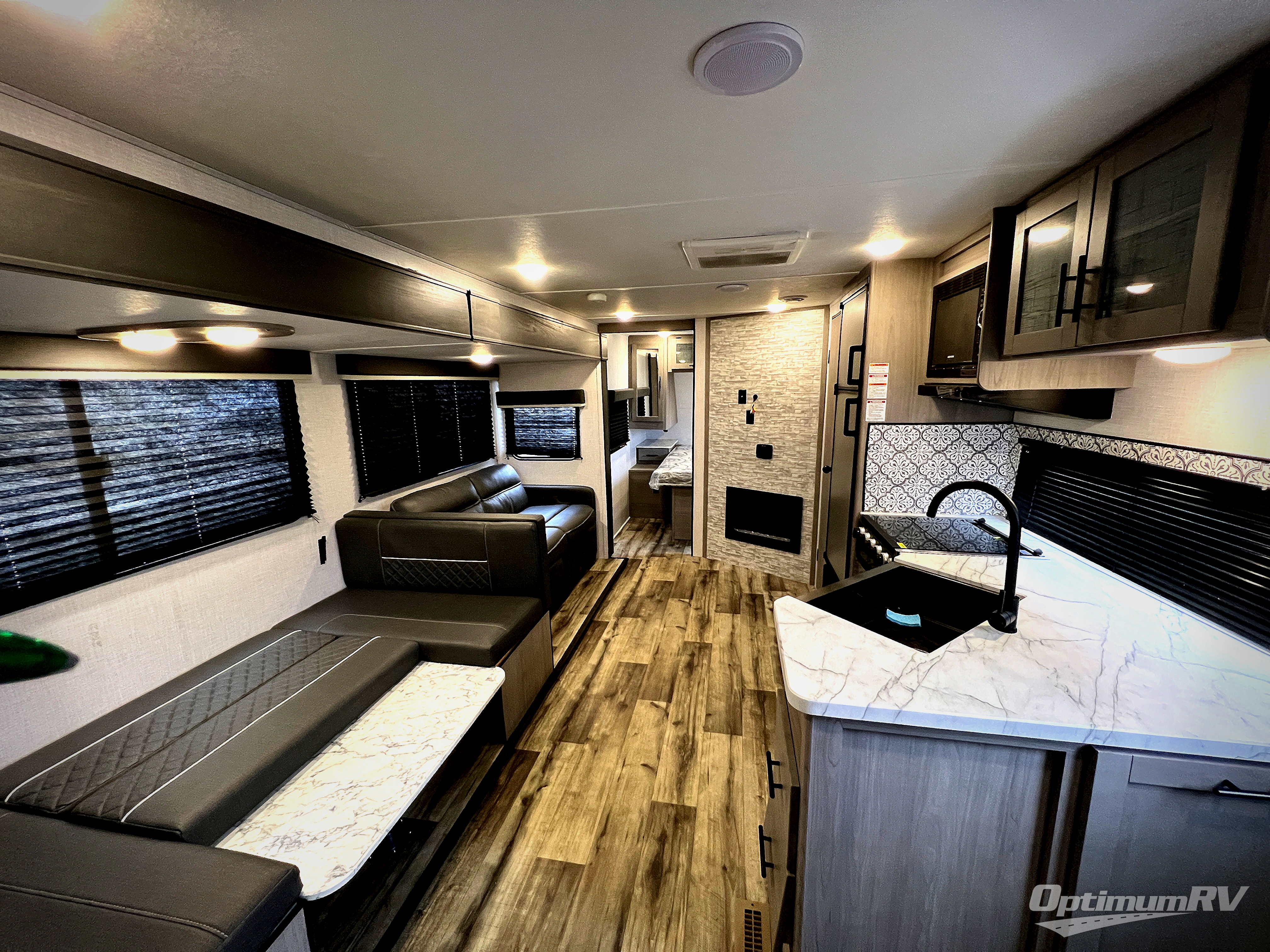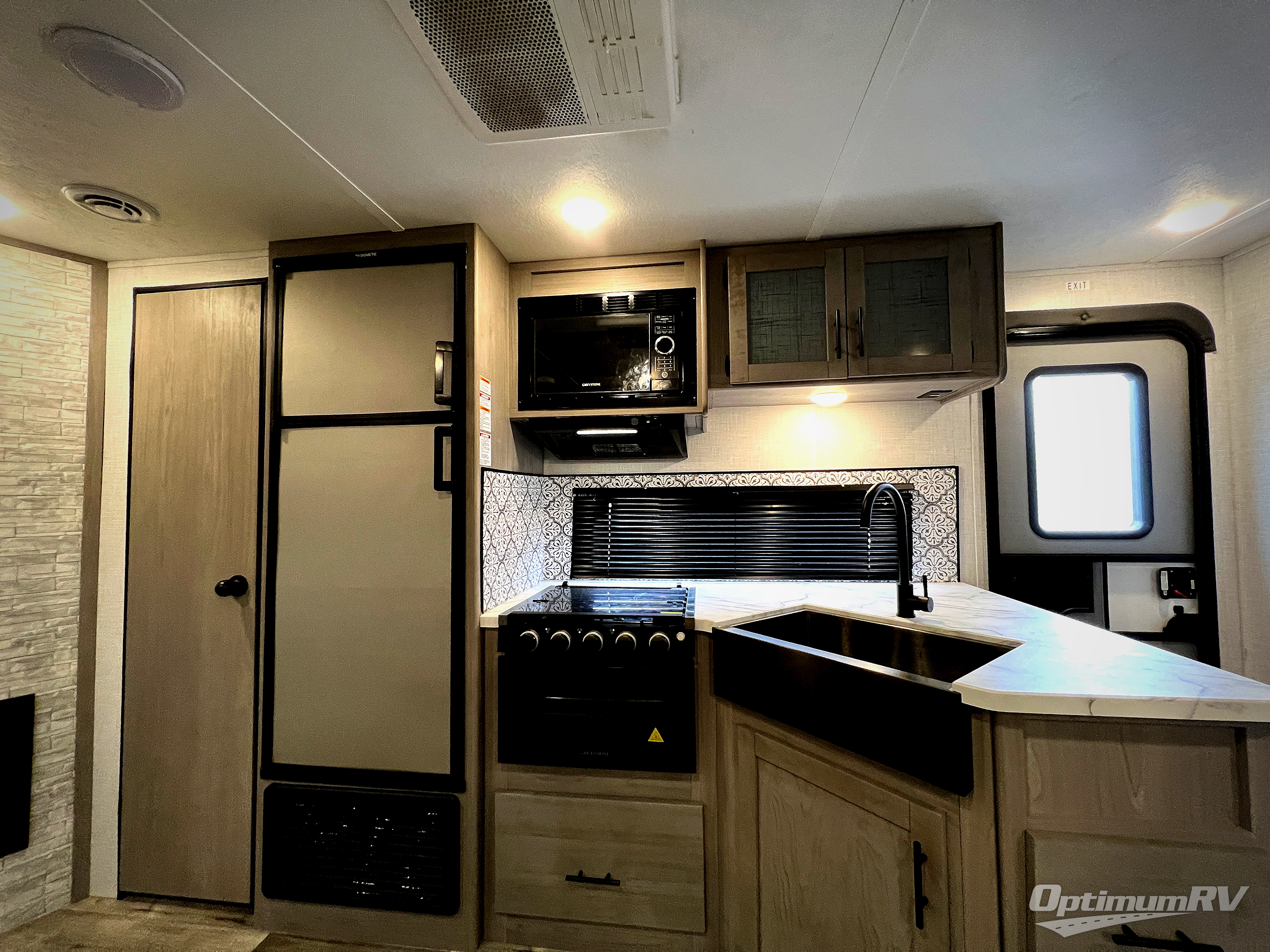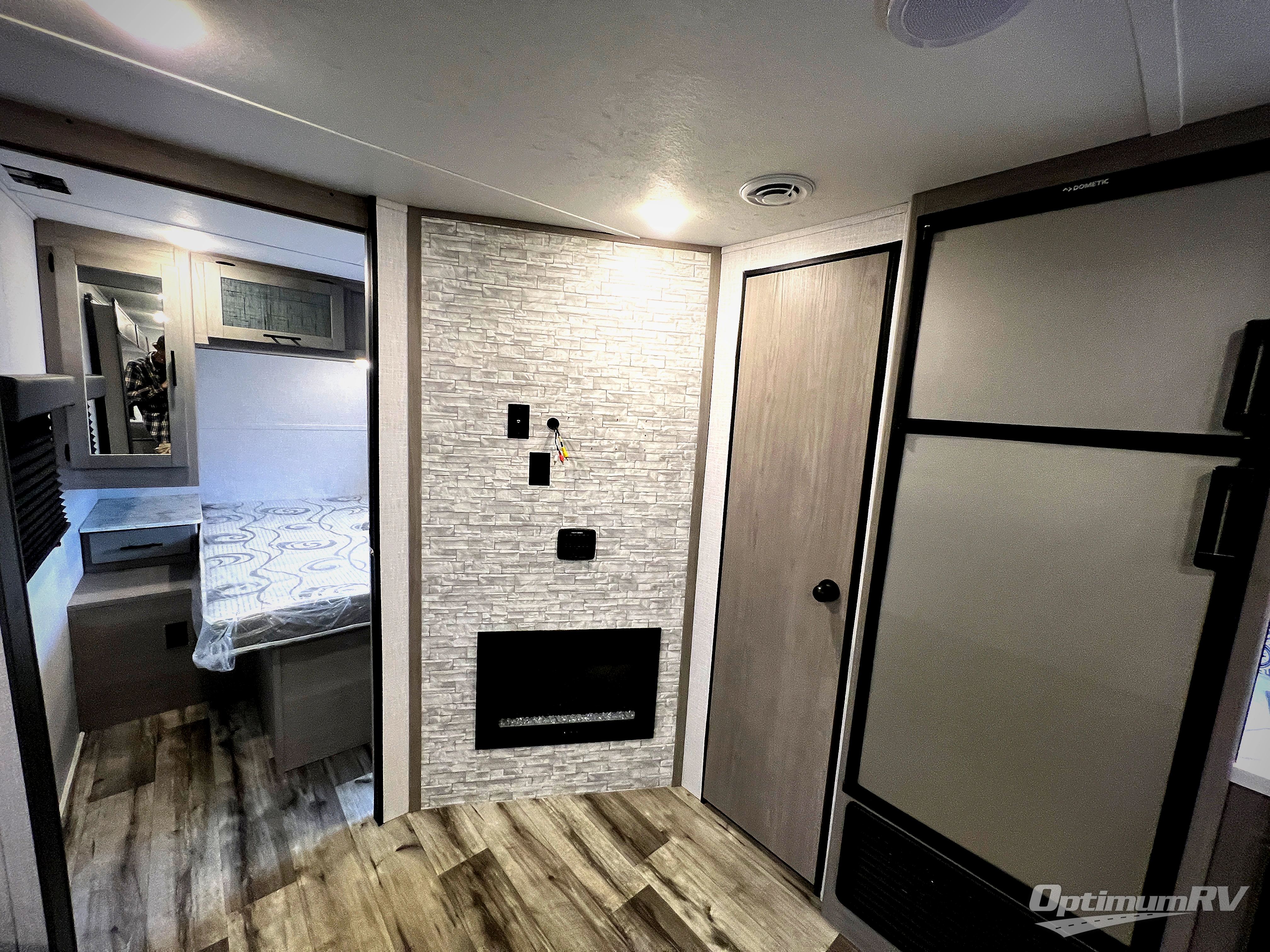 The Dutchmen Coleman Light travel trailer features an upgraded kitchen package with residential appliances, high-rise faucets, and a stainless steel farm-style sink. The fully enclosed underbelly allows all of your trailer's vital functions to be kept out of the freezing cold, and you'll have great stability as you enter your trailer by using the solid entry steps. Each model includes power stabilizer jacks, a power tongue jack, dual 20-LB propane tanks, a residential queen bed, and preparations for Wi-Fi 4G LTE. There is an aerodynamic front fiberglass cap, exterior speakers, solar charging connection, and aluminum wheels.