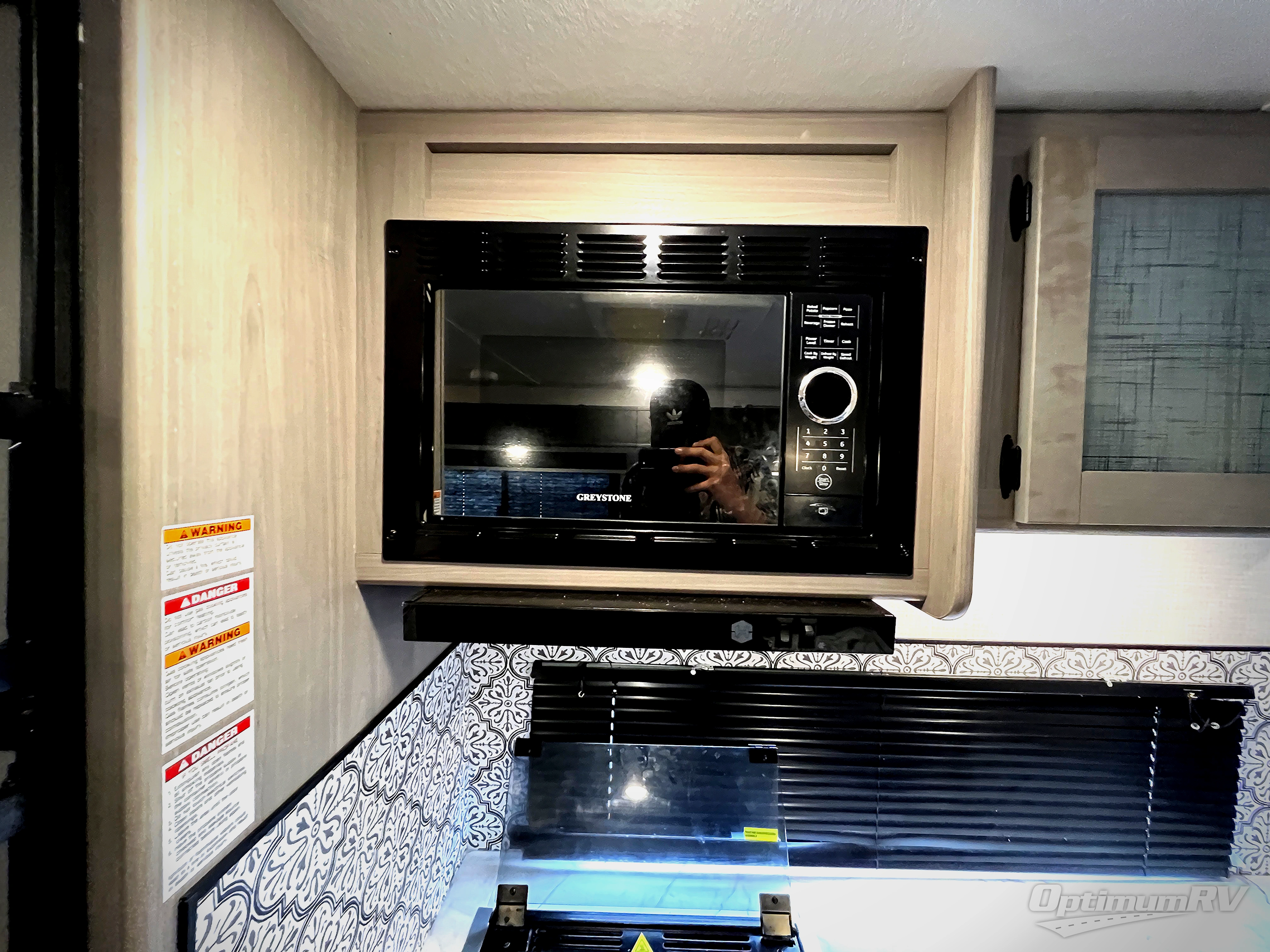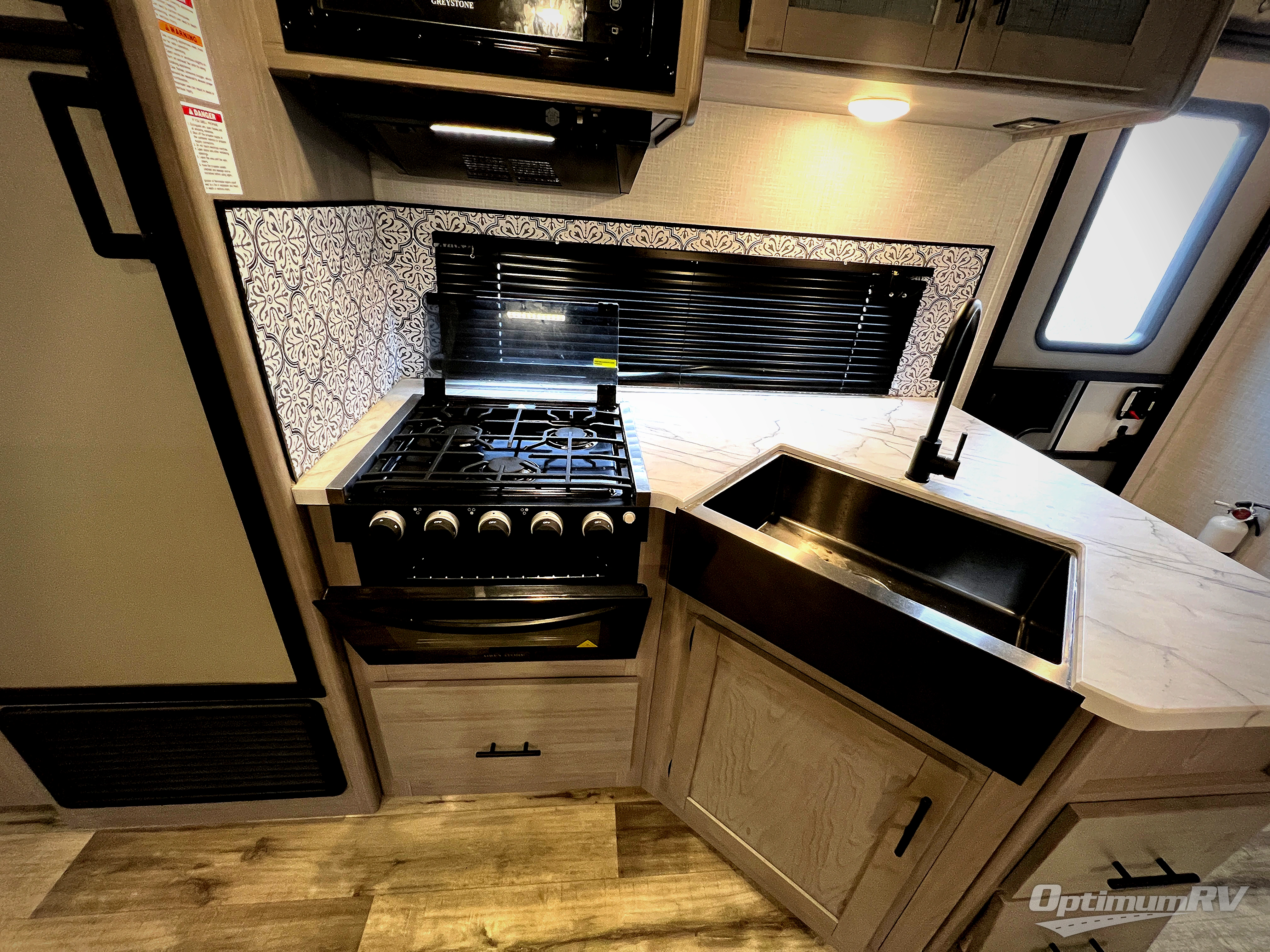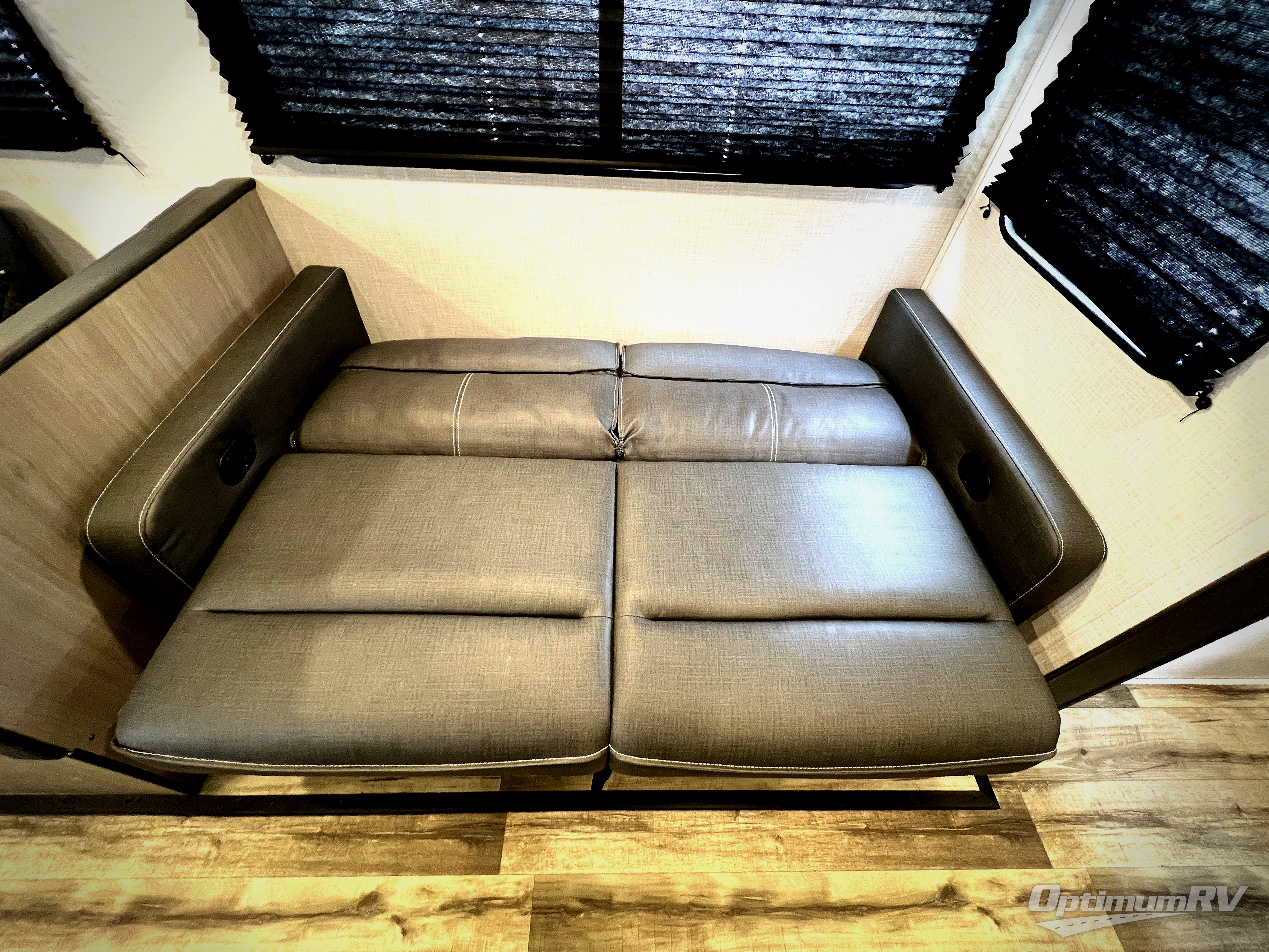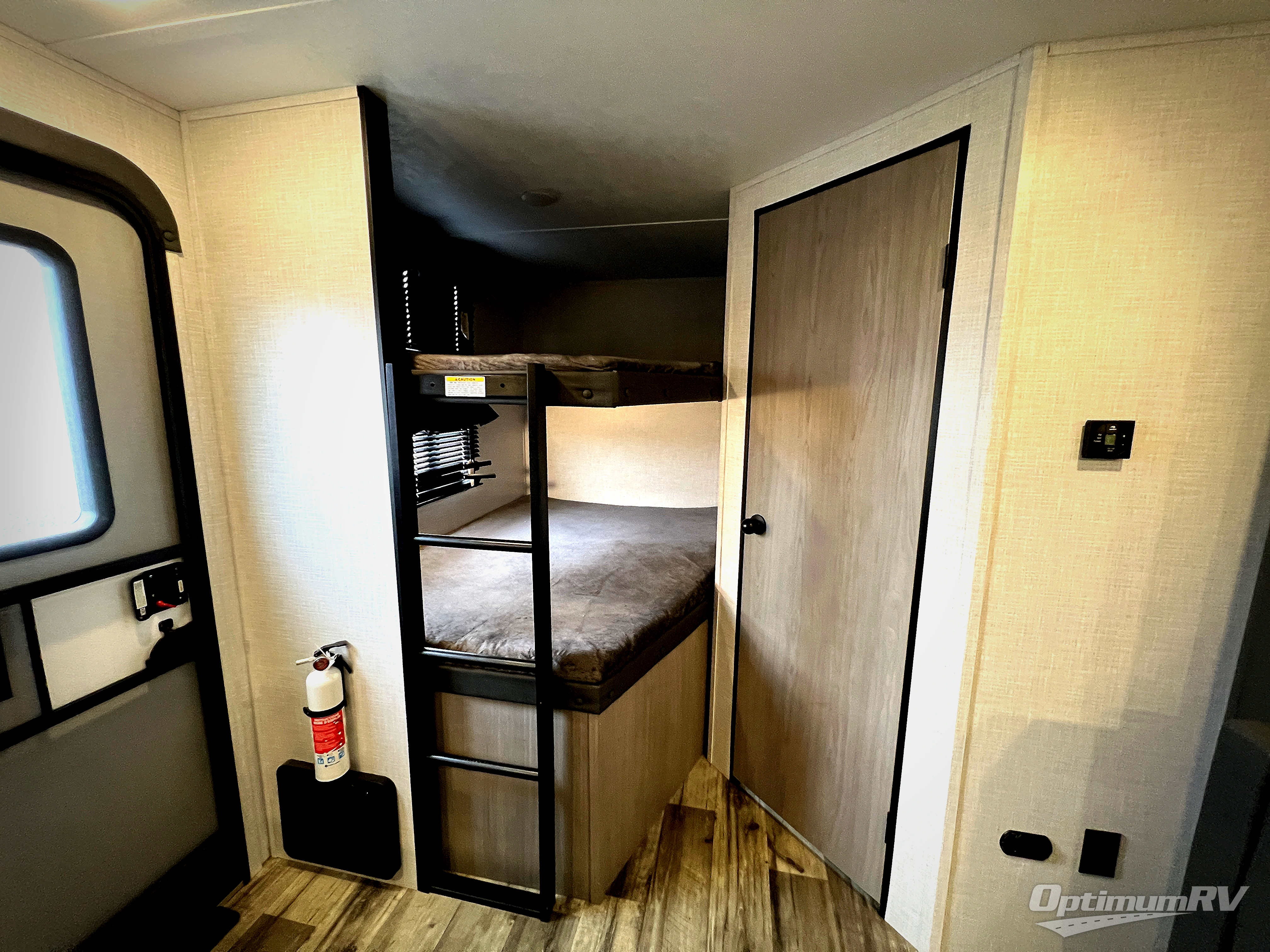 The Dutchmen Coleman Light travel trailer features an upgraded kitchen package with residential appliances, high-rise faucets, and a stainless steel farm-style sink. The fully enclosed underbelly allows all of your trailer's vital functions to be kept out of the freezing cold, and you'll have great stability as you enter your trailer by using the solid entry steps. Each model includes power stabilizer jacks, a power tongue jack, dual 20-LB propane tanks, a residential queen bed, and preparations for Wi-Fi 4G LTE. There is an aerodynamic front fiberglass cap, exterior speakers, solar charging connection, and aluminum wheels.