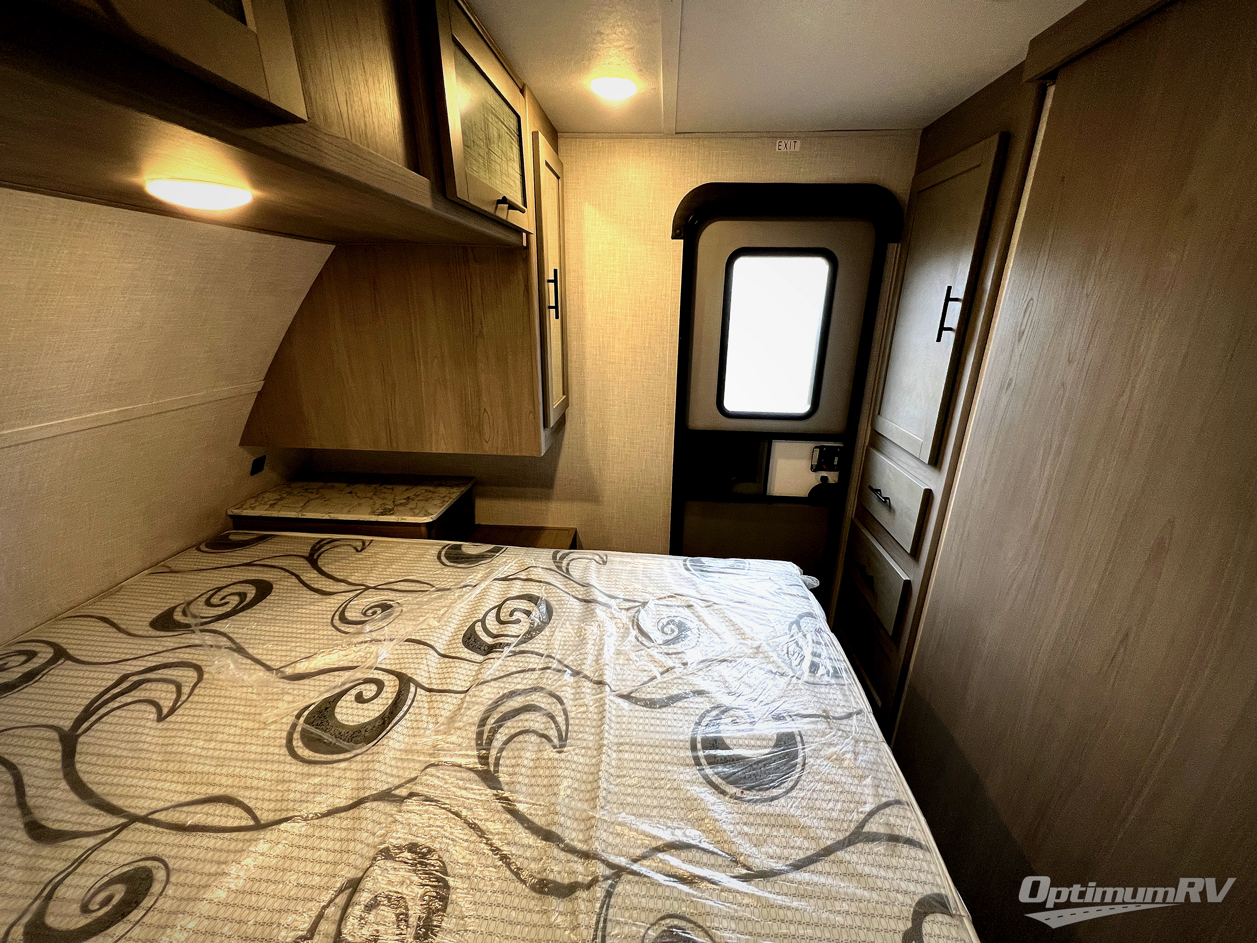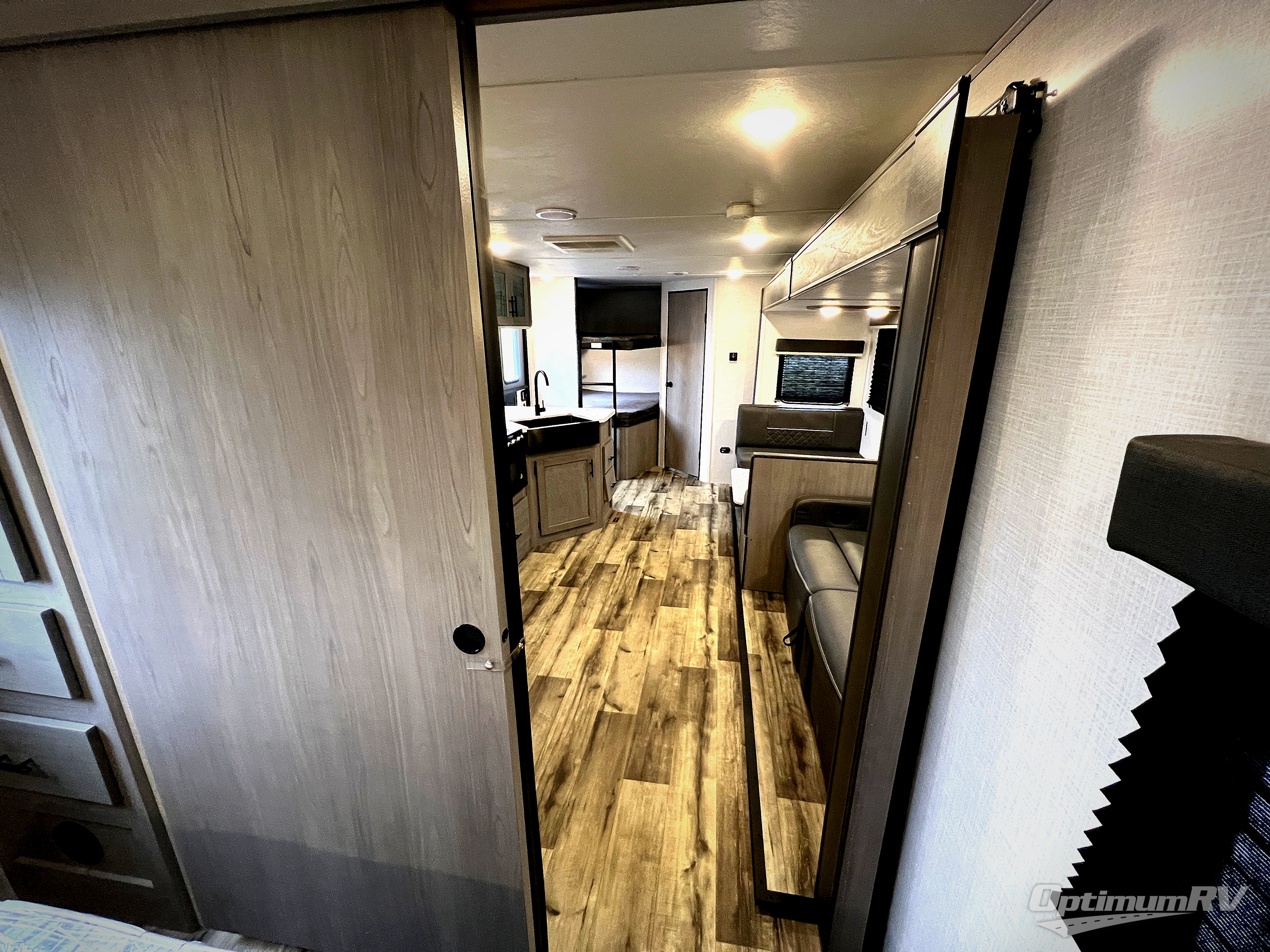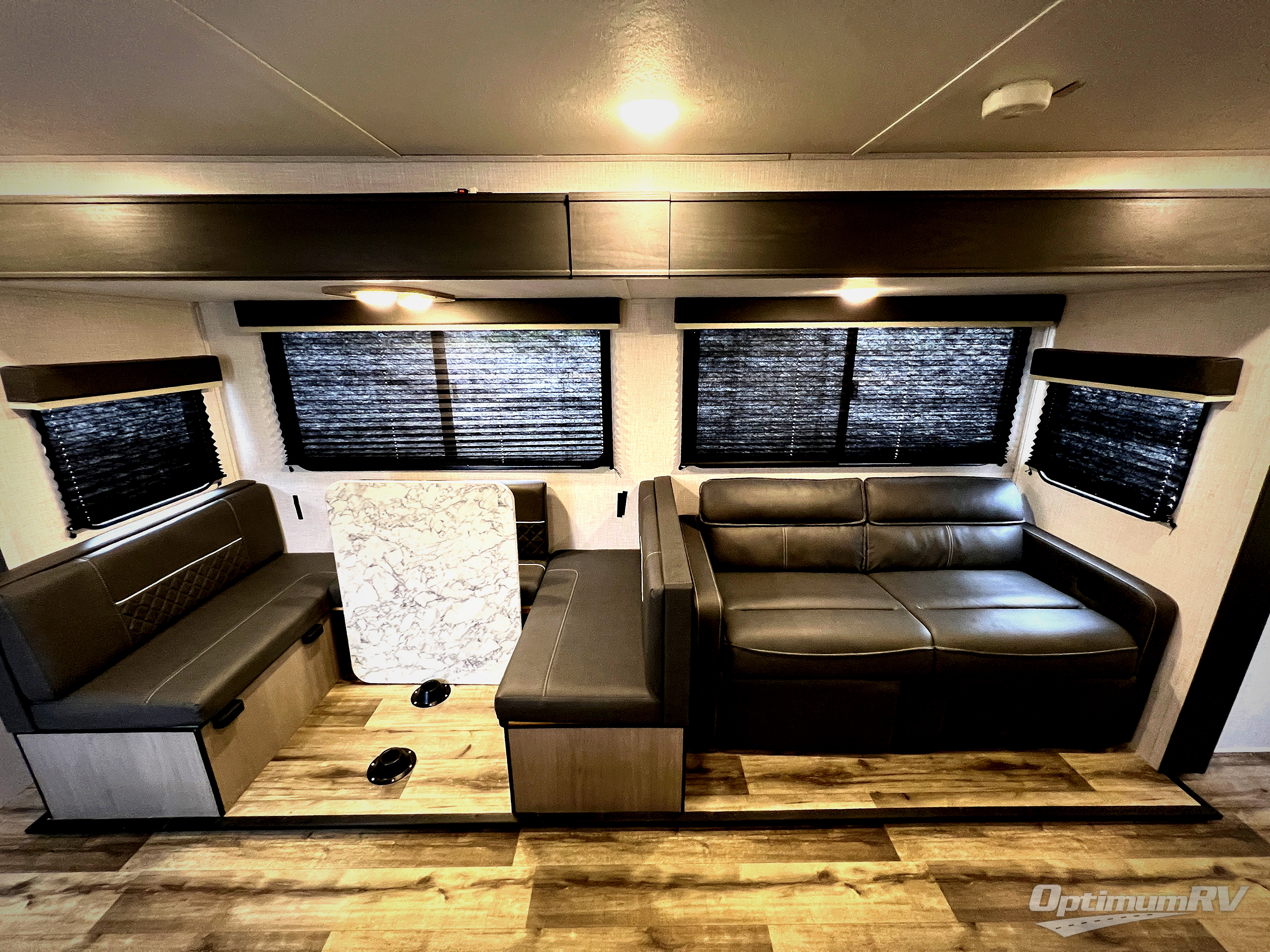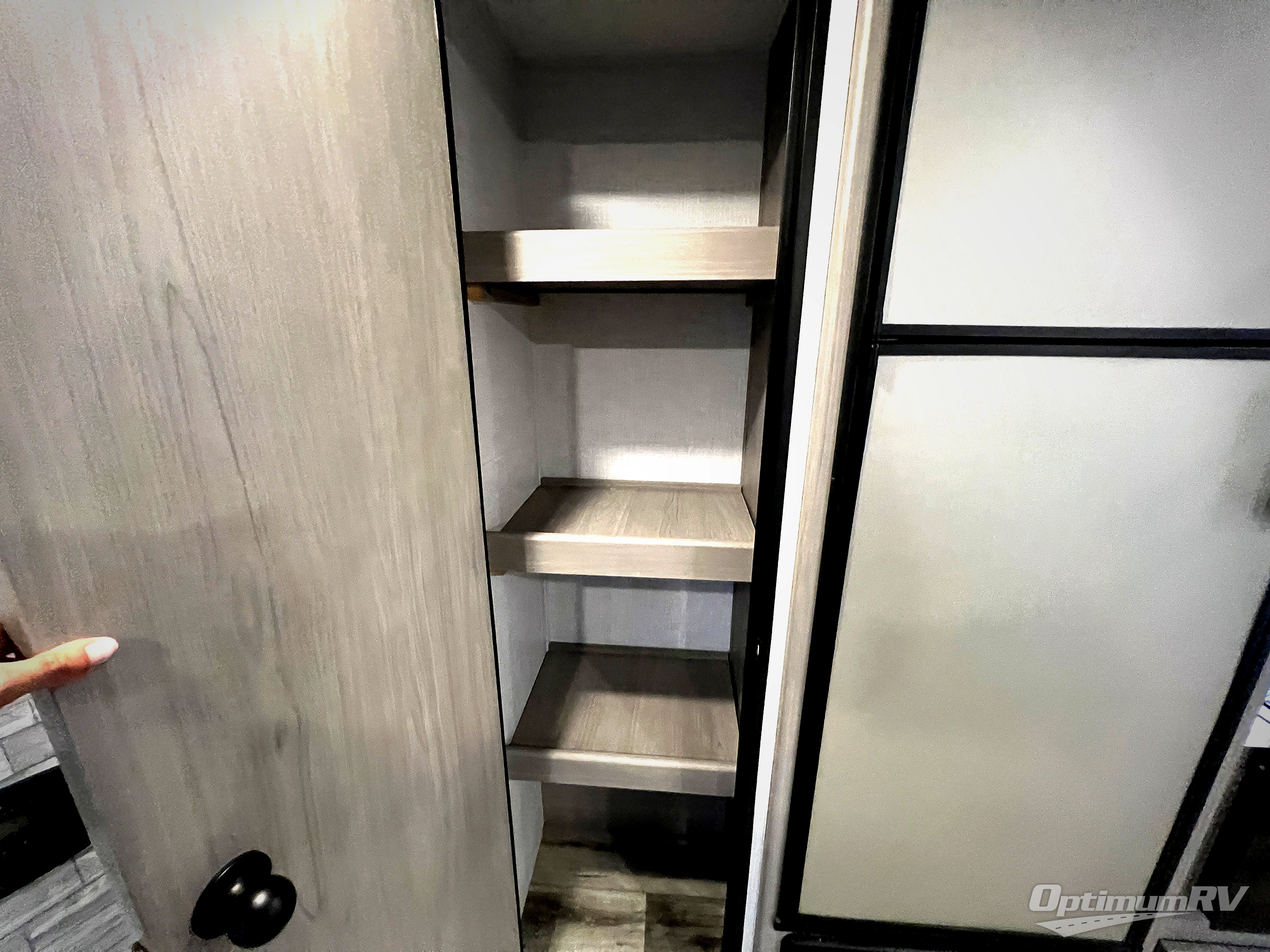The Dutchmen Coleman Light travel trailer features an upgraded kitchen package with residential appliances, high-rise faucets, and a stainless steel farm-style sink. The fully enclosed underbelly allows all of your trailer's vital functions to be kept out of the freezing cold, and you'll have great stability as you enter your trailer by using the solid entry steps. Each model includes power stabilizer jacks, a power tongue jack, dual 20-LB propane tanks, a residential queen bed, and preparations for Wi-Fi 4G LTE. There is an aerodynamic front fiberglass cap, exterior speakers, solar charging connection, and aluminum wheels.