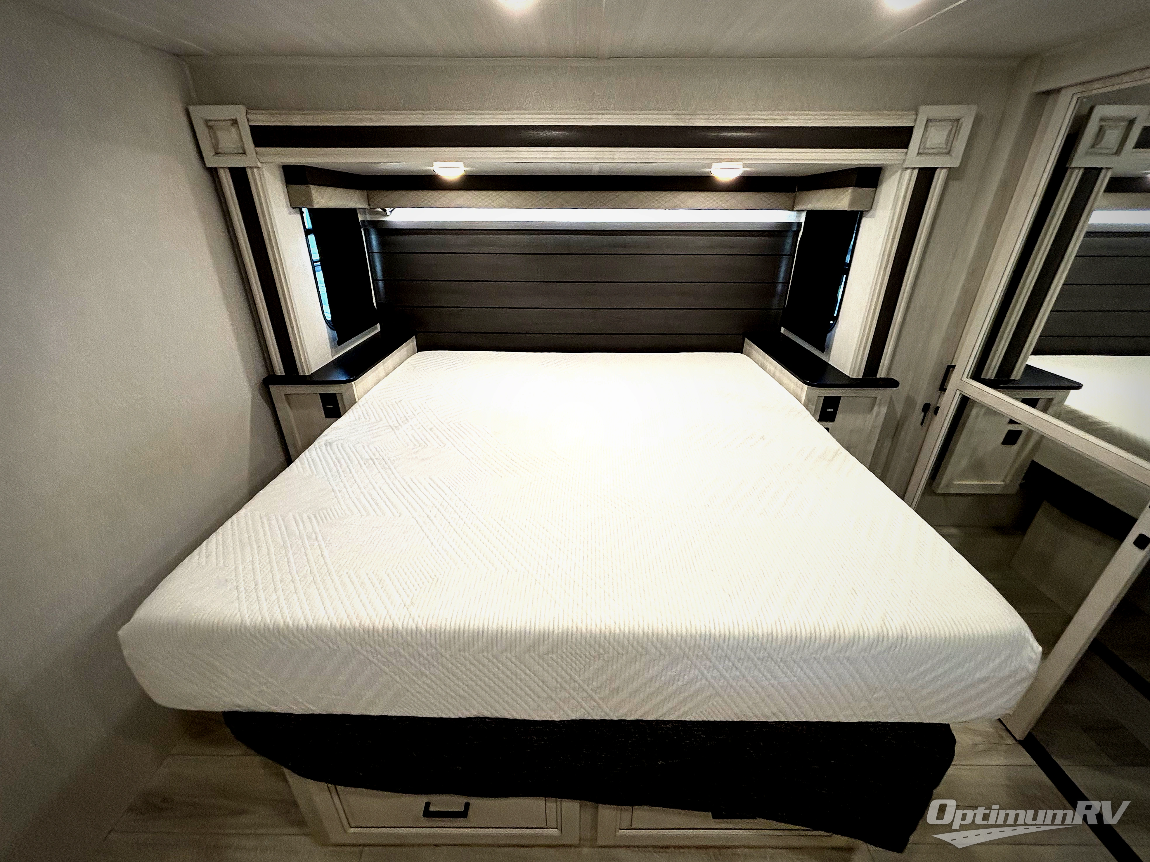 There is just too much luxury to name on the EAST TO WEST Ahara fifth wheel! These units are quite impressive, and once you see them, you'll know what we mean. The Ahara first grabs your attention with its hi-gloss gel-coated fiberglass exterior which showcases two power awnings with LED lights, an LP quick connect, an exterior cable/satellite hookup, and a universal all-in-one docking station. For towing, you'll find a MORryde CRE 3000 suspension, Dexter Gladiator thick-wall 7,000-LB axles with Nev-R-Adjust brakes, nitro-filled G-range tires, and preparations for a rearview camera. Traveling during all seasons is also made easy with the high-efficiency triple A/C system, ductless flooring throughout the living area, a 40,000 BTU high-capacity furnace, 12V heat pads on holding tanks, a heated, insulated, and enclosed underbelly and dump valves with circulating heat, and Radiant Technology Composites insulation in the roof, front cap, and underbelly.