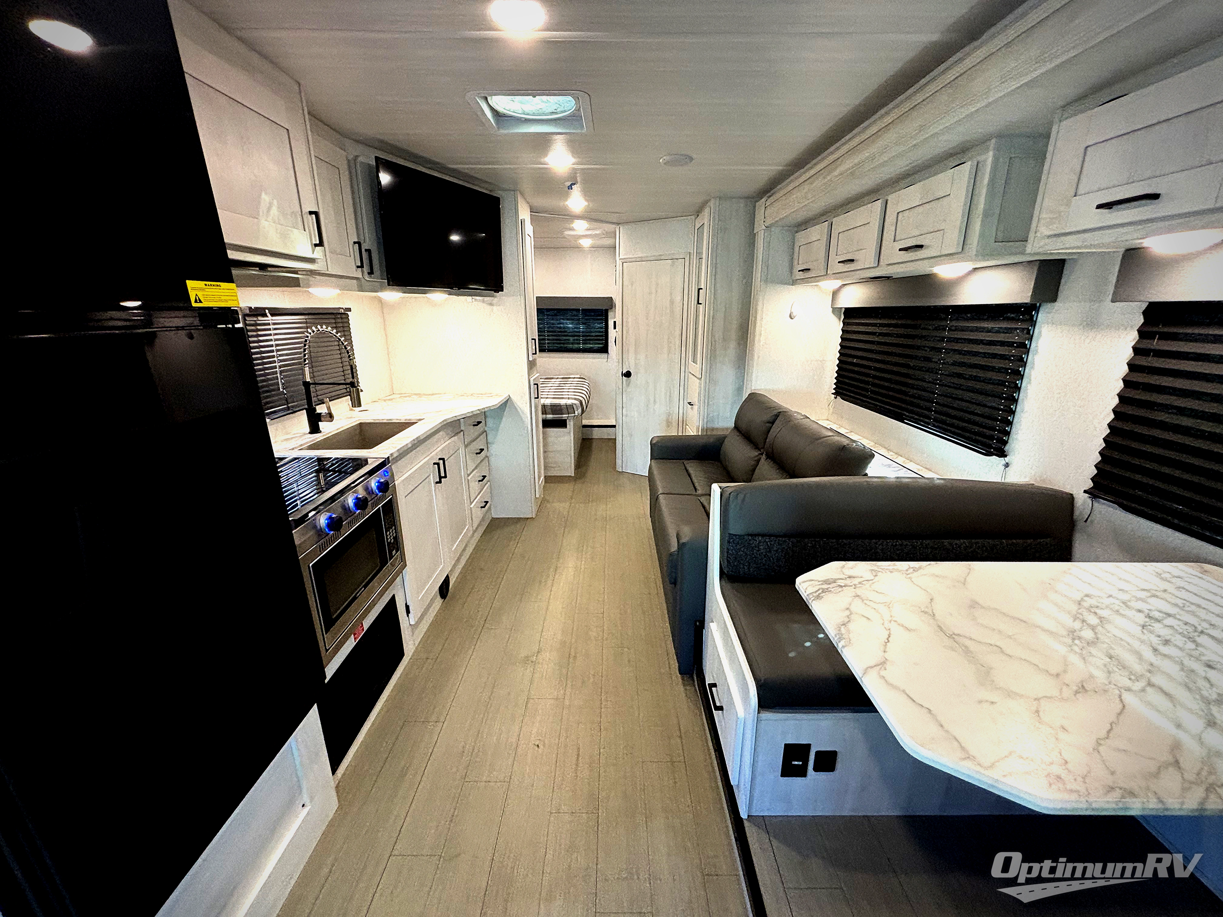 With any Entrada Class C gas motorhome from EAST TO WEST, the construction consists of a completely laminated coach, a one-piece molded fiberglass front cap, 2-inch sidewall and walls with Azdel composite backing, a Dicor Diflex ll TPO roof, and aluminum running boards. Some of the luxury package features include 12V tank heaters to camp during the cooler months, the Winegard Air 360+, plus backup and side view cameras with monitor for safety on and off the road. The interior offers Cold Crack resistant flooring for durability, a 7-foot living height for a spacious interior, and hardwood shaker style cabinets. Choose an Entrada for its tasteful design, attention to detail, bright interior and/or affordable price-point!