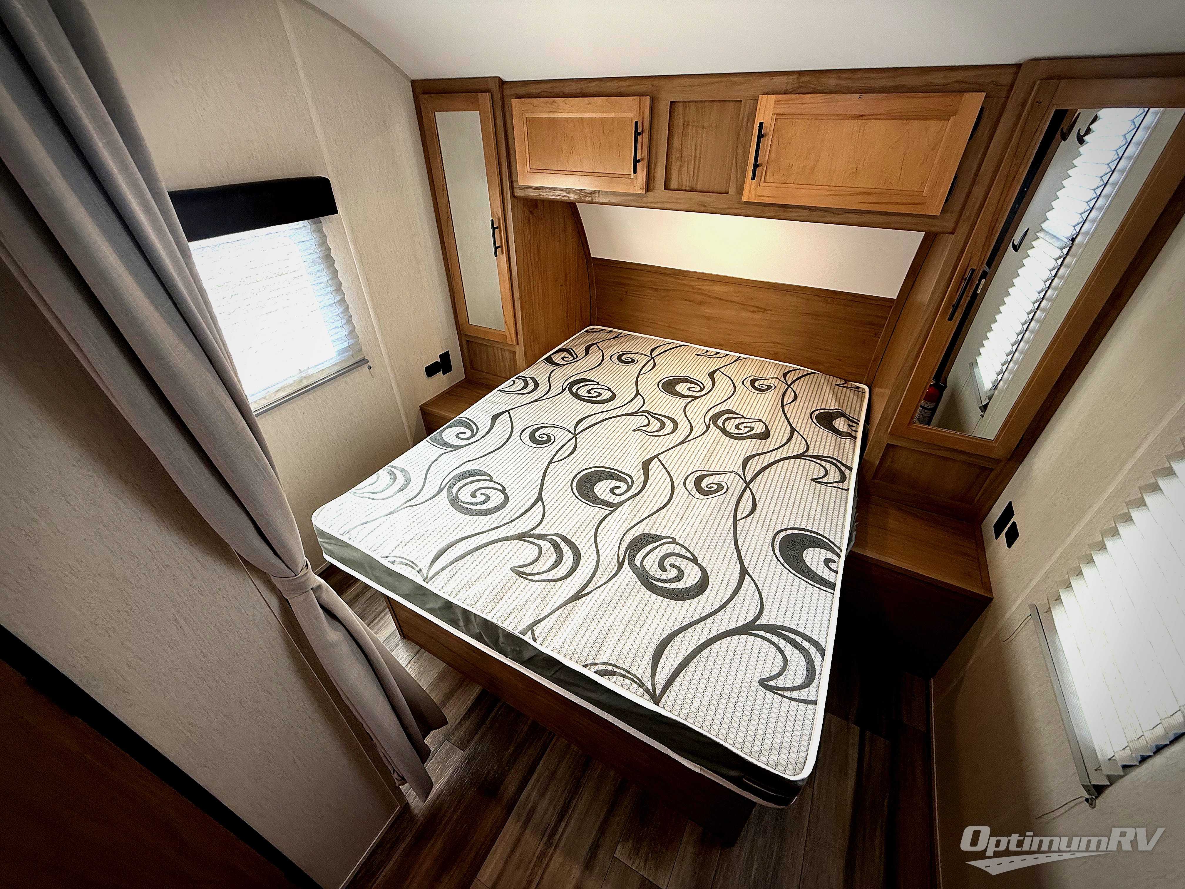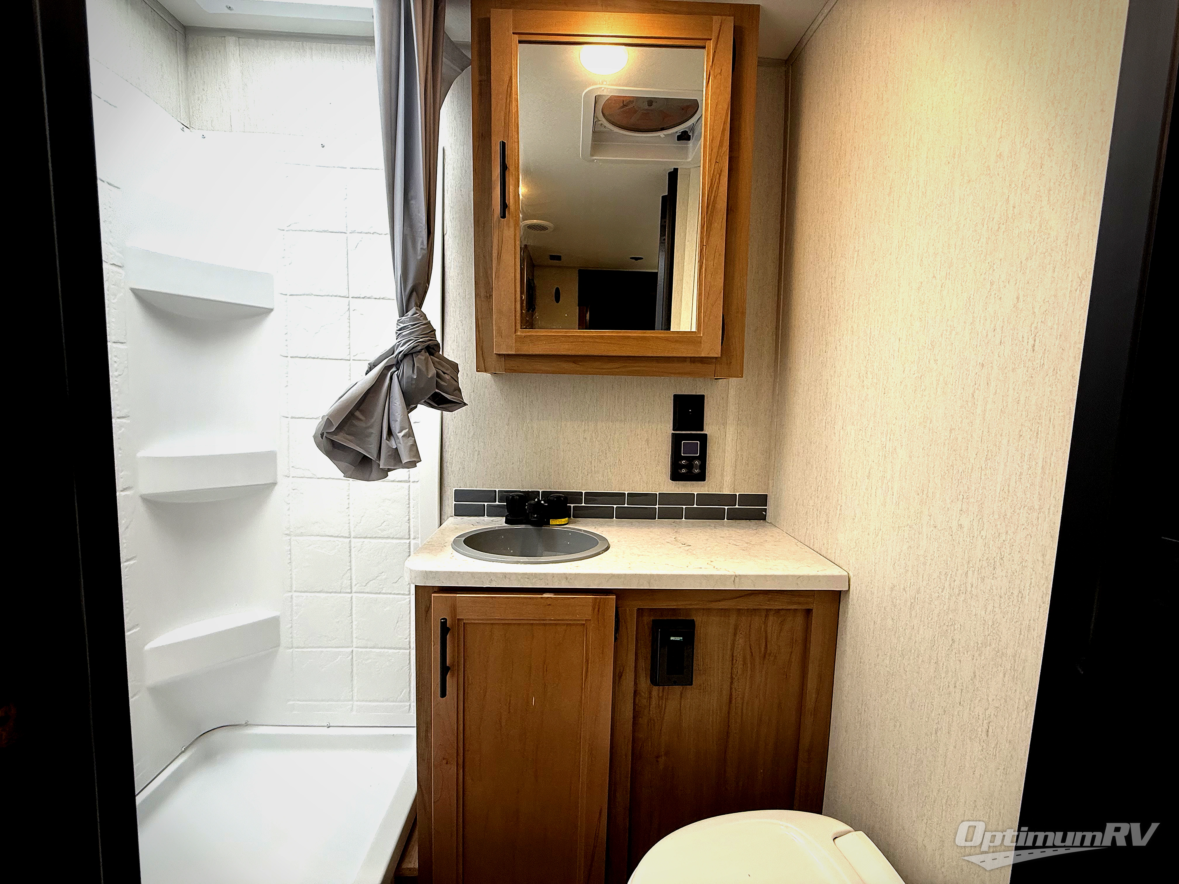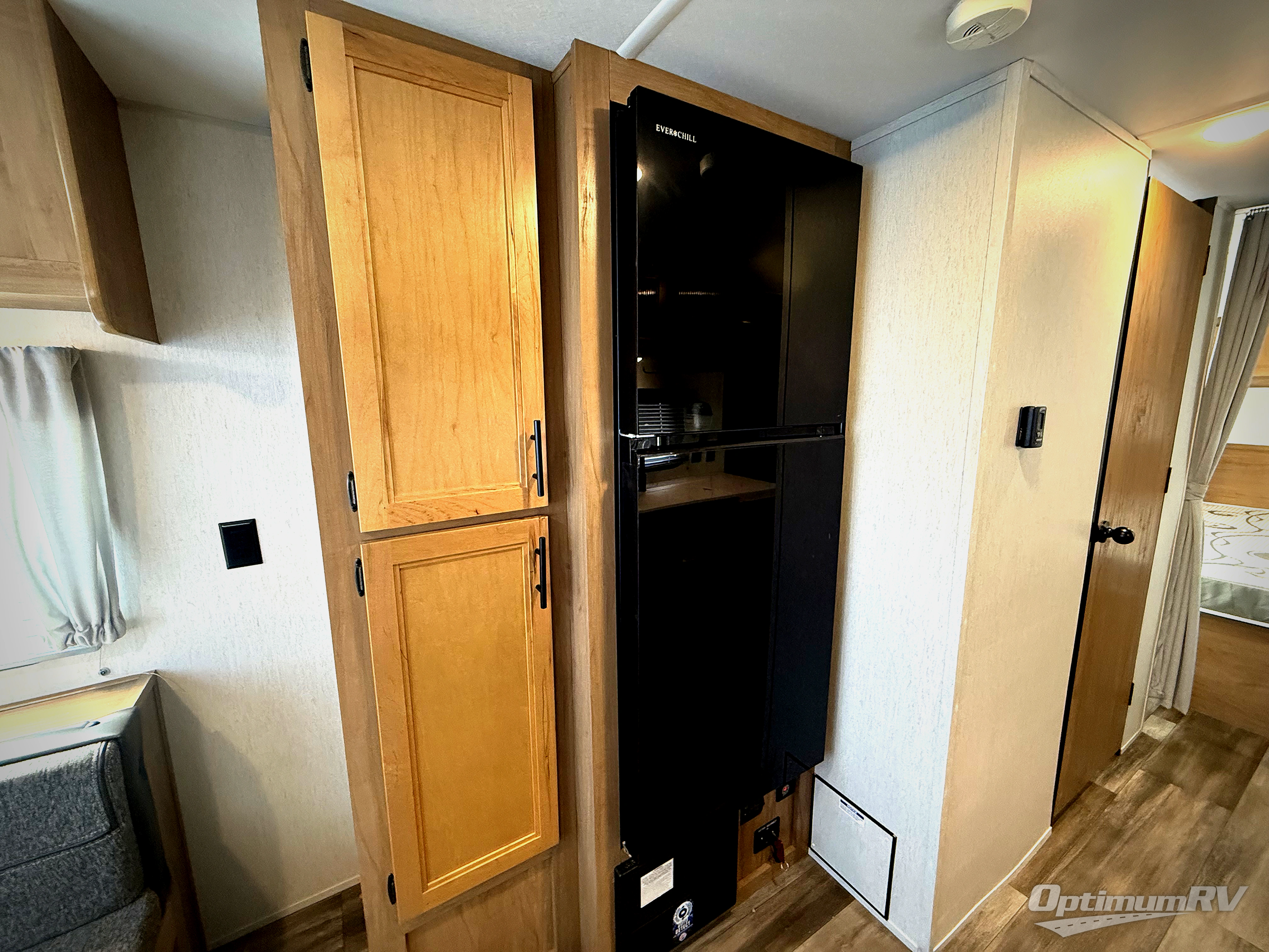 You and your favorite person will love this Cherokee Grey Wolf travel trailer for any weekend excursions away from home. The large U-shaped dinette in the rear of the unit makes it easy to invite fellow campers in for an evening snack and a card game or two. It can also easily accommodate extra overnight guests as the dinette folds down to create additional sleeping space for two. The queen bed up front will have you feeling right at home, and the full bath which is right across from the entry door is easily accessible from outside. There are plenty of storage options with the overhead cabinets, the pantry, and the wardrobes inside, plus there is also outside storage!