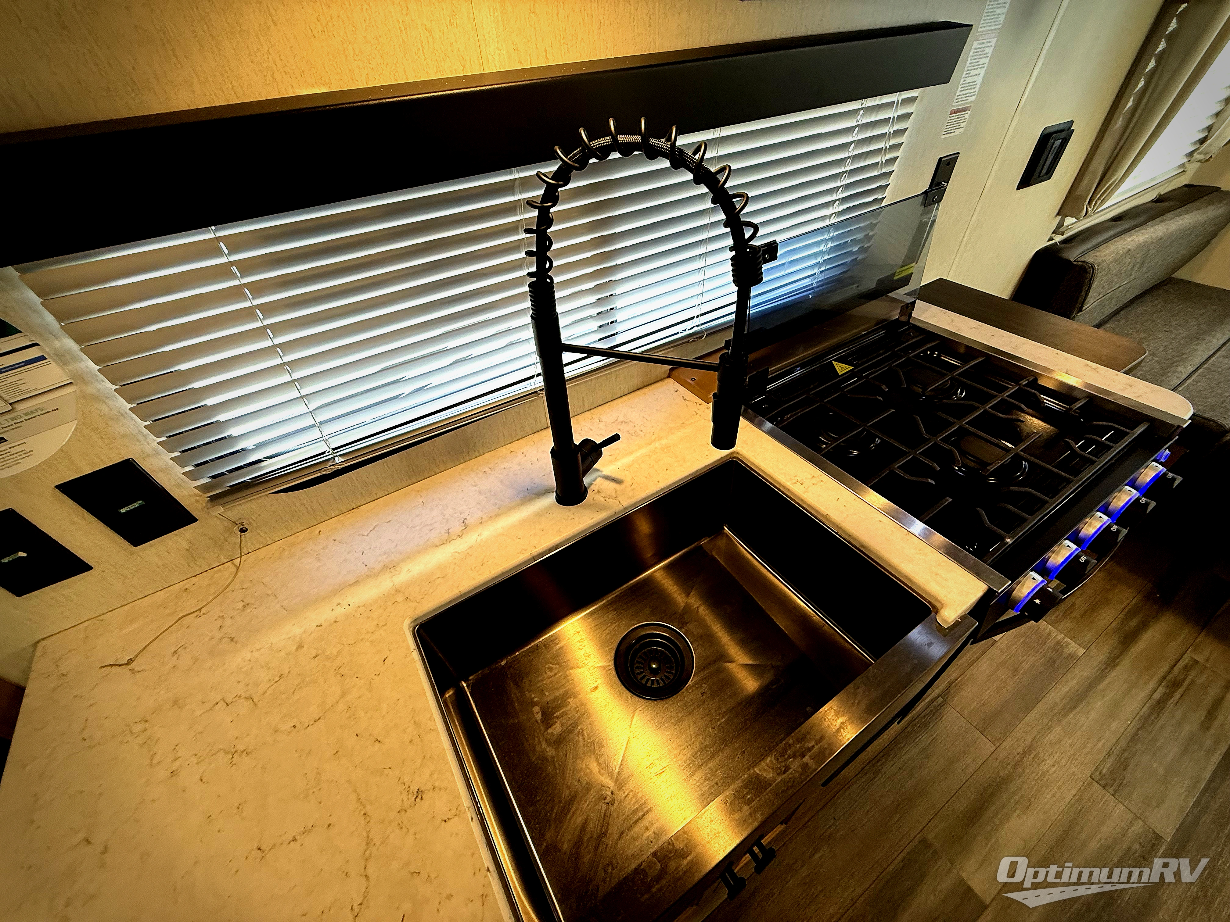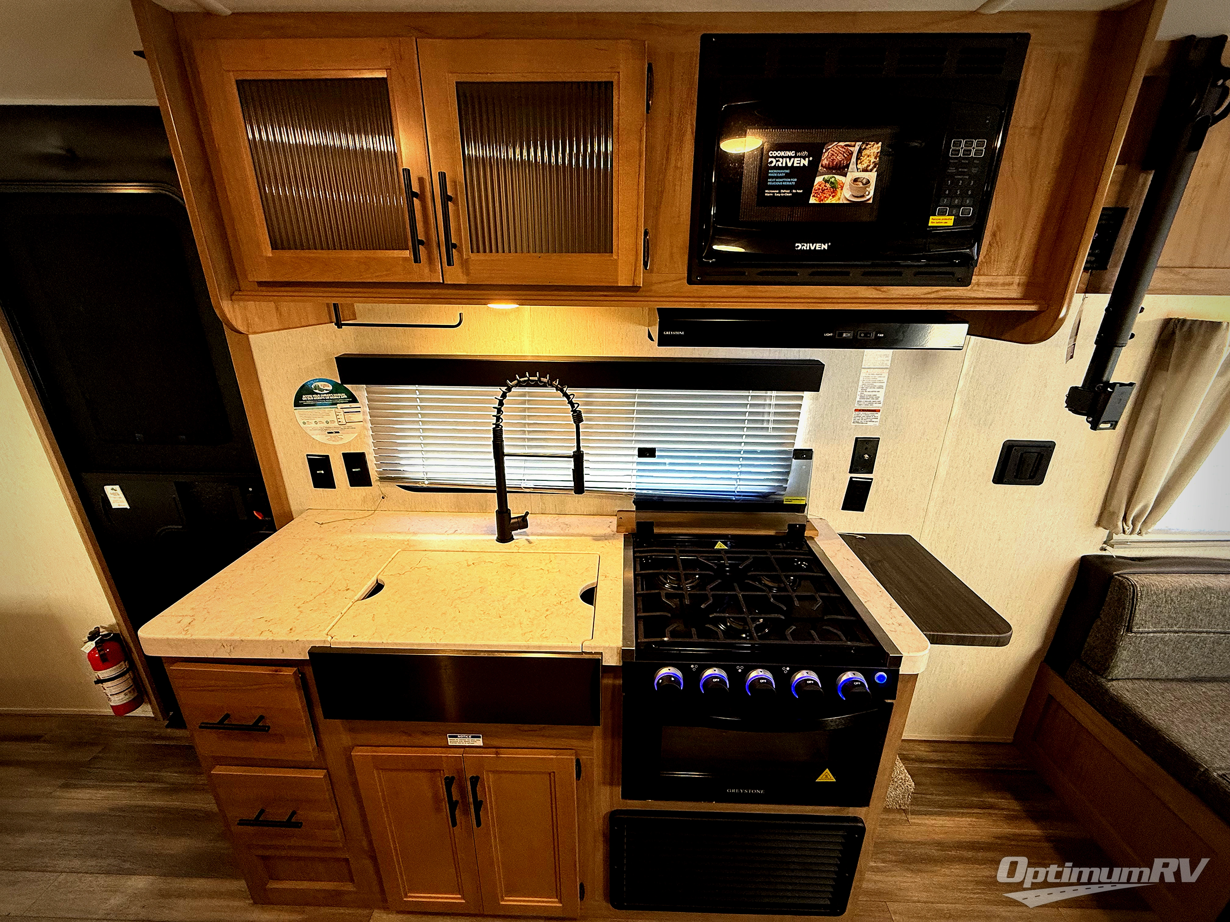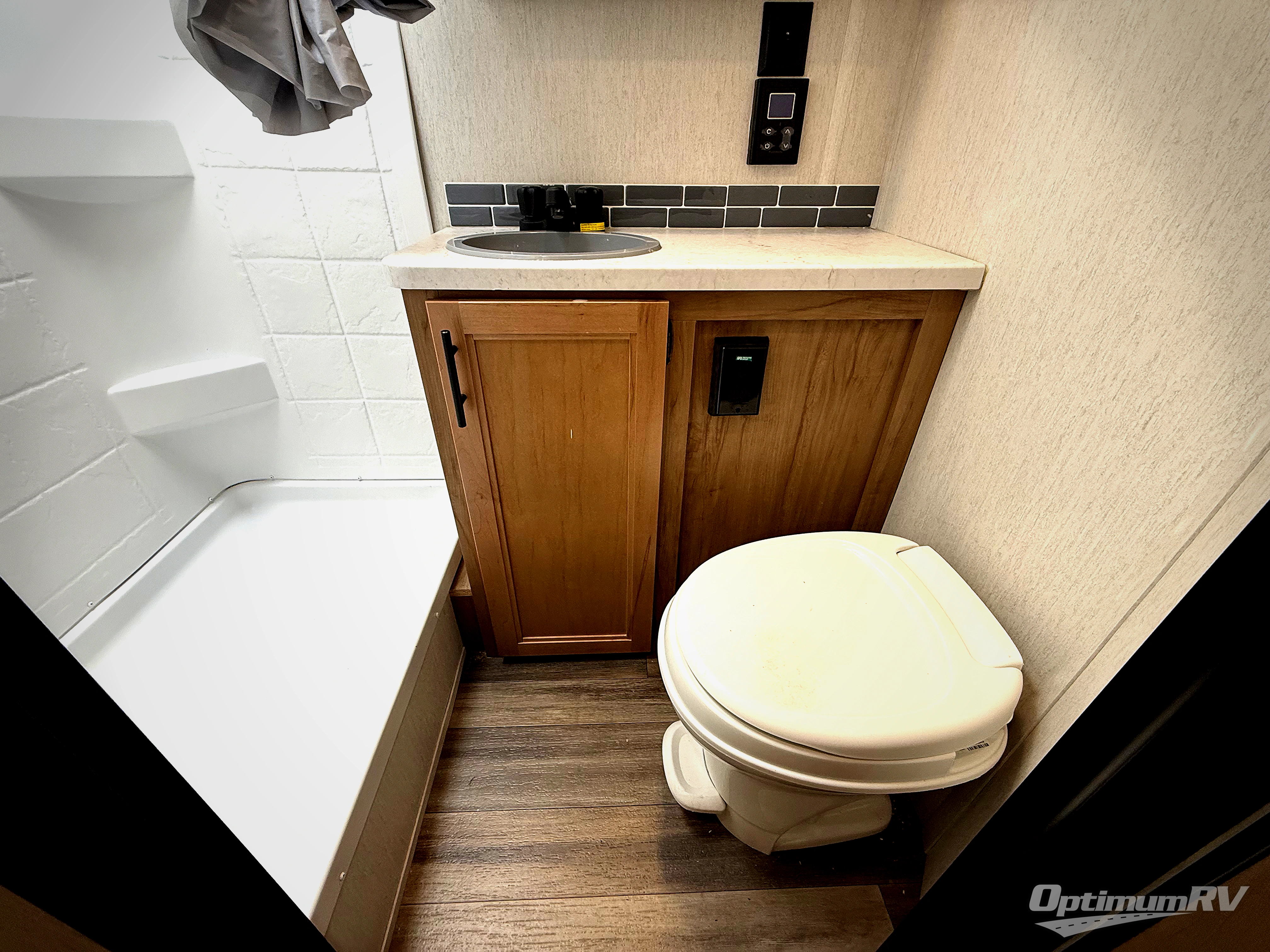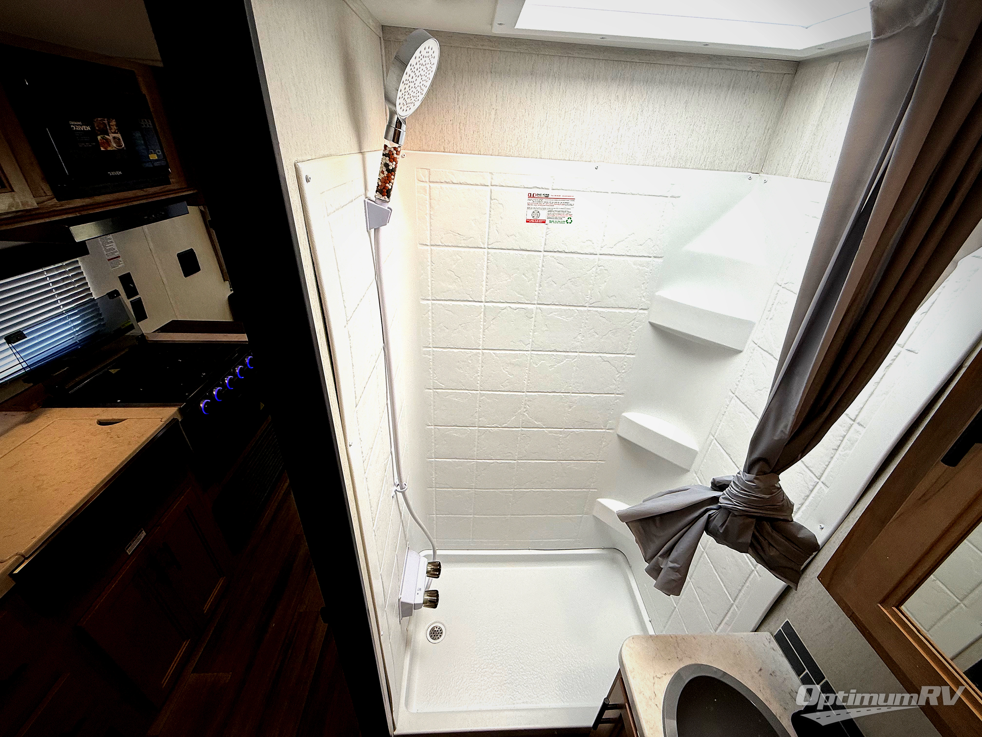 You and your favorite person will love this Cherokee Grey Wolf travel trailer for any weekend excursions away from home. The large U-shaped dinette in the rear of the unit makes it easy to invite fellow campers in for an evening snack and a card game or two. It can also easily accommodate extra overnight guests as the dinette folds down to create additional sleeping space for two. The queen bed up front will have you feeling right at home, and the full bath which is right across from the entry door is easily accessible from outside. There are plenty of storage options with the overhead cabinets, the pantry, and the wardrobes inside, plus there is also outside storage!