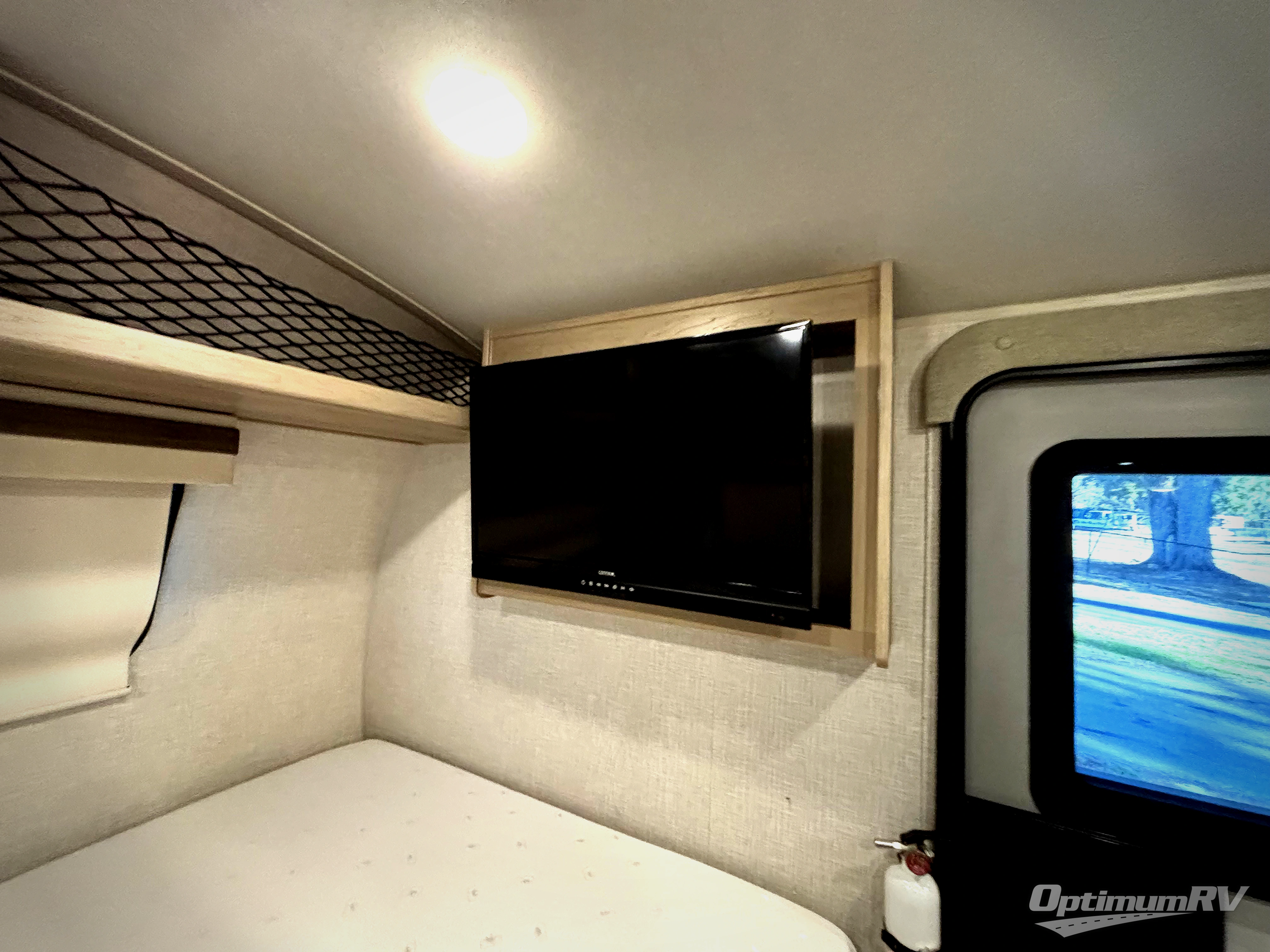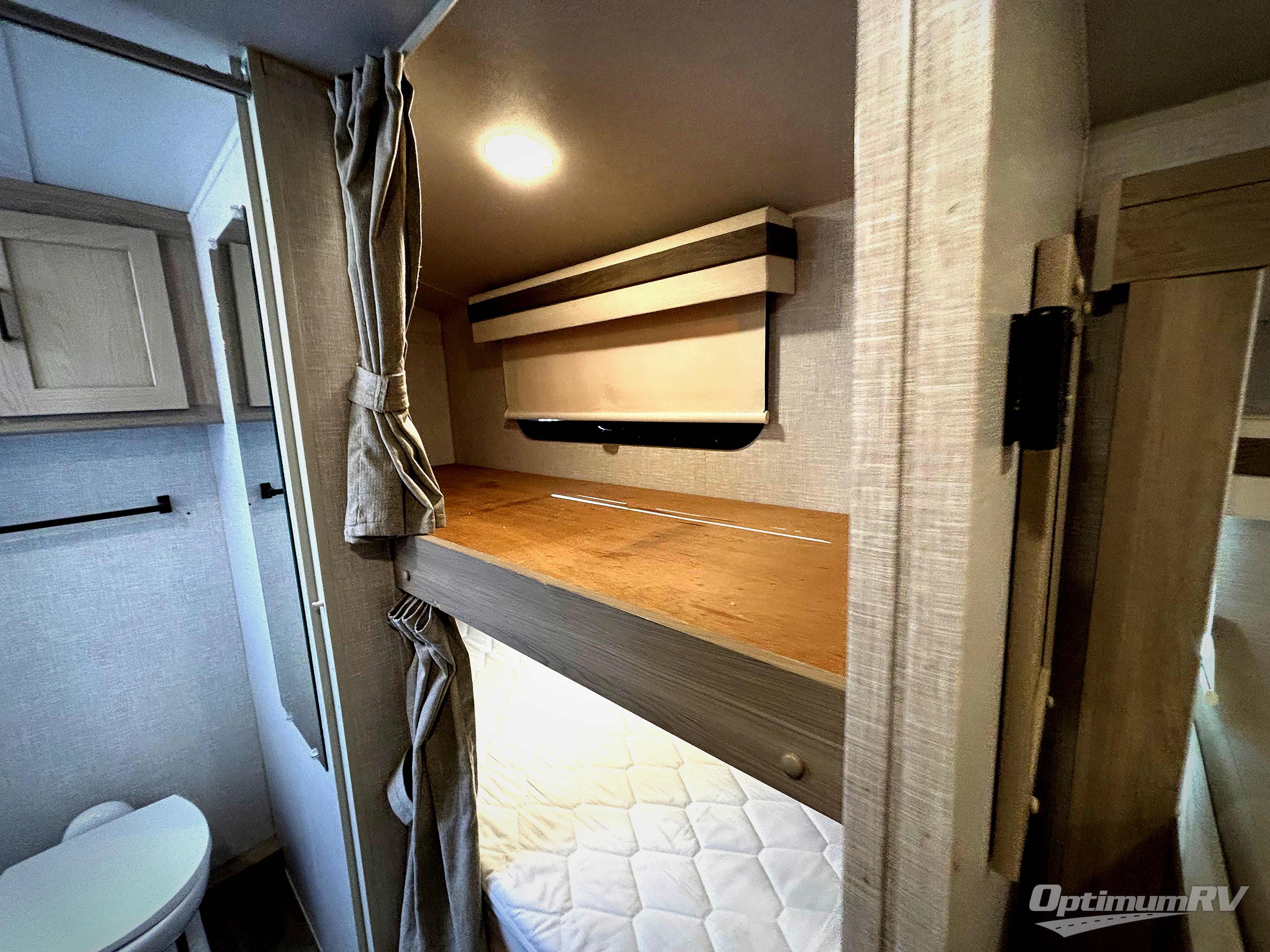Your going to love camping with your family or friends in this largest bunk model in the GEO Pro lineup. The bunk beds will be perfect for little ones, while you take the front full-size bed. There is also a 44" booth dinette within the slide out for additional sleeping and seating space. The kitchen includes everything the chef will need to prepare meals each day, including a three burner cooktop, a microwave oven, and a 12V refrigerator for perishables. If the weather is nice, you may just find the chef outdoors cooking on the outside griddle under the 14' power awning. And check out the exterior bike door that will be perfect for bikes, luggage, or extra camp gear!