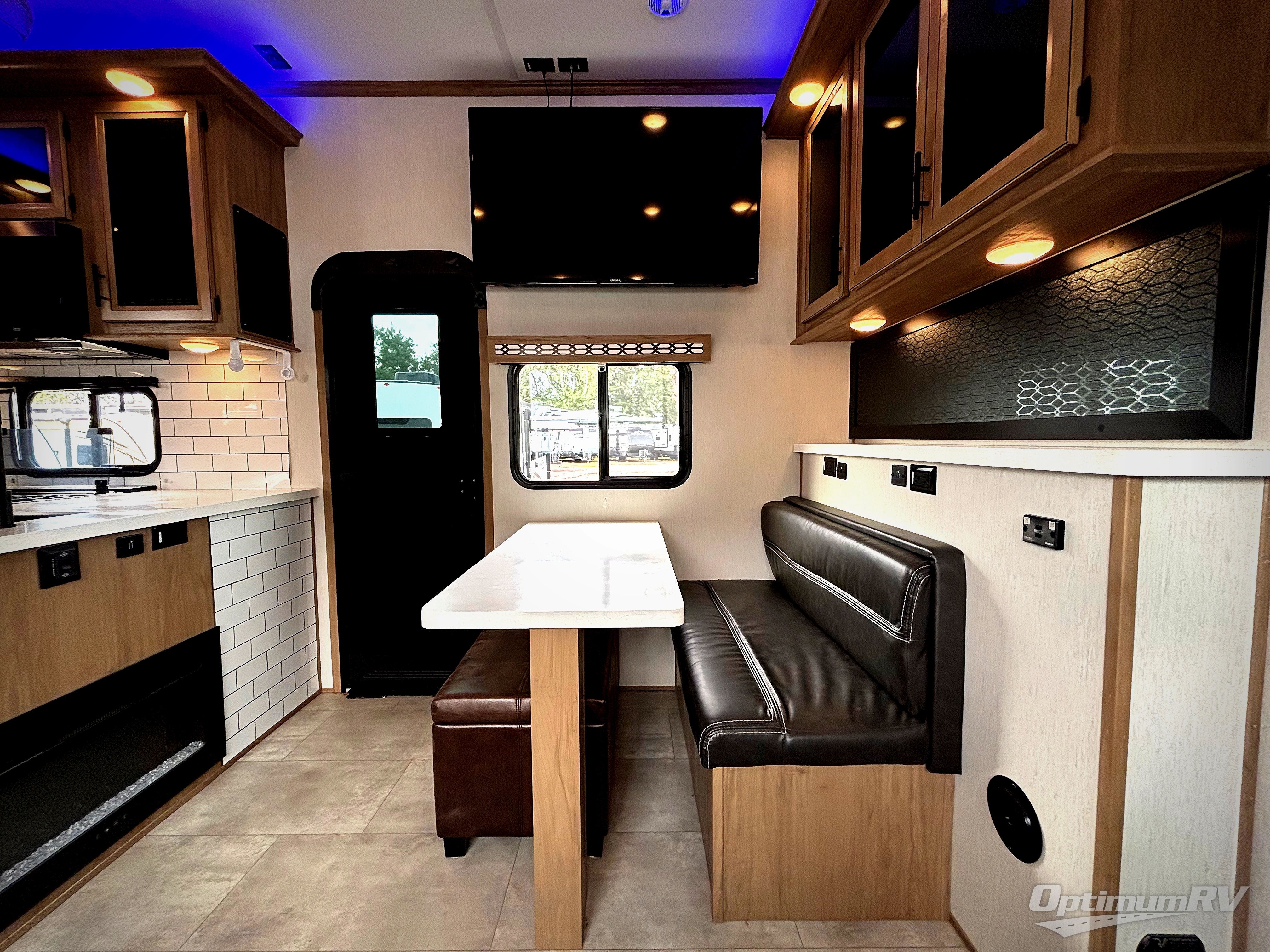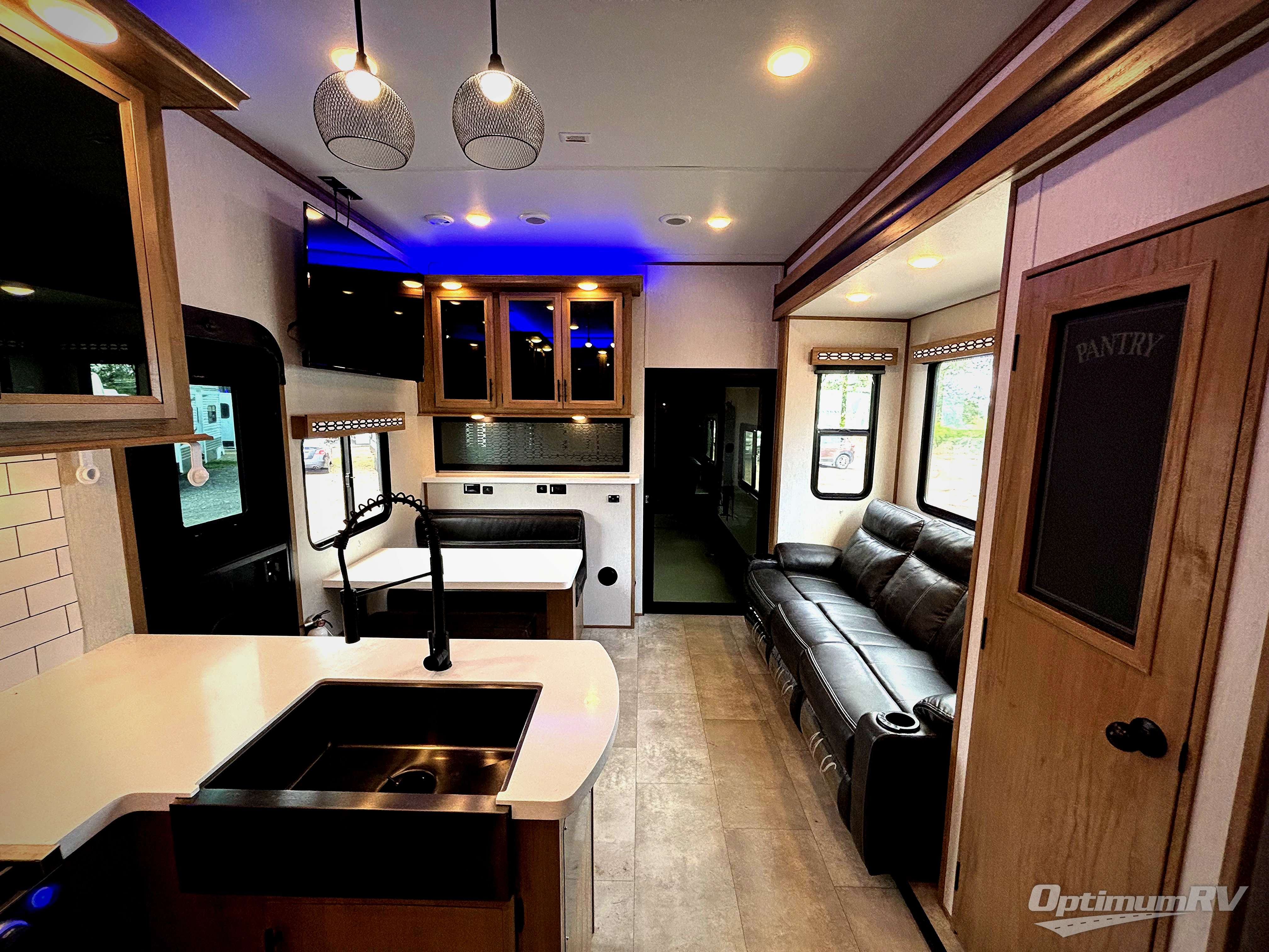 The whole gang can join in on the fun with this fifth wheel toy hauler! Everyone will have a comfortable place to sleep between the king bed in the front private bedroom, the raised queen bed above the flip-up sofas as well as loft space in the garage area, plus you can even use the sofa in the living area if needed. The large kitchen pantry is big enough to hold your favorite snacks and the dinette with bench seat is another place to enjoy your meals comfortably. You are sure to appreciate that this unit features two entry/exit doors as well as the rear ramp making it easy to load and unload, and when needing access to the garage space with all of your gear you don't have to come through the main living area. Two awnings offer you plenty of protected outdoor space so you can enjoy the fresh air as much as you like, even if the weather isn't perfect.