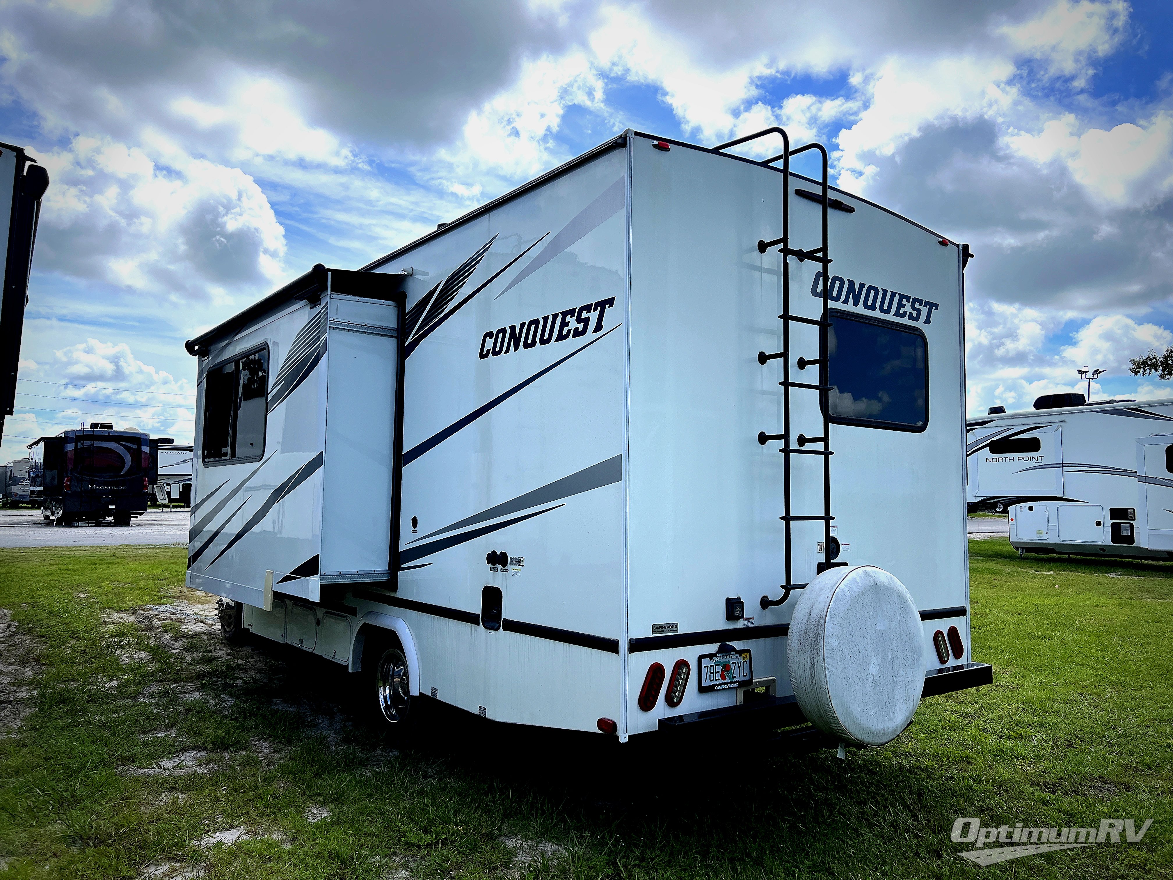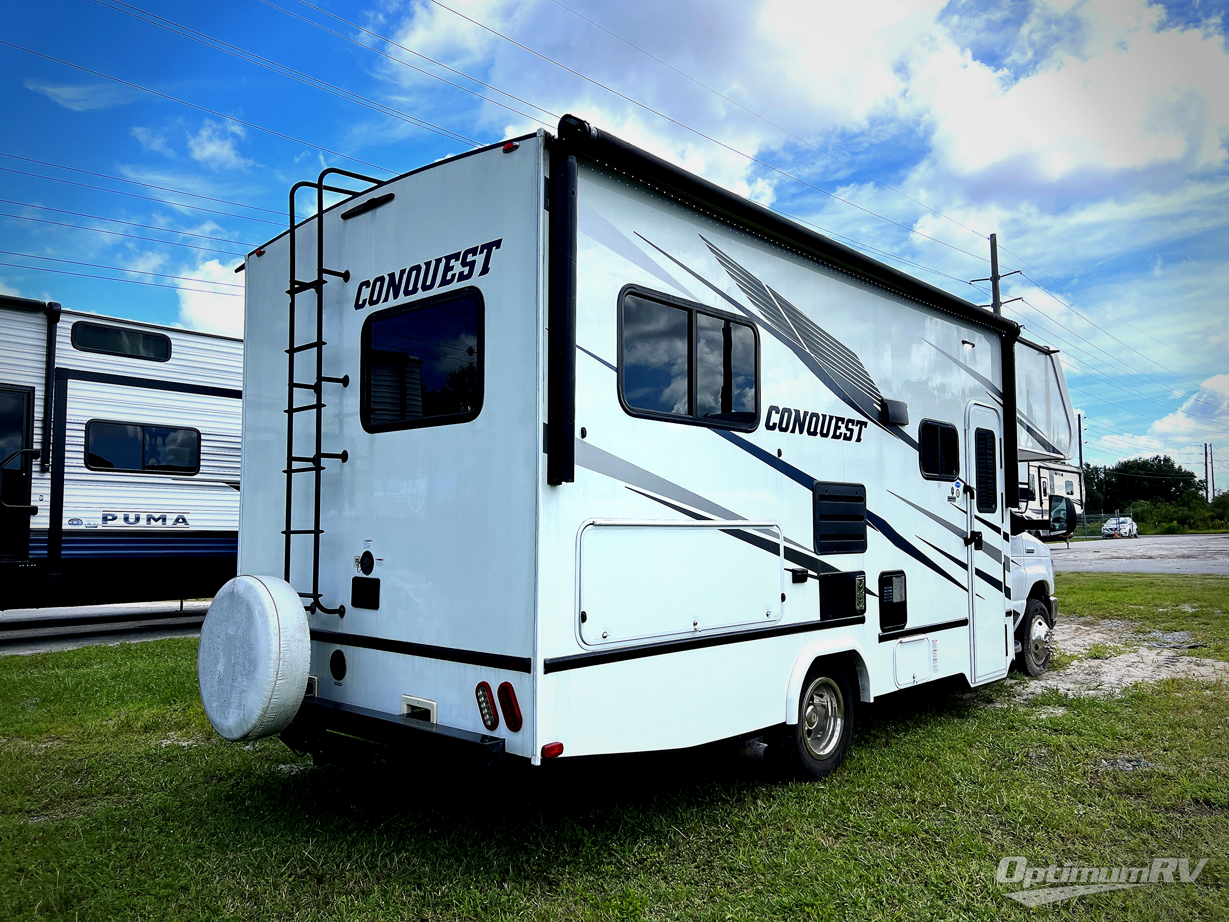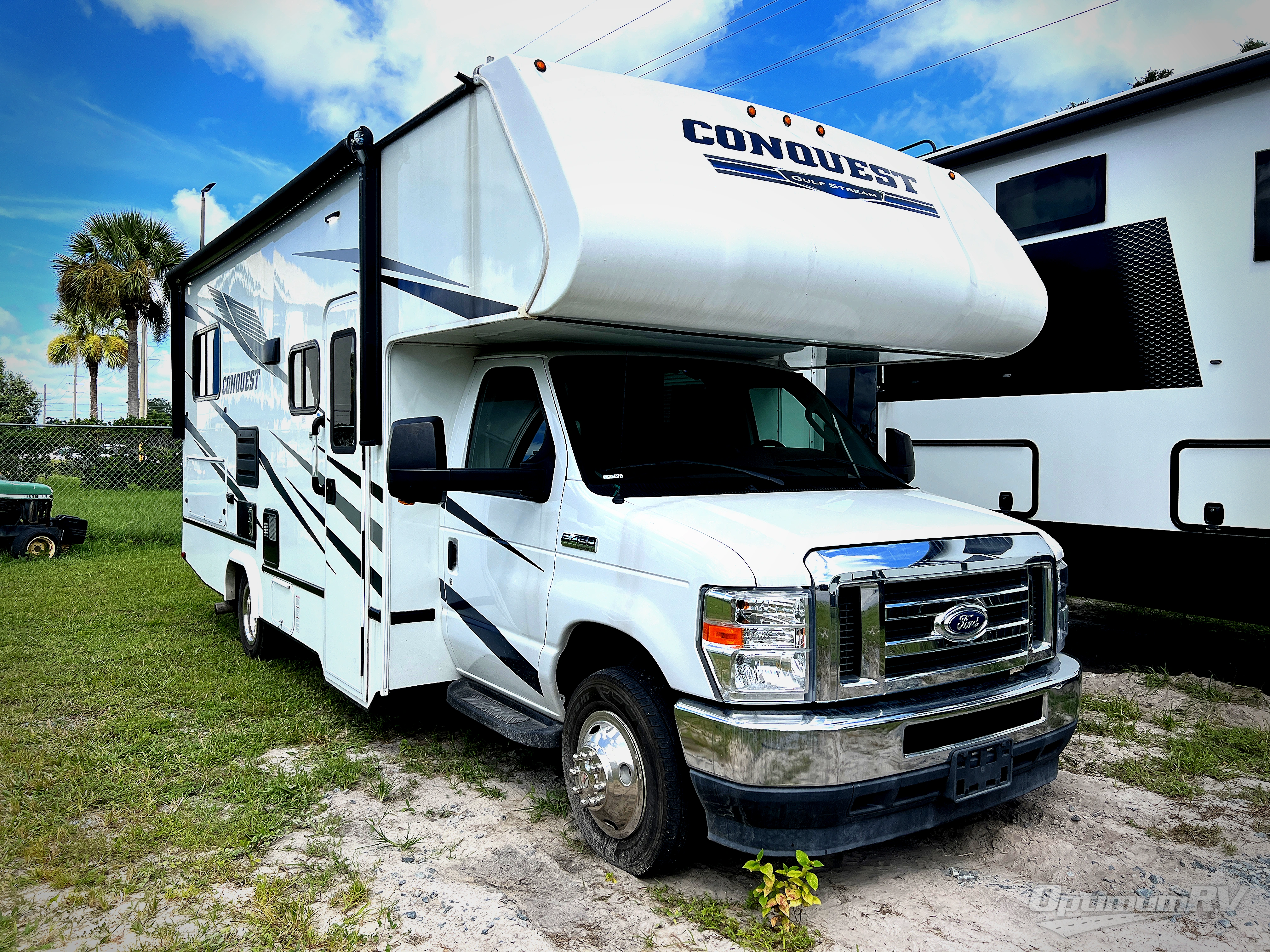Each one of these Gulf Stream RV Conquest Class C gas motorhomes is built with a Cradle of Strength® on either the Ford E350 and E450 depending on the model! Their construction also consists of a welded aluminum perimeter frame, a seamless EPDM rubber roof, and a high-gloss fiberglass exterior with Azdel synthetic substrate in the walls to prevent rotting. The included Conquest Luxury package comes with high-performance vinyl flooring throughout for an easier clean, all stainless steel appliances, and an AM/FM/CD stereo with built-in monitor and back-up camera. It also adds exterior conveniences like upgraded exterior lighting, upgraded exterior graphics, a friction-hinge entry door, and an electric awning with LED lights to relax under whether day or night!