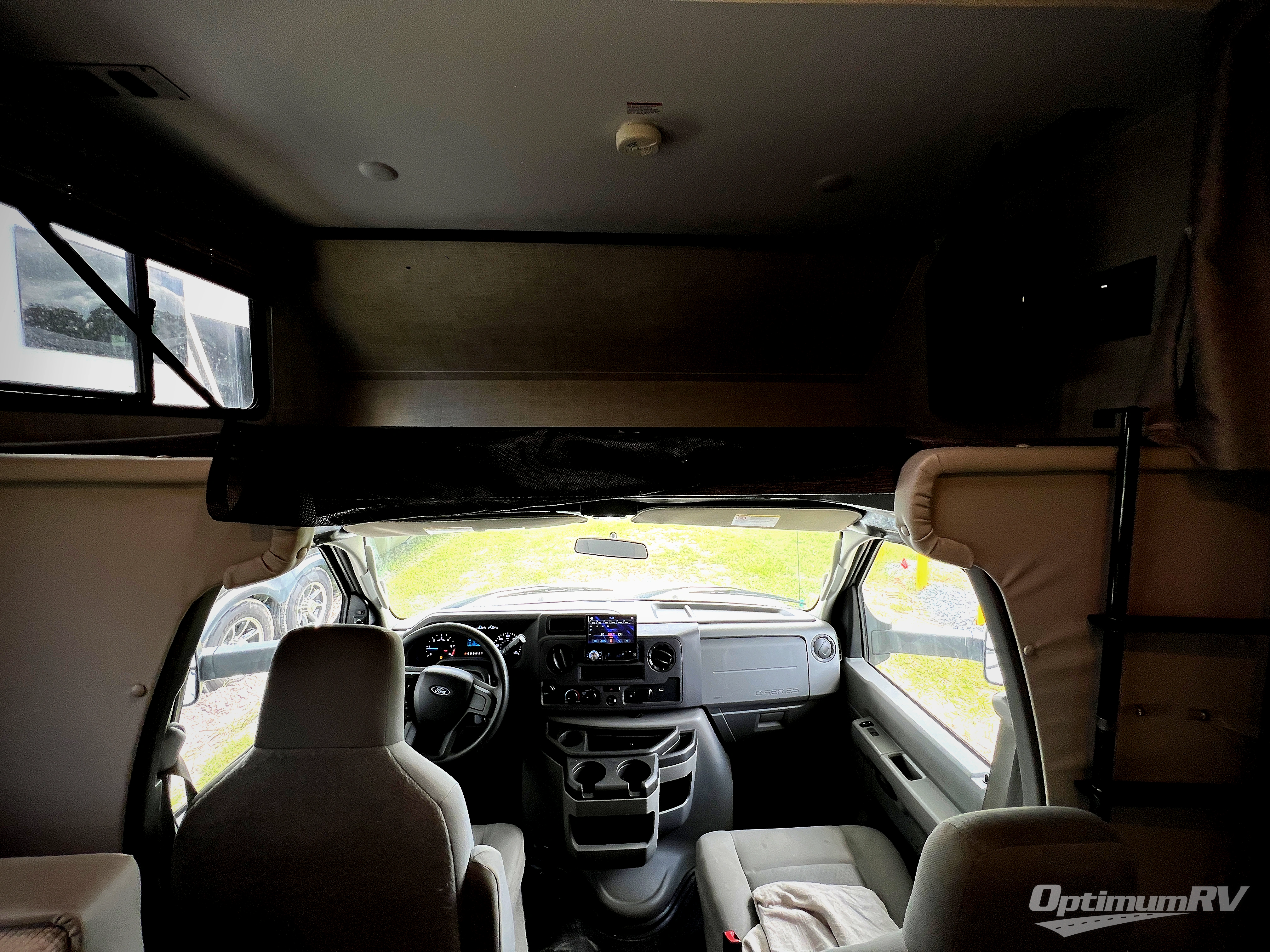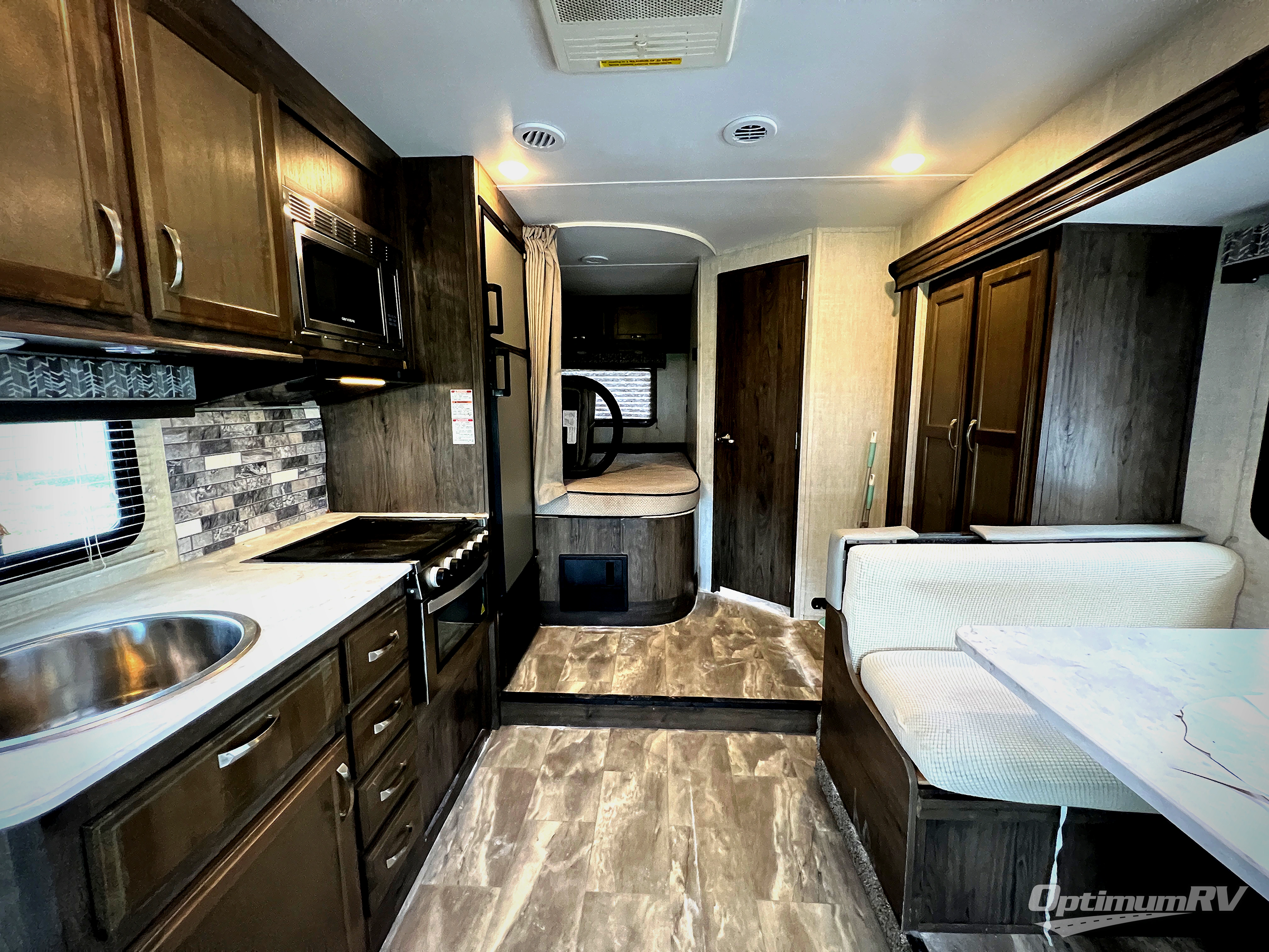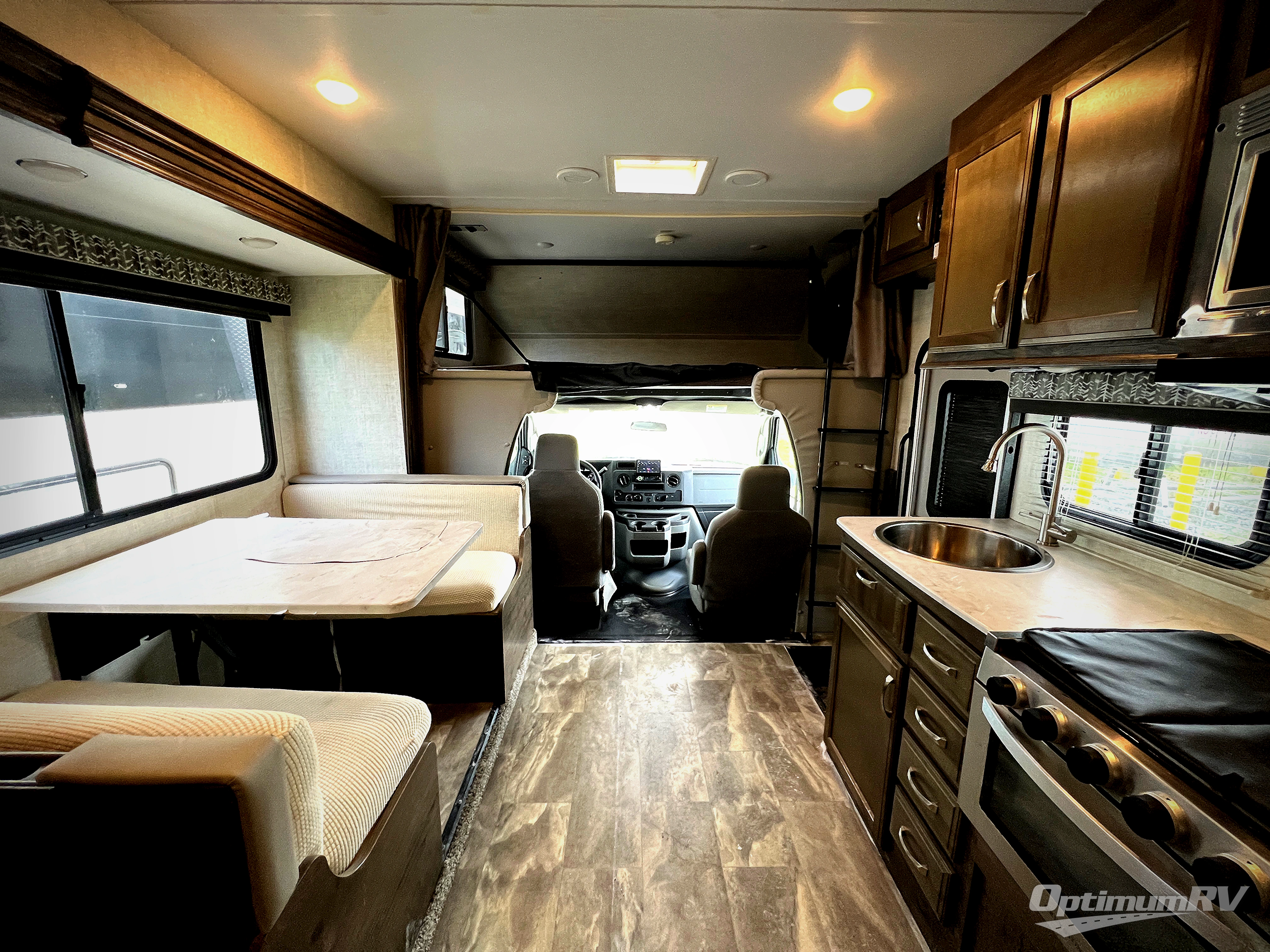 If you enjoy traveling the countryside during the day and pulling off into your favorite campground at night, then check out the comfortable accommodations that this Conquest Class C gas motorhome has to offer. For your group of five, you will have enough sleeping space between the RV queen bed in the rear, the overhead bunk above the cab, and the booth dinette. The kitchen provides everything you will need to cook all your meals and store leftovers, plus the dinette allows you to eat inside without worrying about bugs swarming you. The electric awning offers another living space outdoors, and it comes with LED lights so that you can party with the neighbors.