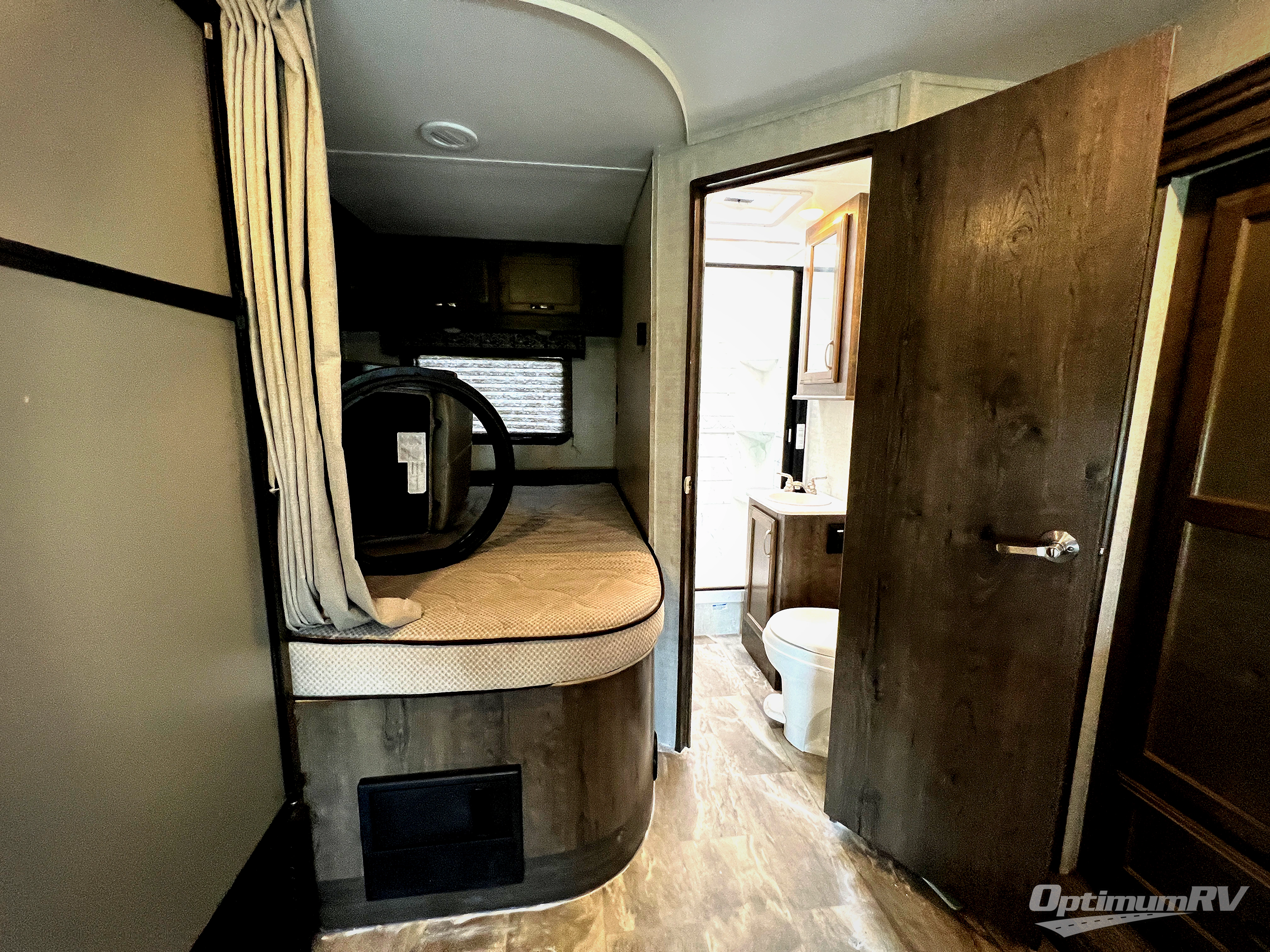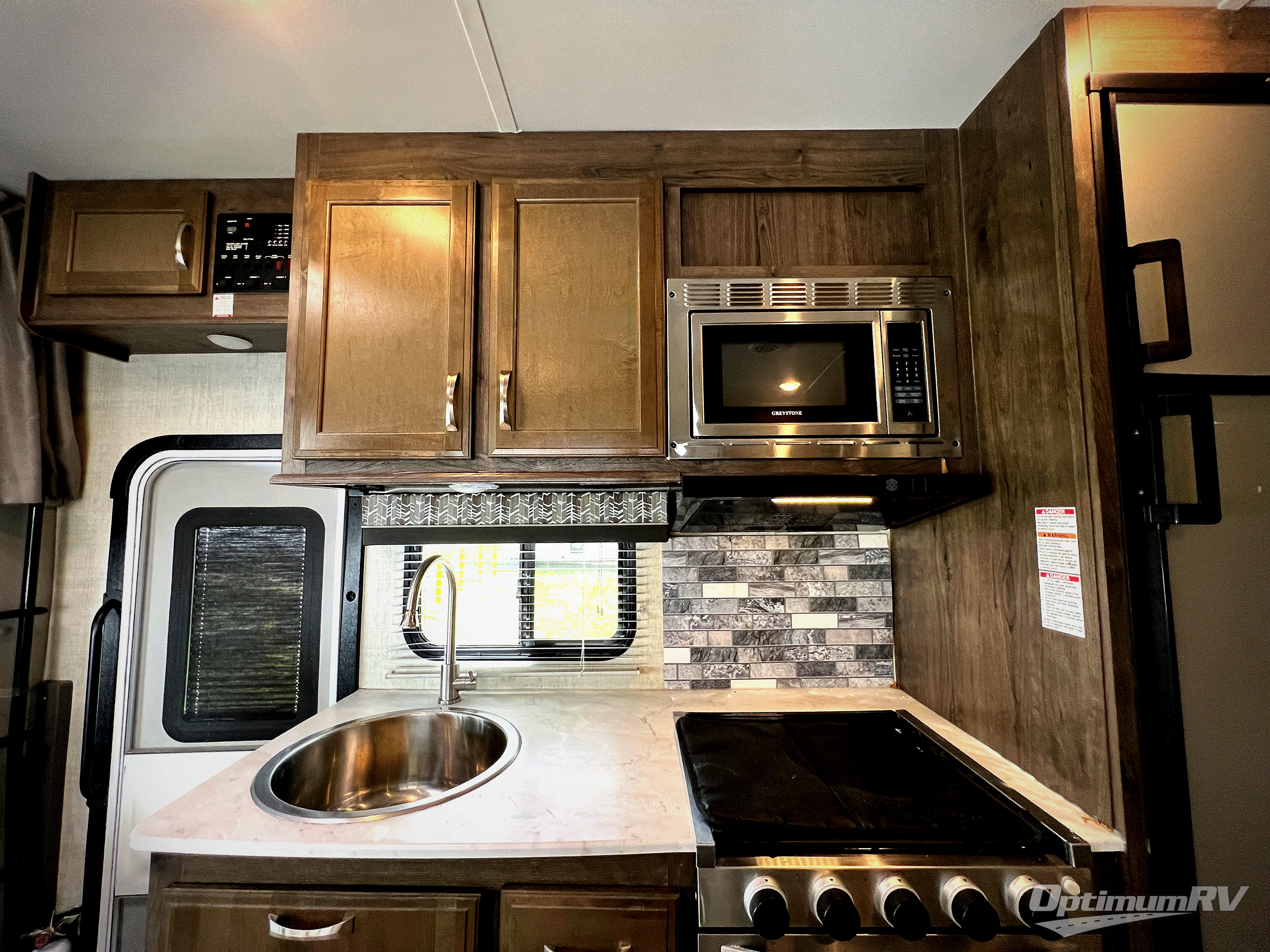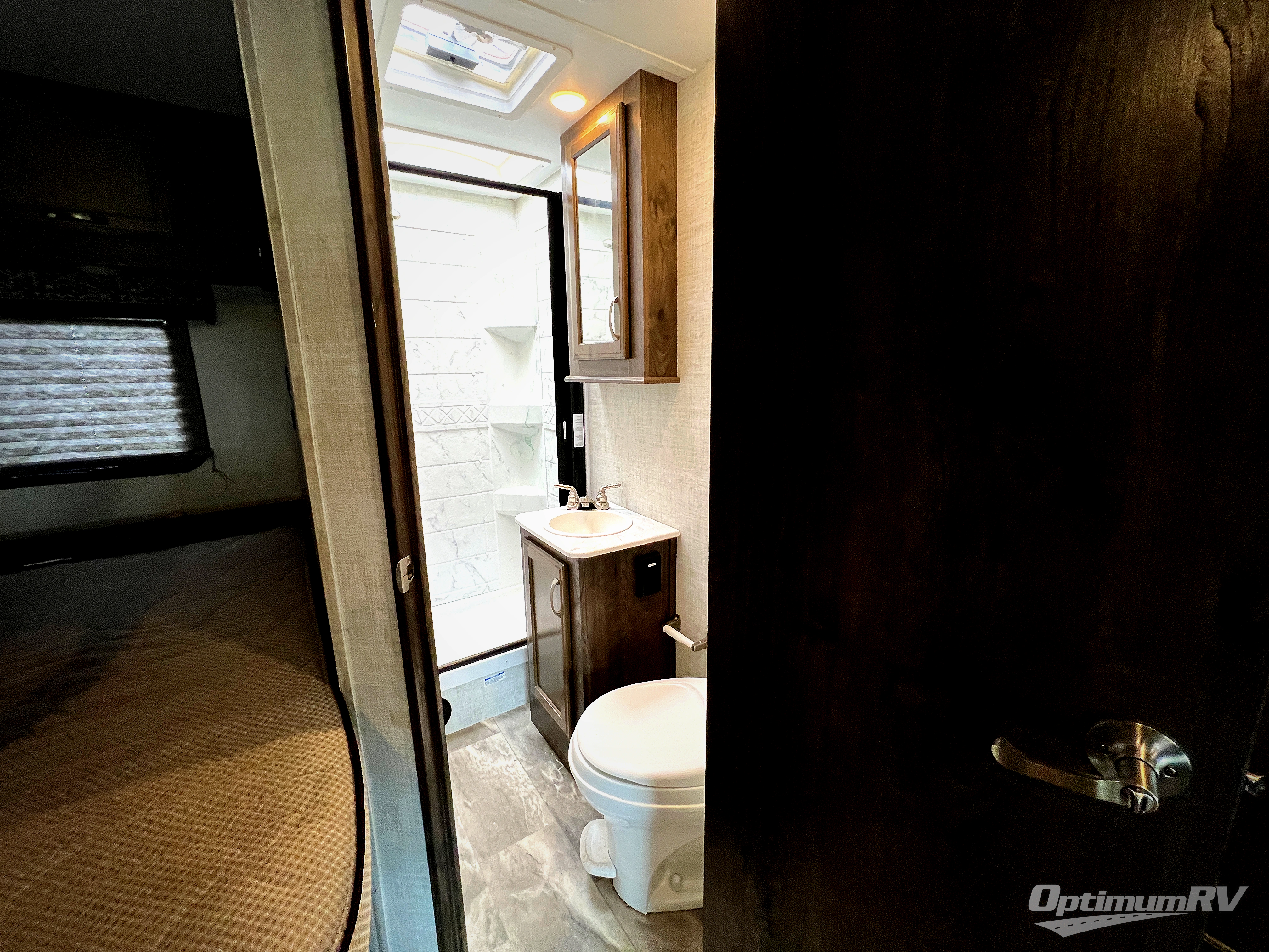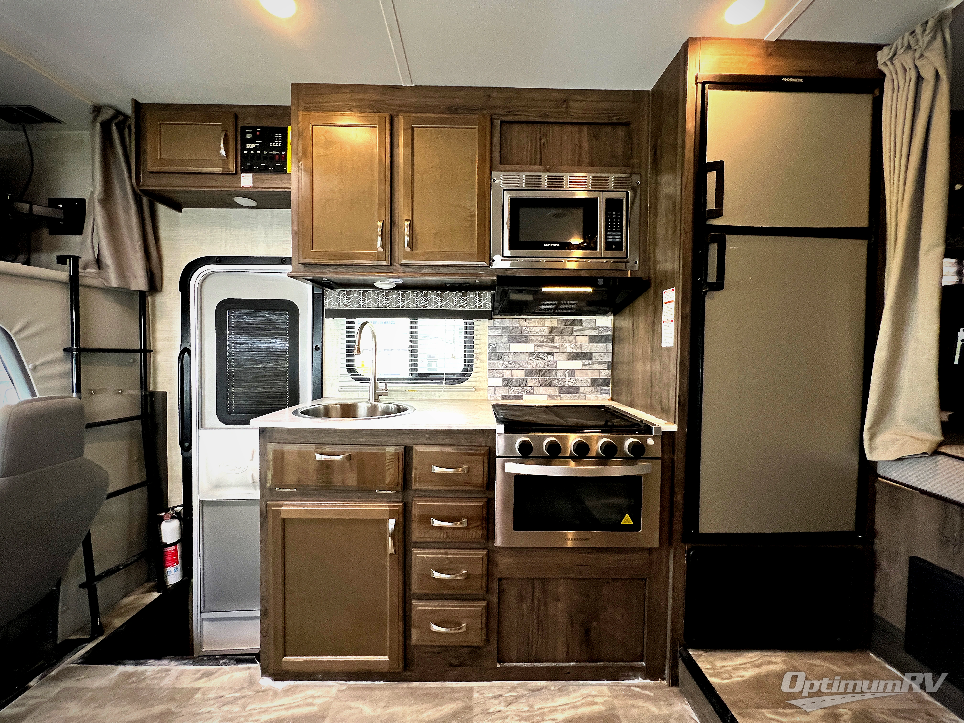 If you enjoy traveling the countryside during the day and pulling off into your favorite campground at night, then check out the comfortable accommodations that this Conquest Class C gas motorhome has to offer. For your group of five, you will have enough sleeping space between the RV queen bed in the rear, the overhead bunk above the cab, and the booth dinette. The kitchen provides everything you will need to cook all your meals and store leftovers, plus the dinette allows you to eat inside without worrying about bugs swarming you. The electric awning offers another living space outdoors, and it comes with LED lights so that you can party with the neighbors.