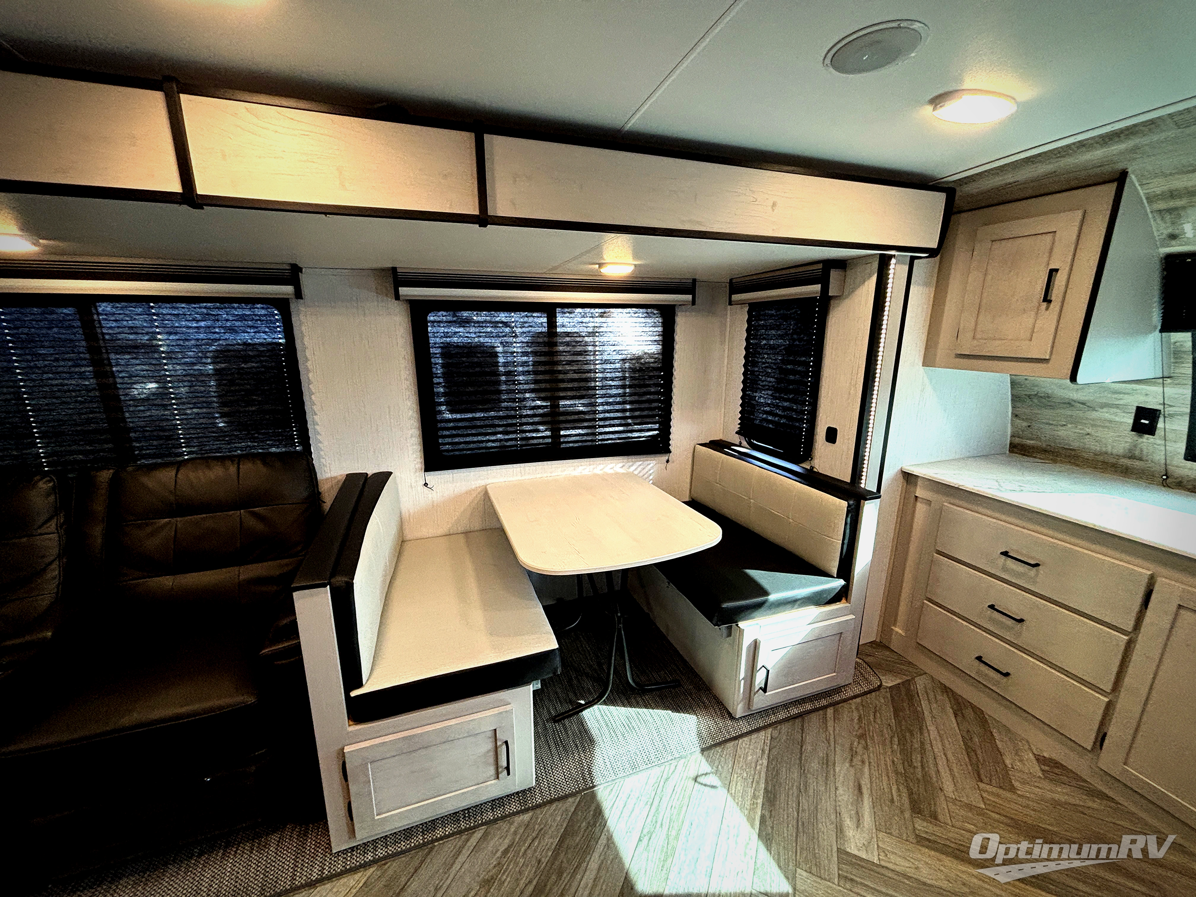 Dual entry doors in this travel trailer will allow you to enter in through the main living area/kitchen, or the rear master bedroom. You will love having a king bed to rest on each night, a wardrobe and closet to store your clothes, and a dual entry bath. After you've spent the day outdoors hiking or biking, plan to spend your evening relaxing on the sofa or playing a game at the booth dinette. The front kitchen includes plenty of counter space, two pantries, plus a three burner cooktop to cook meals on.