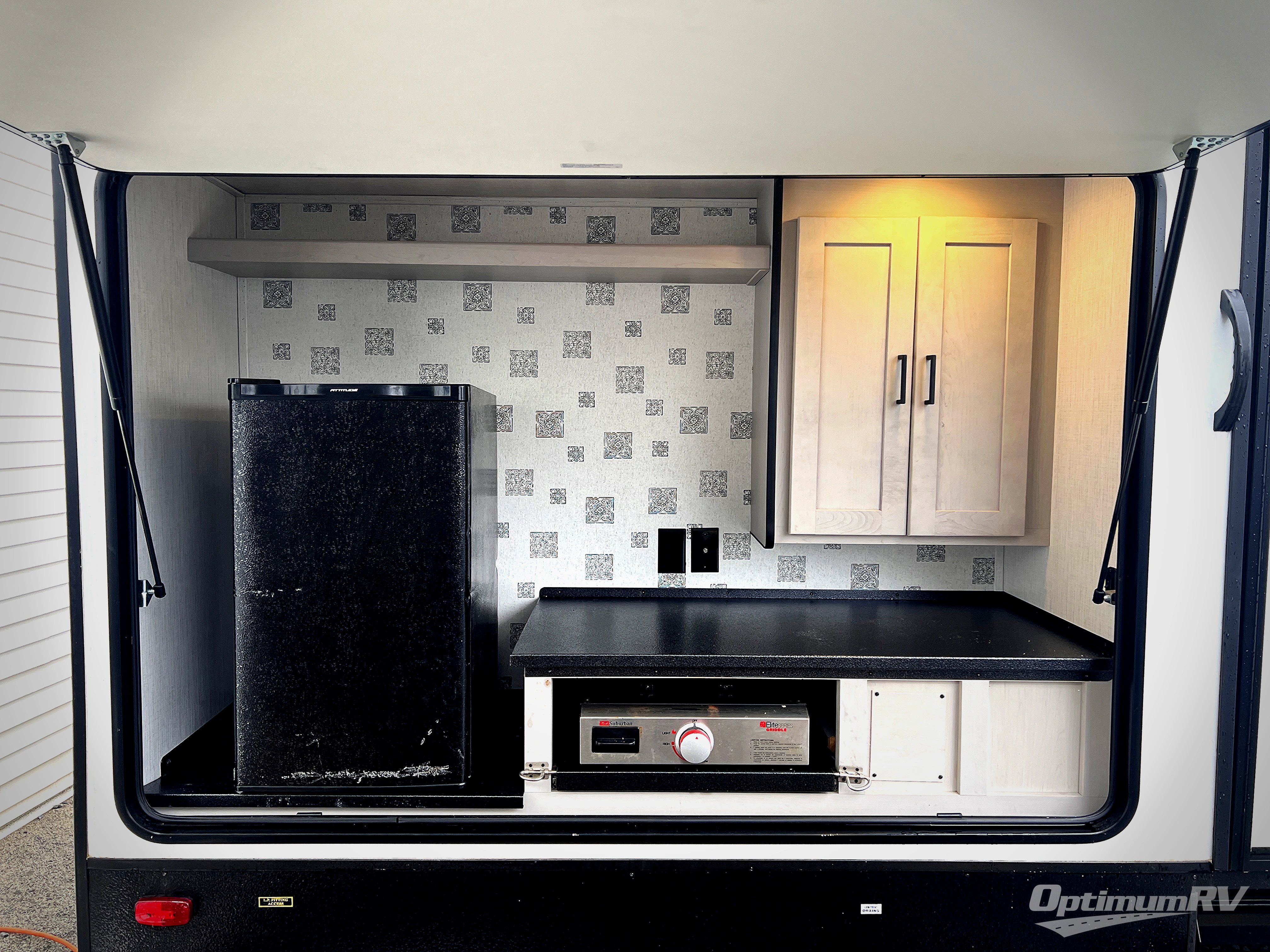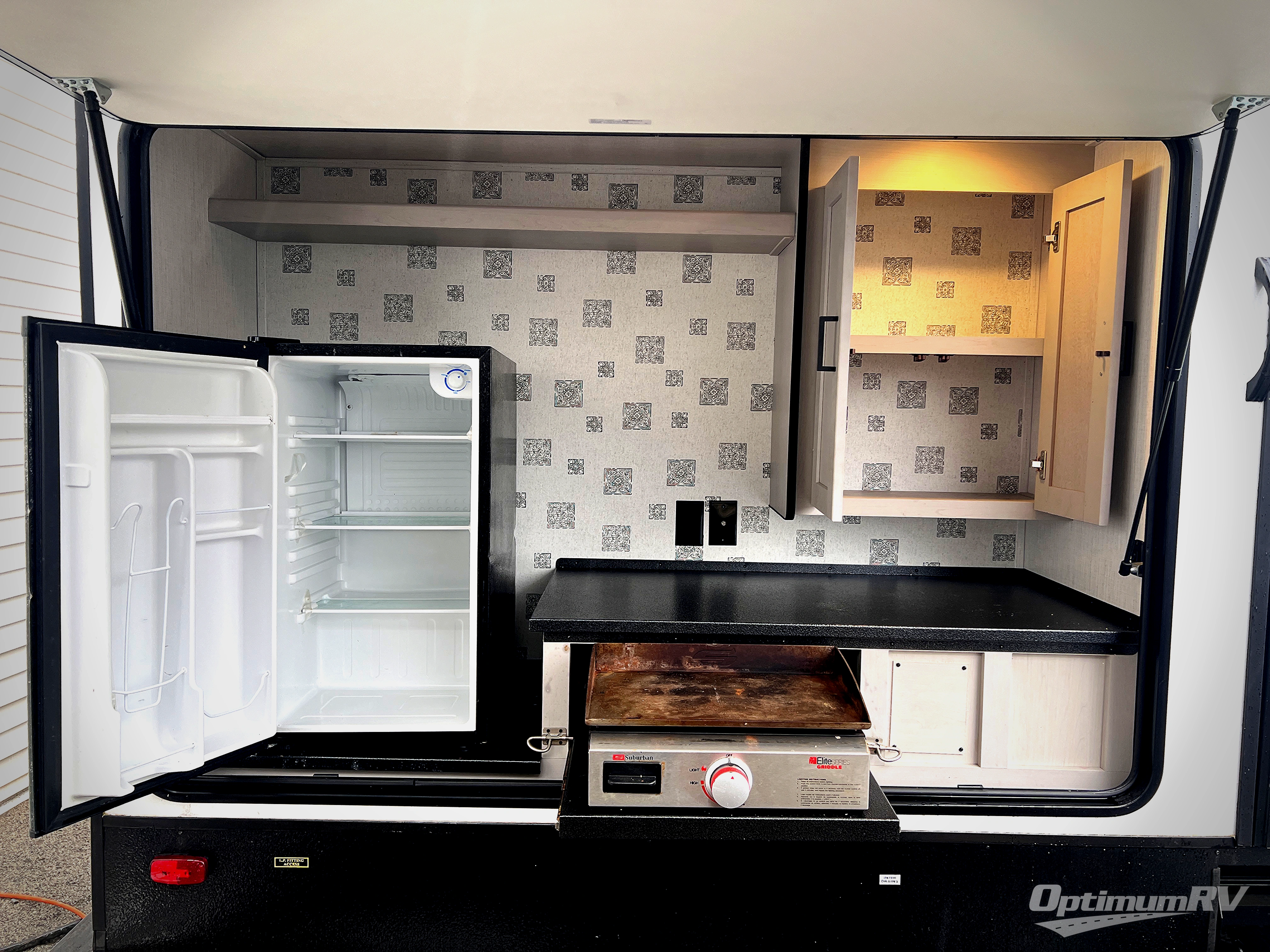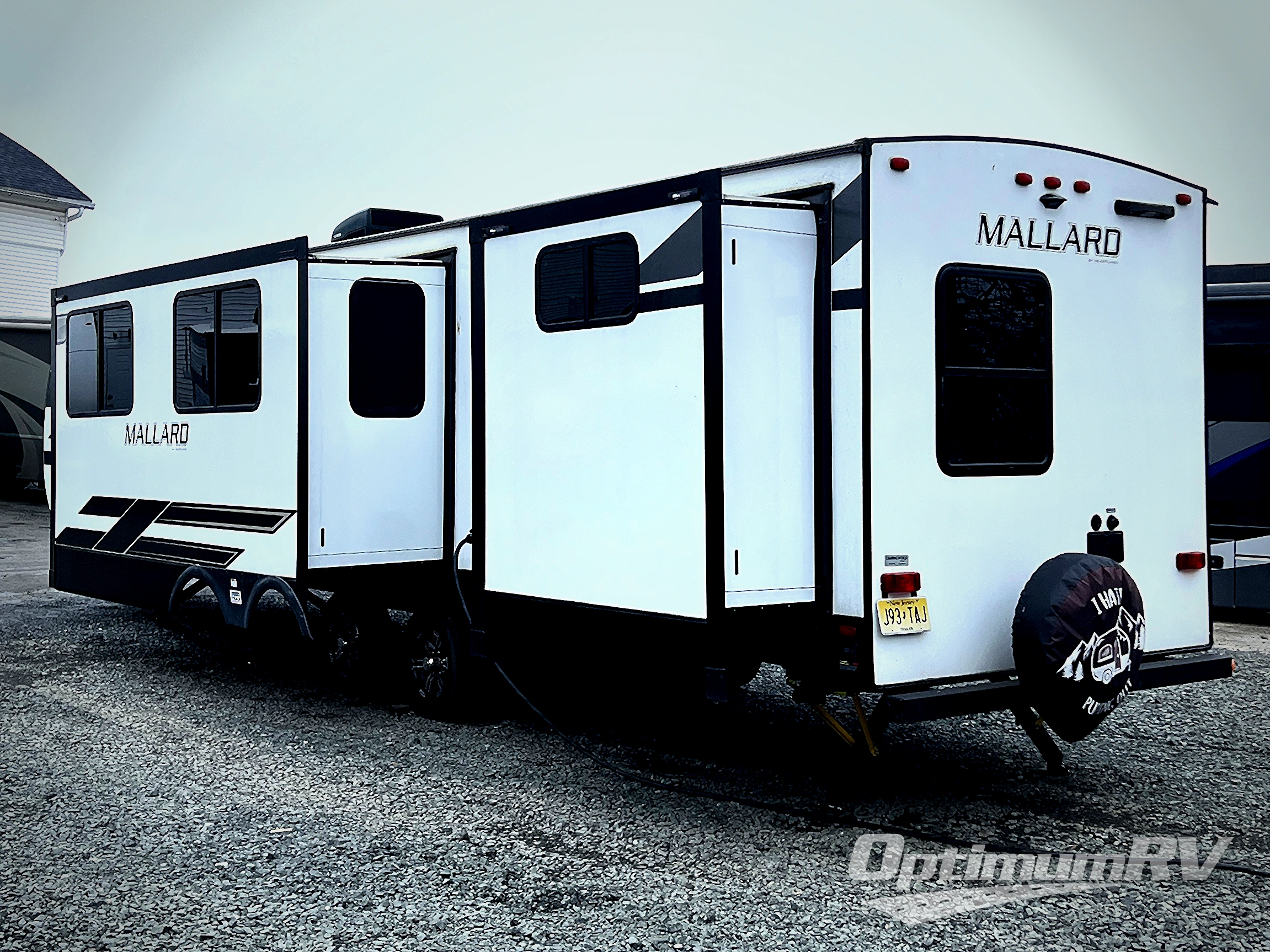 The rear private bunkhouse on this Mallard travel trailer provides triple bunk beds and a slide out offering more space to play indoors, and having dual entry in this trailer makes it easy to enter and exit to get back outside to make a meal on the outdoor kitchen or relax under the 18' power awning. Whipping up your favorite meals inside can be fun and easy with the complete kitchen including a center island which everyone will love. You will be able to retire to your own king bed with plenty of storage for your clothing and such, plus the exterior pass-through storage offers more space for the outdoor gear.