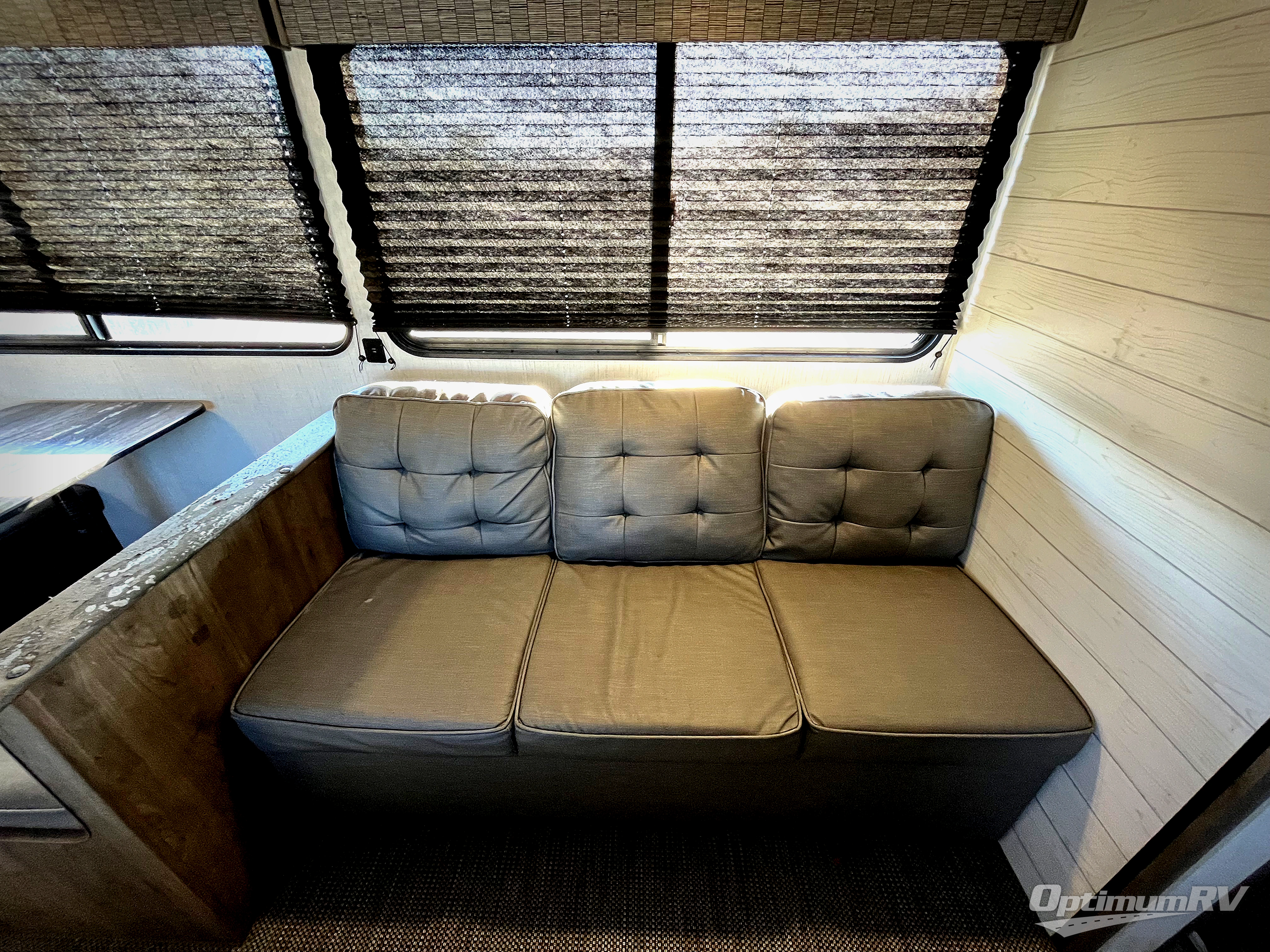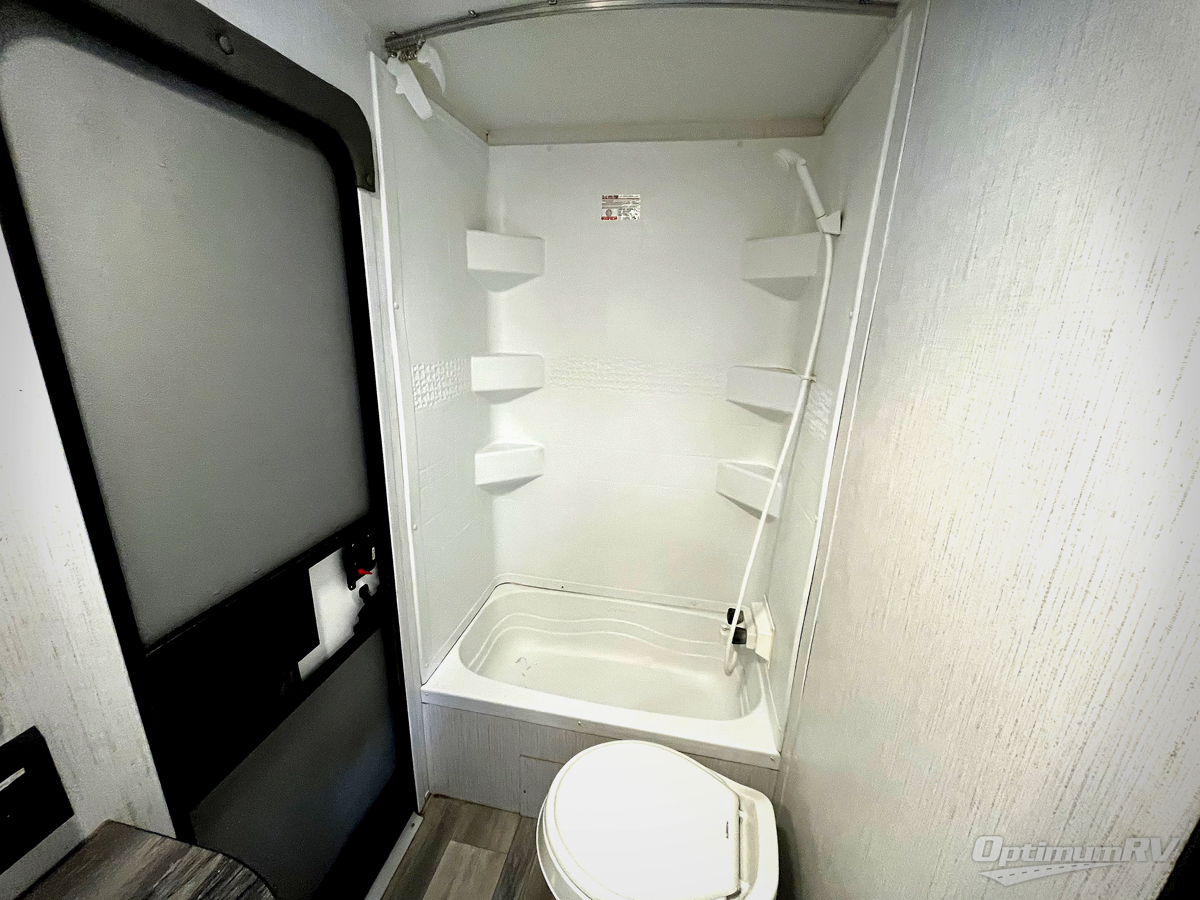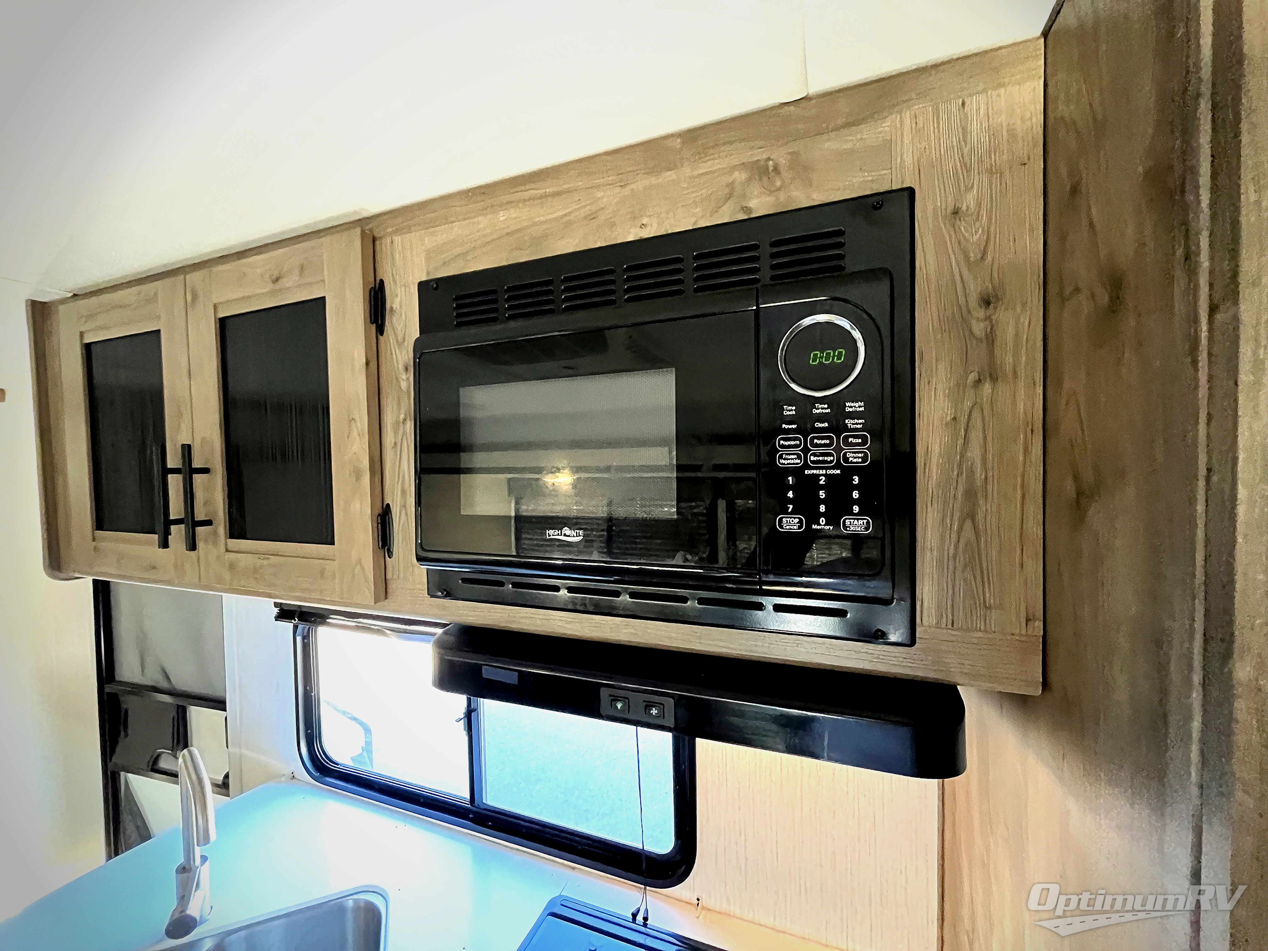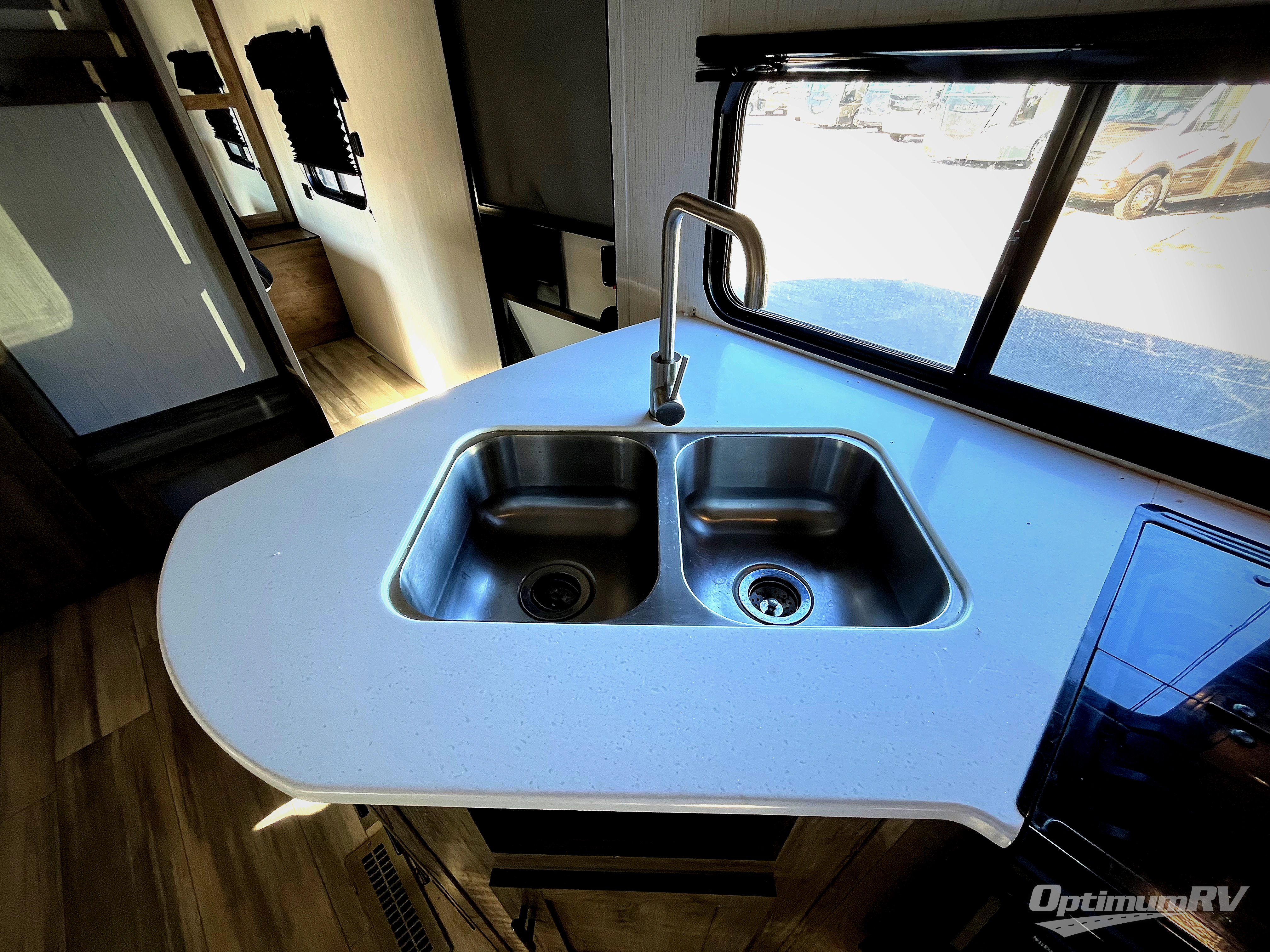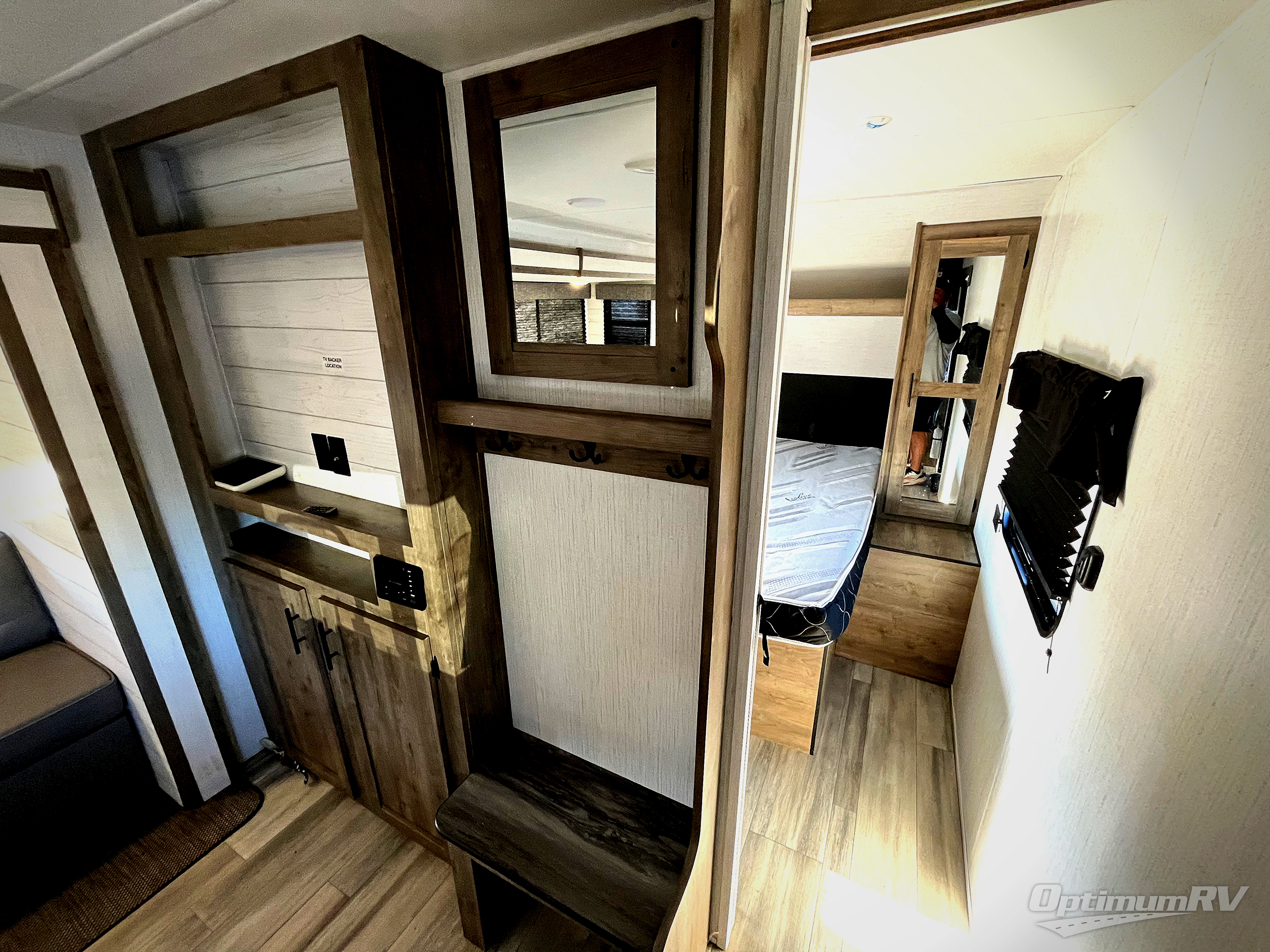 The kids are ready, are you? They are excited about hanging out on the double-size bunks with a ladder after hiking and exploring around the campgrounds. A feature you are sure to like is the exterior entry door into the full bathroom which allows you to easily access the bathroom from outside when relaxing under the power awning. The main living and kitchen area offers a slide out which includes a booth dinette and sofa and provides more floor space in this area and the kitchen. The cook will have full amenities including a three-burner cooktop and microwave oven, plus an 8 cu. ft. double door refrigerator. And when you need privacy, open up the sliding door into the front bedroom and take a nap on the queen bed.