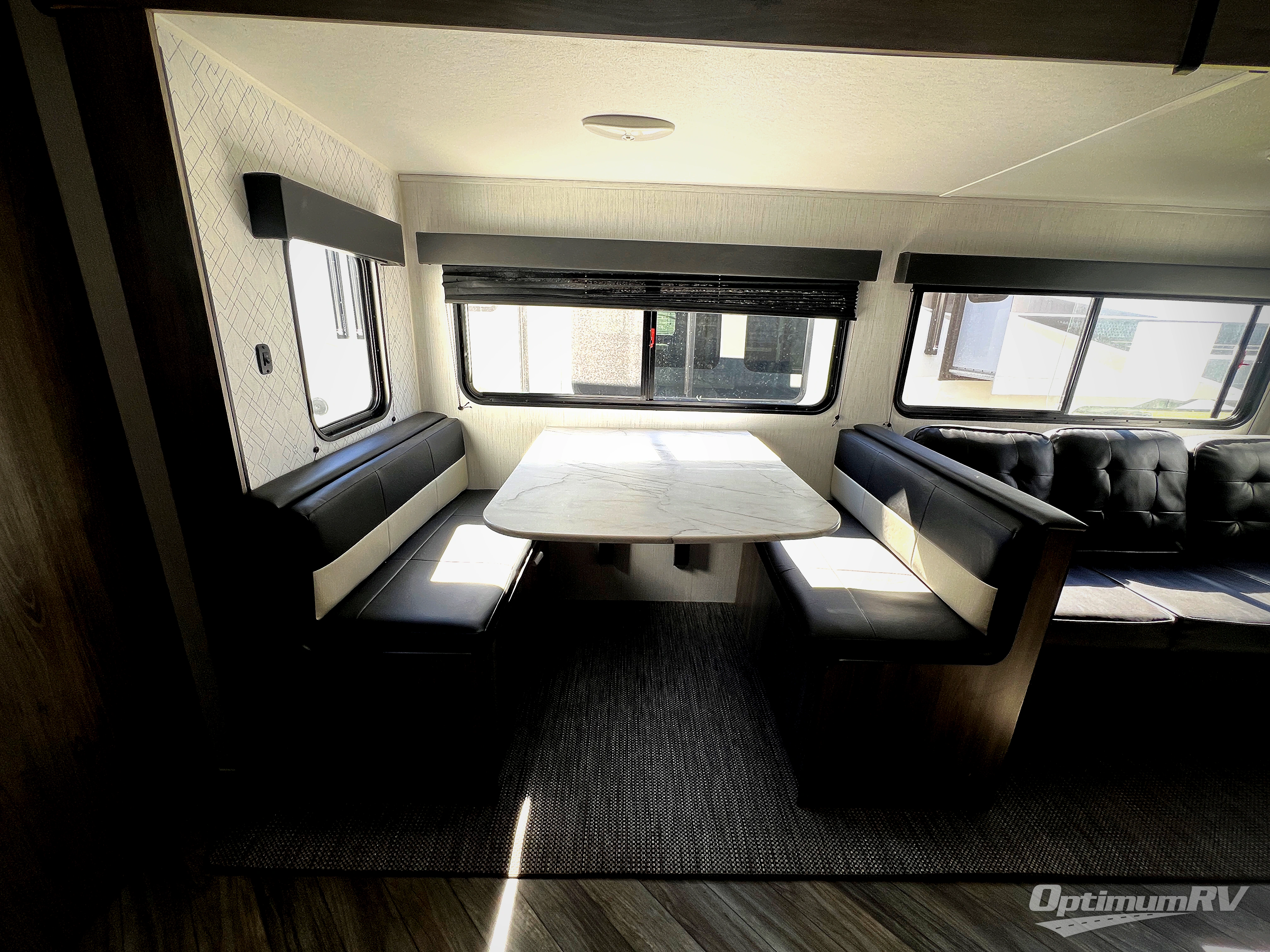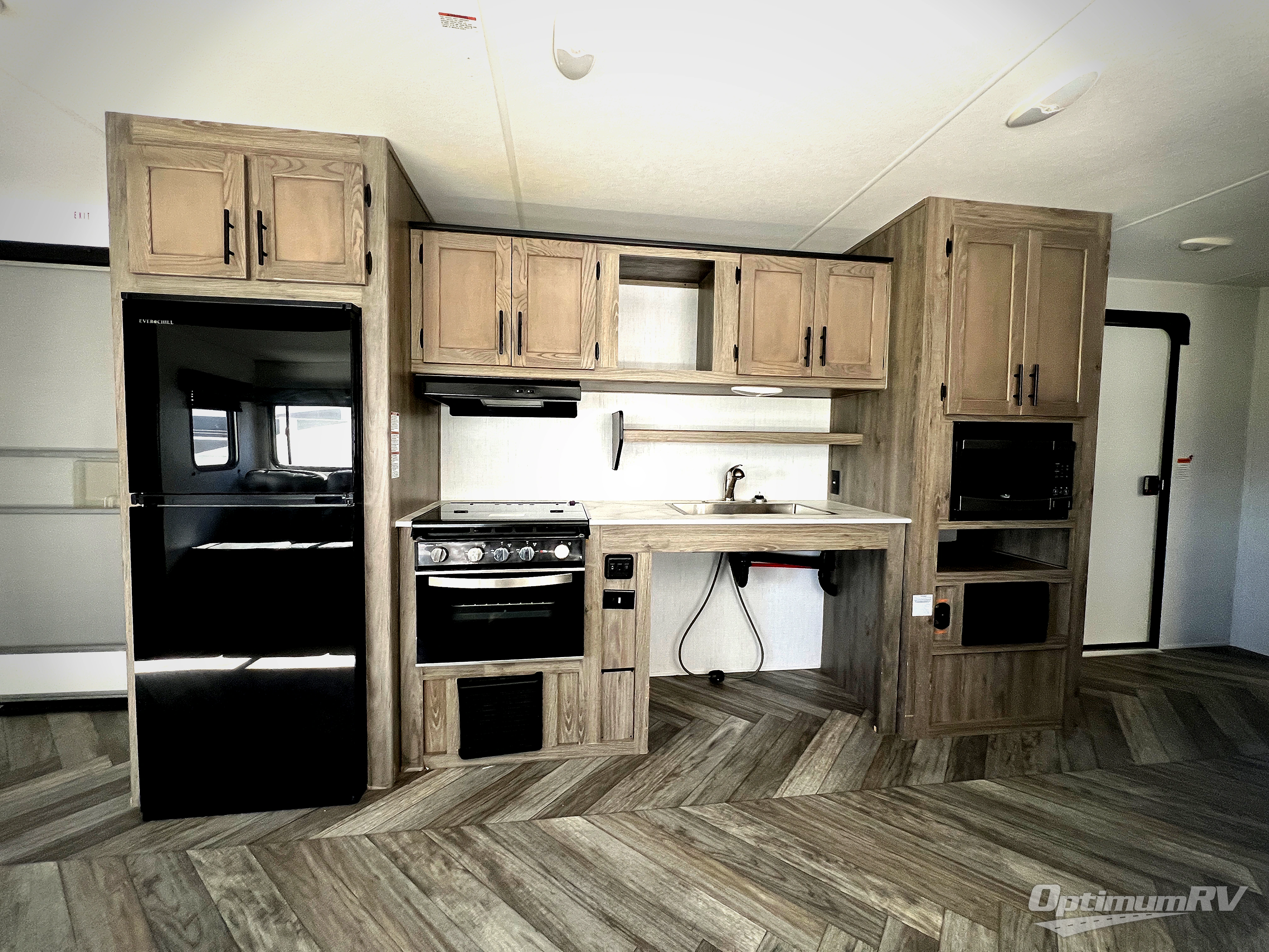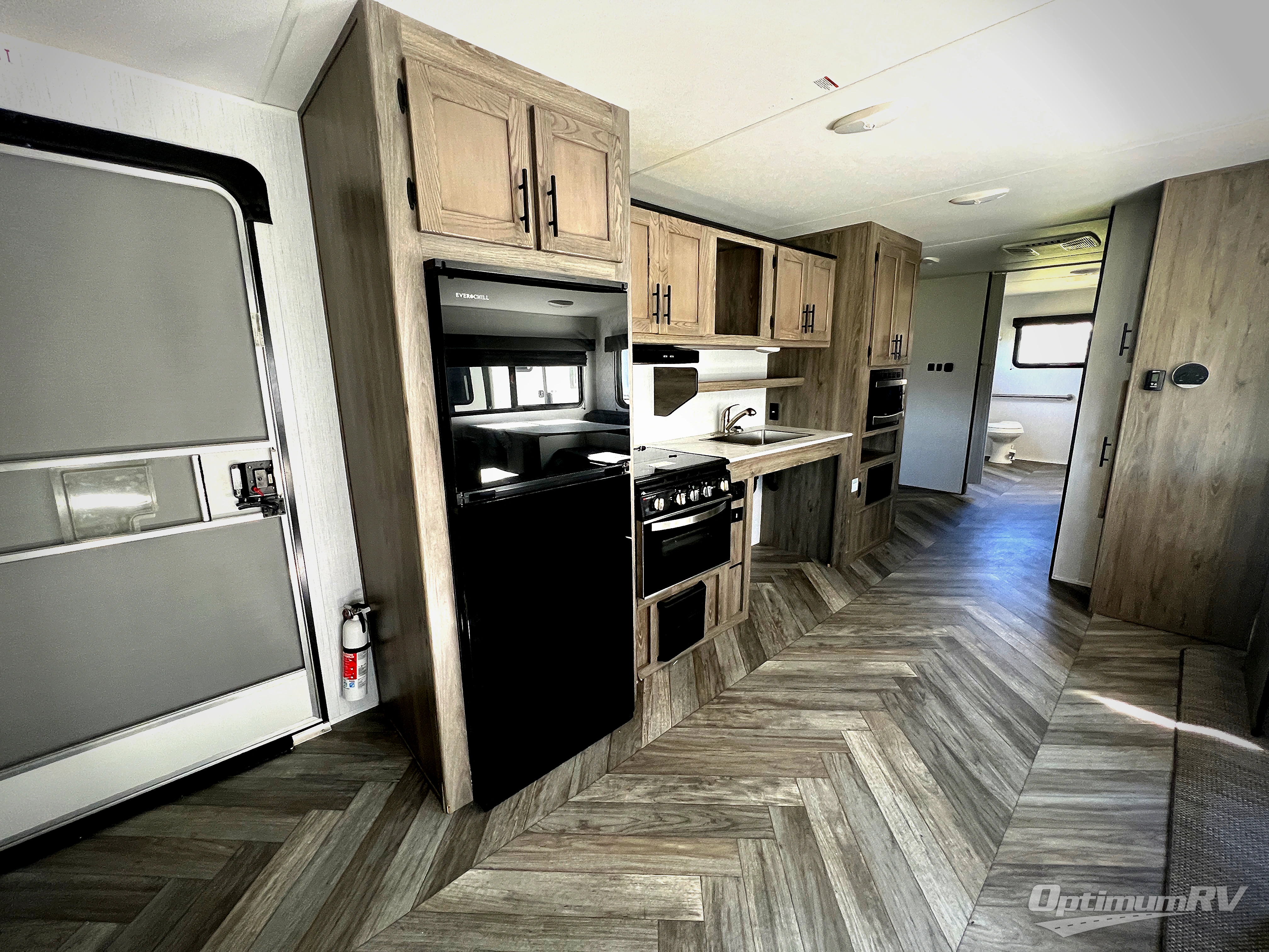 Dual entry and a spacious rear bath makes vacationing fun! The kiddos can sleep on the set of twin bunk beds and you can choose the queen bed up front, plus the sofa and dinette slide also provides sleeping space when converted. The chef can whip up their best meals using the three burner cooktop and everyone can enjoy dining together at the booth dinette where you can later enjoy a game of cards. If you're not big into card games, relax on the sofa while you enjoy a cold drink stored in the 10 cu. ft. stainless steel refrigerator. Freshen up each day in the spacious rear bathroom with ABS tub/shower surround and a skylight above it!