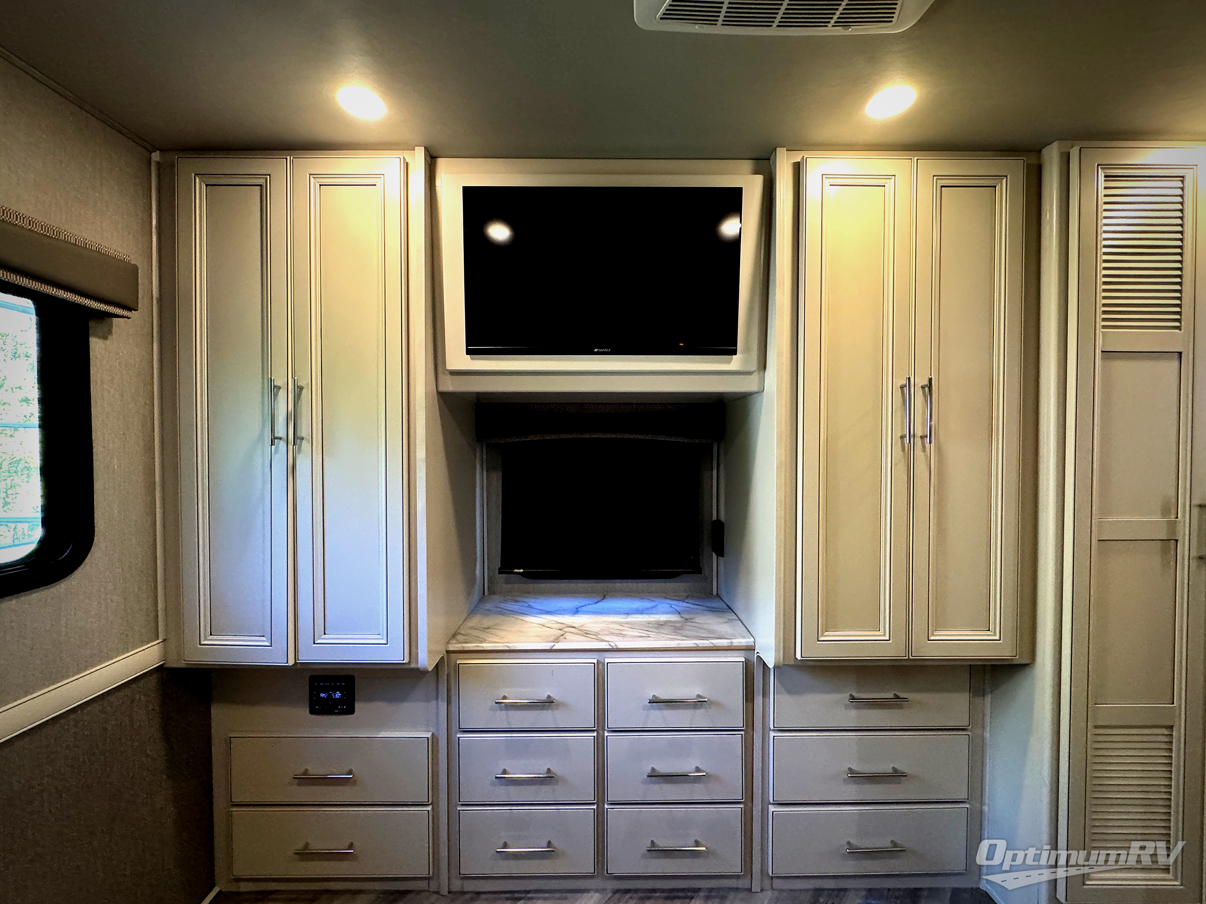 Start taking your best road trips in this motorhome! You will feel right at home sleeping in the rear private bedroom on the Serenity Series king bed slide with CPAP storage above it and a LED TV to watch movies in comfort, plus you have three wardrobes and a dresser for all of your clothes. Prepare your best home cooked meals with the three burner cooktop, store any leftovers in the stainless steel residential refrigerator, and pop a bag of popcorn in the stainless steel over the range convection microwave. Enjoy your meals in comfort at the Dream Dinette then play a card game, but if you're not one for games then you can relax on the jackknife sofa across from the fireplace with a LED smart TV above it!
