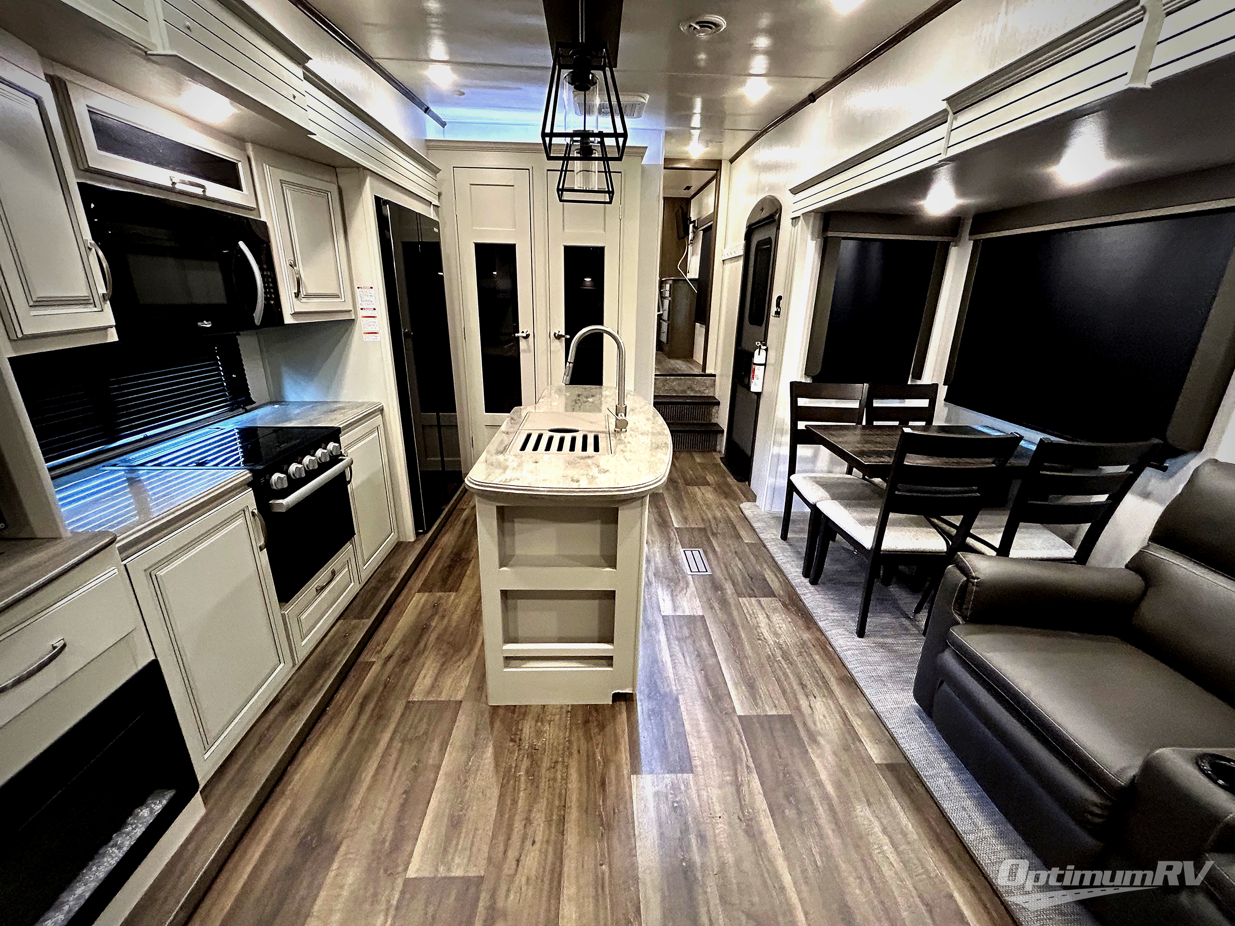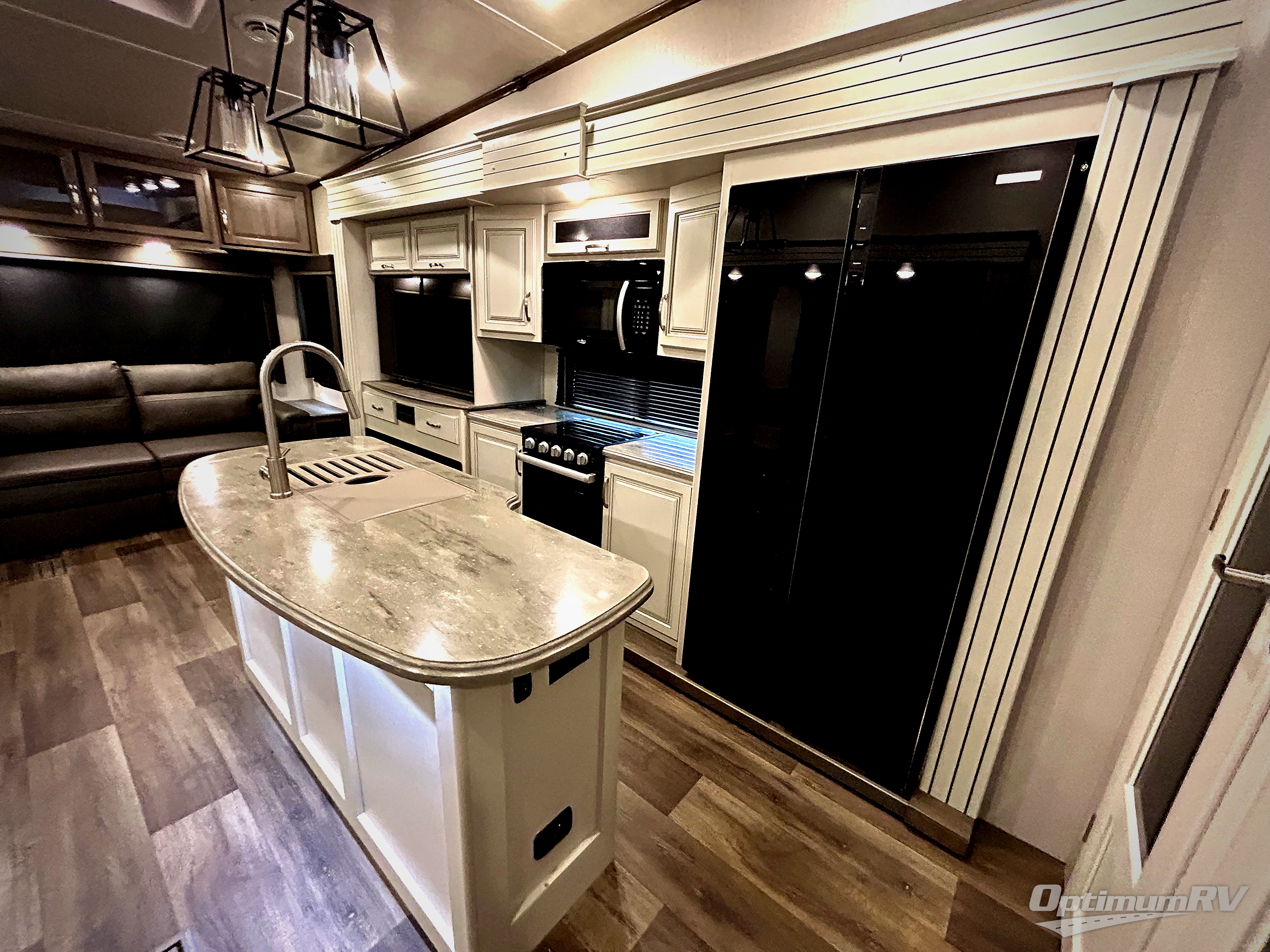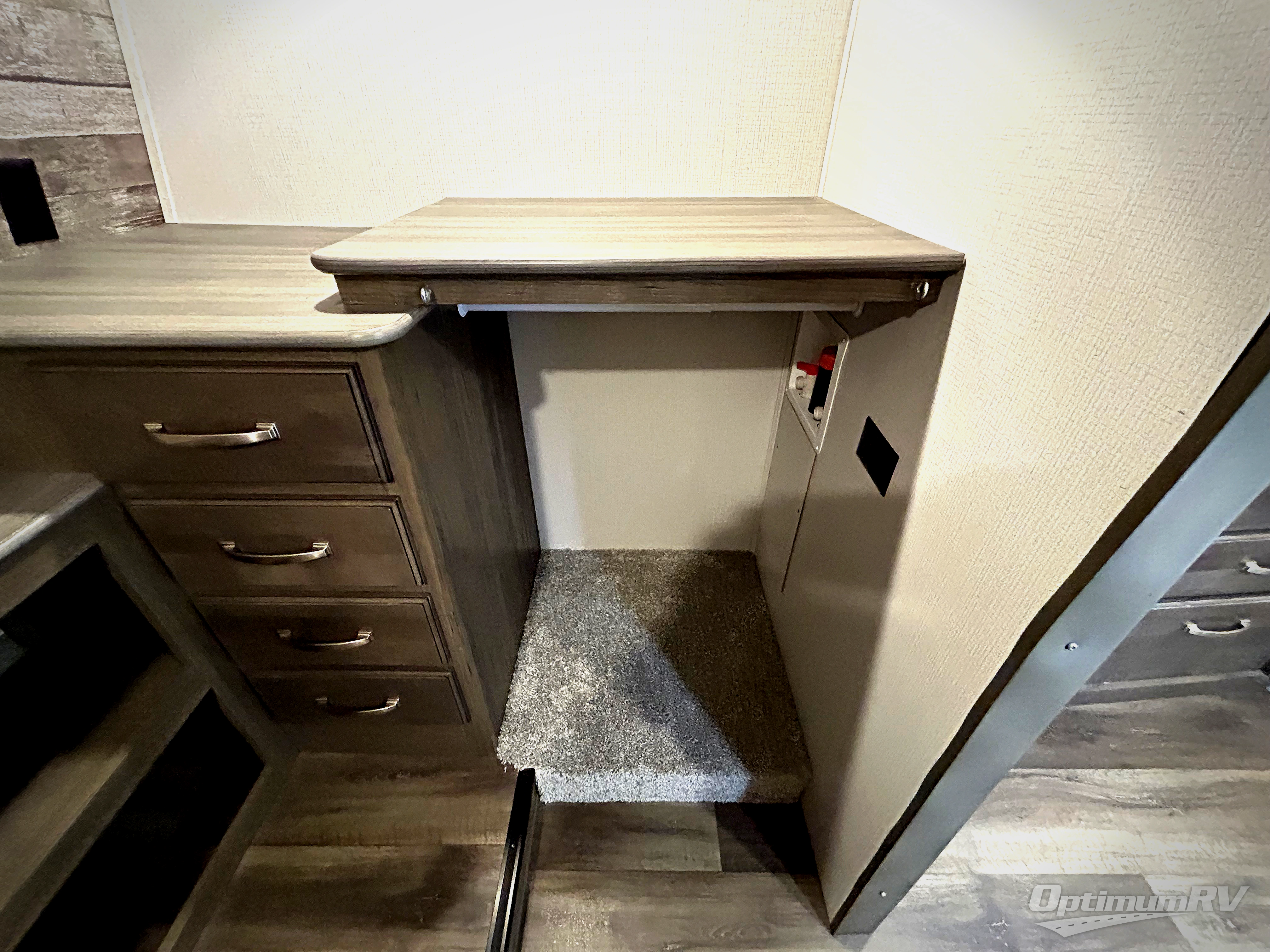 You will be so excited to take this Cougar fifth wheel out for the first time! Because of its secluded and fully stocked master suite at the front, this unit is perfect for a couple who wants to see the country or visit family. The master bathroom has a wonderful walk-in closet that has shoe storage and preparations for a washer/dryer. There is also under-bed storage in the bedroom portion, and the King bed slide gives you a little more space to get to the dresser and linen closet. The half bathroom is located out in the main living area so that your friends will have a place to go when they visit. Opposing slides keep this living area open for lounging comfortably on the tri-fold sleeper sofa and theater seating, and you can get everyone together for a board game at the booth dinette.
