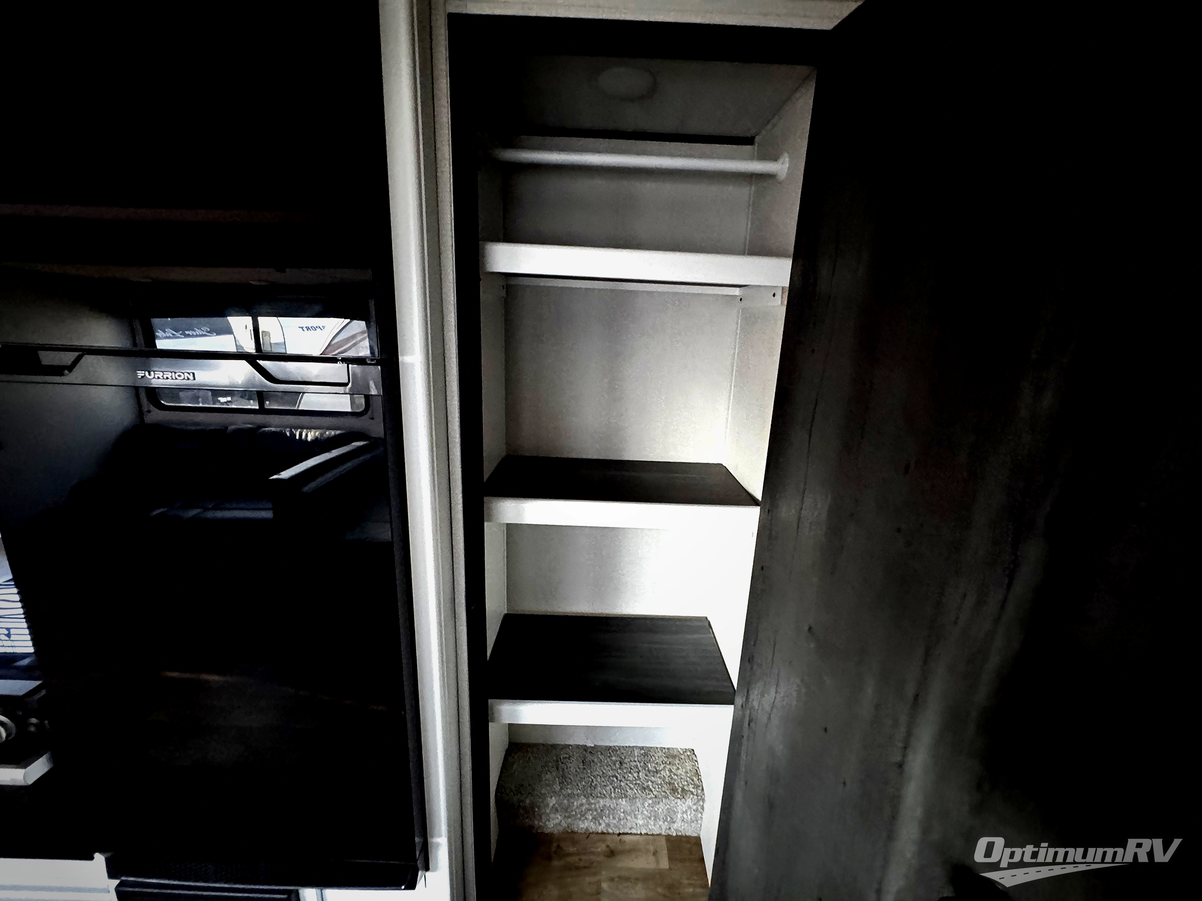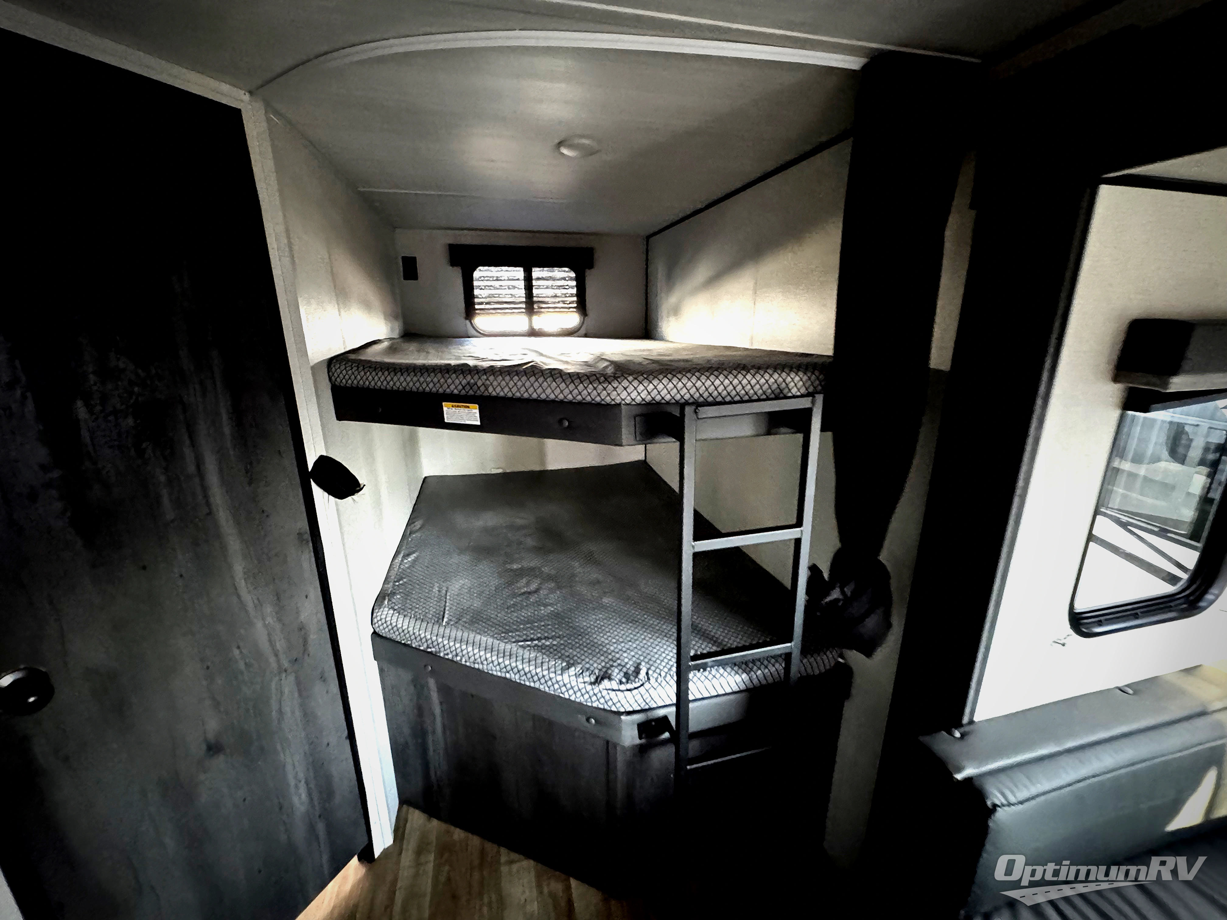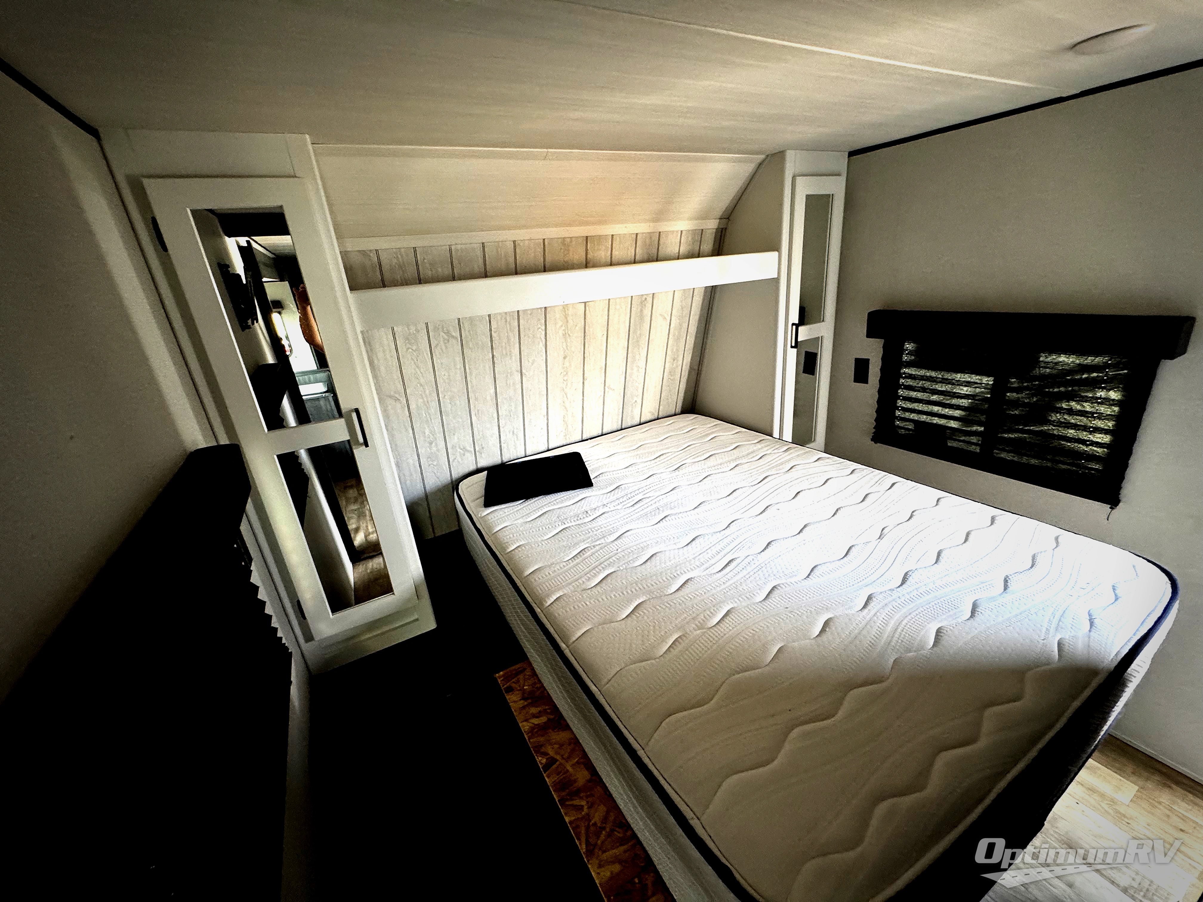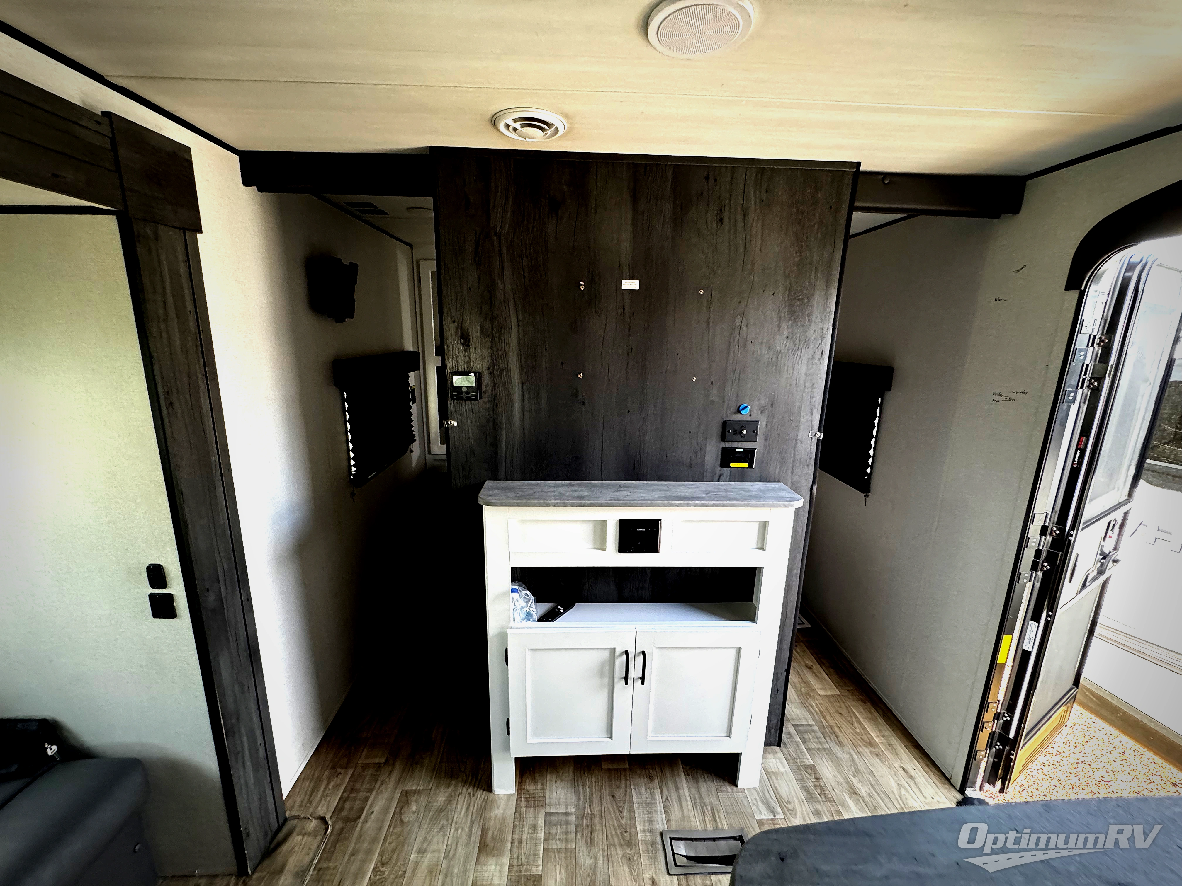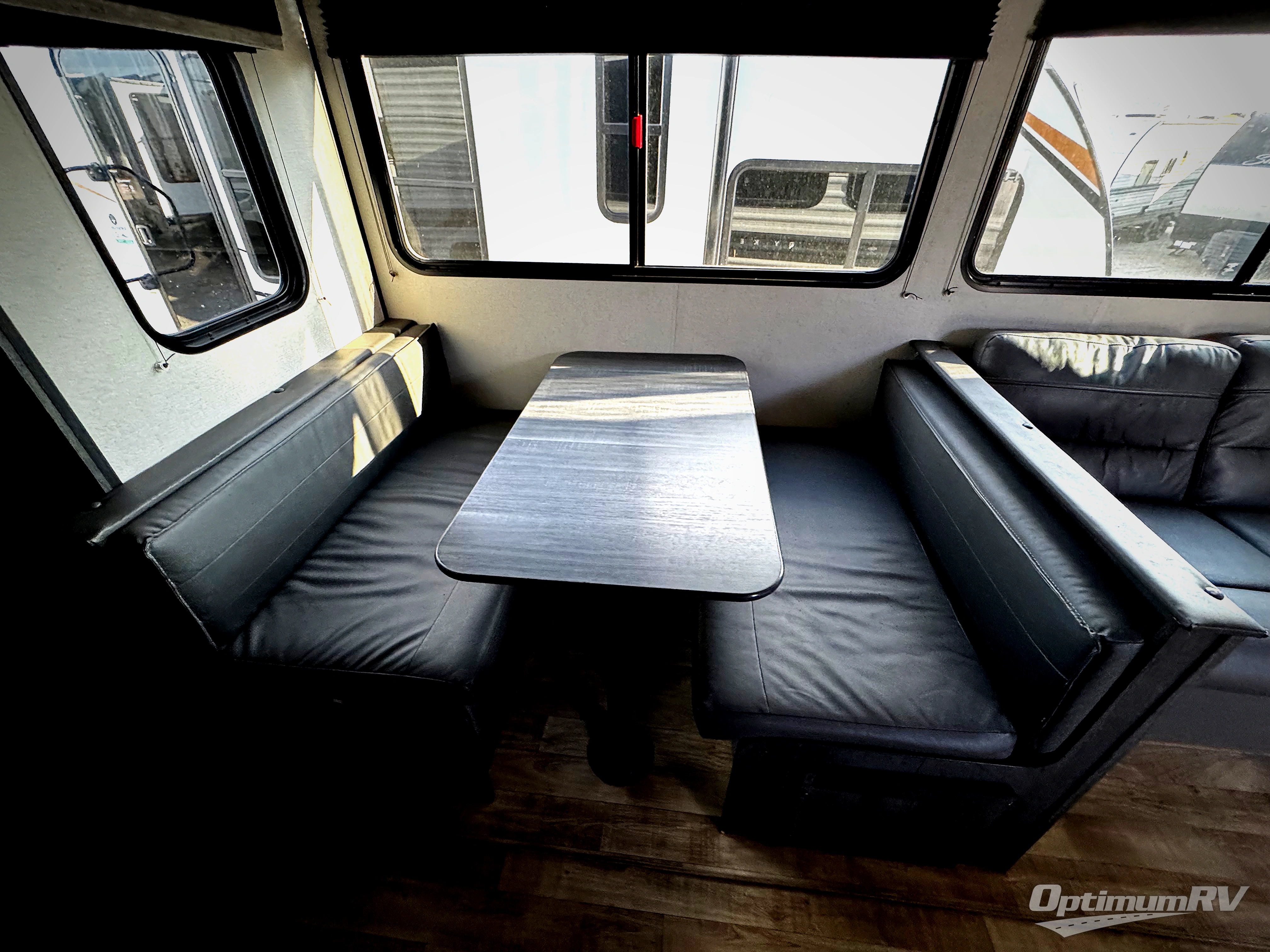 Get away with ease in this Hideout travel trailer! You will have your own private place to sleep in each night with the private bedroom up front. This bedroom has a queen-size bed, closets and nightstands on either side of the bed, overhead cabinets, and a laundry chute. The entertainment center has been prepped for a fireplace, and there is even TV prep too if you want to bring along a television for movie nights. The large slide holds the booth dinette and jackknife sofa, and the central vacuum will help you clean up any messes that are made throughout the trip.