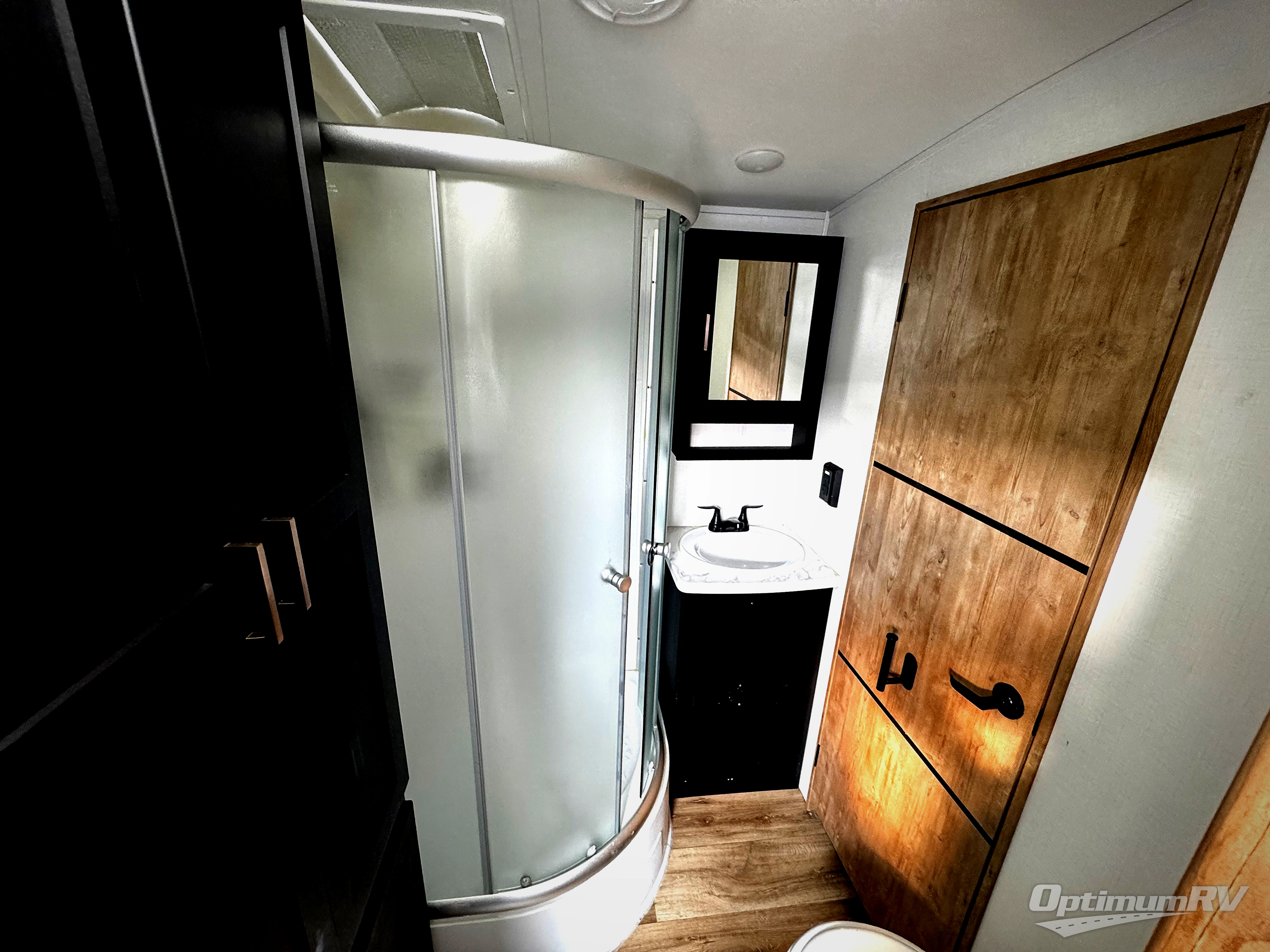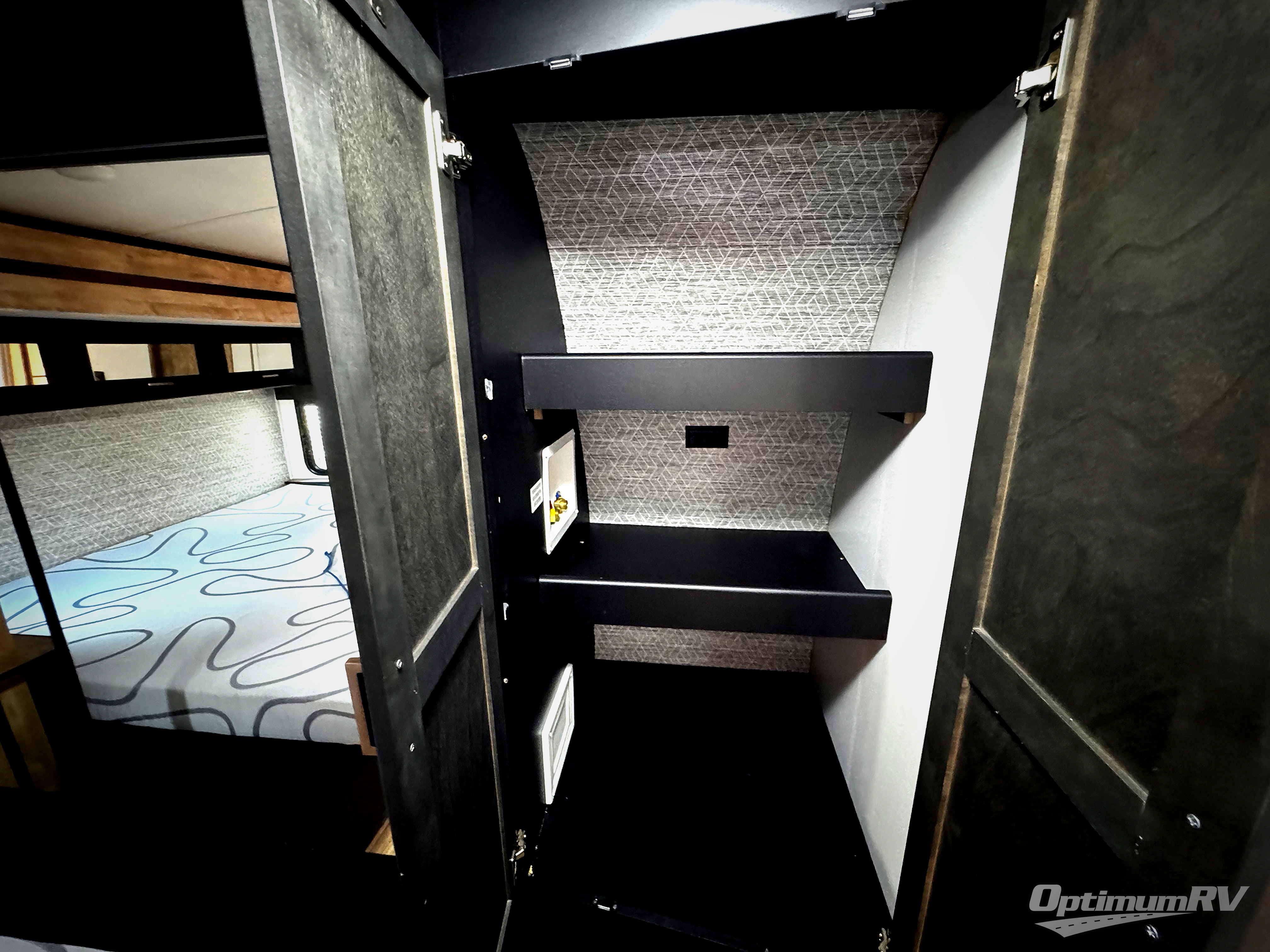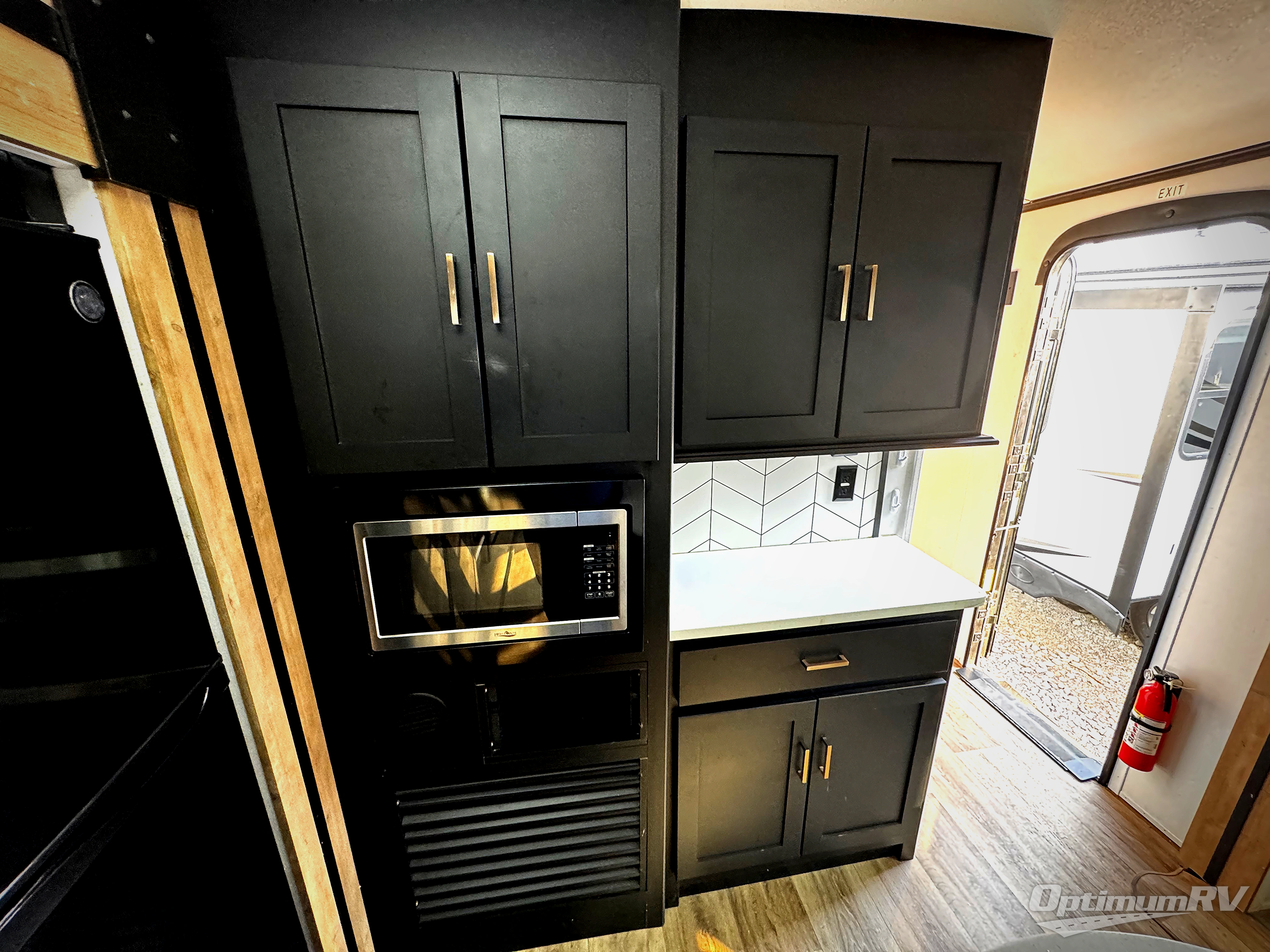 Whether you camp for inside comforts or outside adventures, this trailer will provide the comfort once you step inside. The rear living area has a sofa sleeper for guests, three slides throughout for maximum floor space, and two 10 cu. ft. refrigerators or choose the 8 cu. ft. option, so you can stock up on food, drinks and such for the longer stays. The kitchen island offers a skylight for natural lighting, and full amenities including extra counter space for serving meals. There is a 50" HDTV and fireplace to enjoy, theater seats, and a booth dinette or choose a table and chairs option in its place. The full bathroom allows entrance through the hallway or the front bedroom, and the bedroom offers a king bed, front wardrobe, a washer/dryer prepped space, and more storage.