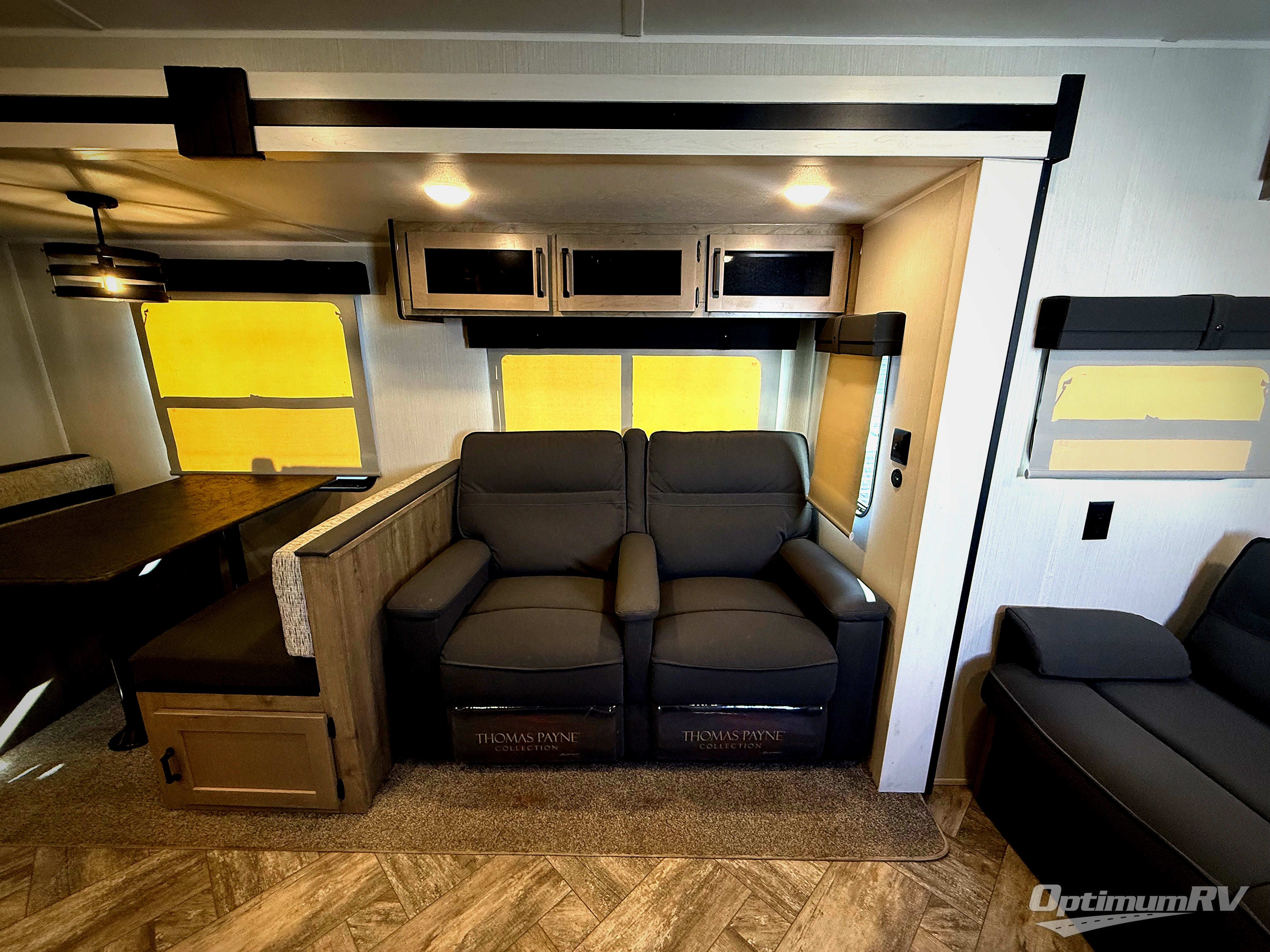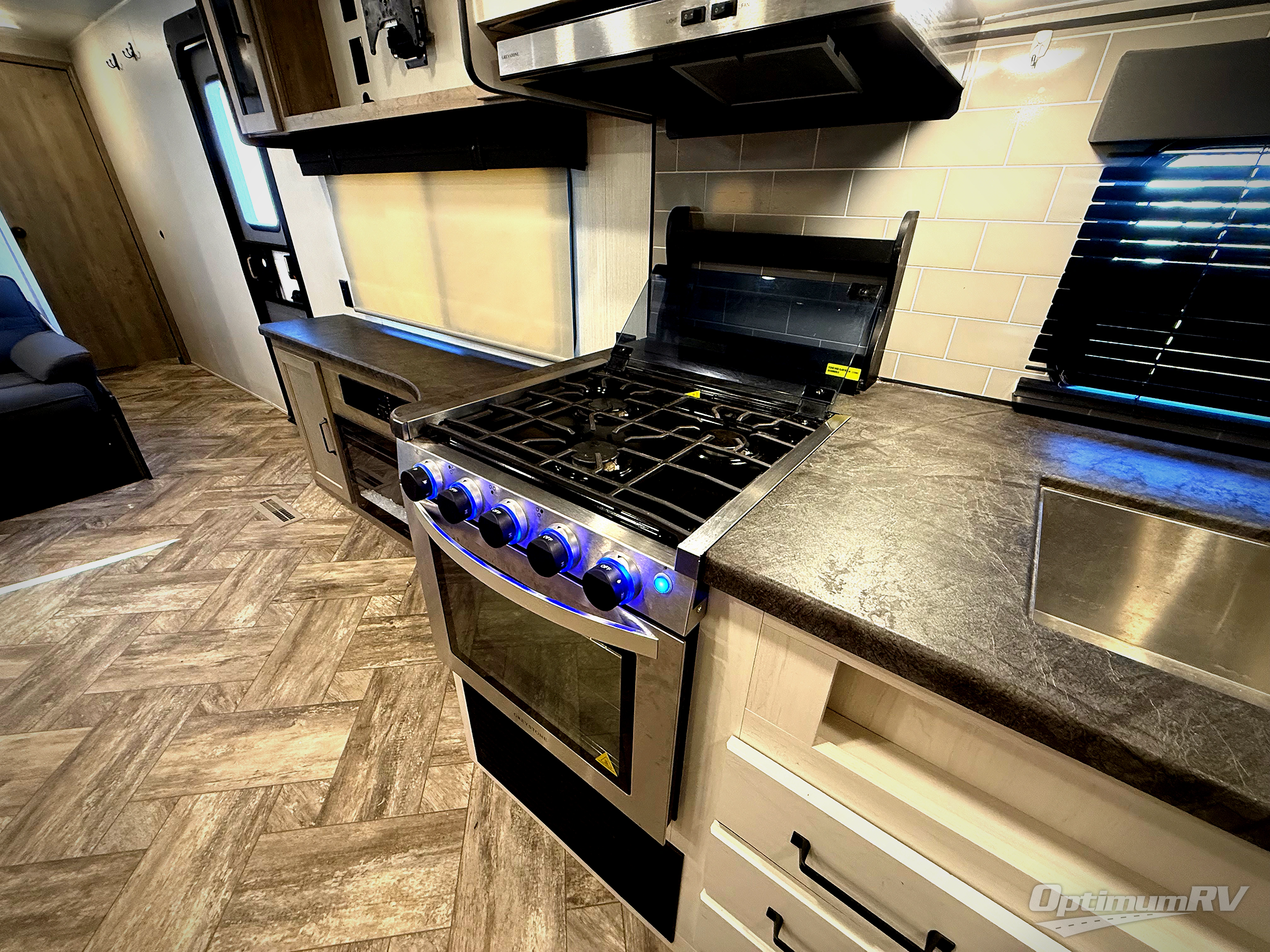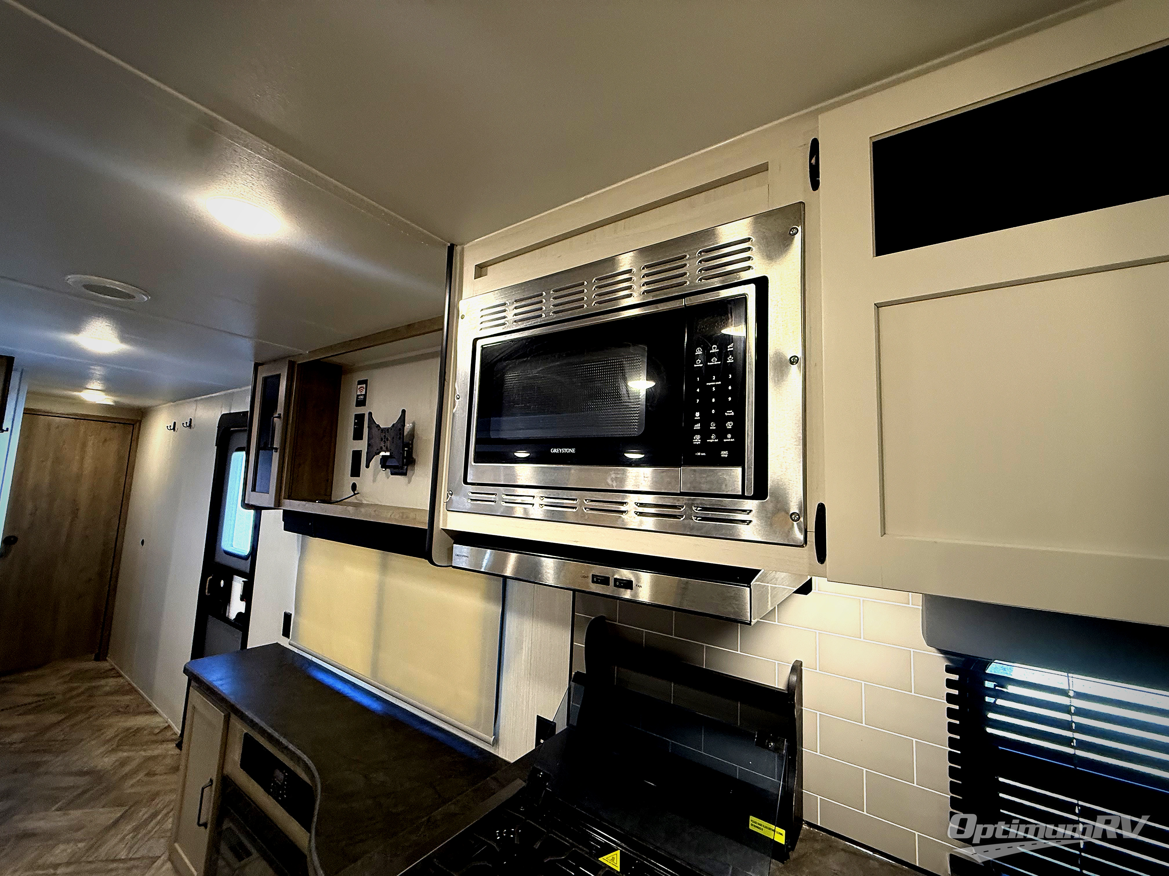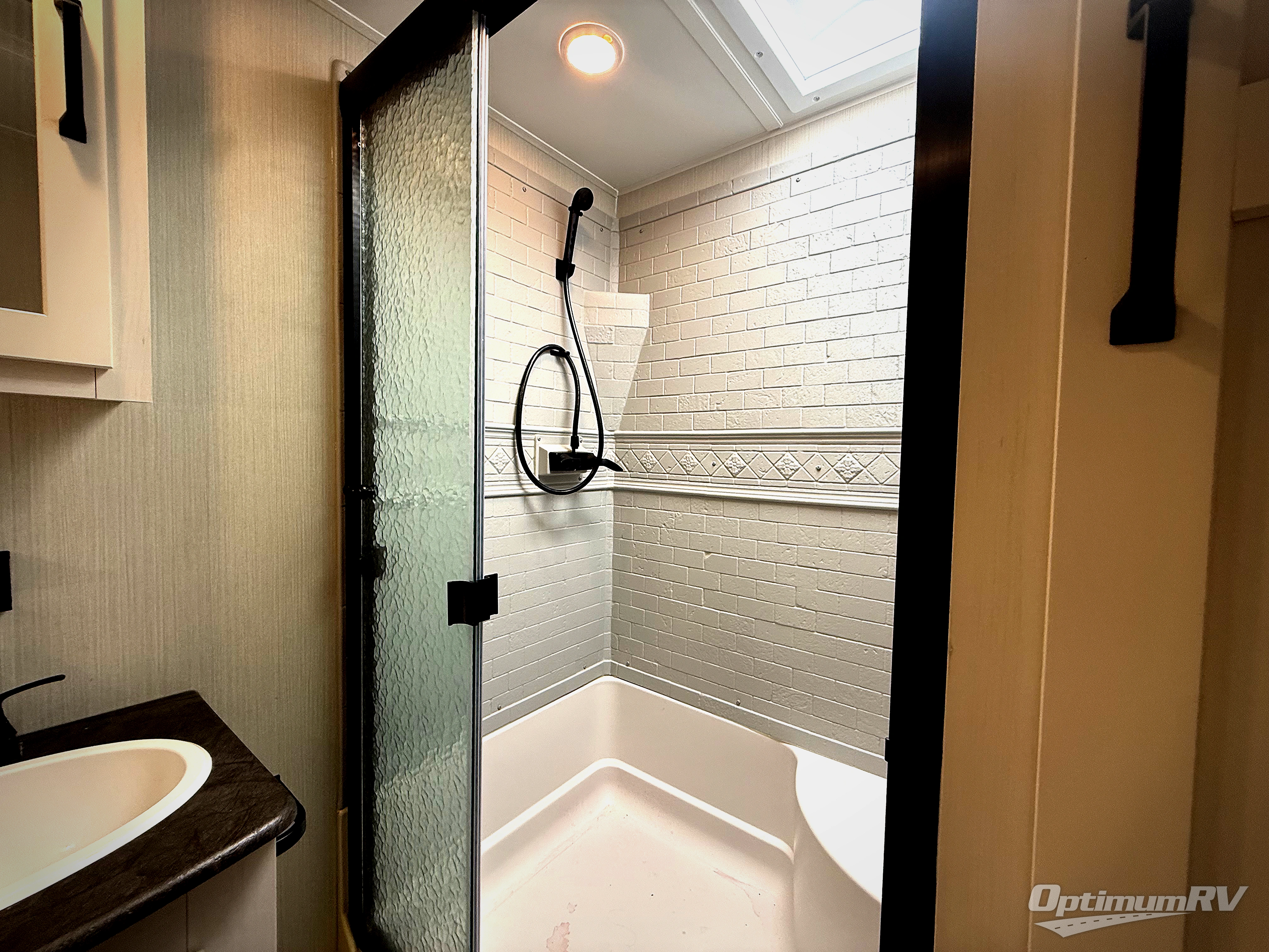 Pick your favorite camping spot and hitch this travel trailer up for a great weekend getaway! The rear kitchen has a three burner cooktop to prepare your best meals, an 11 cu. ft. stainless steel refrigerator to keep your perishables fresh, and a walk-in pantry for your canned goods and snacks for movie night. After a fun day at the beach, you can play a card game at the booth dinette, relax in either one of the two recliners and sofa, or rinse the sand out of your hair in the 32" x 40" shower with a seat in the full bathroom. There is also a front private bedroom with a queen bed to lay your head on at night, and dual shirt closets to keep your clothes tidy!