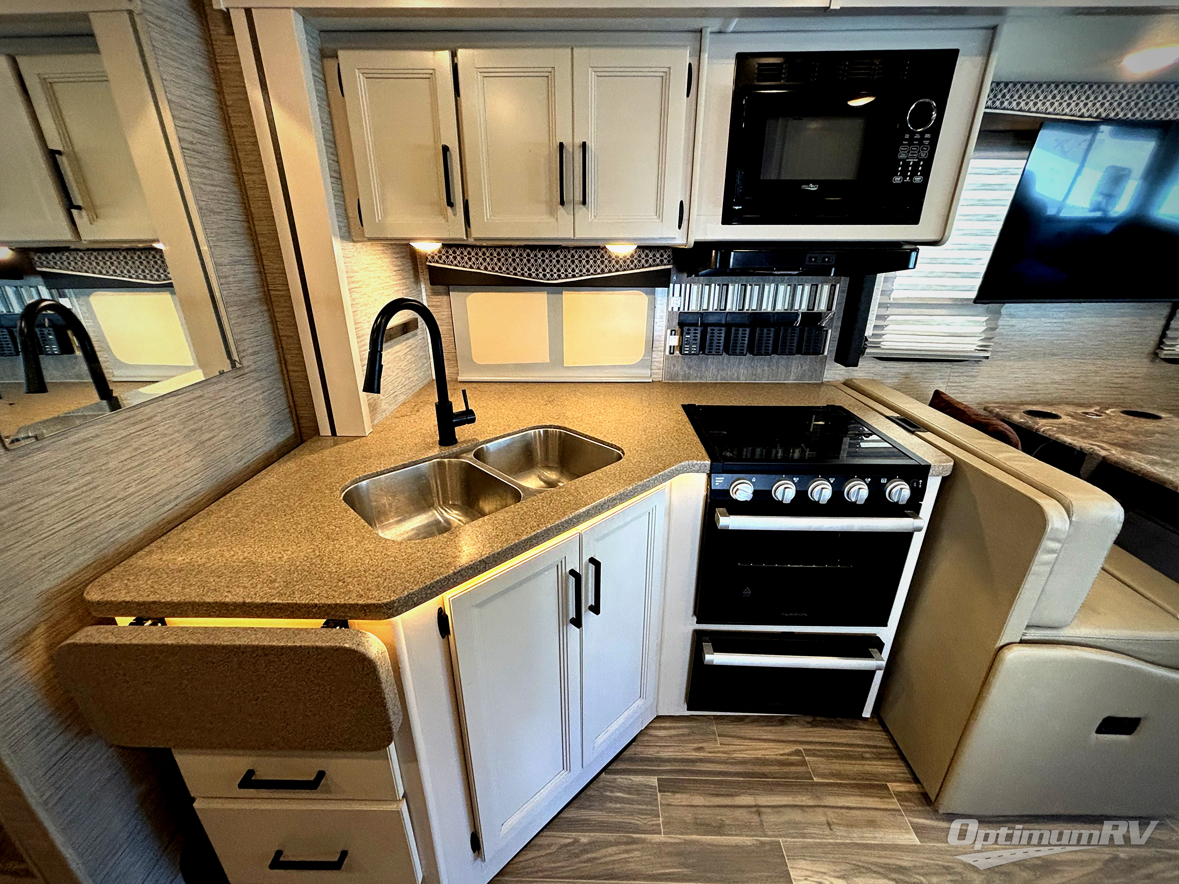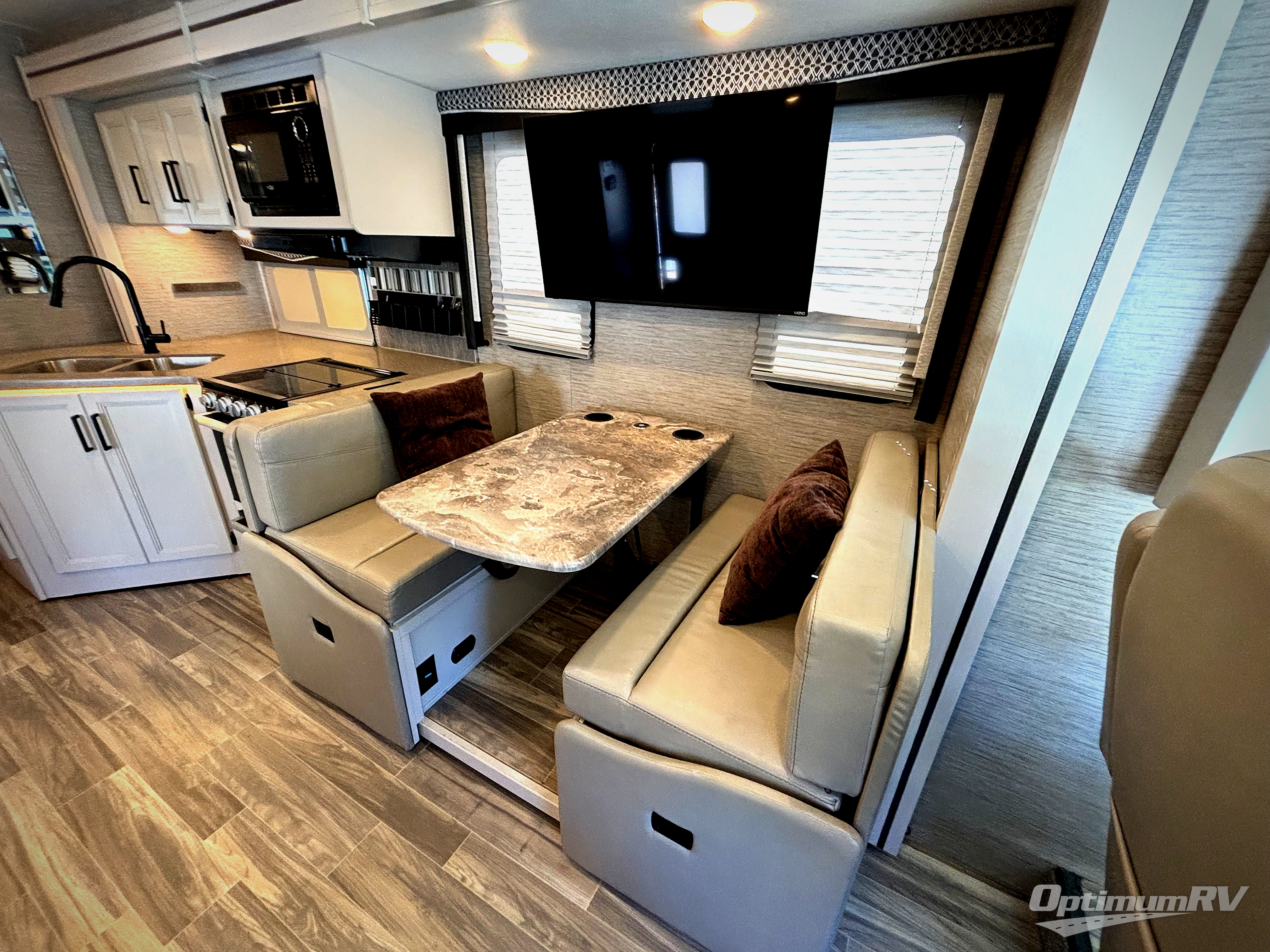Your family will love traveling in this spacious coach that can sleep six. The little ones will love the drop-down overhead bunk, and you'll have a bedroom with a king bed slide out, a 32" TV, and a large closet to keep your clothes wrinkle-free. The kitchen will be perfect for making at-home meals and there is plenty of counter space to prep fresh fruits and vegetables. Your crew can relax on the Dream Dinette or jack-knife sofa, and there is a 39" TV for movie nights. Or you may just head outdoors to watch the big game on the exterior 32" TV!