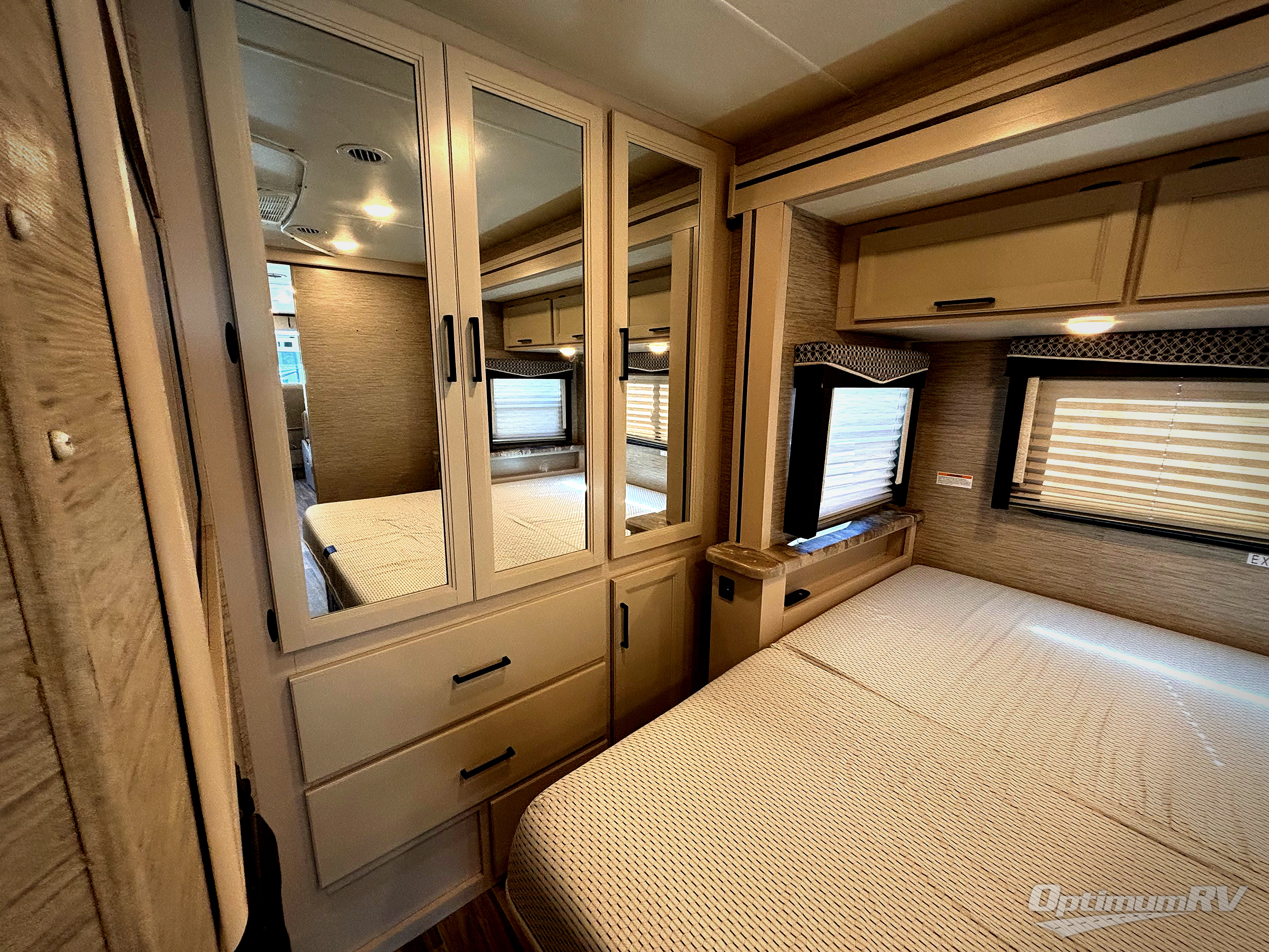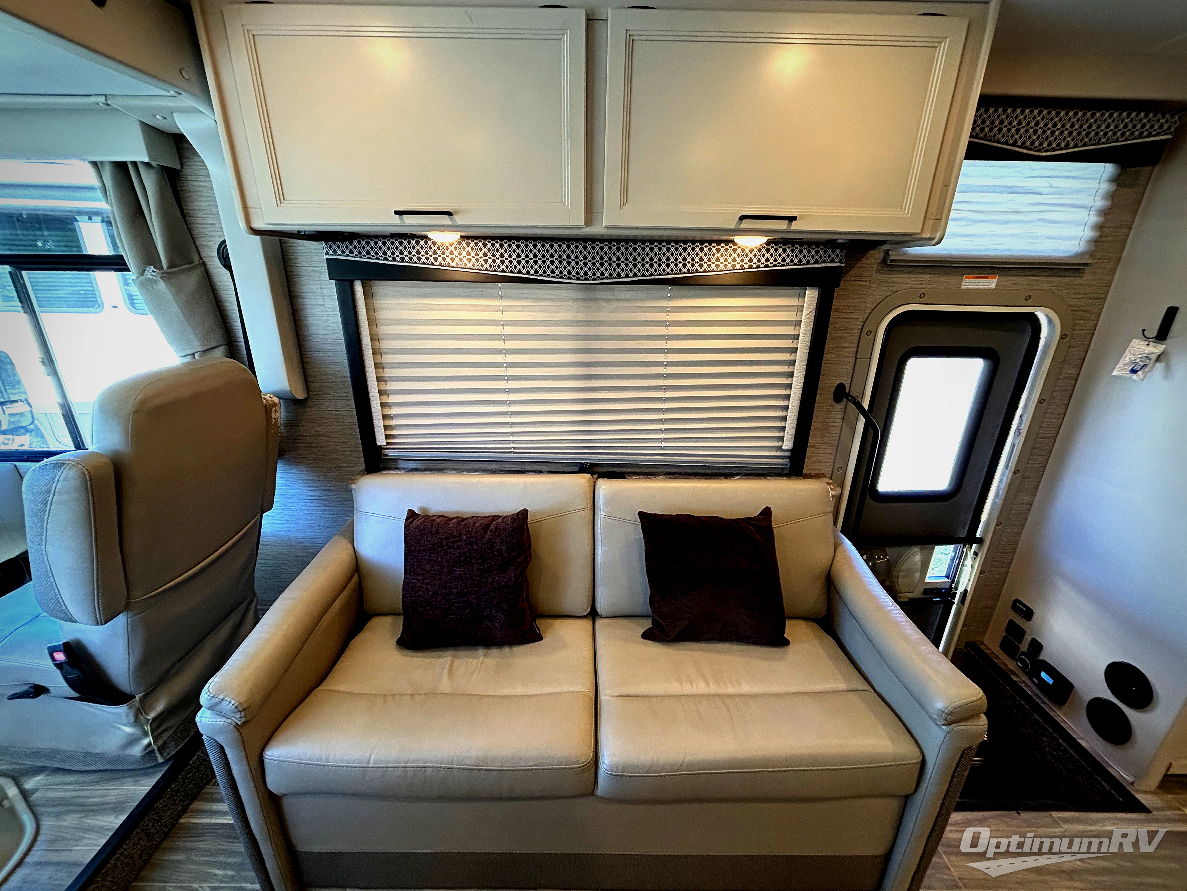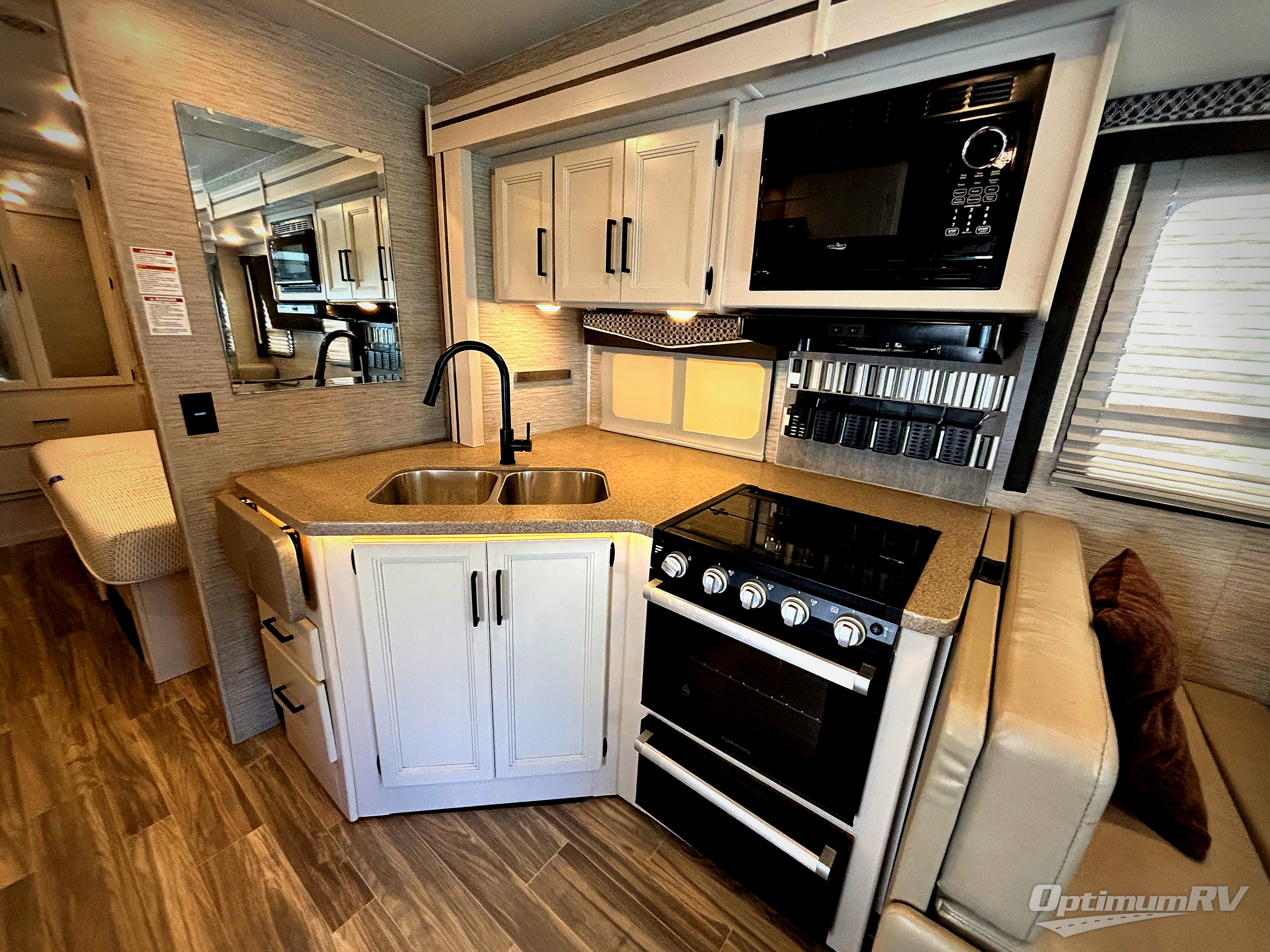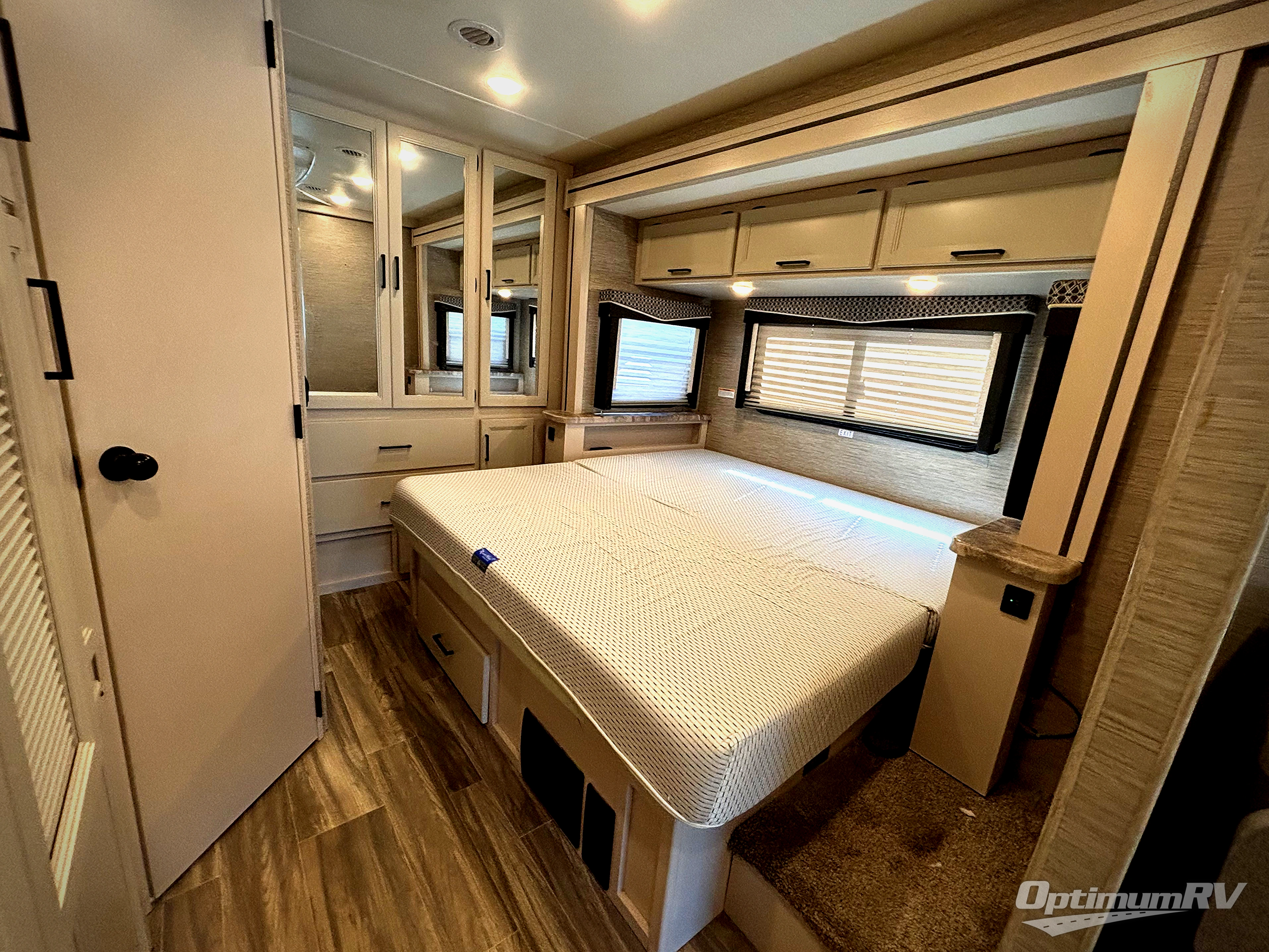 The A.C.E Class A gas motorhome is constructed with a welded tubular steel floor, vacu-bond laminated roof, walls and floor with block foam insulation, and a premium one-piece exterior roof for a coach made to last. You will love the pet-friendly features, like the Bird's Eye window, the Pet-Link multi-purpose tie-down and the Pull-Out Kibble Station with an FDS approved pet bowl liner. Each model includes an Onan RV QG 4,000 gas generator, a Winegard ConnecT Wi-Fi extender +4G, and are pre-wired for solar charging. Some of the other convenient amenities you will find on the A.C.E are frameless windows, a basement pass-through storage, and an exterior LP connection. Head inside to find residential vinyl flooring, pressed laminate countertops, glass tile backsplash in the kitchen, and a designer headboard, bedspread and pillow shams in the bedroom for all-around comfort!