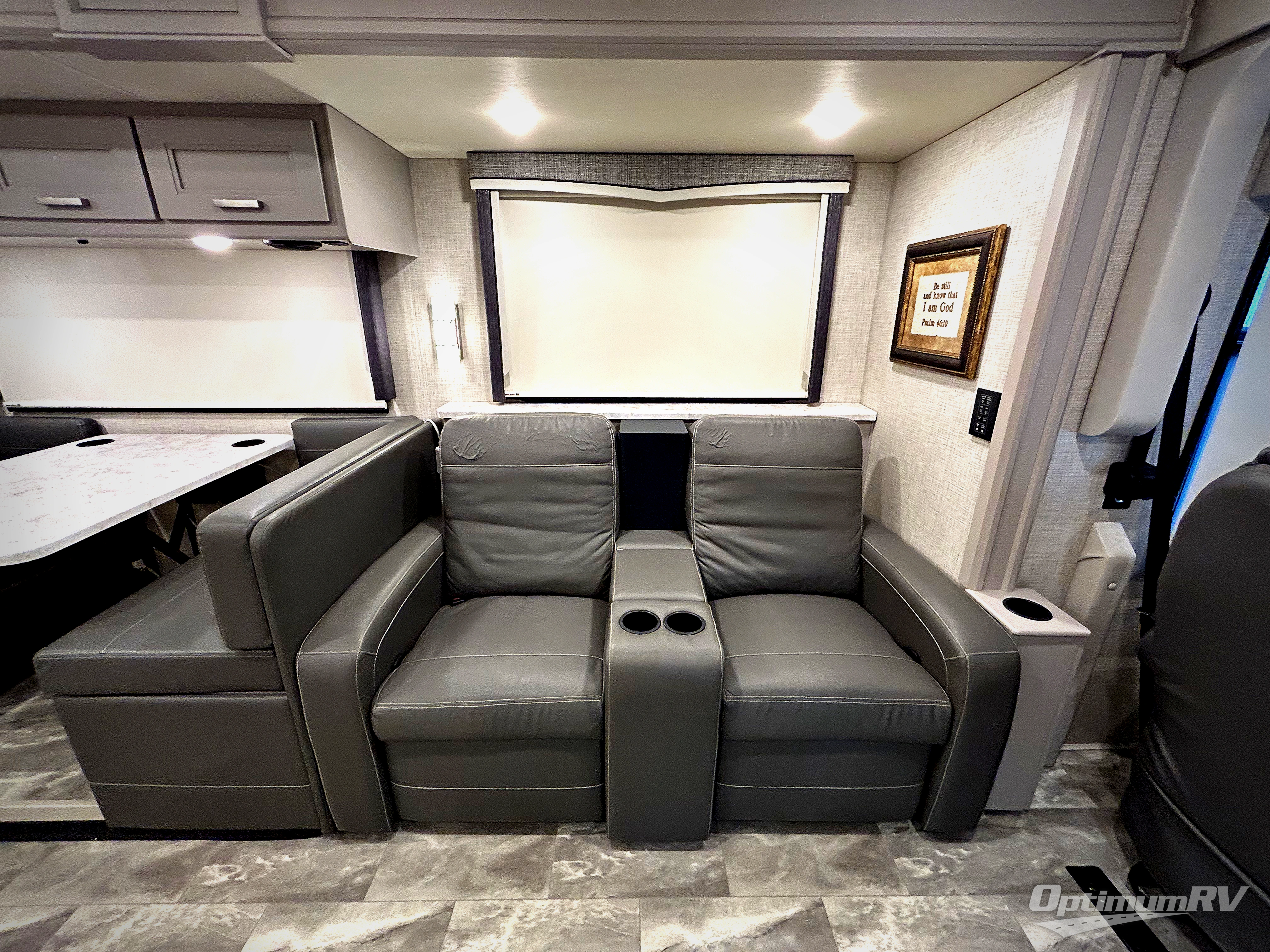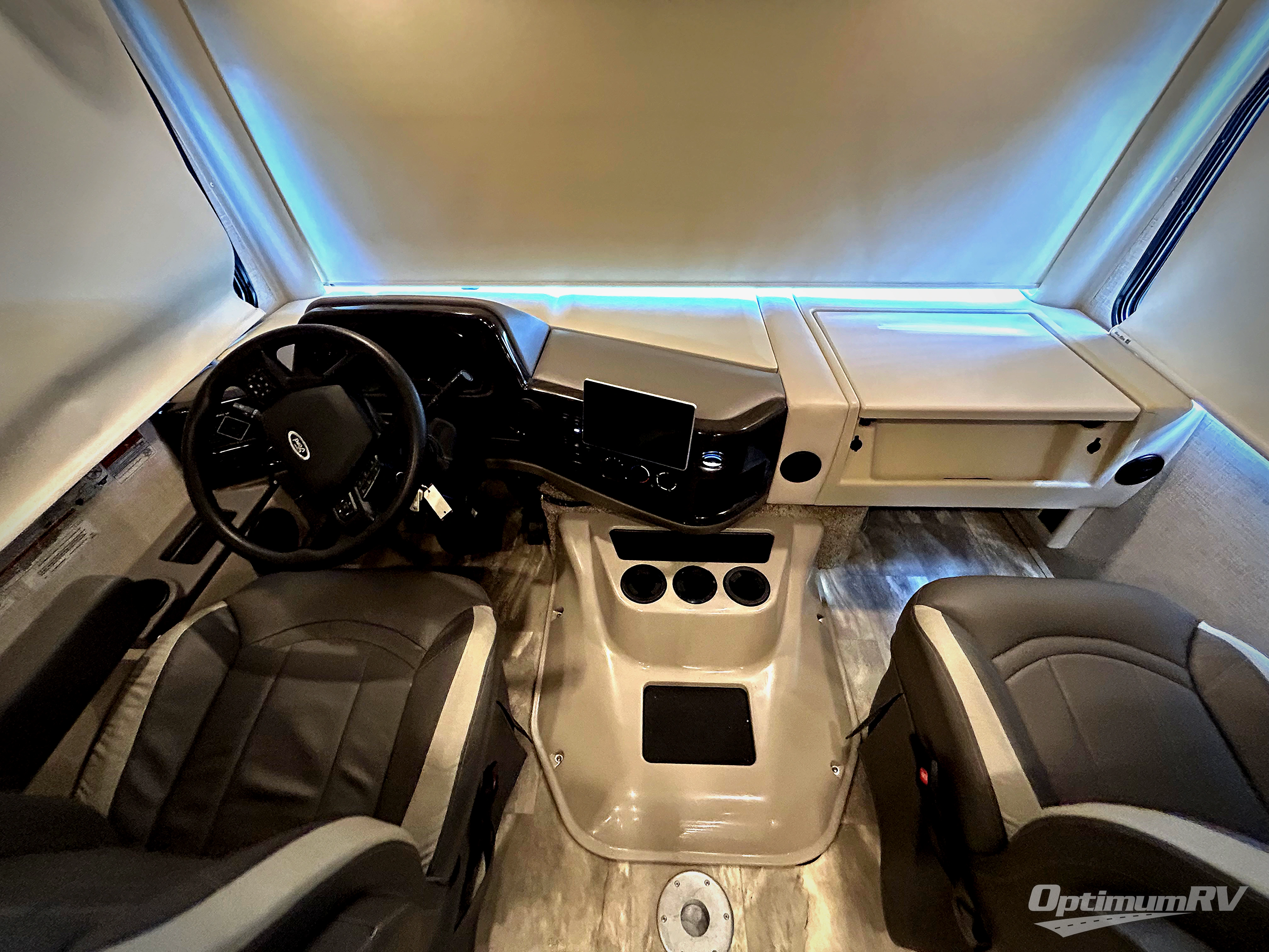 Hop on board the Challenger Class A gas motorhome by Thor Motor Coach for an adventure of a lifetime. The modern dash features a 10.1" touchscreen dash radio with Bluetooth and Sirius/XM radio, plus there are reclining/swivel leatherette captain's chairs for your comfort. Setting up your coach will be a breeze with the automatic leveling jacks with touchpad controls, and each model includes an Onan RV QG 5500 gas generator, dual roof A/C's, and many more amenities for hassle-free camping. The interior of the Challenger will have you feeling at home in a heartbeat. Residential vinyl flooring, solid surface countertops, and satin-finish cabinetry are just a few comforts you will enjoy. Each model also includes a Winegard ConnecT WiFi extender +4G to keep you connected to the outside world as you travel, and an entertainment package that will never leave you bored!