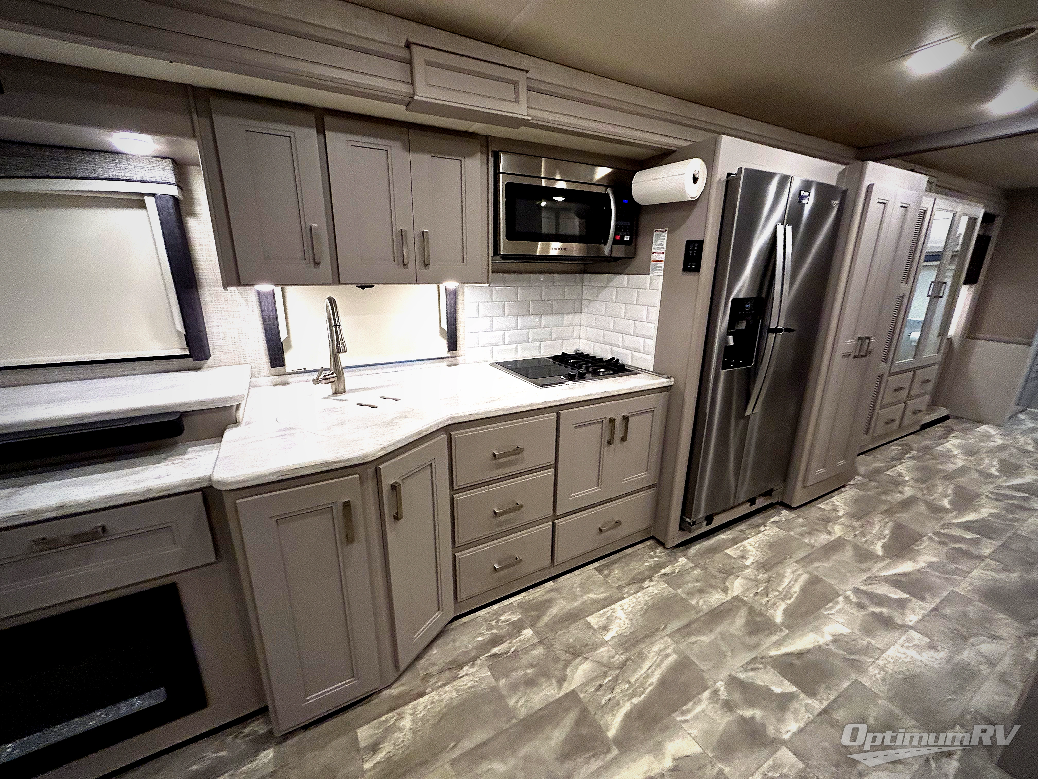 This motorhome features a full-wall slide, plus two additional slides for maximum space and comfort. You can sleep seven people thanks to the drop-down overhead bunk, the king bed slide out, and the furniture in the main living area. The fireplace and retractable 50" TV will make it feel a little more like home, and the residential kitchen is any chef's dream. Since this model includes a bath and a half, your guests won't have to wait in line, and you'll find plenty of storage space throughout for everyone's belongings.