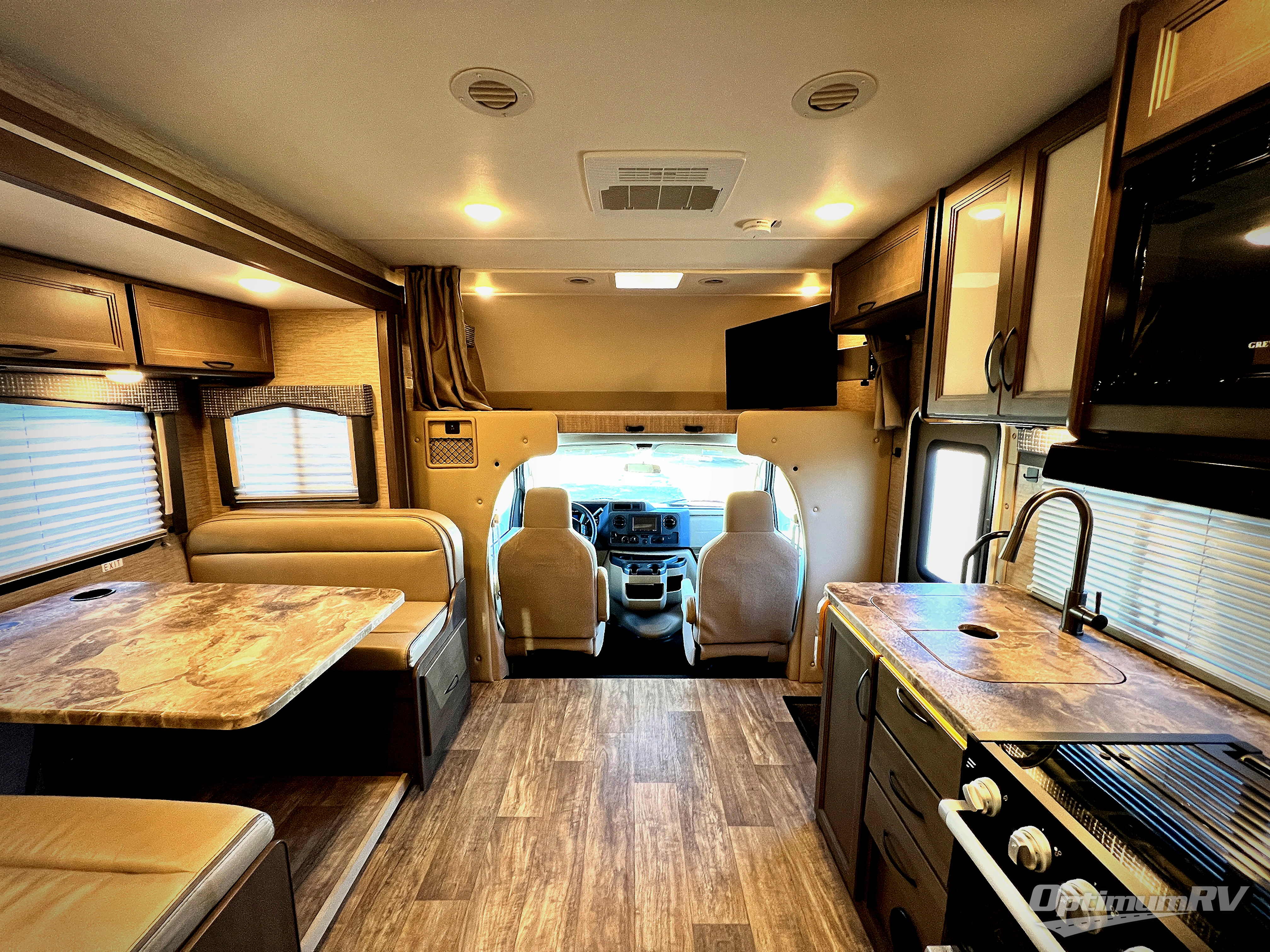 Experience a smooth ride to each destination with the Ford E-Series chassis or optional Chevy chassis on these Thor Motor Coach Chateau Class C gas motorhomes! The 31 ft. models even feature a MORryde SmoothTECH™ ride suspension system and automatic leveling jacks with touch pad controls for easy set up. They are constructed with a welded tubular aluminum roof, sidewall cage construction, vacu-bond laminated roof, walls, and floor with block foam insulation to keep the heat and air conditioning inside. The slick fiberglass exterior with graphics package is sure to turn heads down the highway too. Come find your favorite one today and get on the road!
