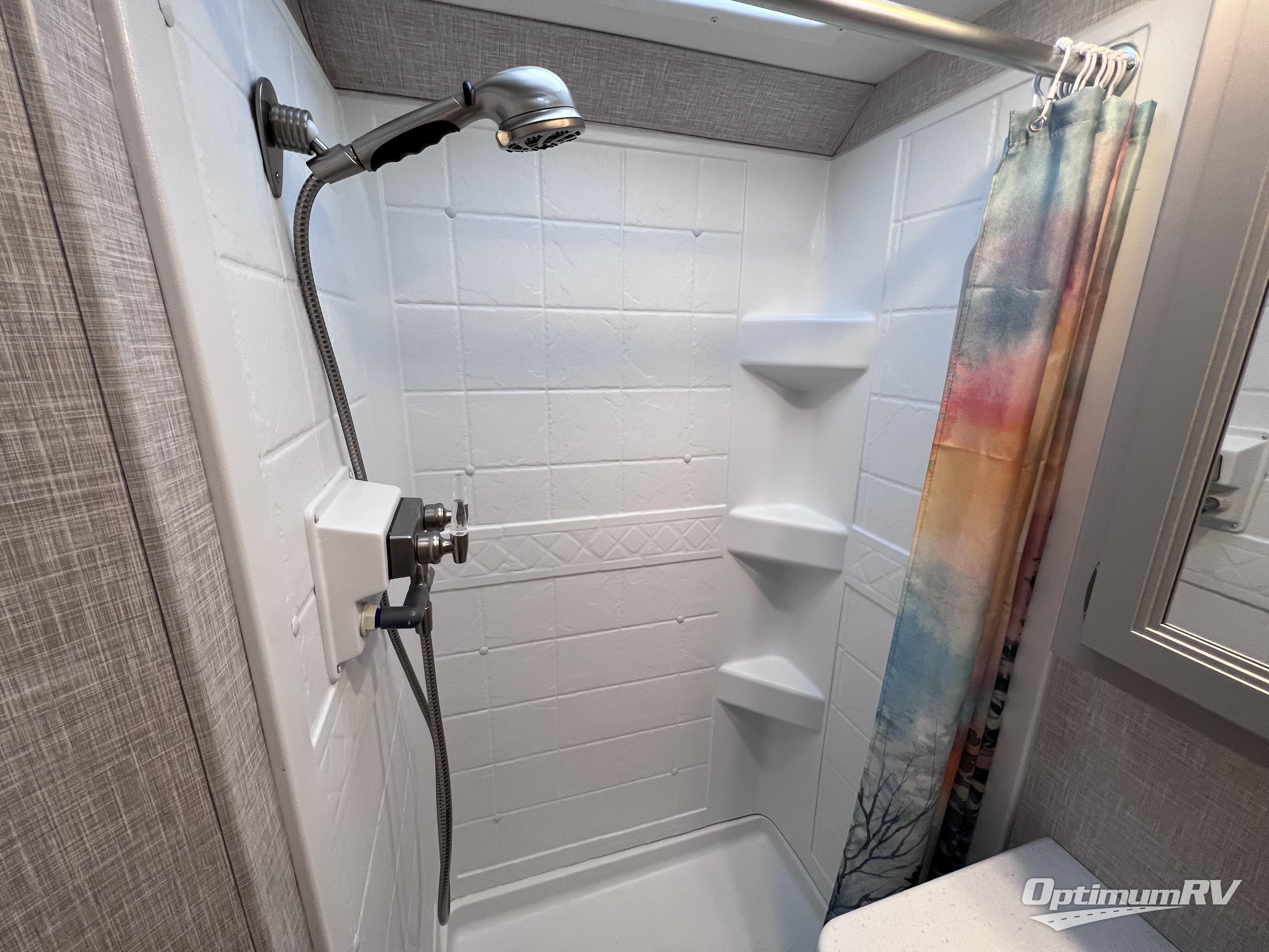 Simple and to the point, this coach is ready for fun vacations across the states. Waking up each morning on your own full-sized bed will feel just like home, and there is a cab-over bunk with a built-in skylight for the little ones. You can make breakfast on the three burner cooktop, and the milk and eggs can go back in the 12V refrigerator. There is also a flip-up countertop here for more prep space, and when the food is done, you can dine at the booth dinette. Before you head out for the day, freshen up in the full bath that includes a shower skylight, robe hook(s), plus a Showermiser hot water recycling system. This unit is also available with a Chevy chassis if you choose.