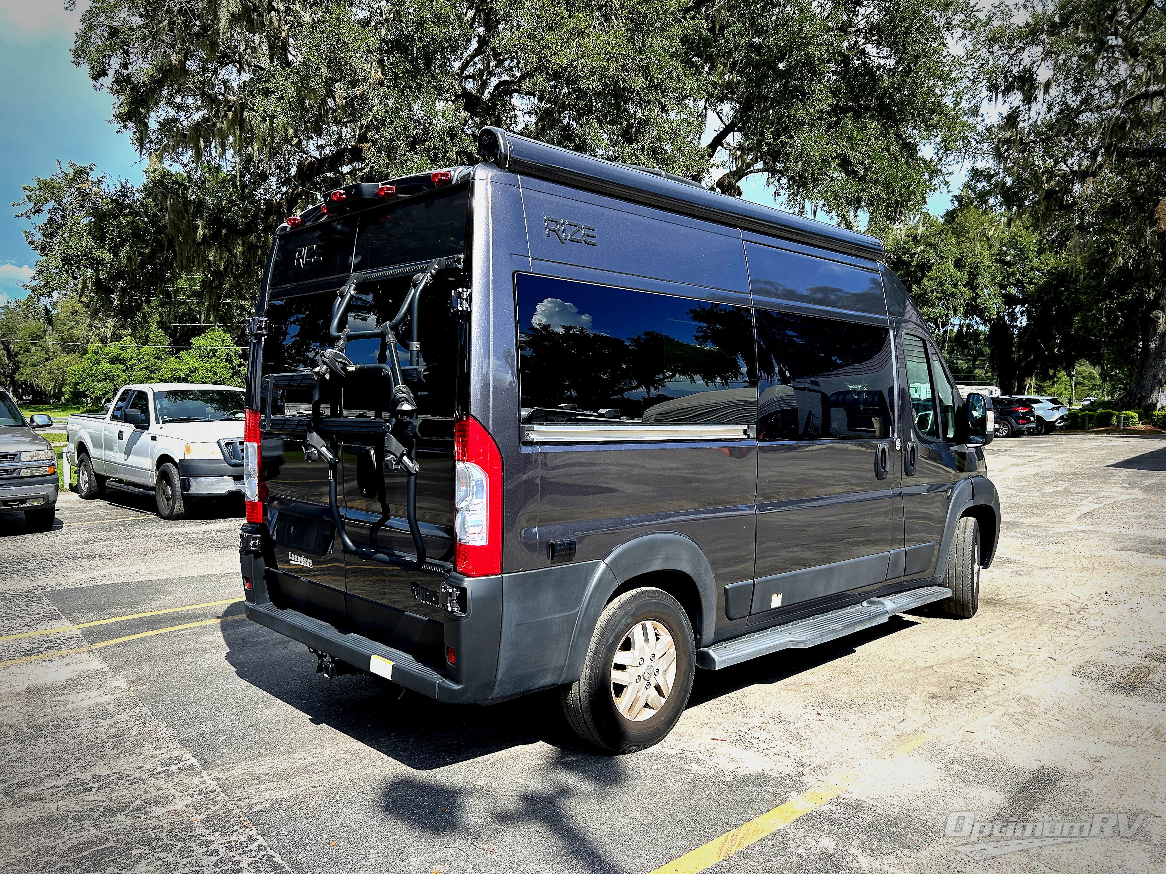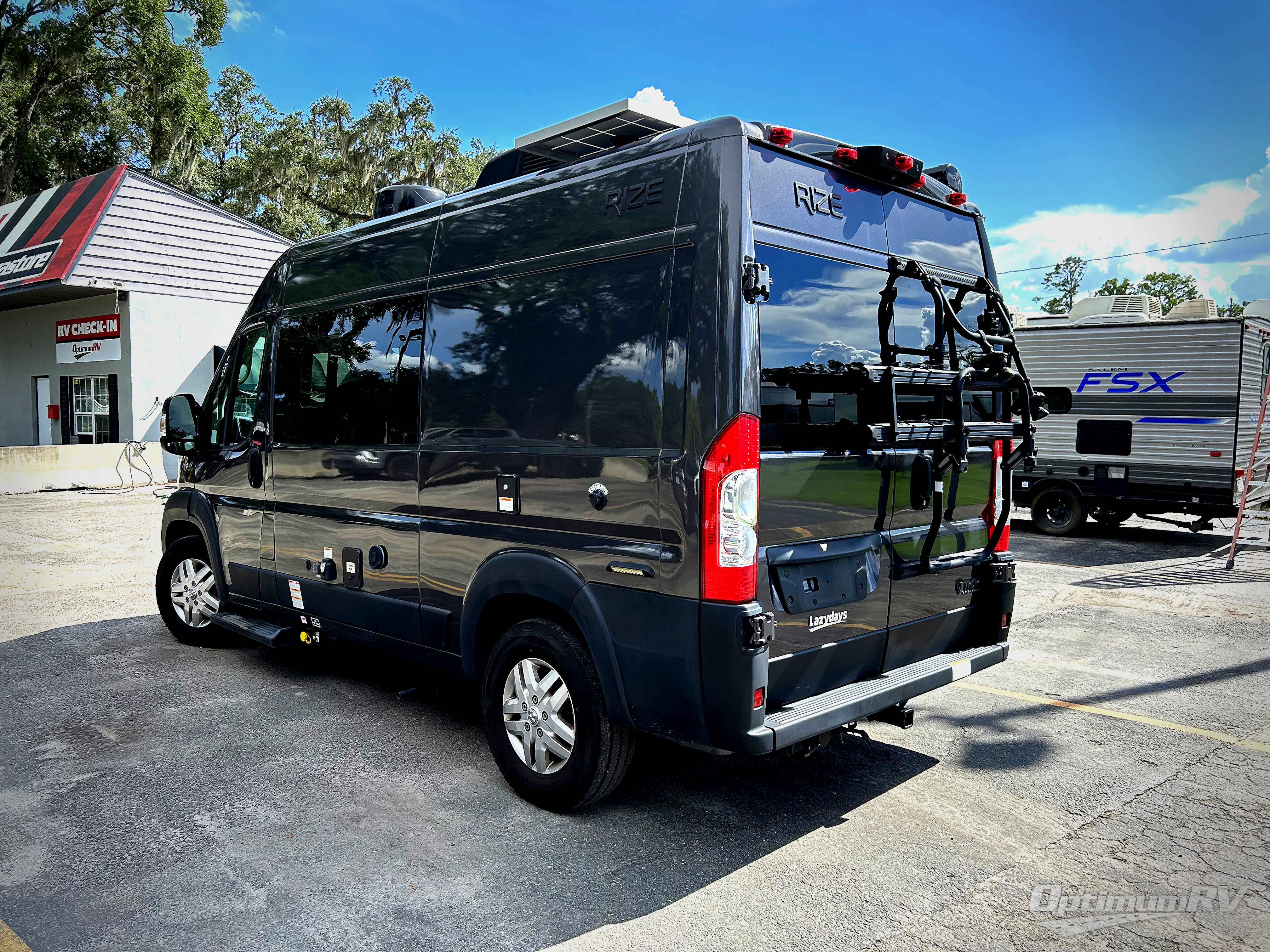The Rize Class B gas motorhome by Thor Motor Coach allows you to experience the camping lifestyle in a compact RV packed with convenient features. There is a 3.6L Pentastar V6 engine and 276 HP to power your excursions, and the outdoor enthusiast will love the 190W solar panel and solar charge controller. Each model includes residential vinyl flooring, TechnoForm Euro-style upper cabinet doors, and premium window privacy shades. You'll find pressed countertops in the kitchen and a glass protective cover and task lighting above the cooktop to easily cook meals each day. The keyless entry system adds to the convenience found throughout these models, plus there is an exterior LP connection if you want to hook up your own grill and a rear water sprayer to wash off your hiking boots.